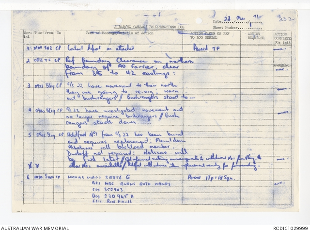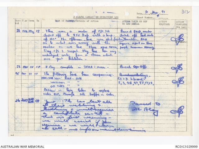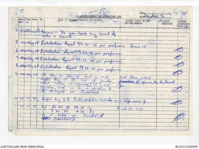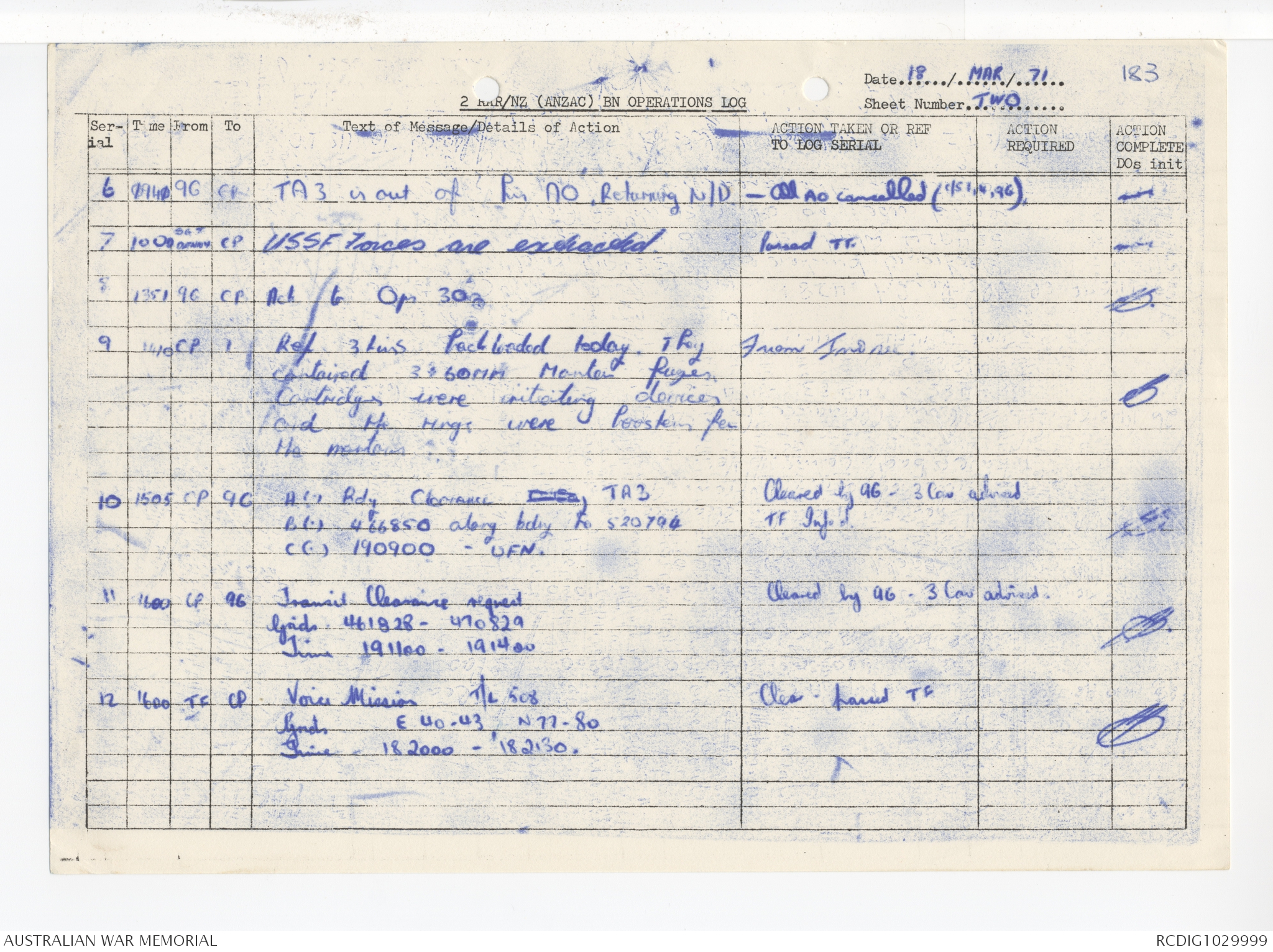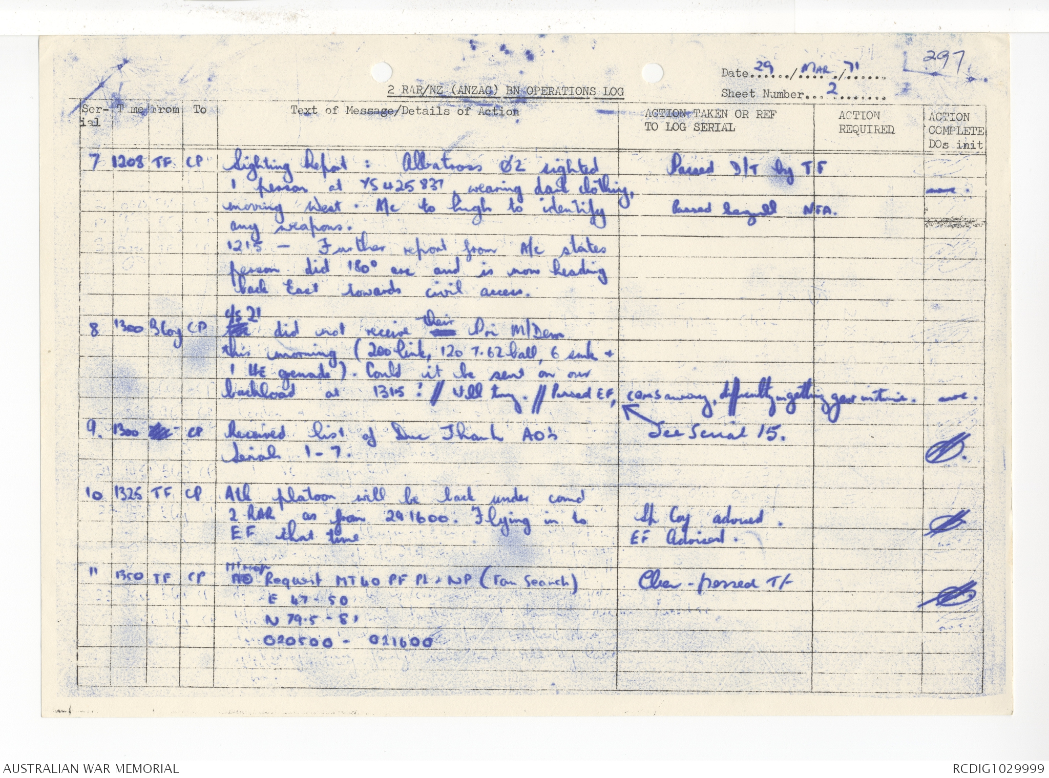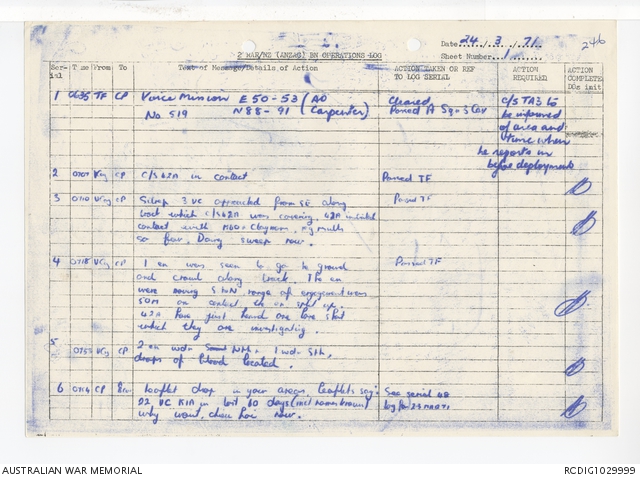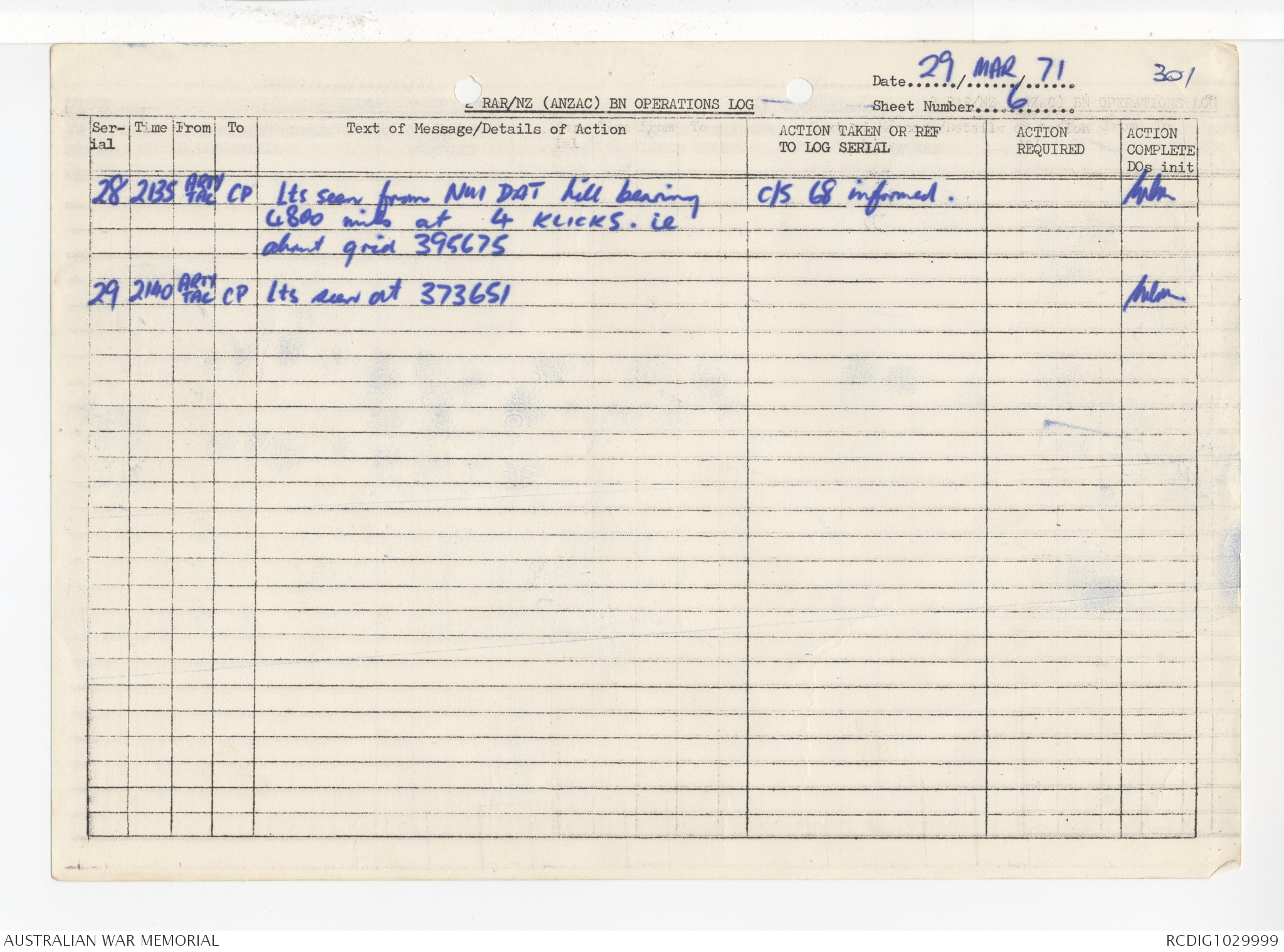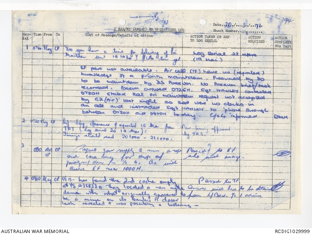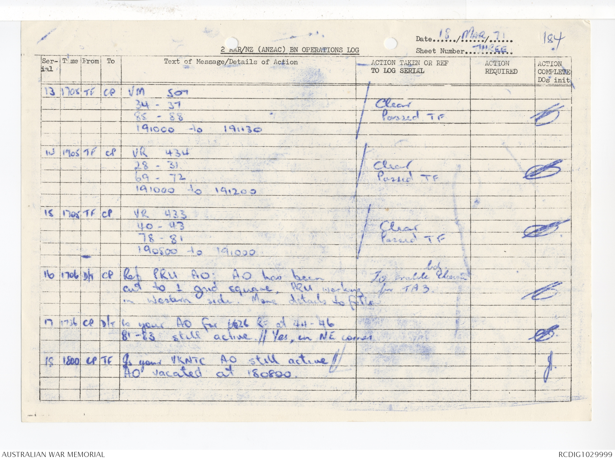 AWM95 7/2/78 - 1-31 March 1971, Duty Officer's log continued