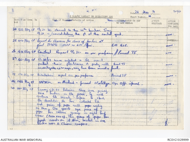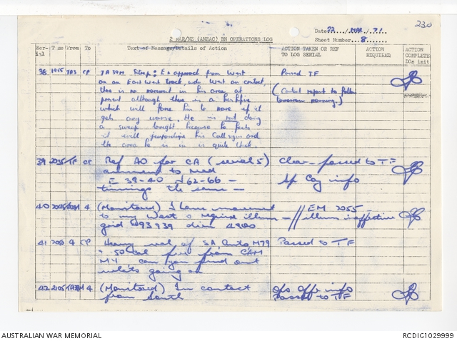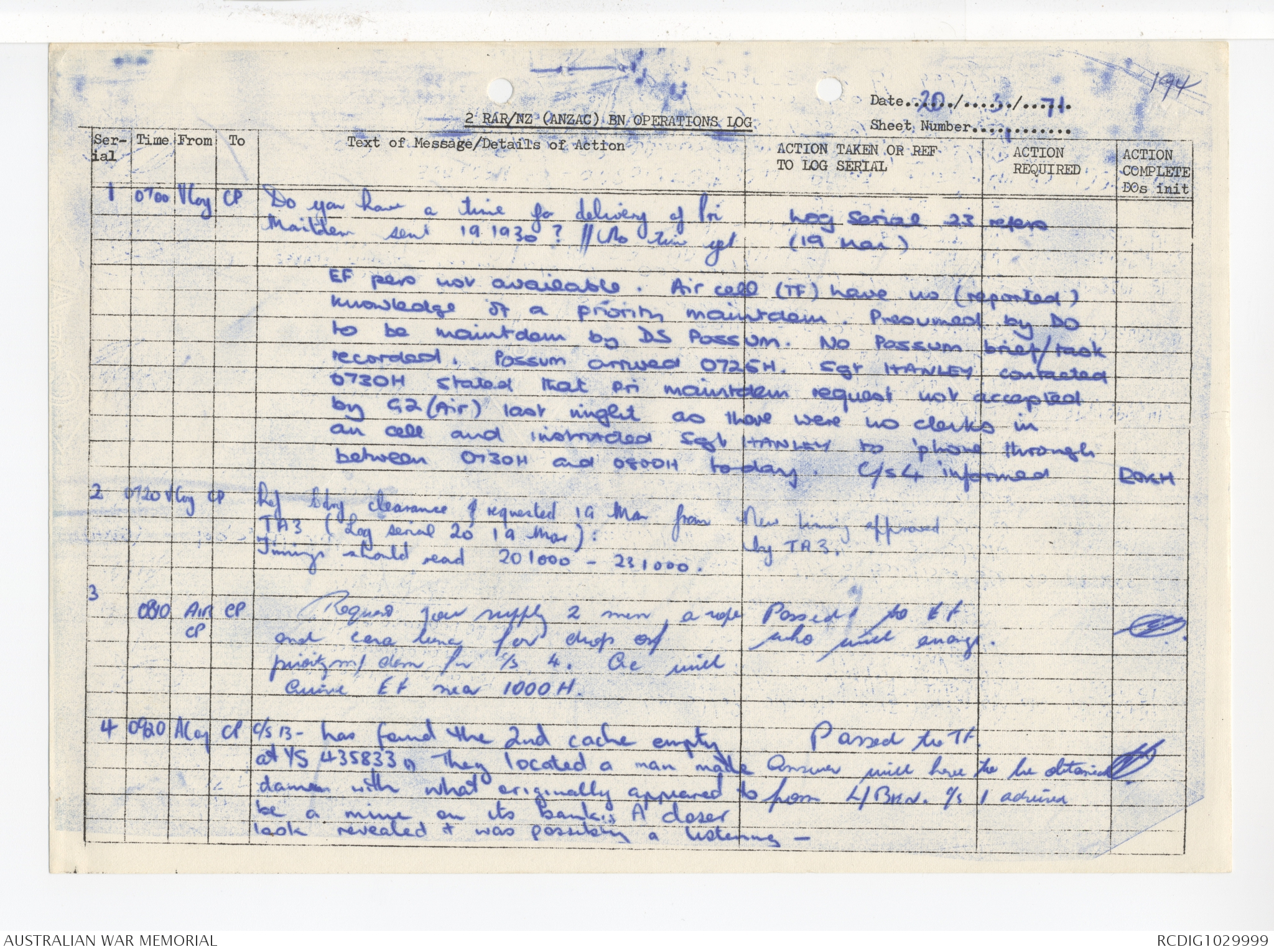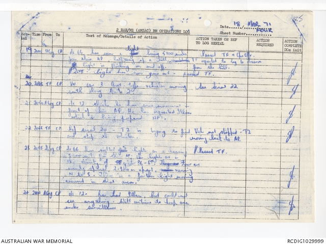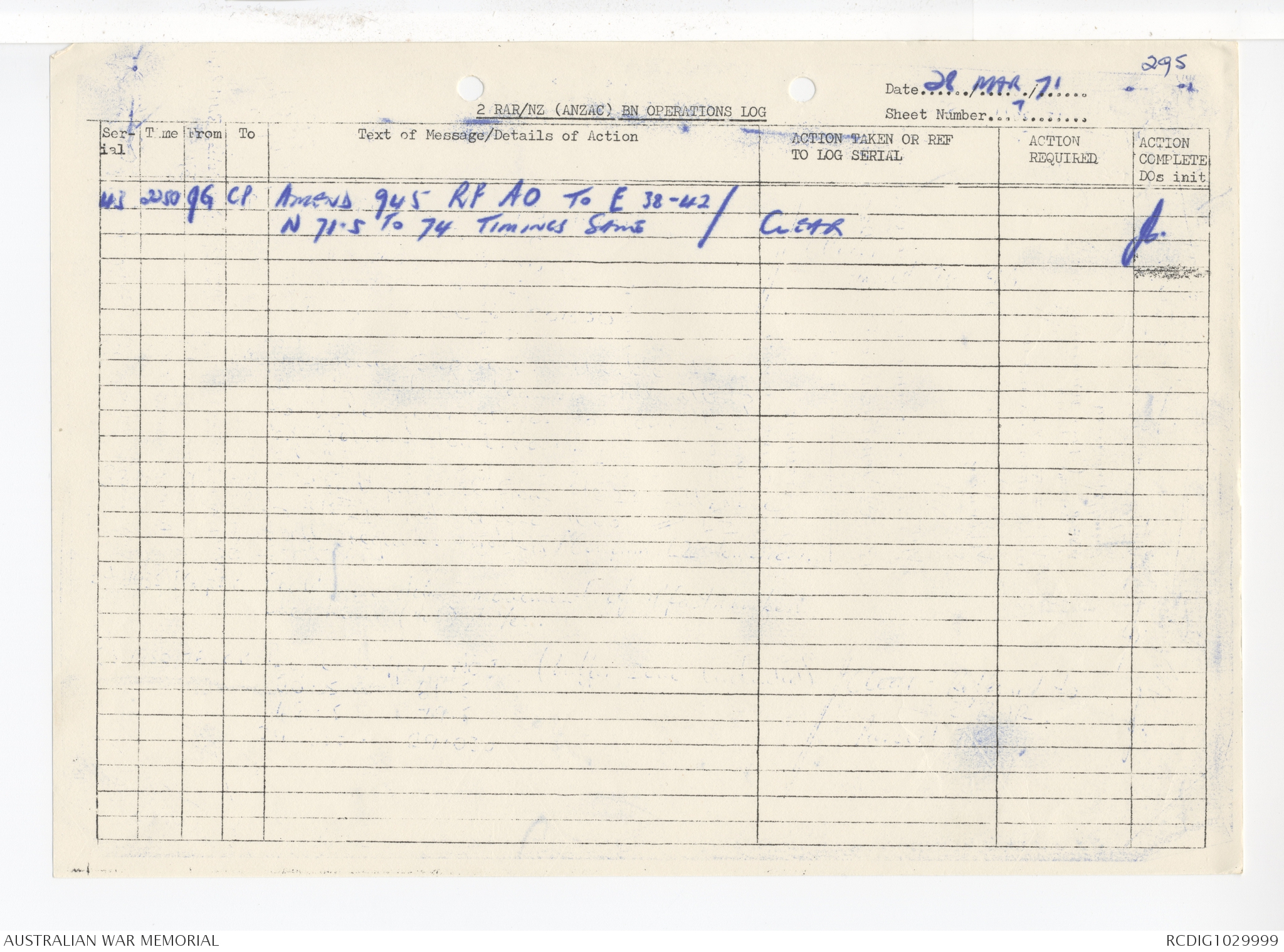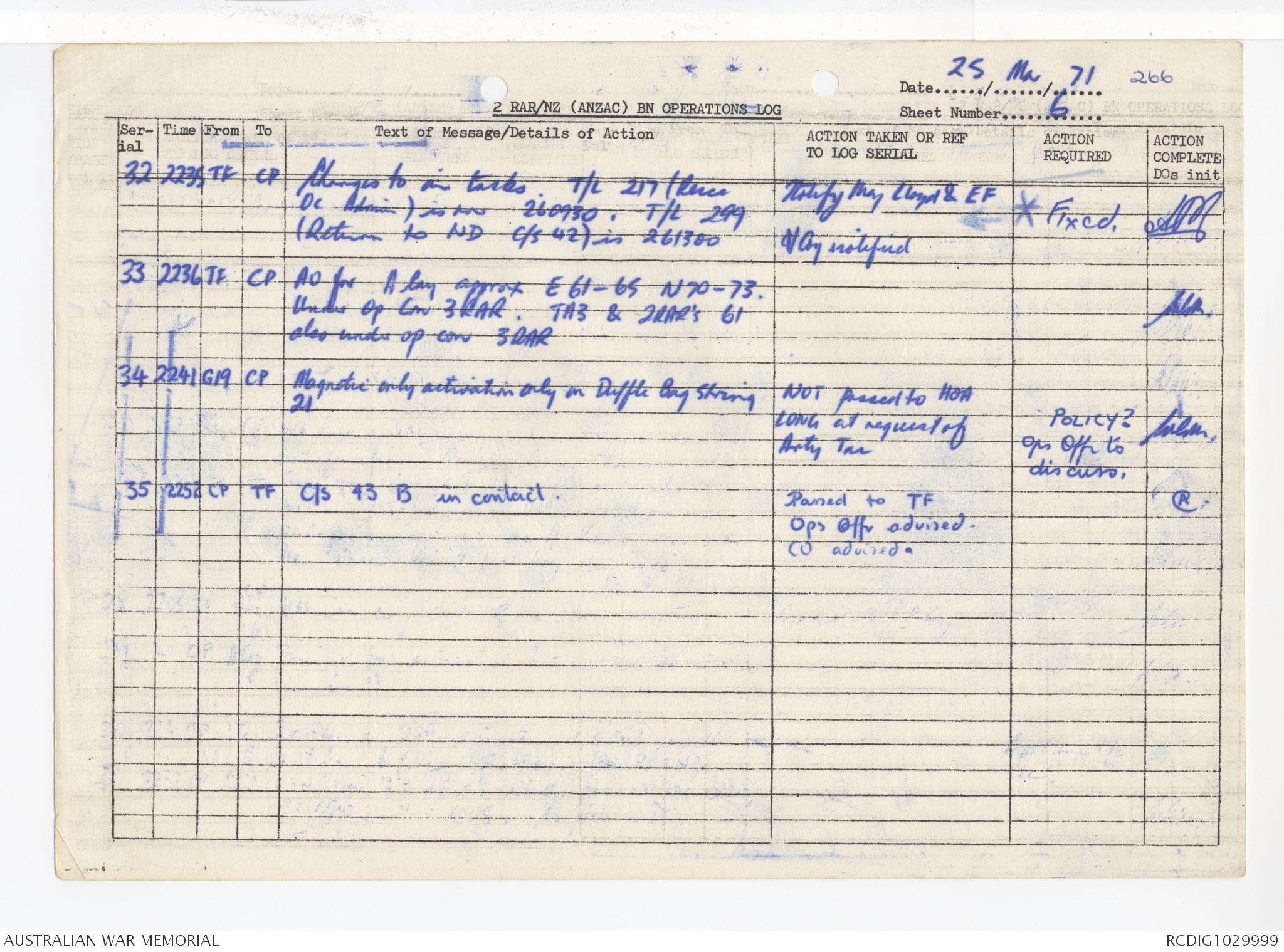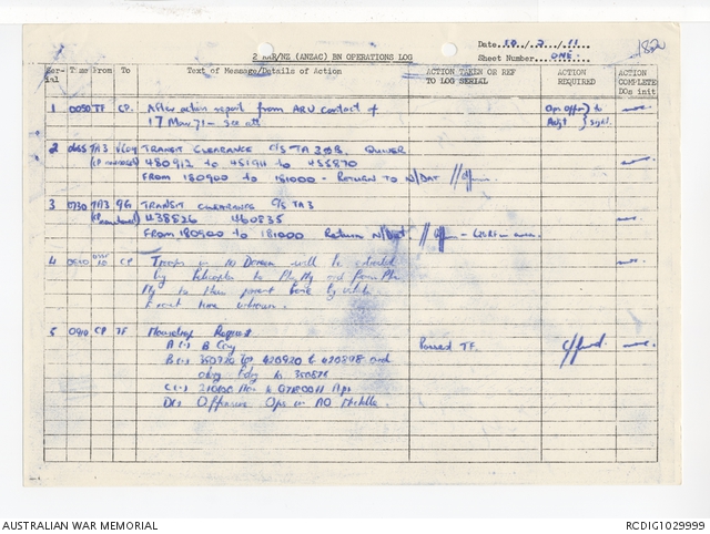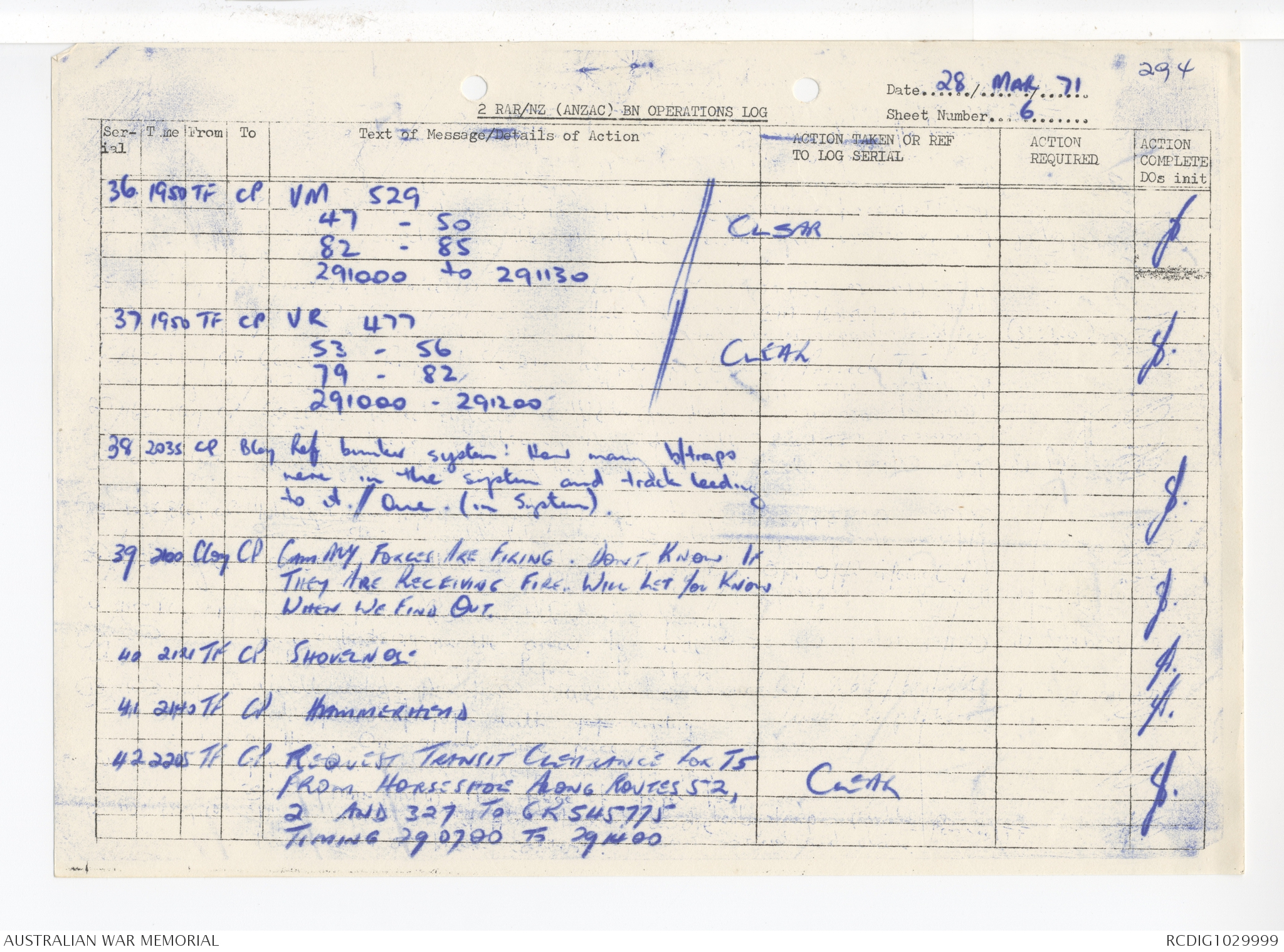 AWM95 7/2/78 - 1-31 March 1971, Duty Officer's log continued