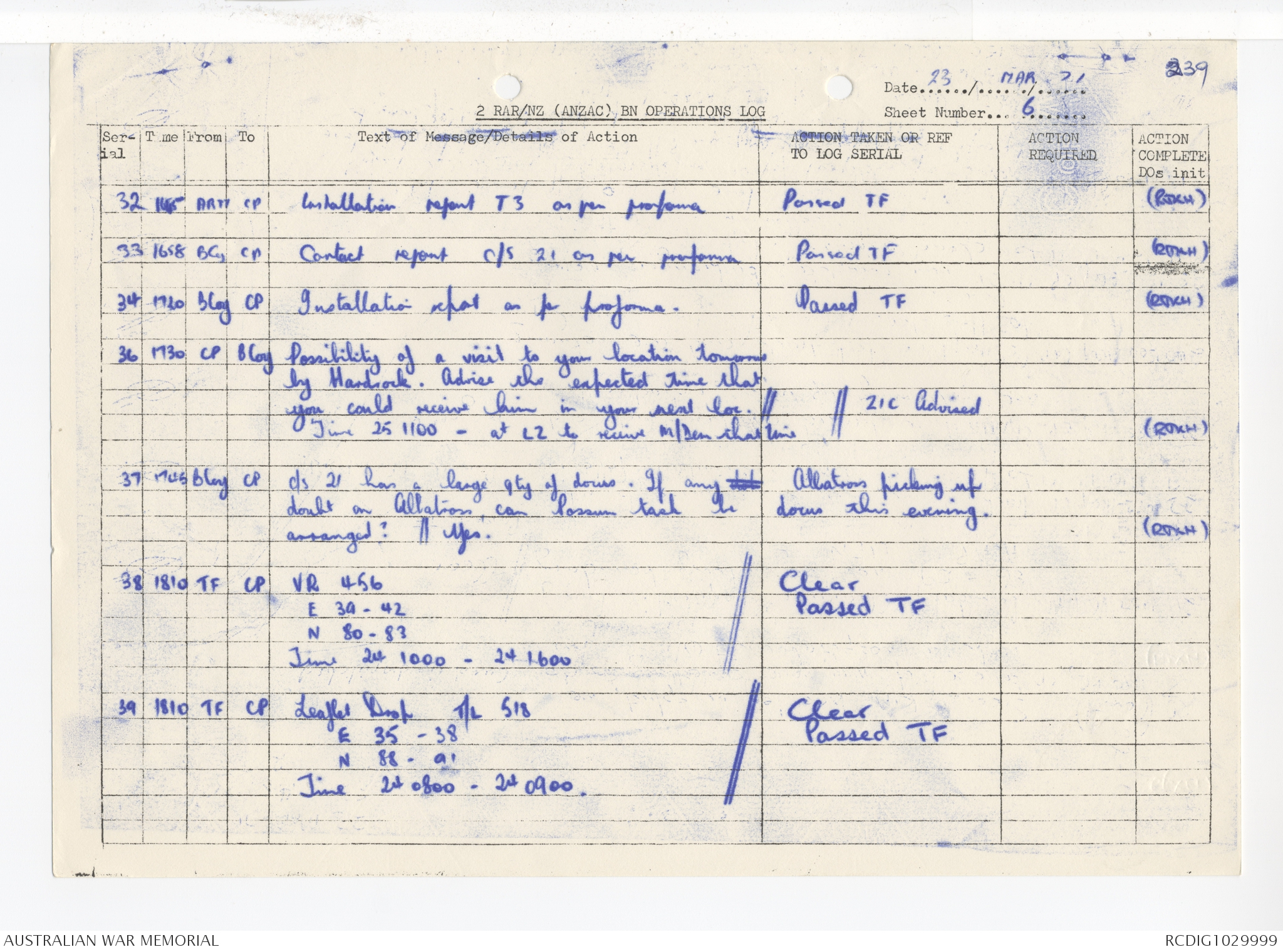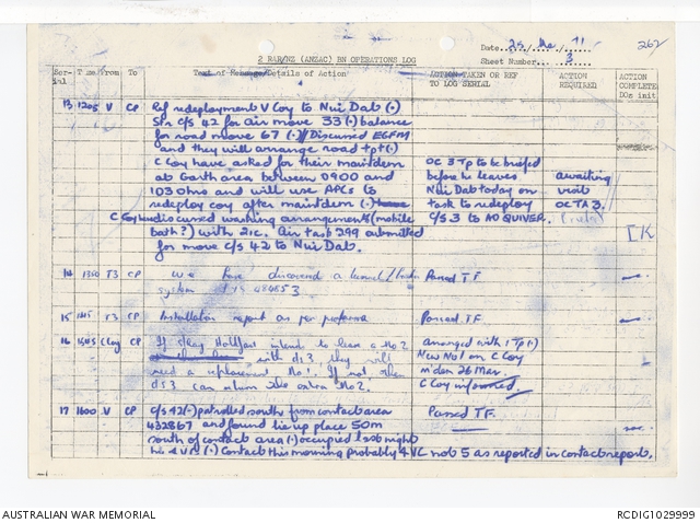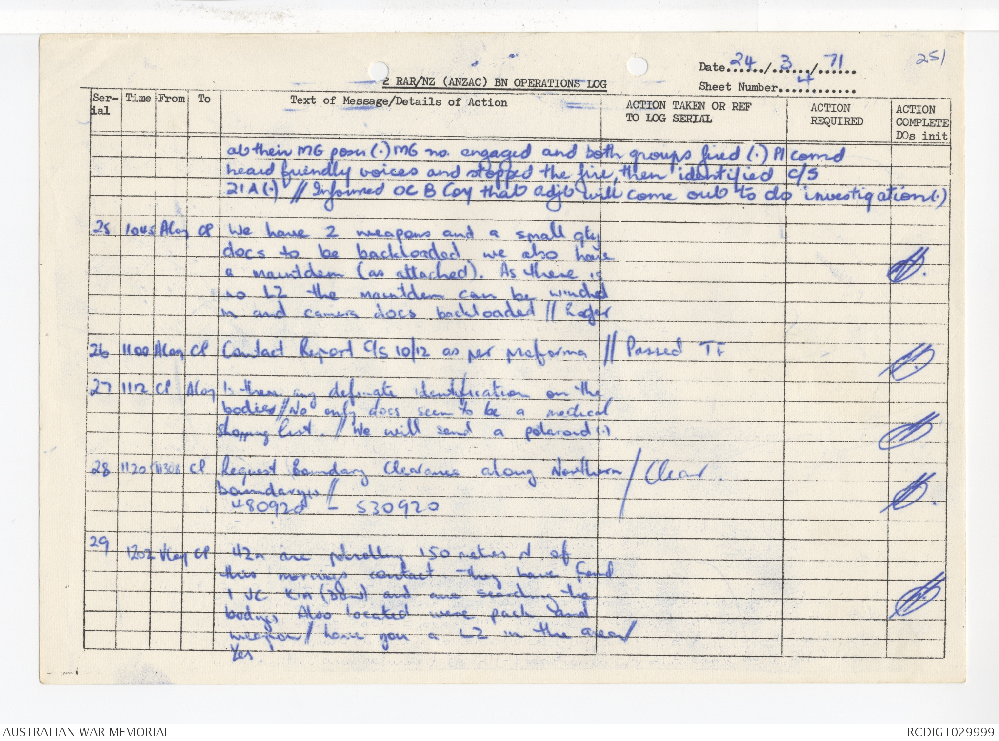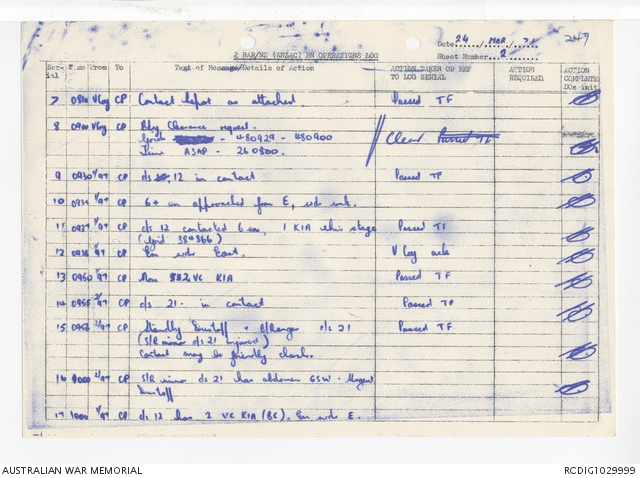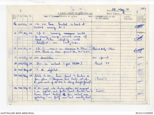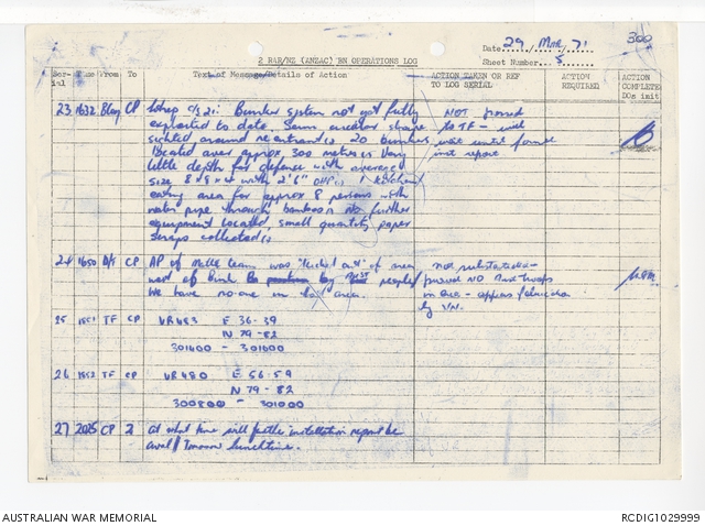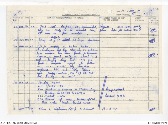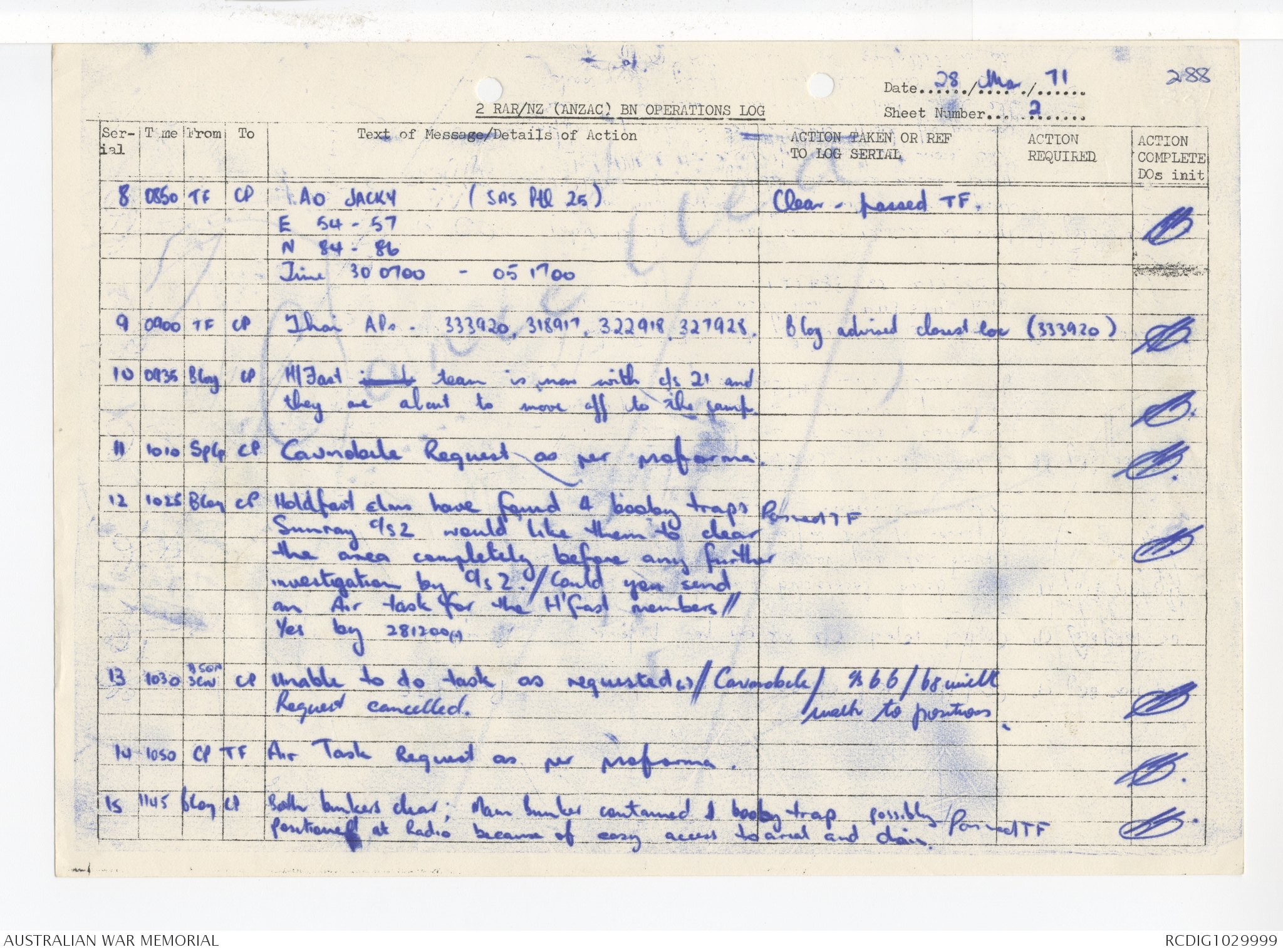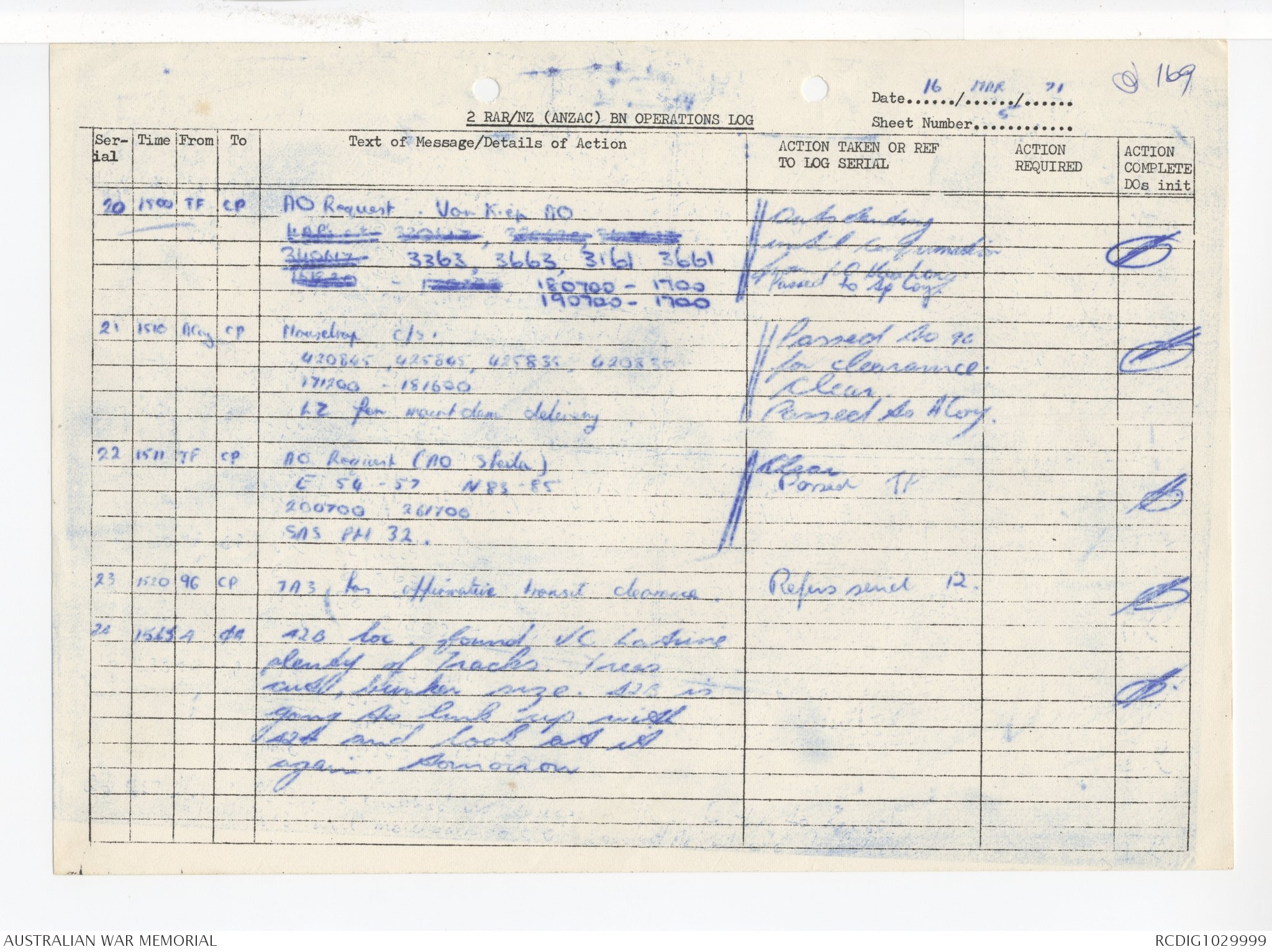 AWM95 7/2/78 - 1-31 March 1971, Duty Officer's log continued