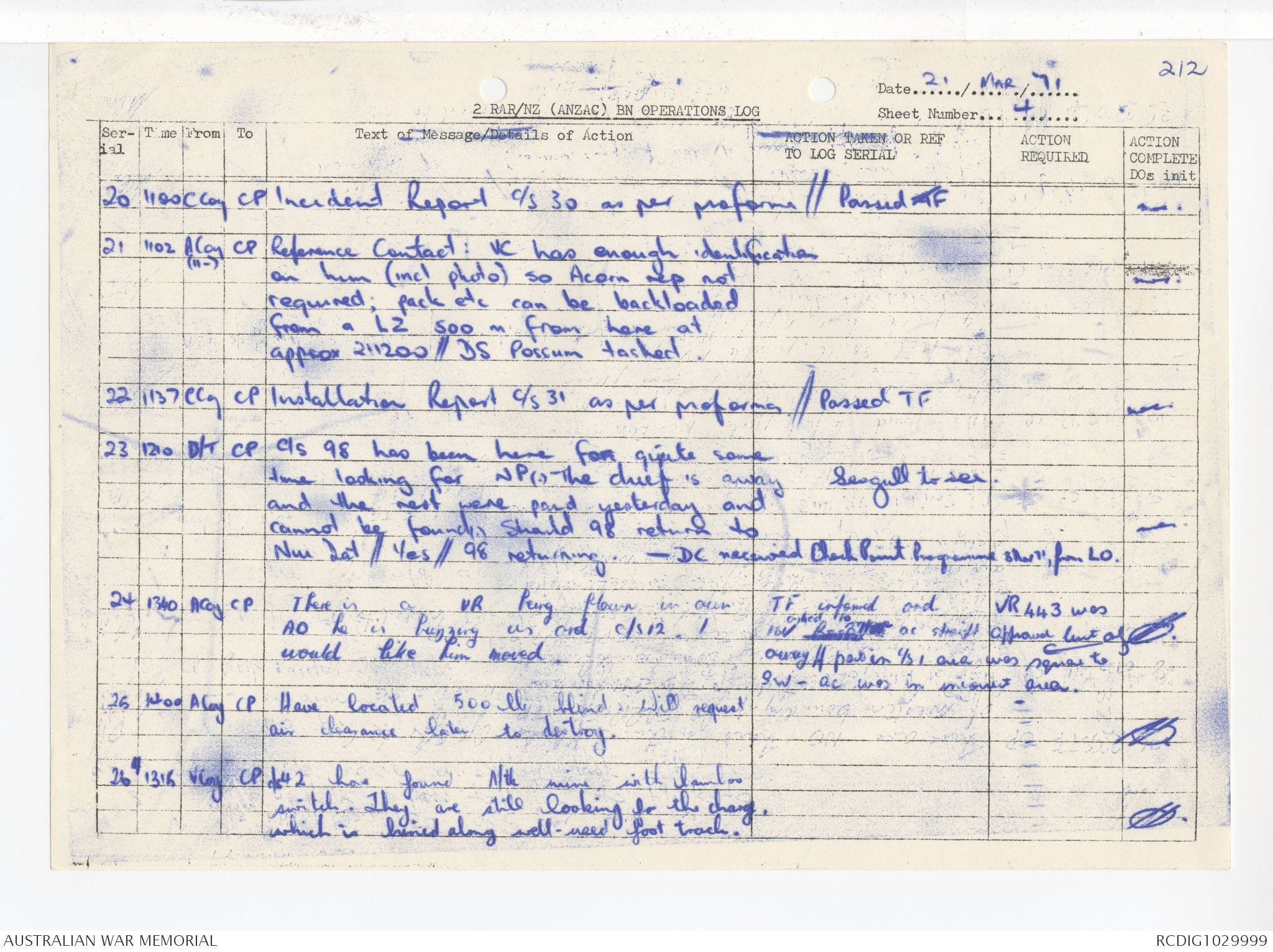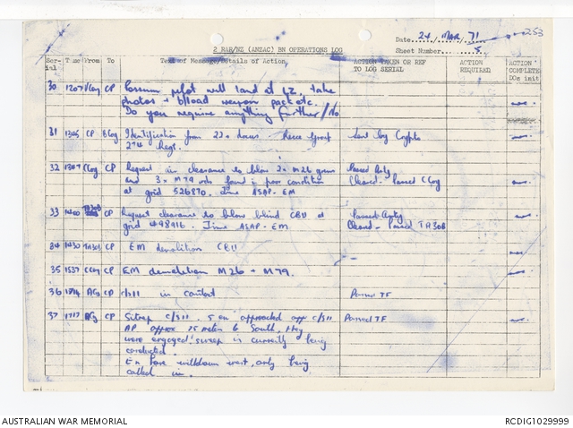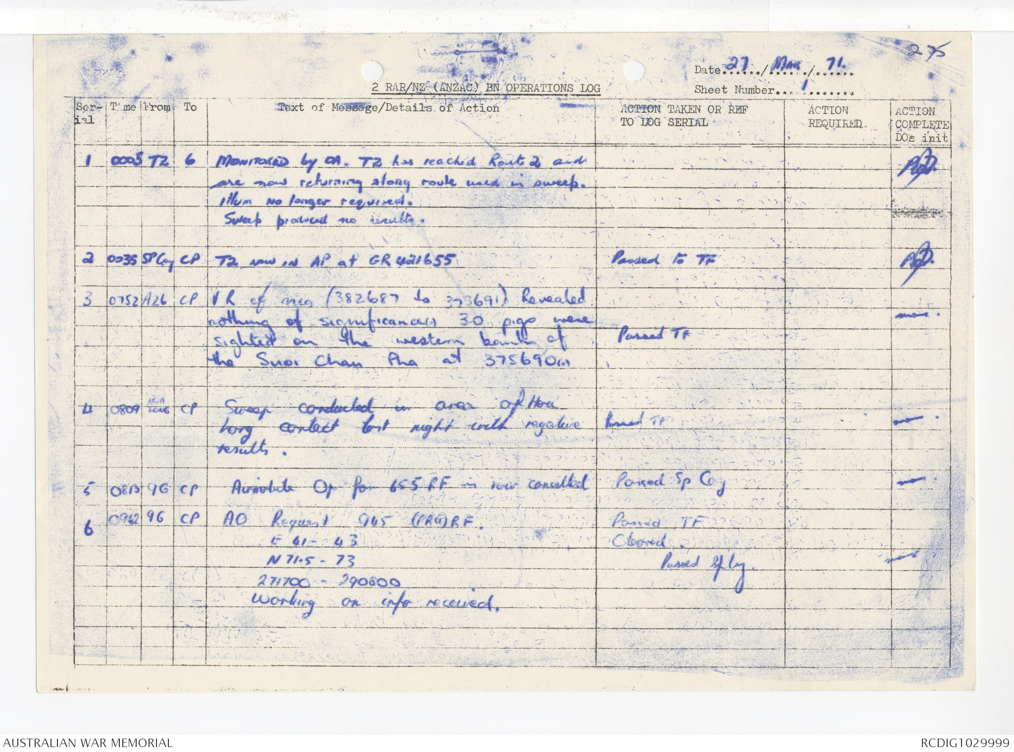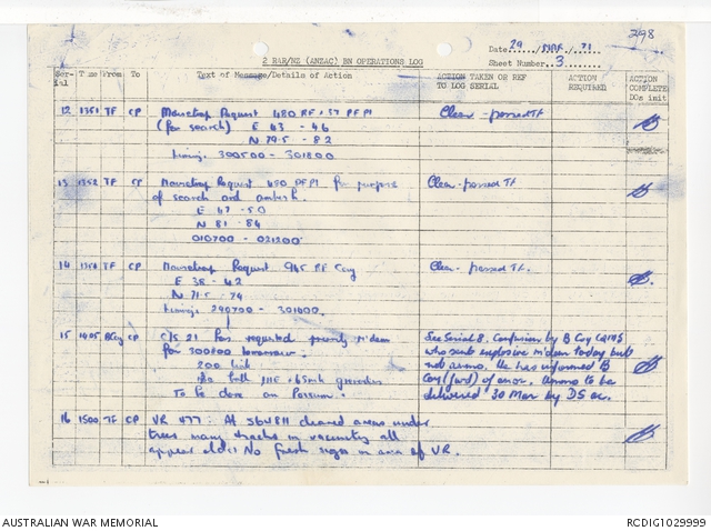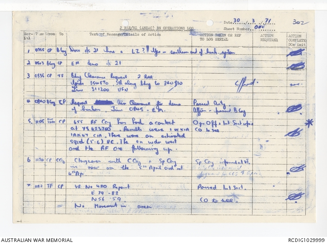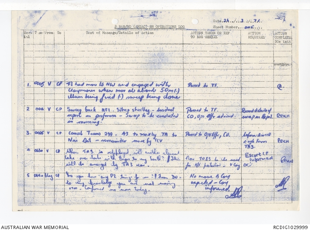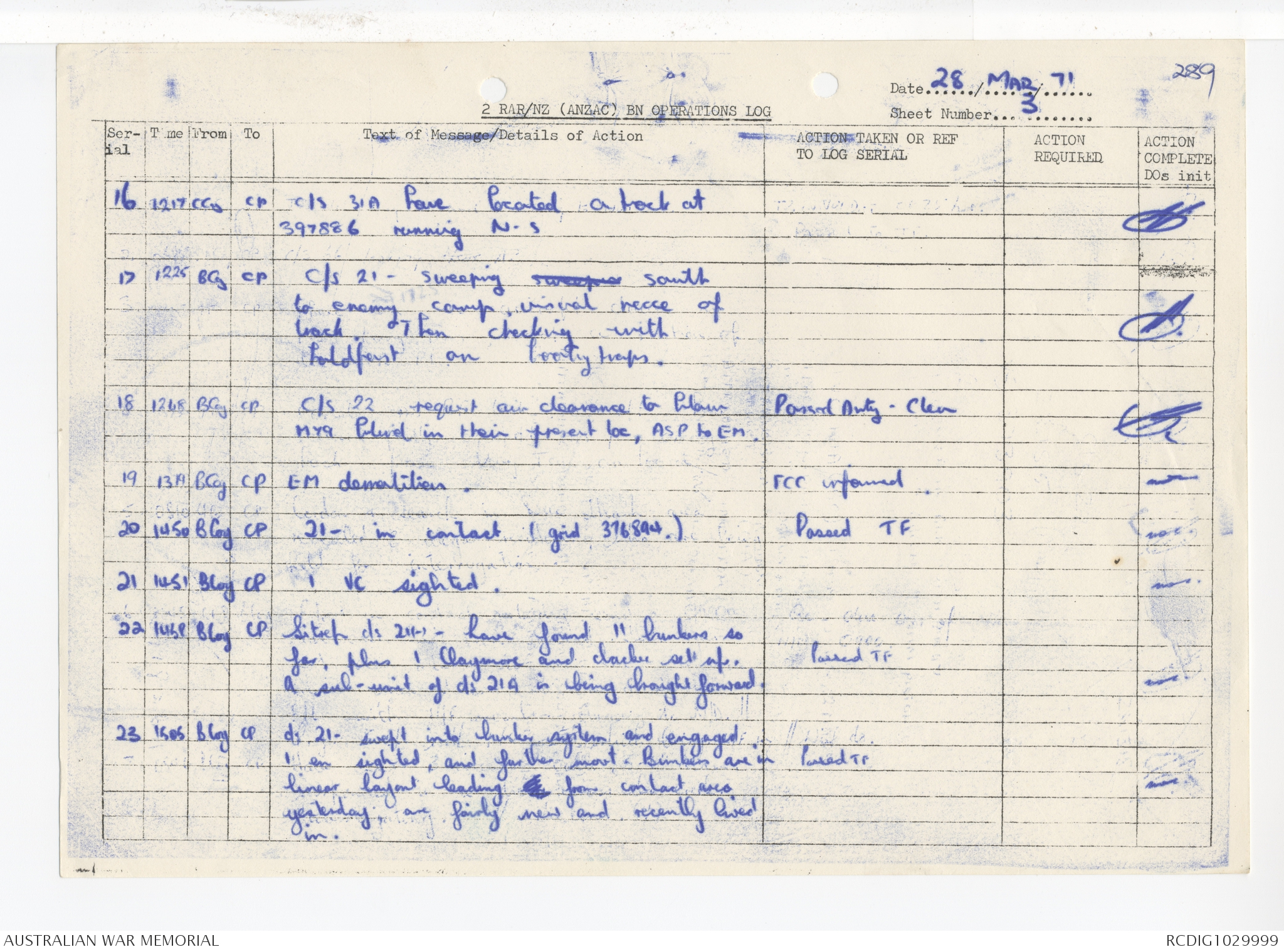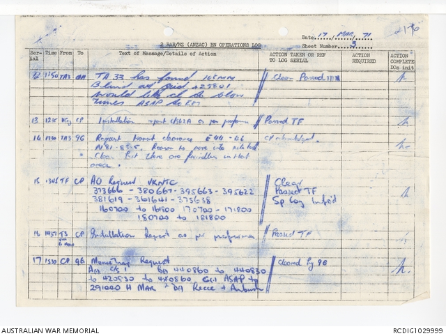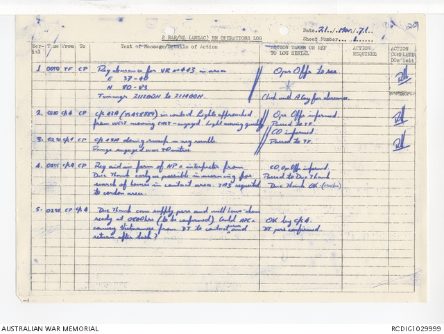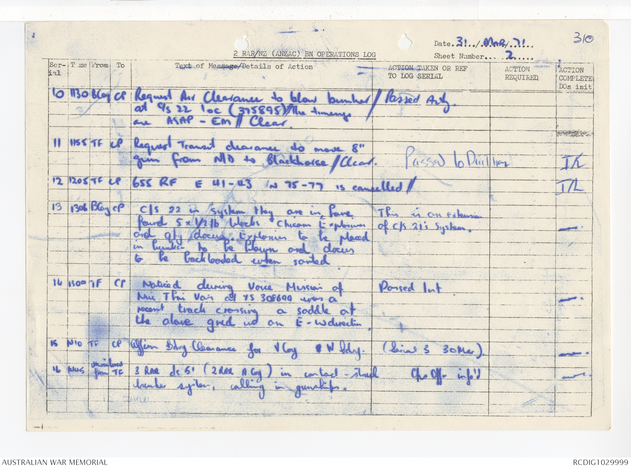 AWM95 7/2/78 - 1-31 March 1971, Duty Officer's log continued