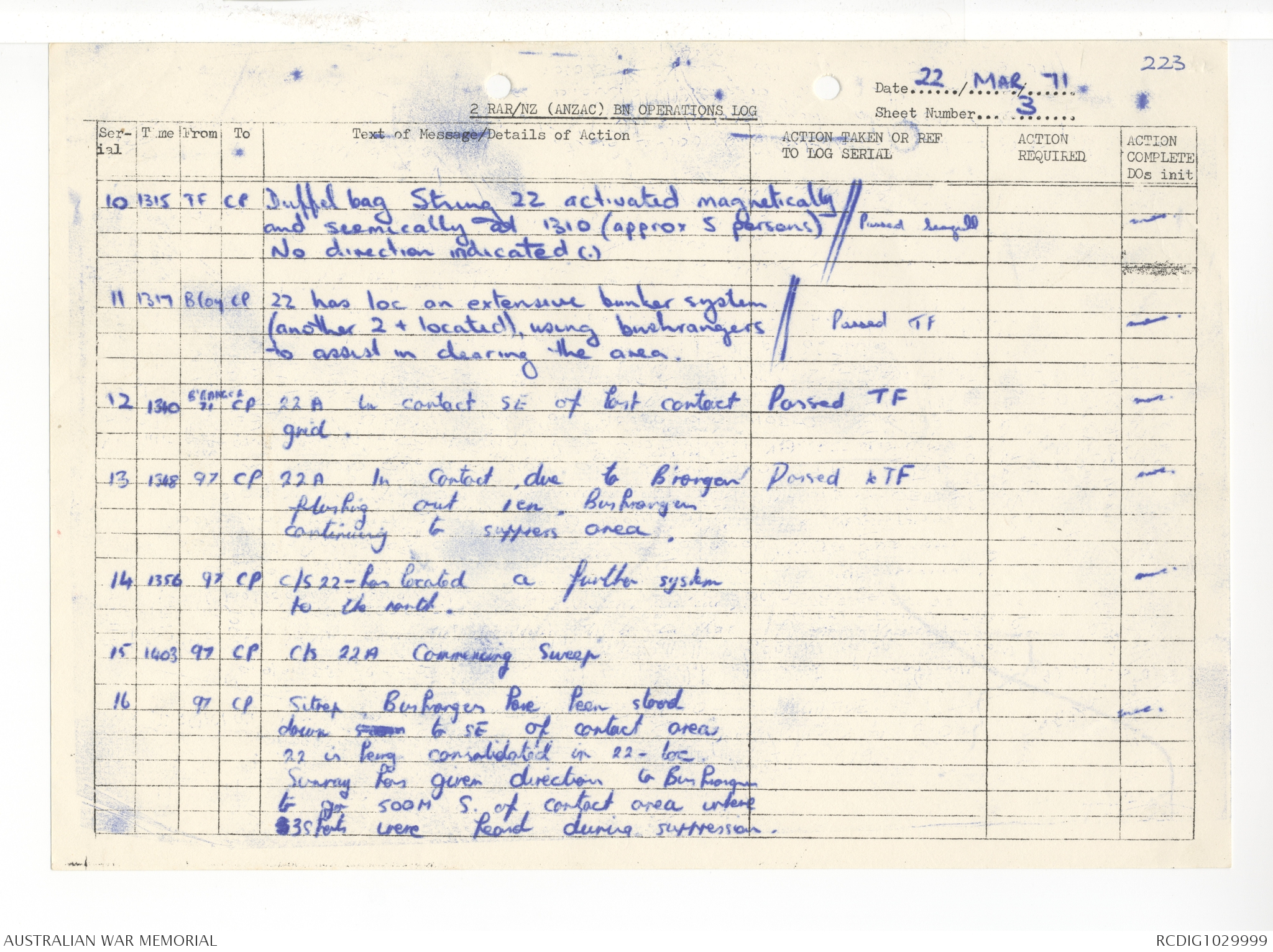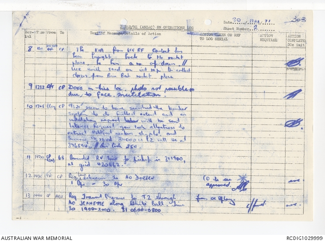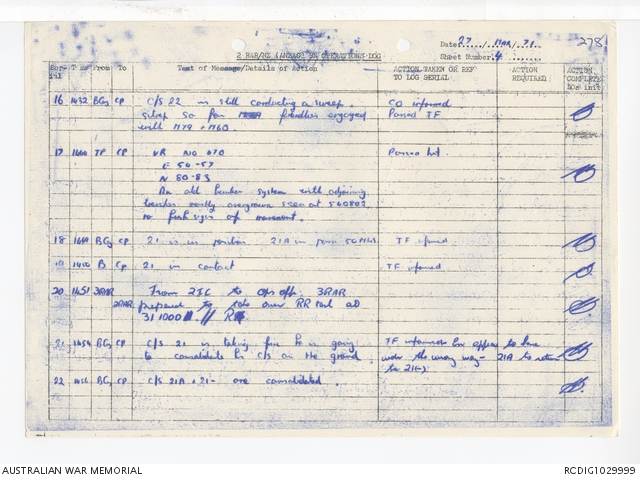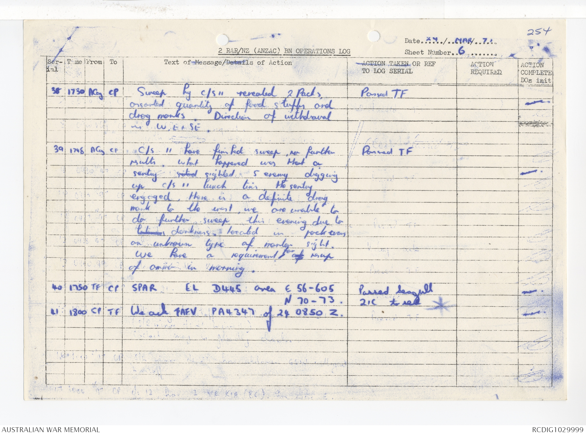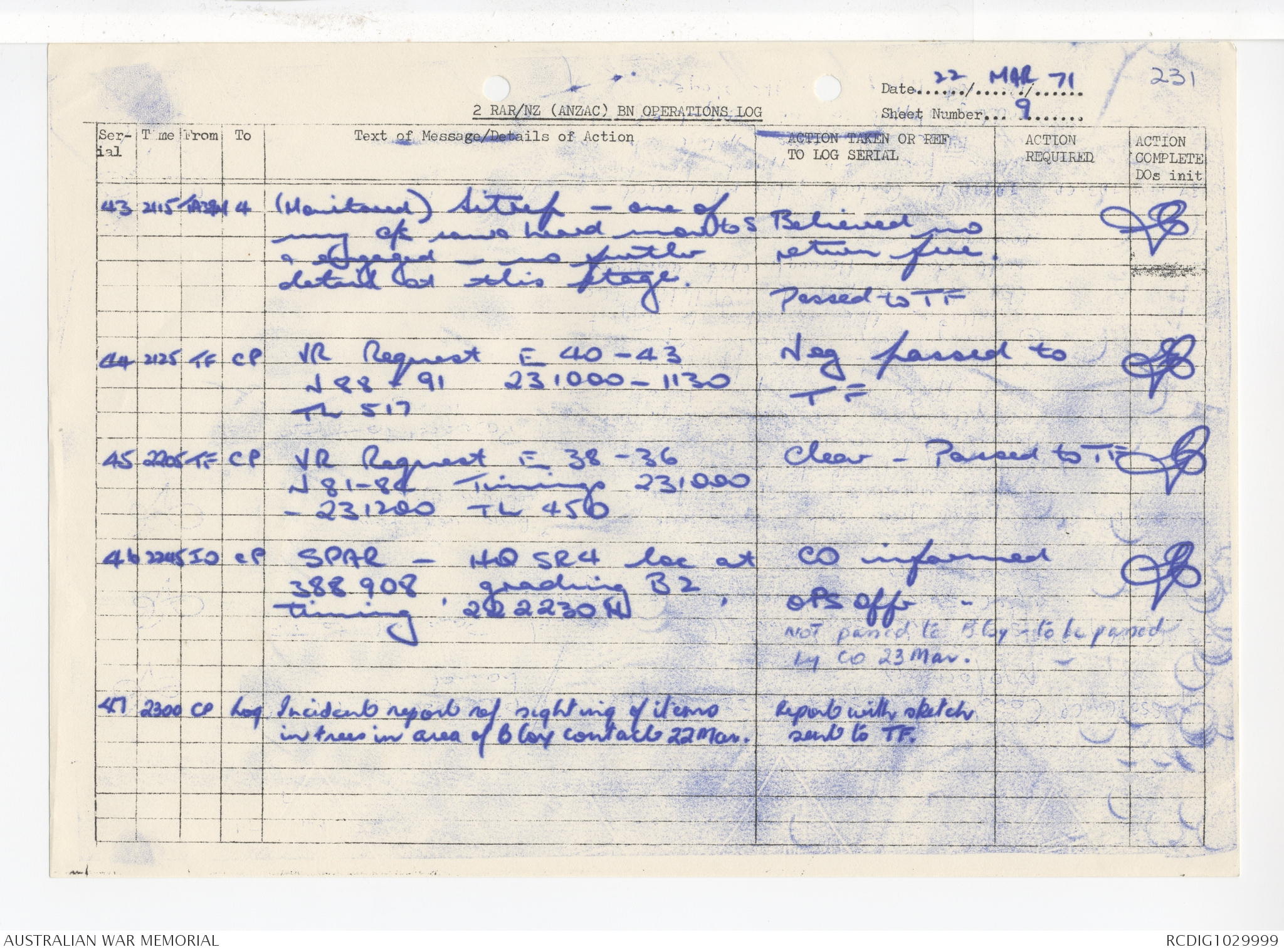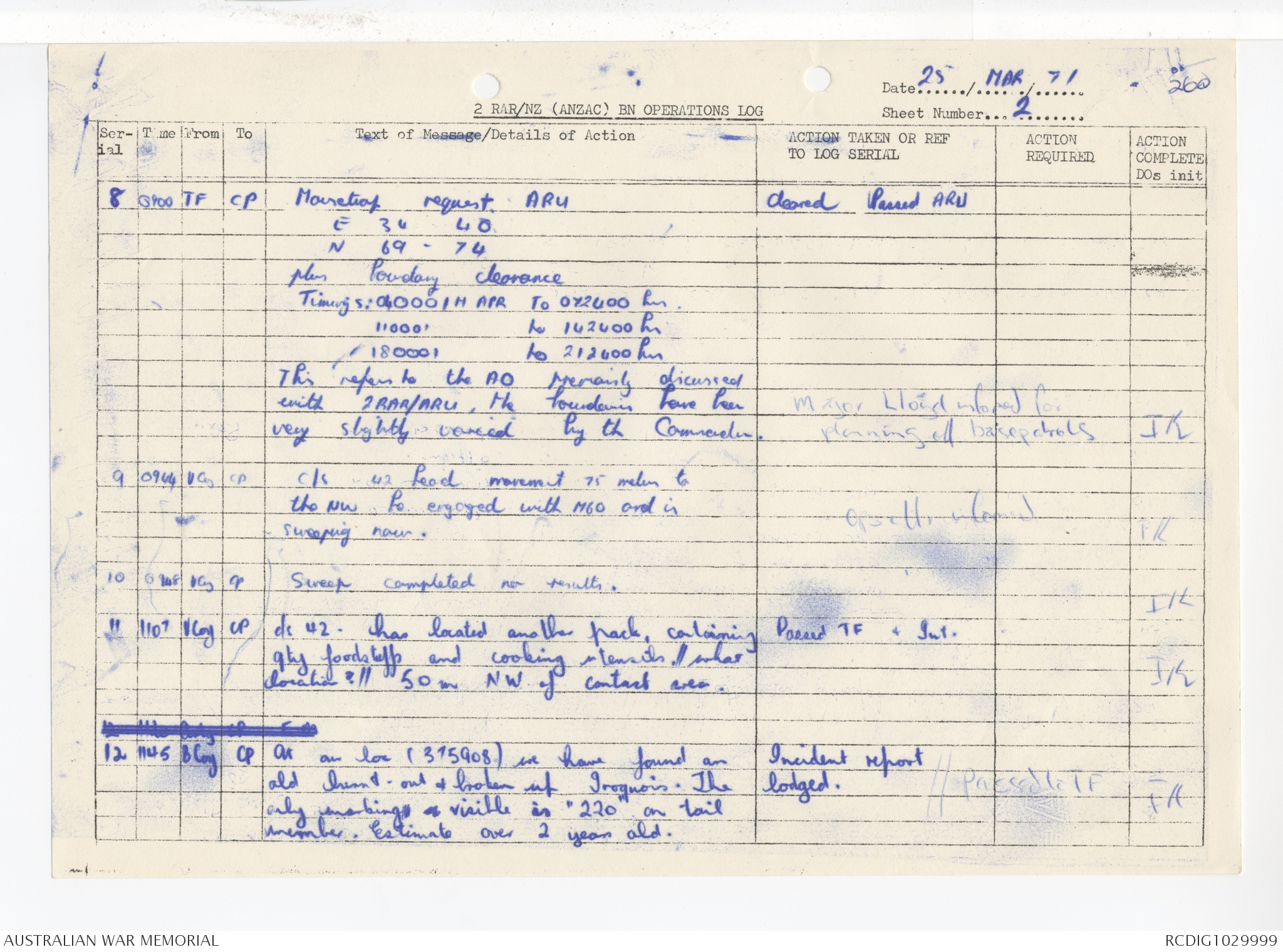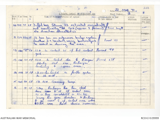 AWM95 7/2/78 - 1-31 March 1971, Duty Officer's log continued