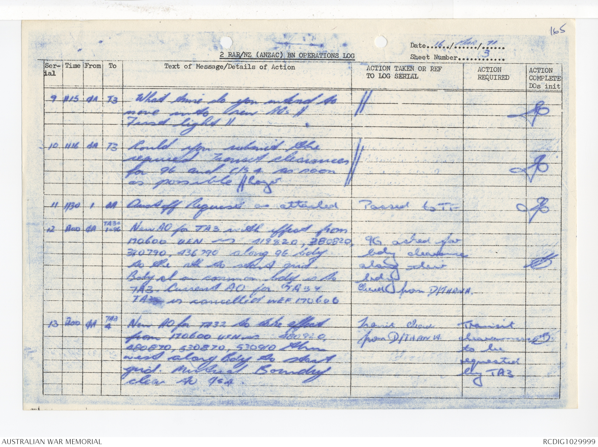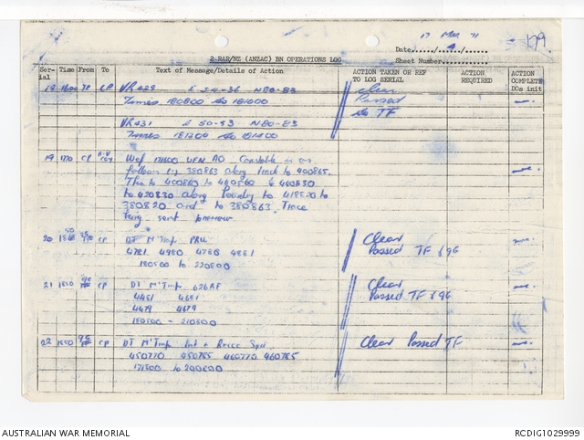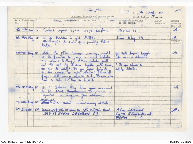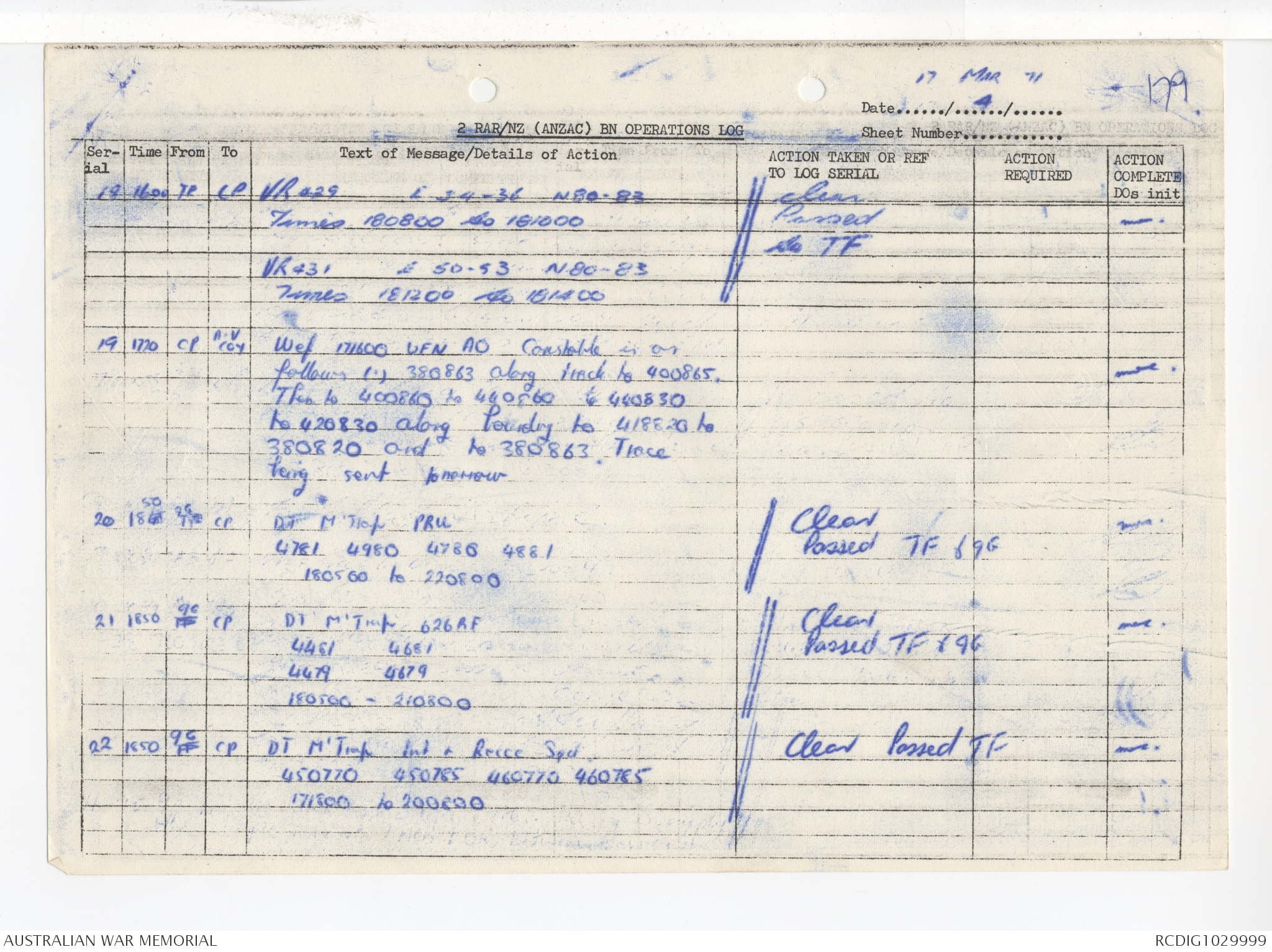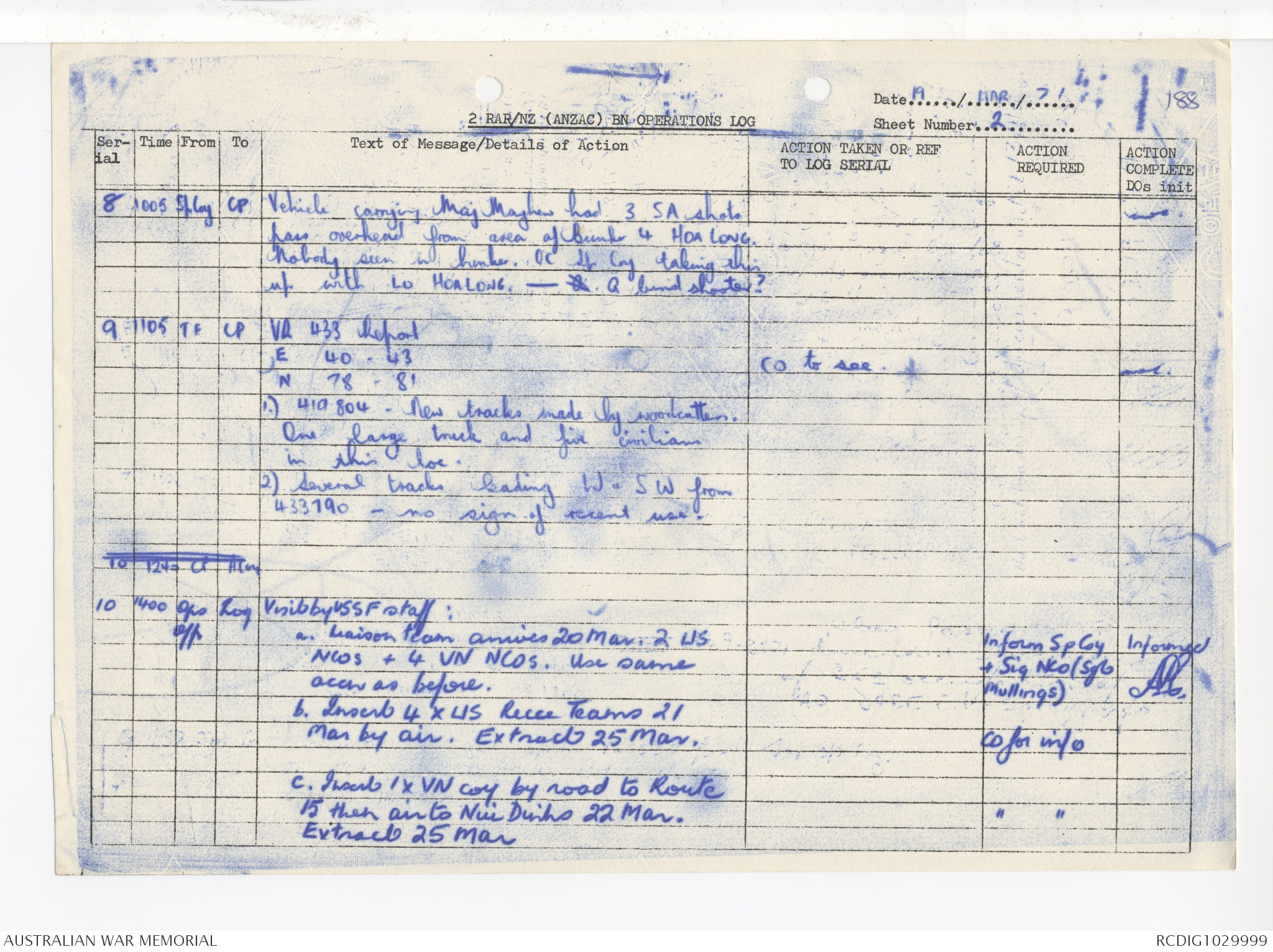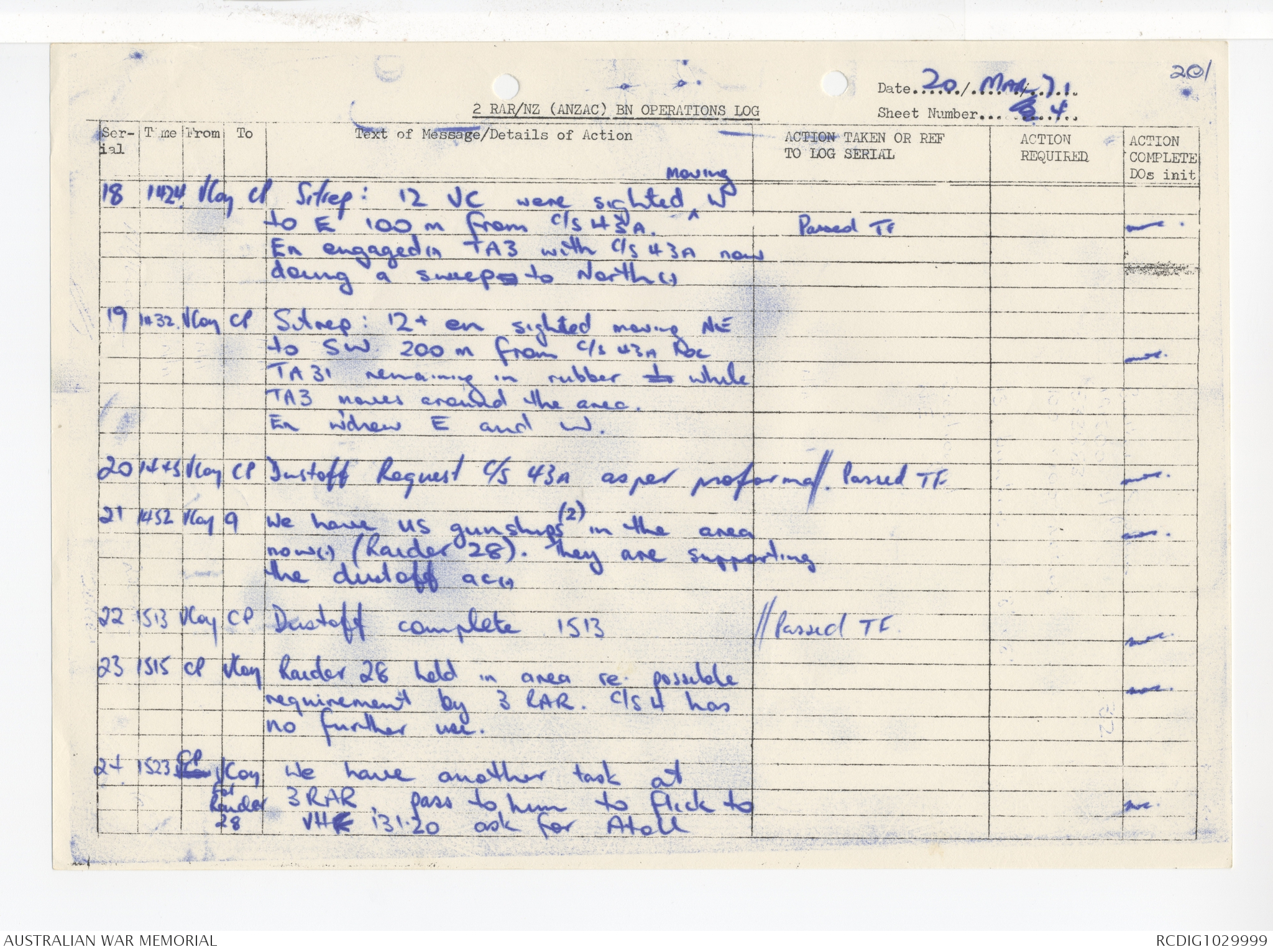 AWM95 7/2/78 - 1-31 March 1971, Duty Officer's log continued