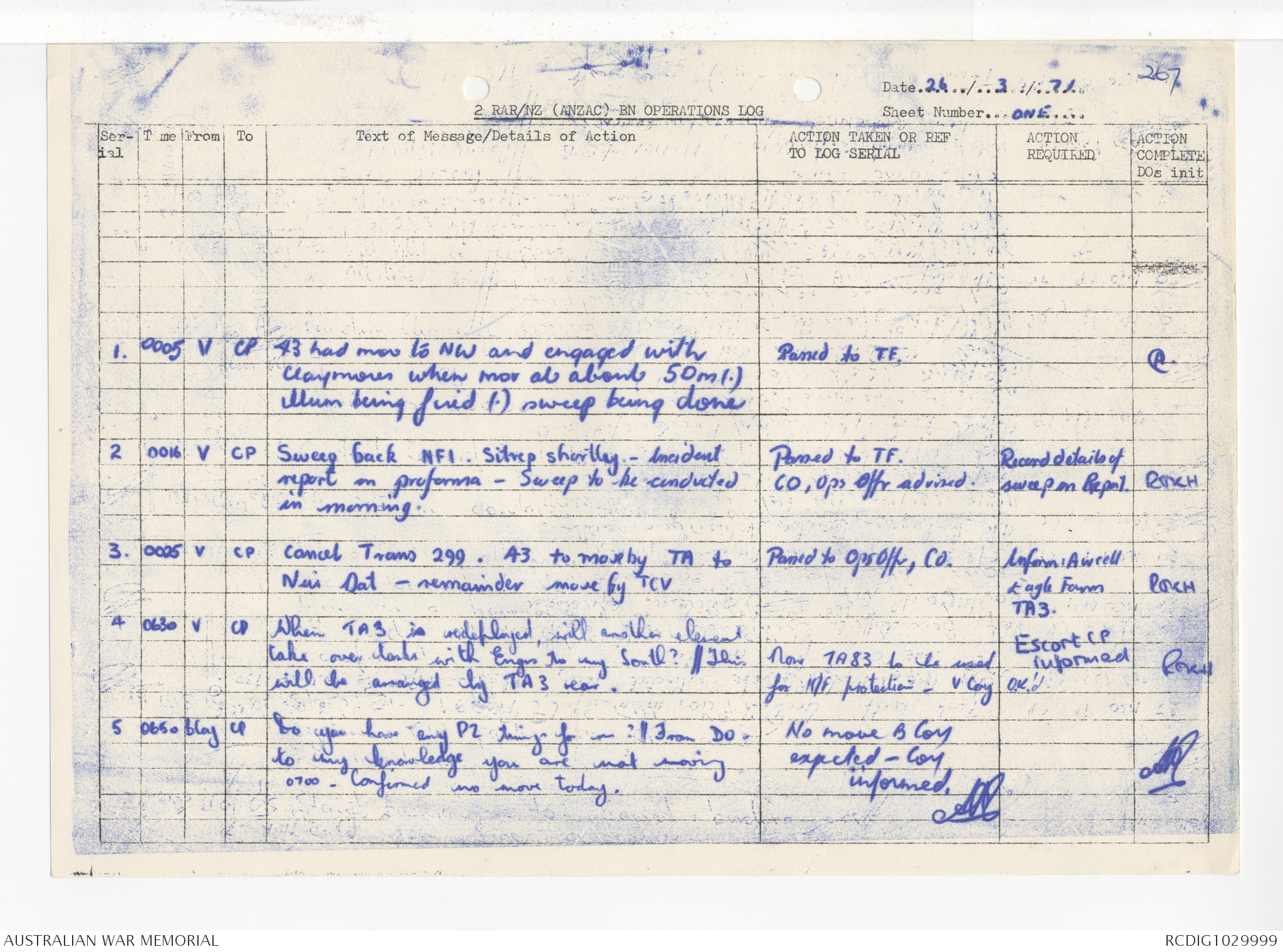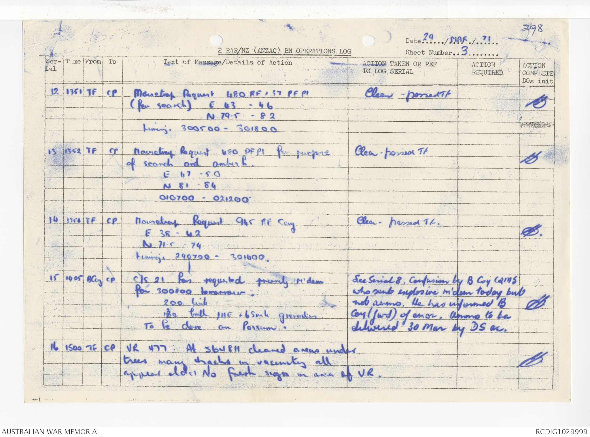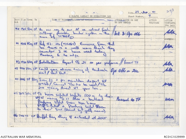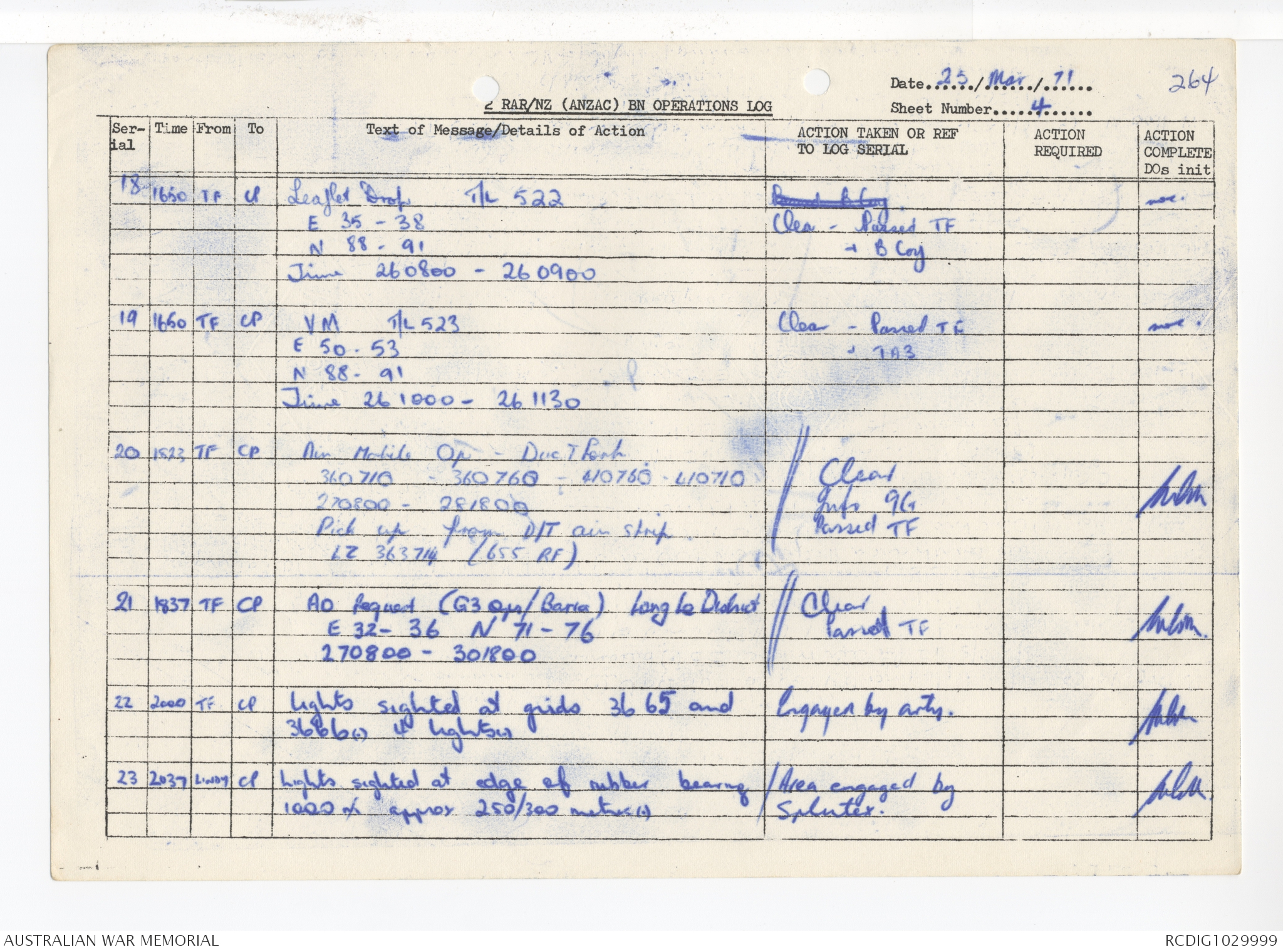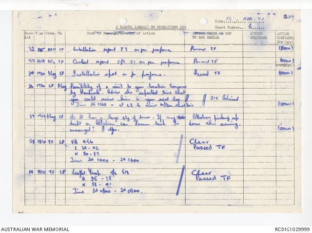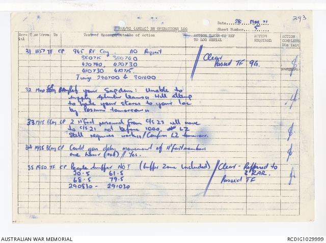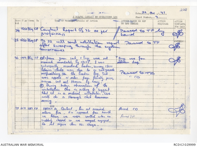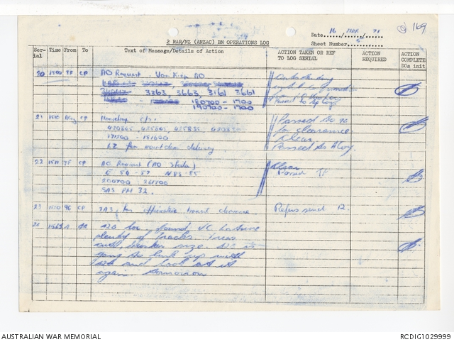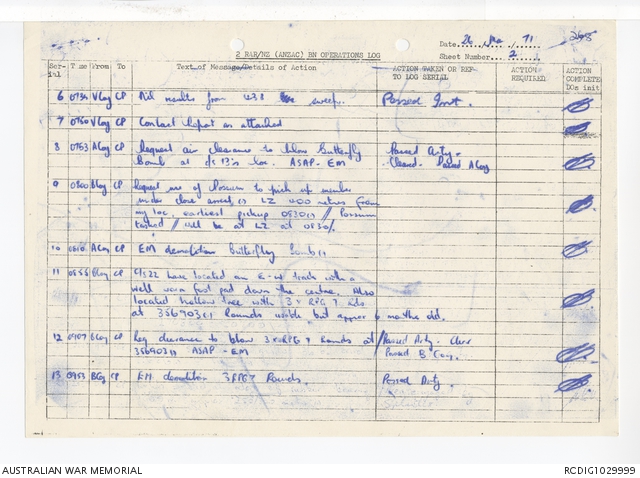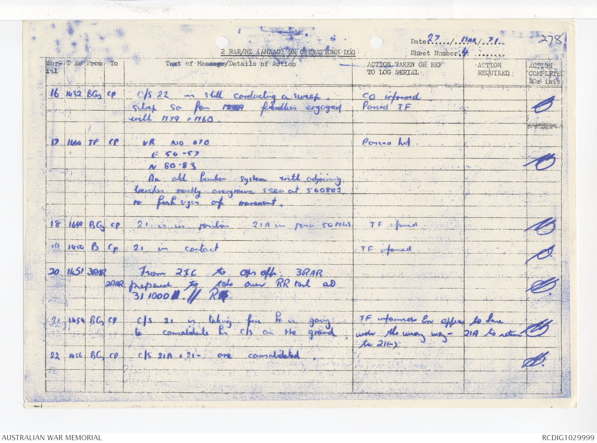 AWM95 7/2/78 - 1-31 March 1971, Duty Officer's log continued