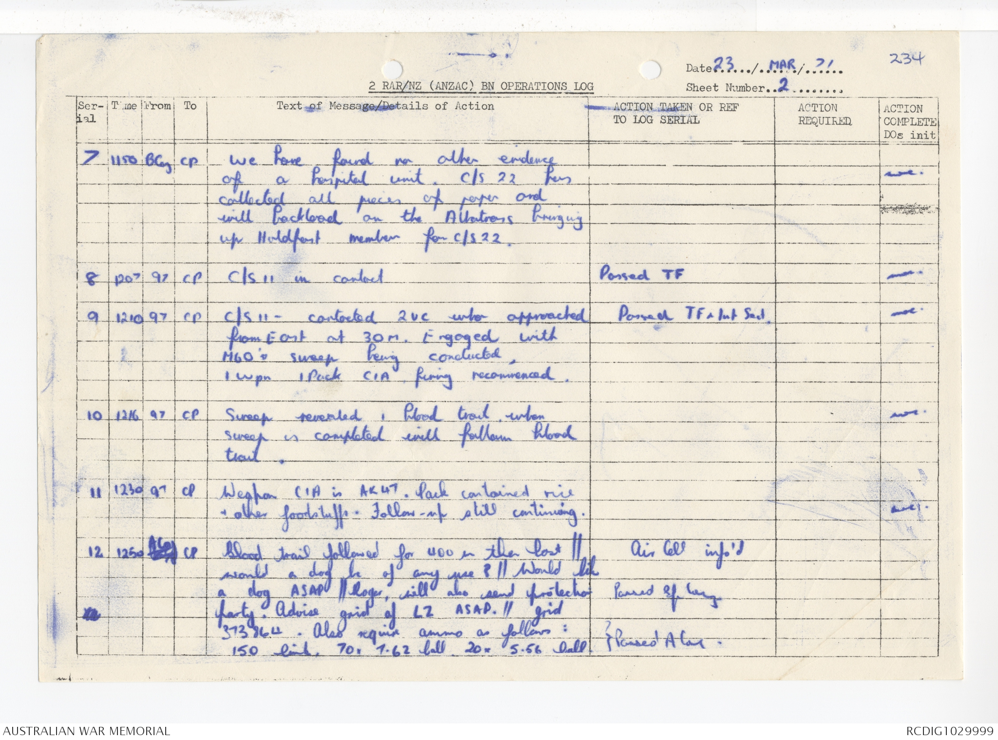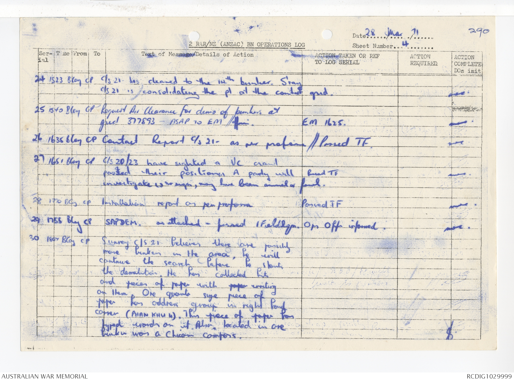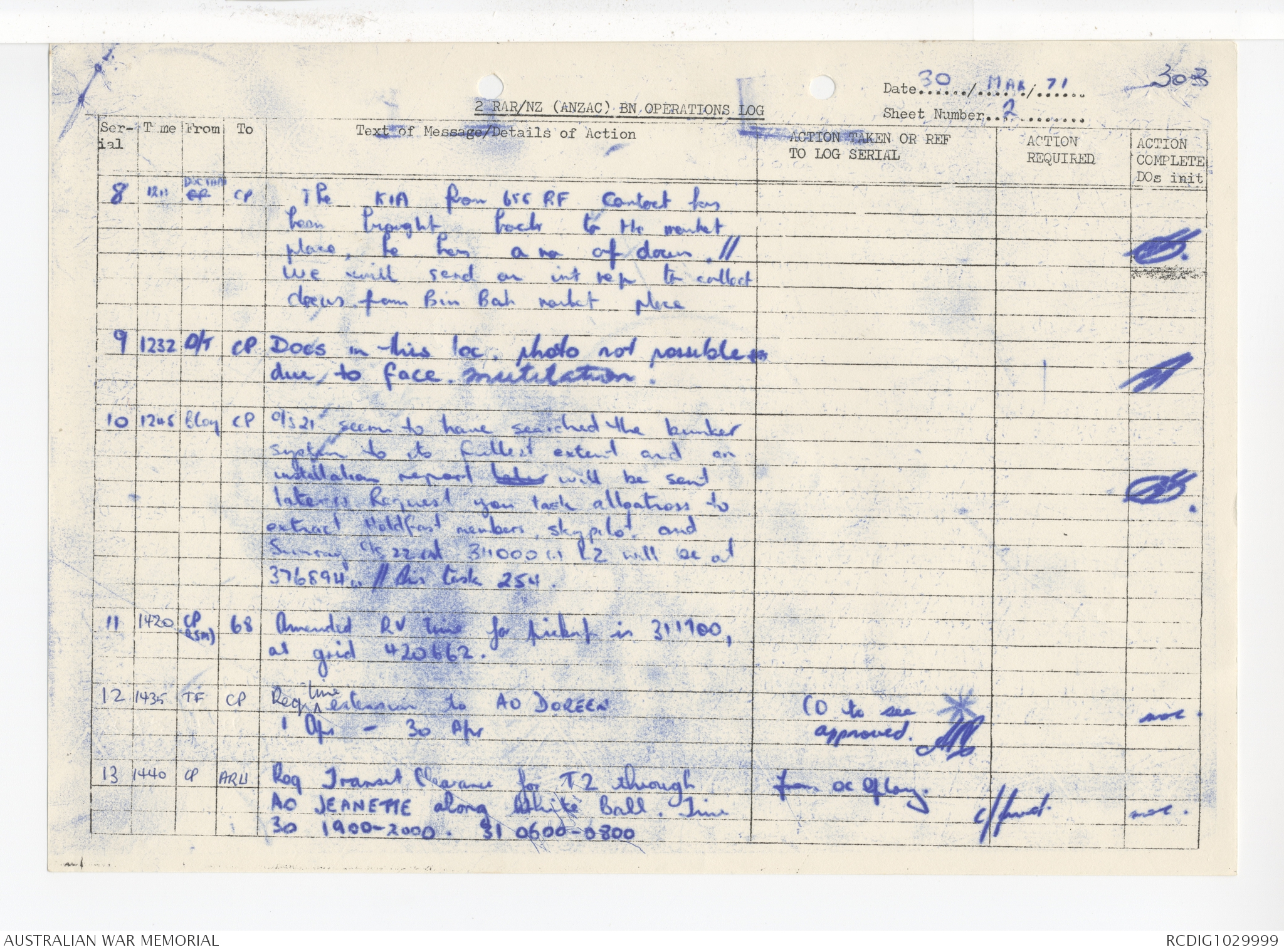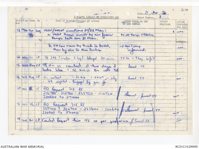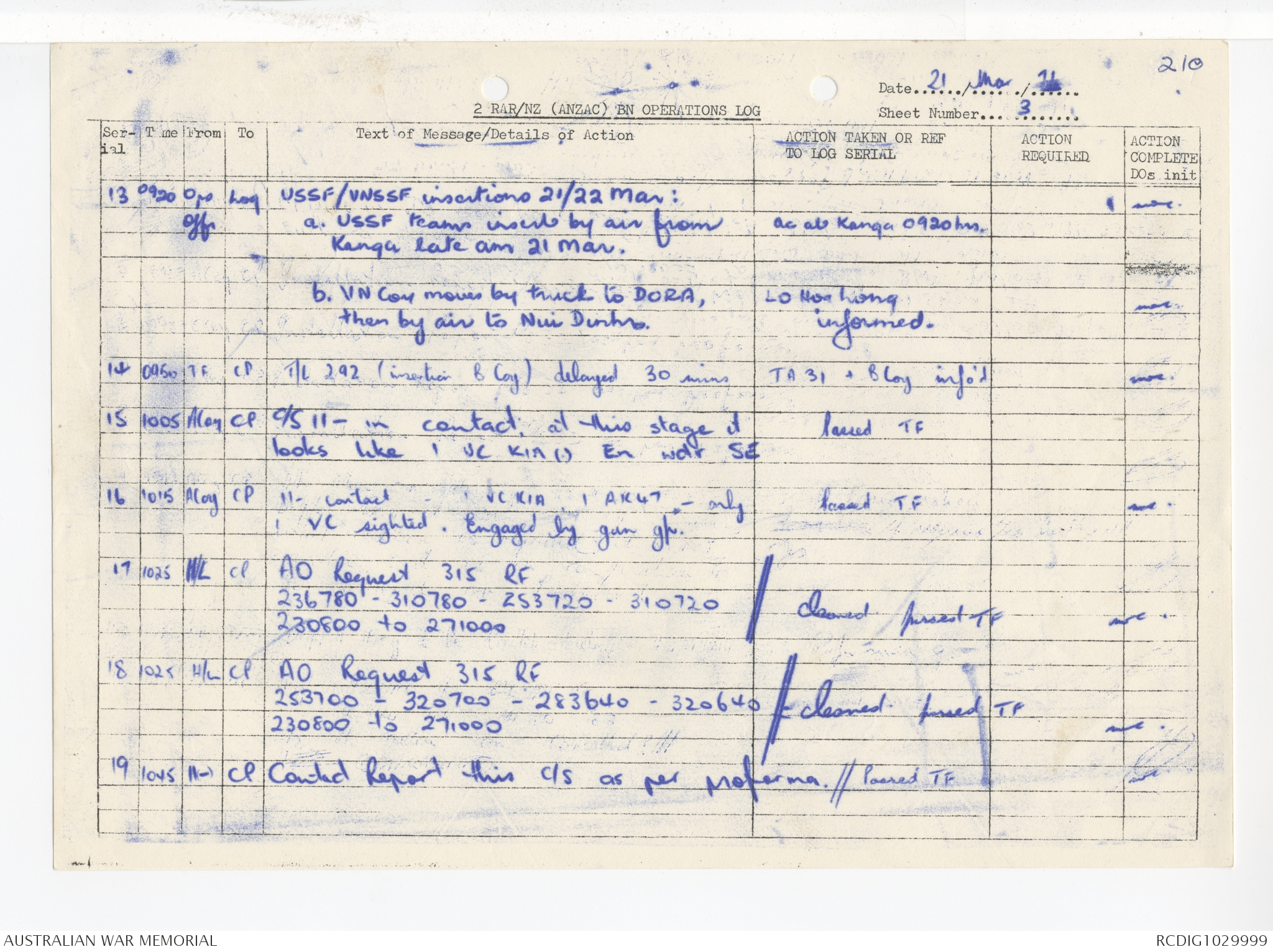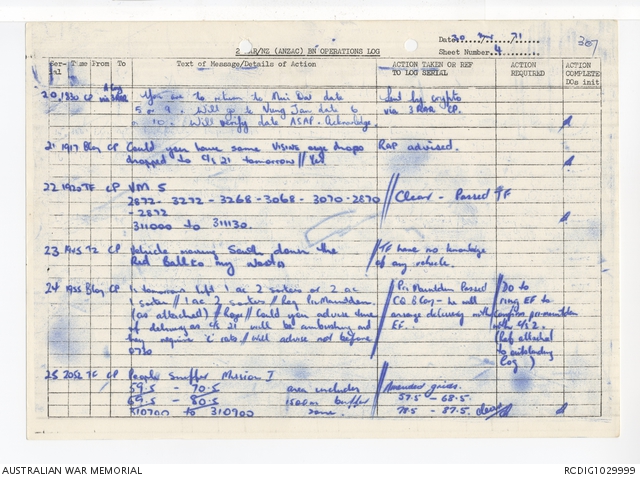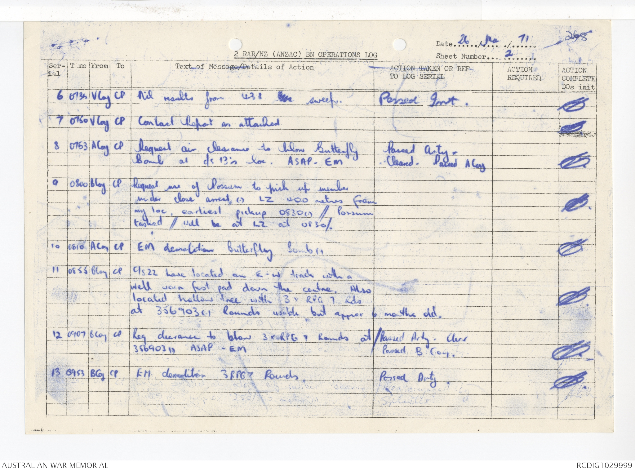 AWM95 7/2/78 - 1-31 March 1971, Duty Officer's log continued
