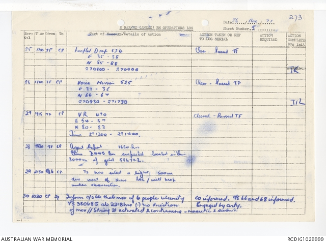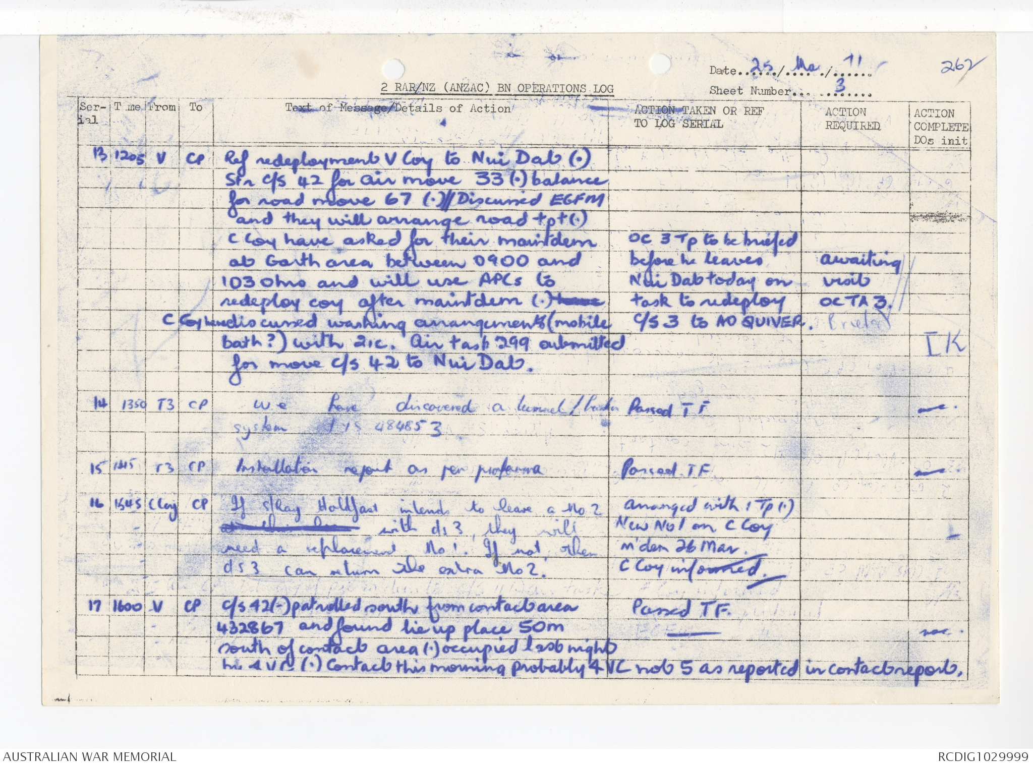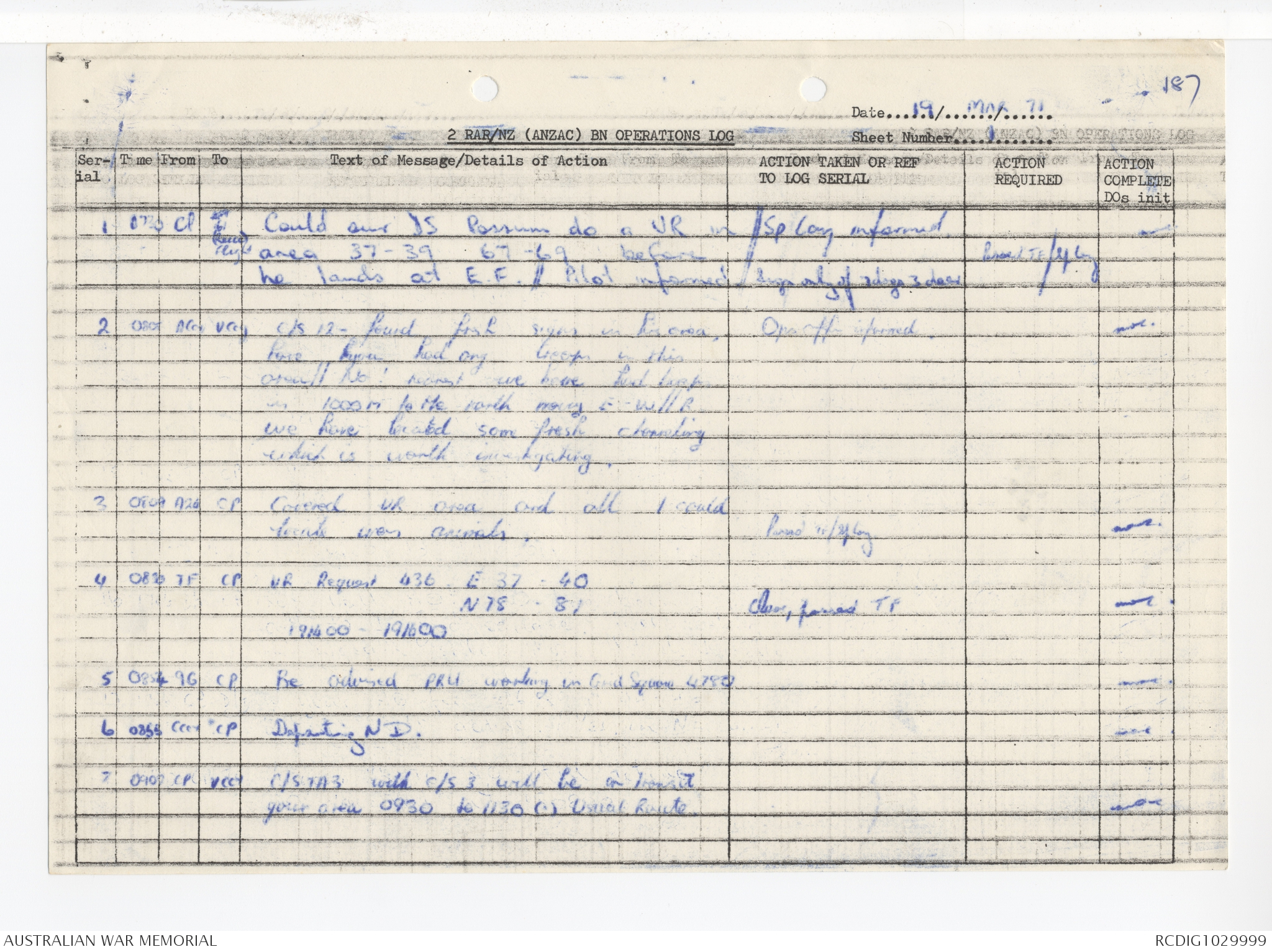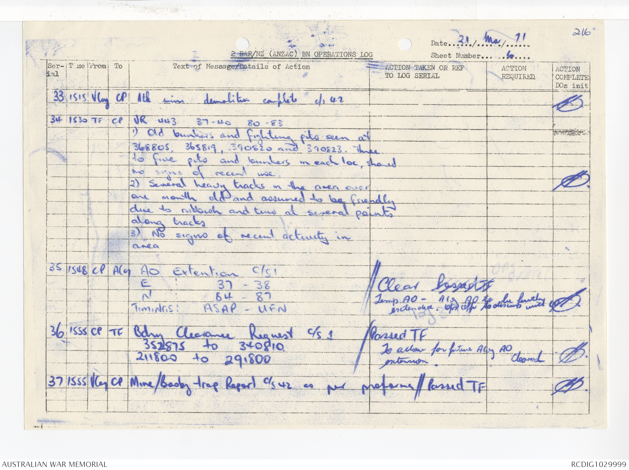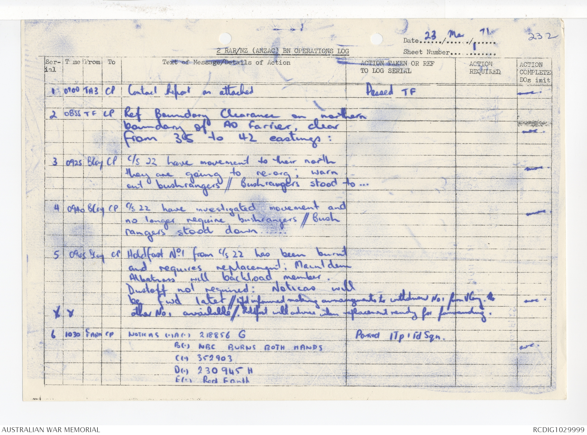 AWM95 7/2/78 - 1-31 March 1971, Duty Officer's log continued