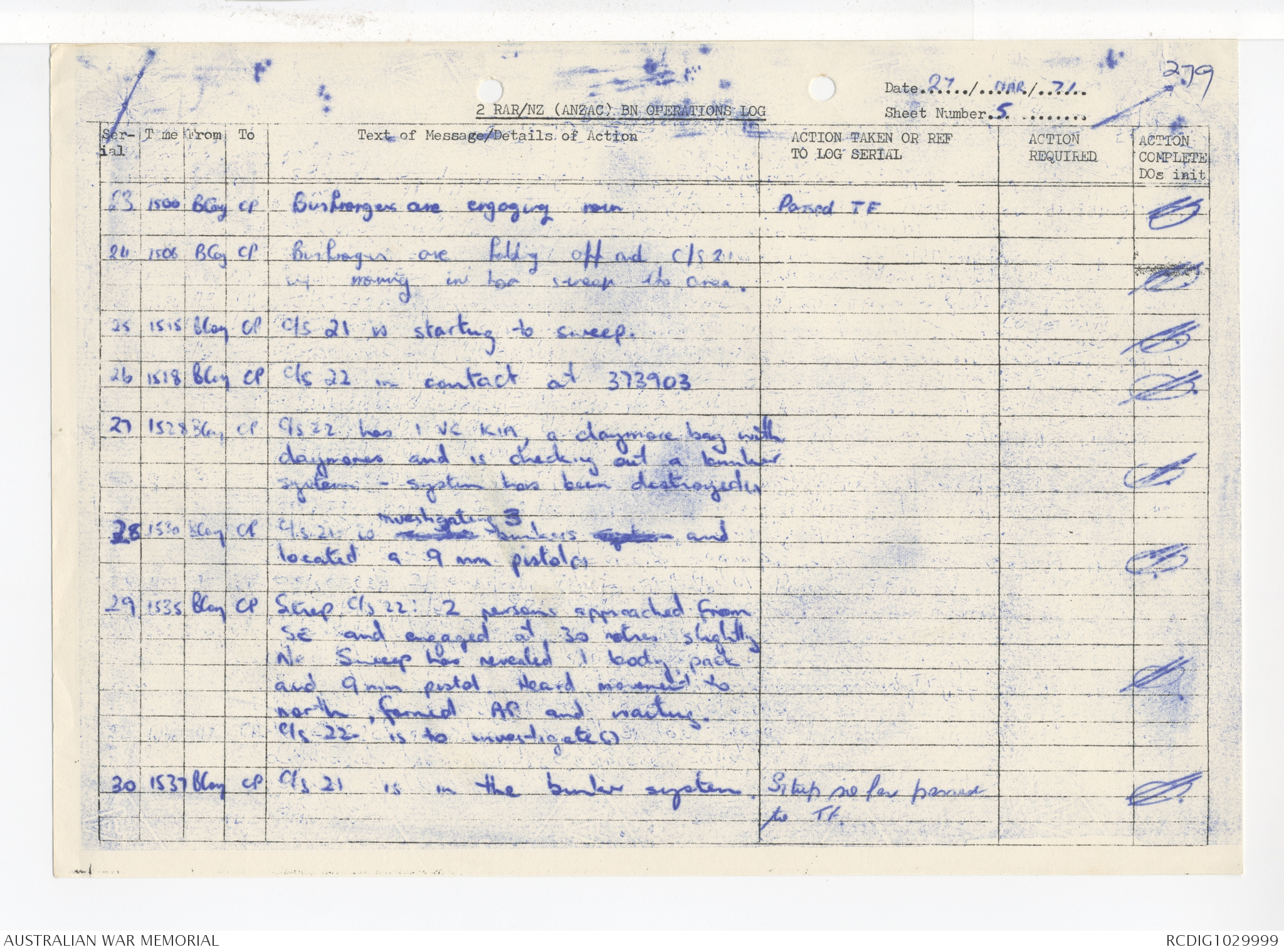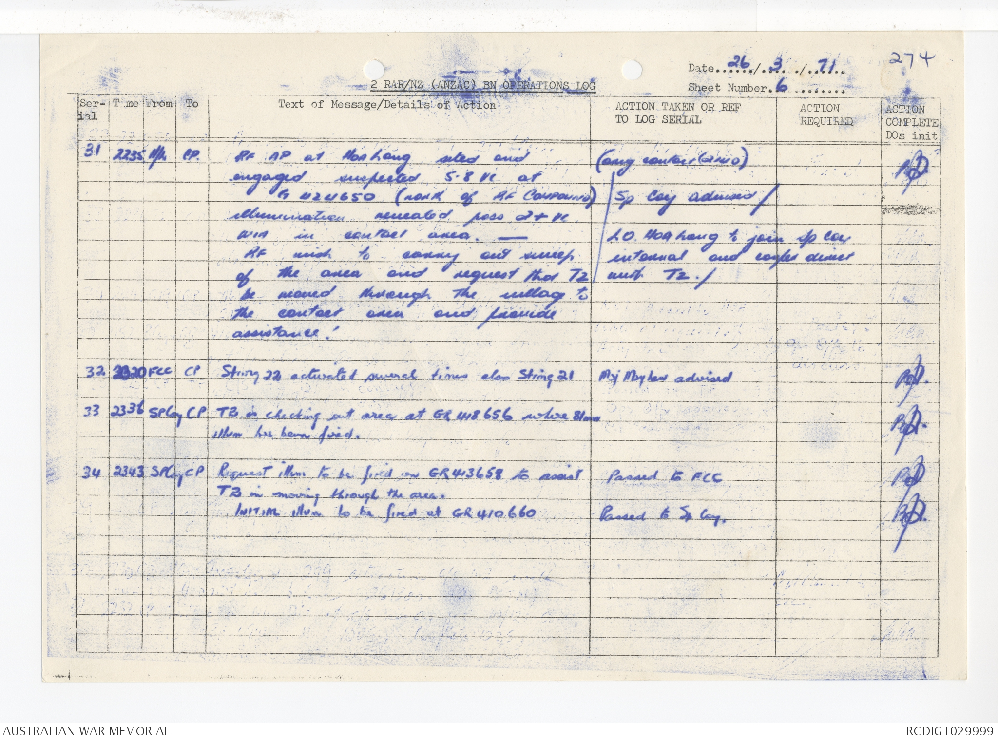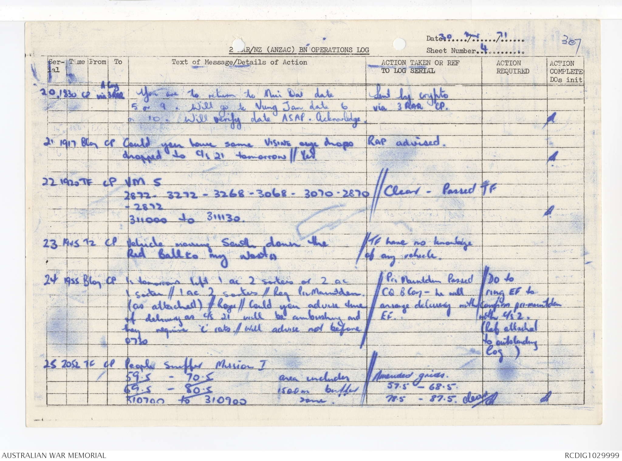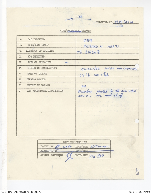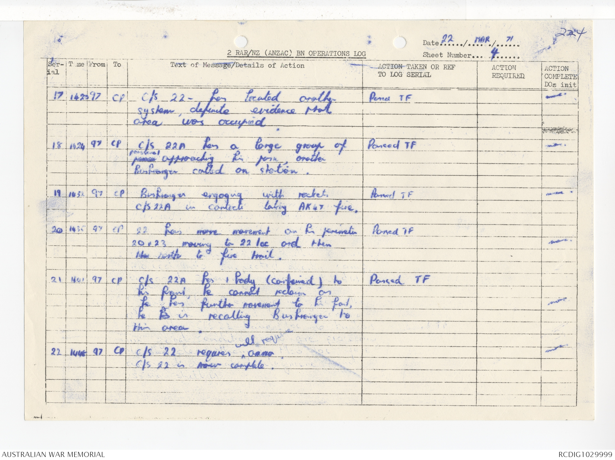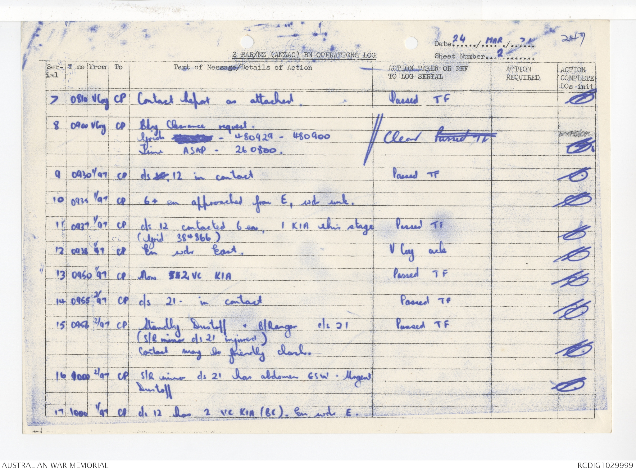 AWM95 7/2/78 - 1-31 March 1971, Duty Officer's log continued