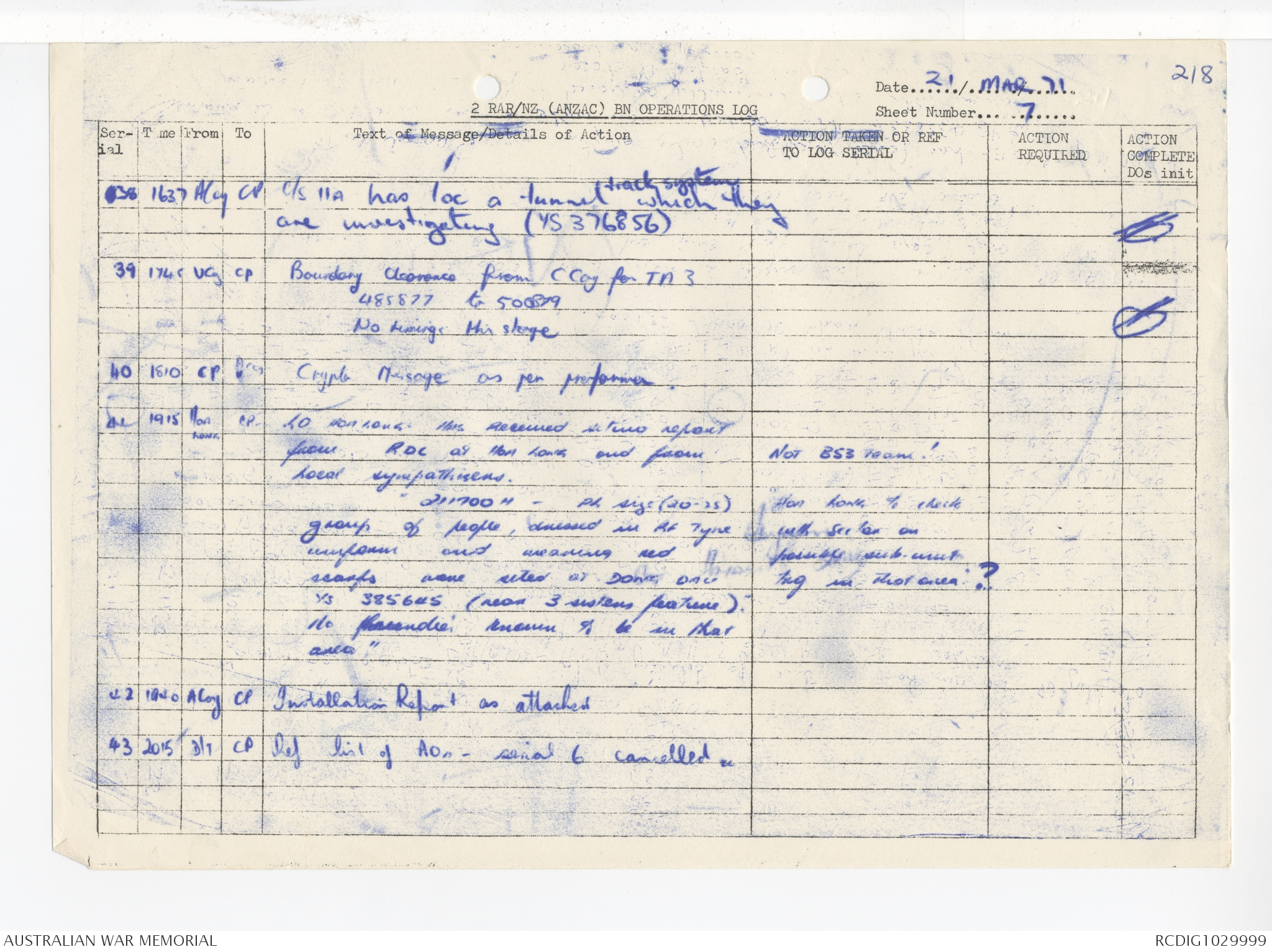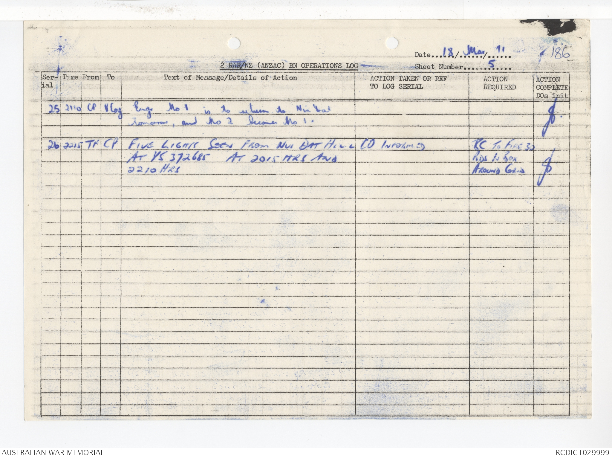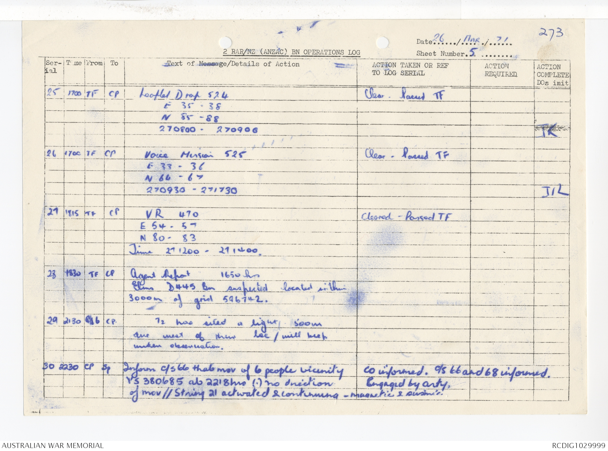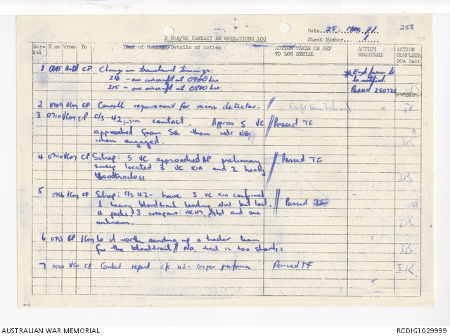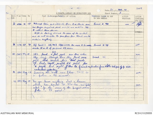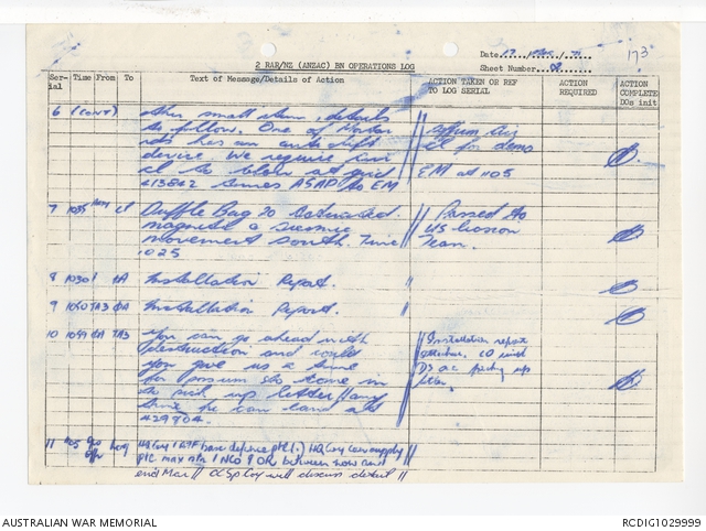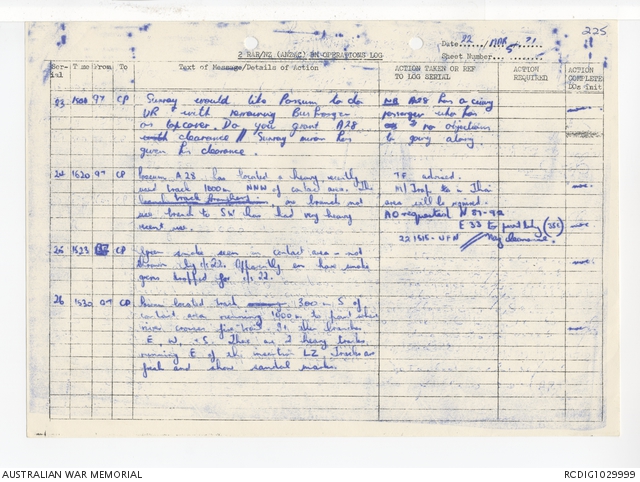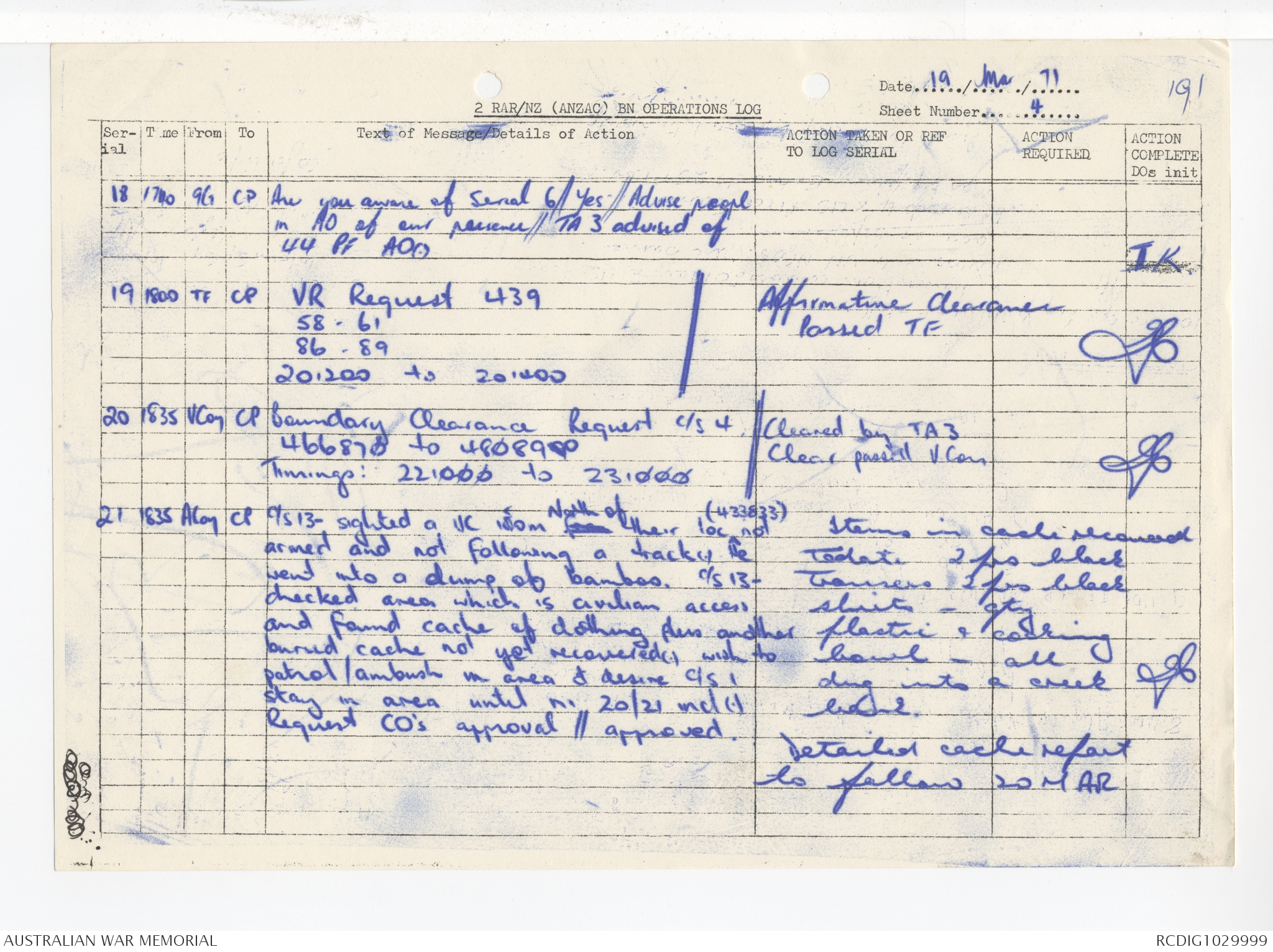 AWM95 7/2/78 - 1-31 March 1971, Duty Officer's log continued