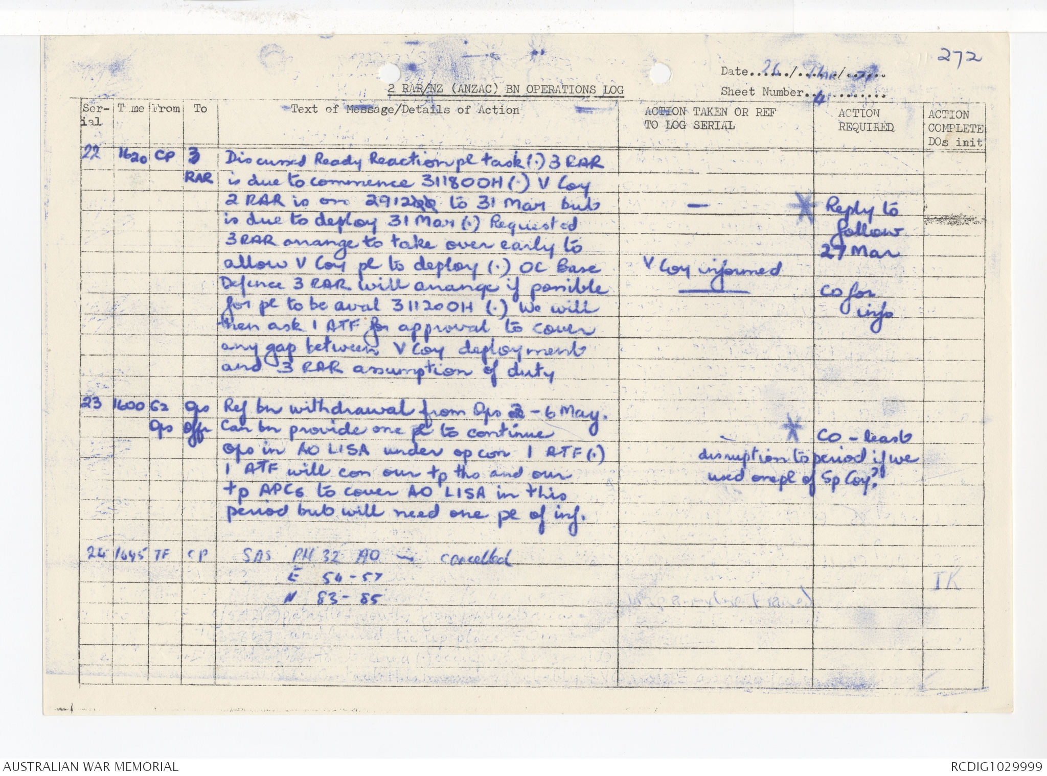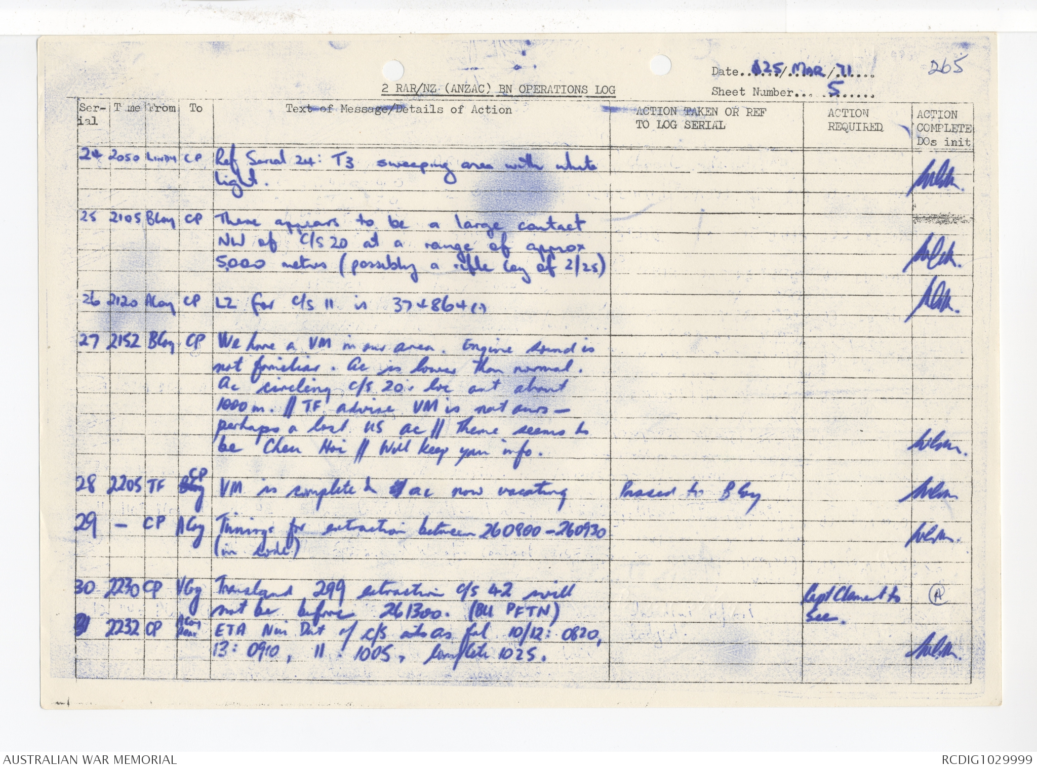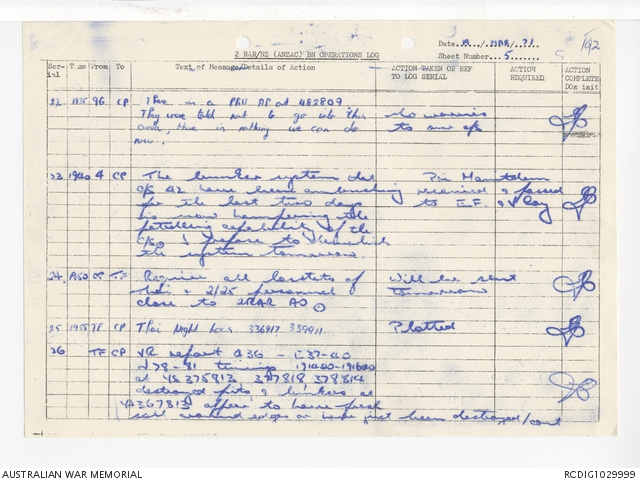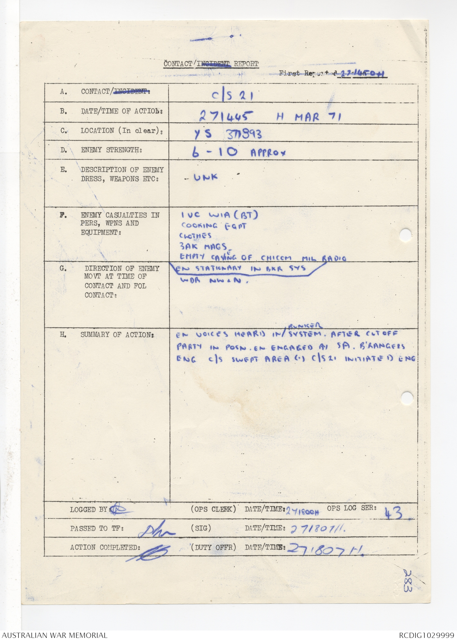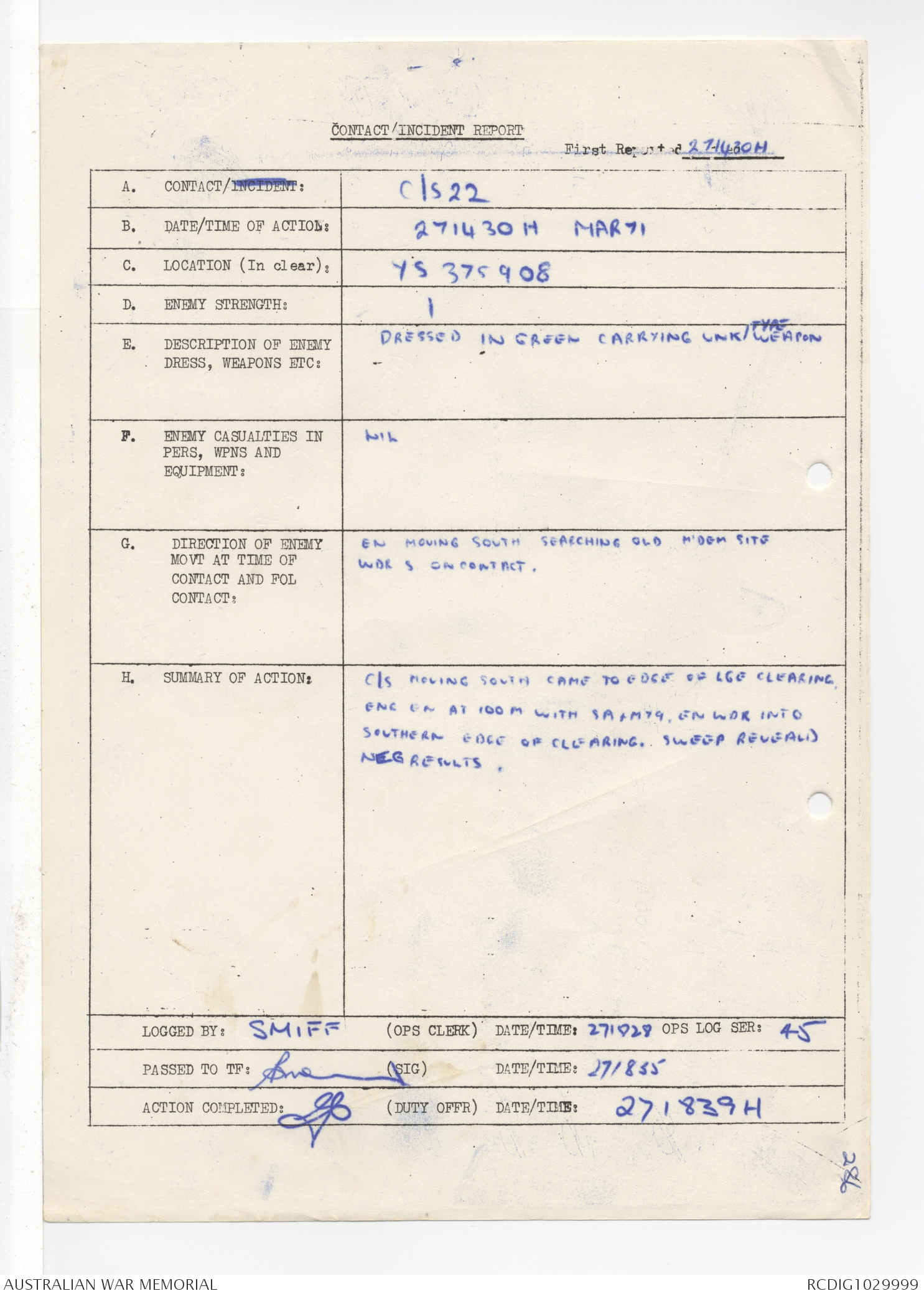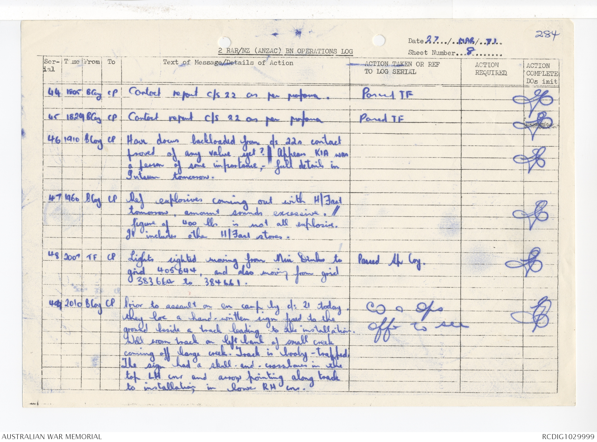 AWM95 7/2/78 - 1-31 March 1971, Duty Officer's log continued