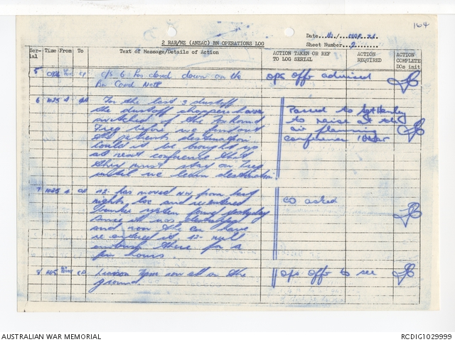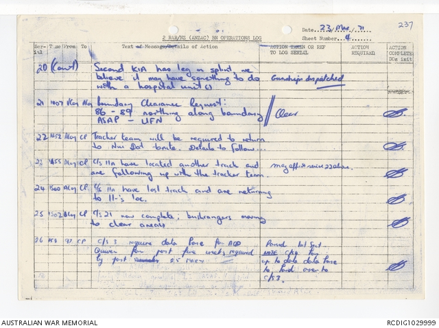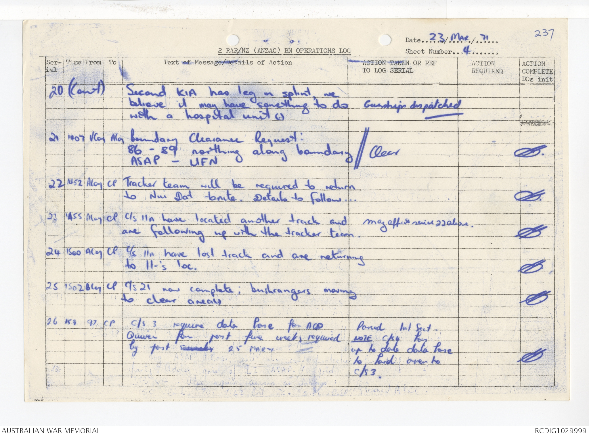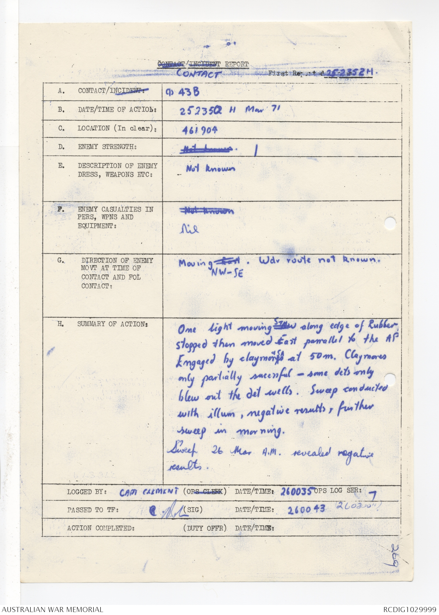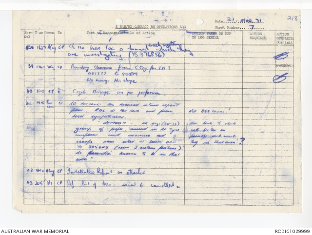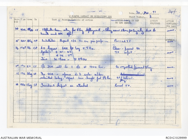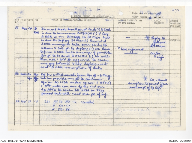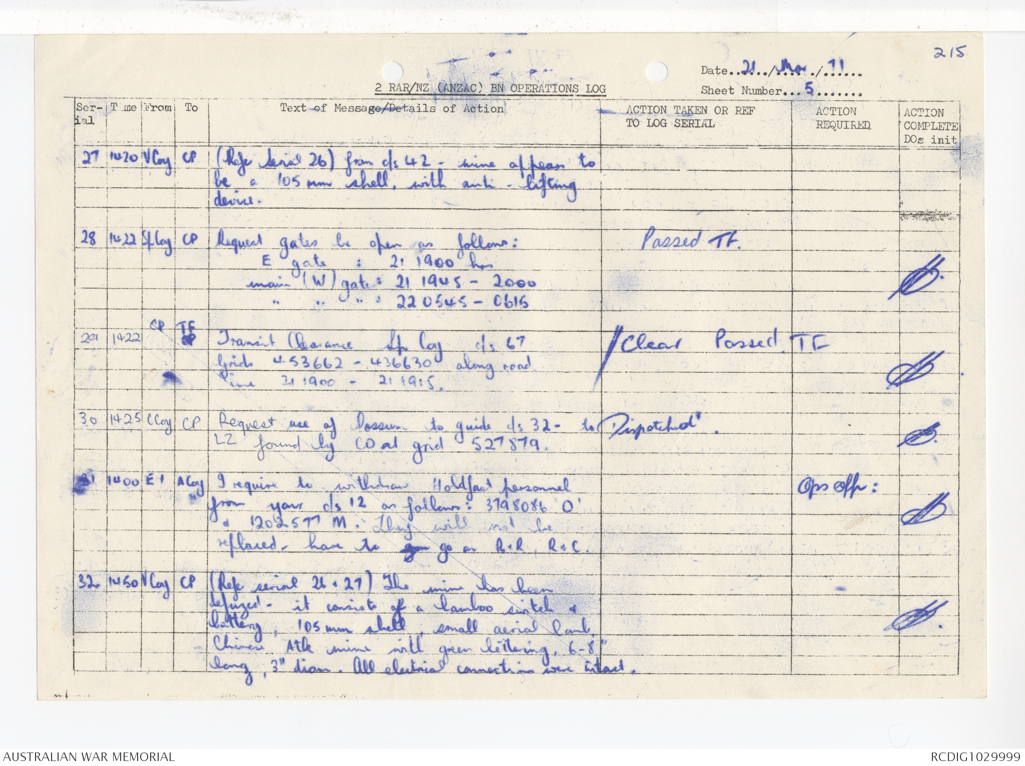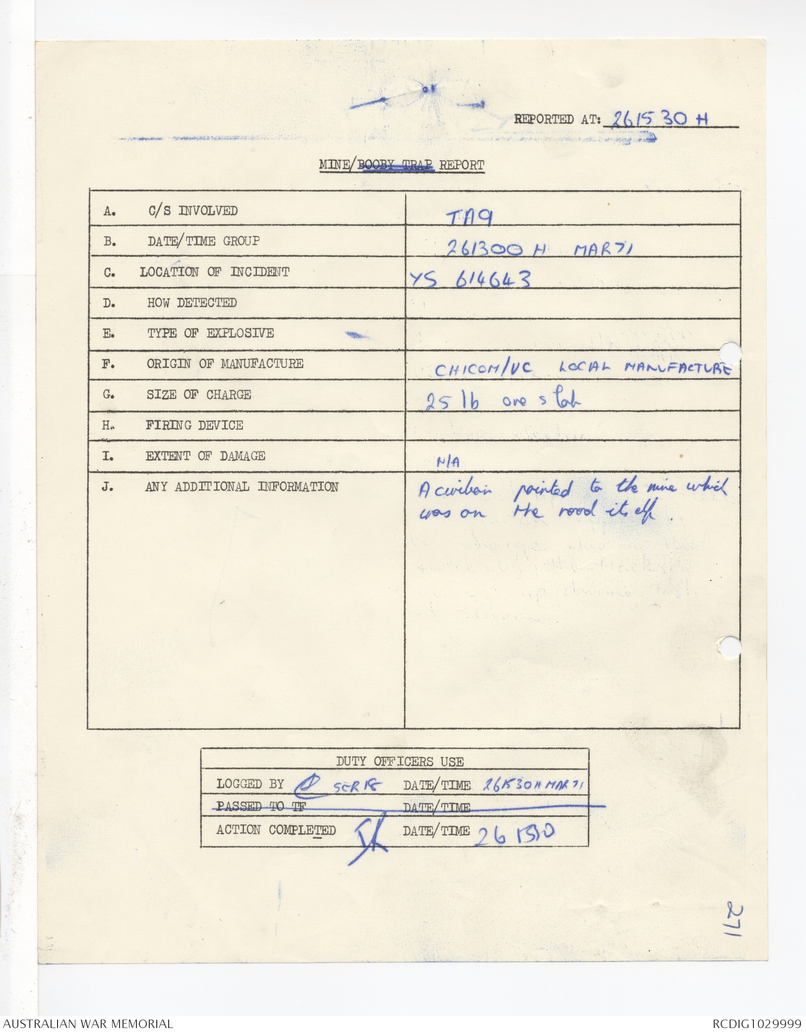 AWM95 7/2/78 - 1-31 March 1971, Duty Officer's log continued