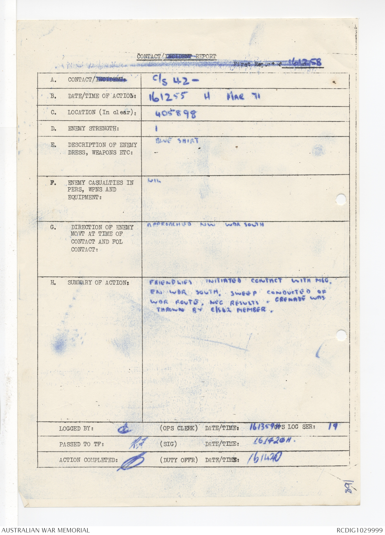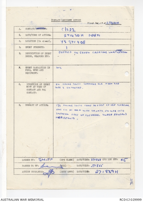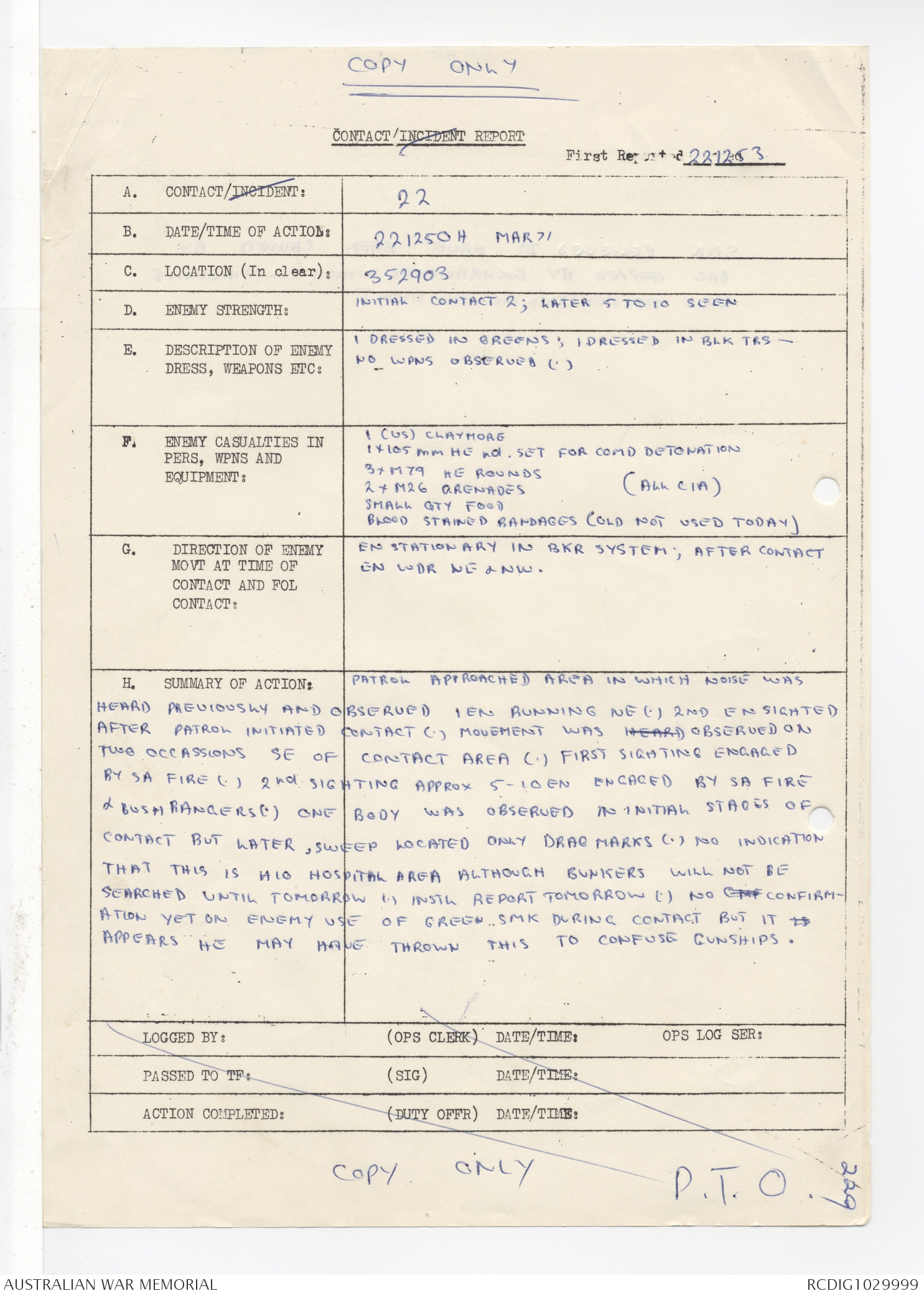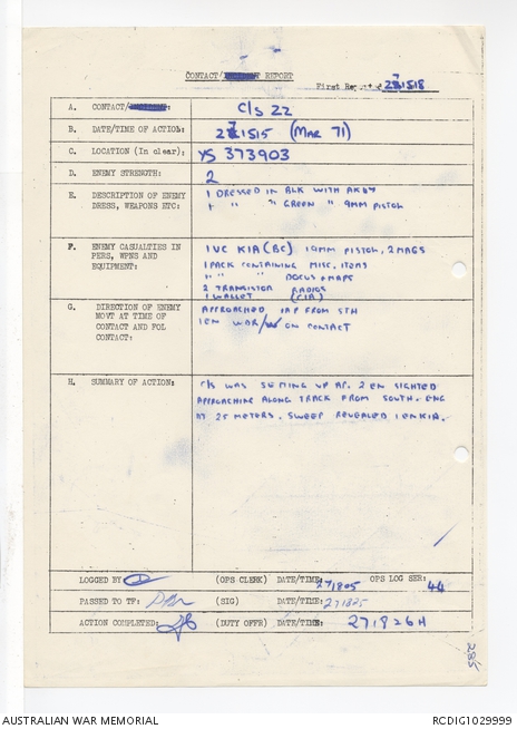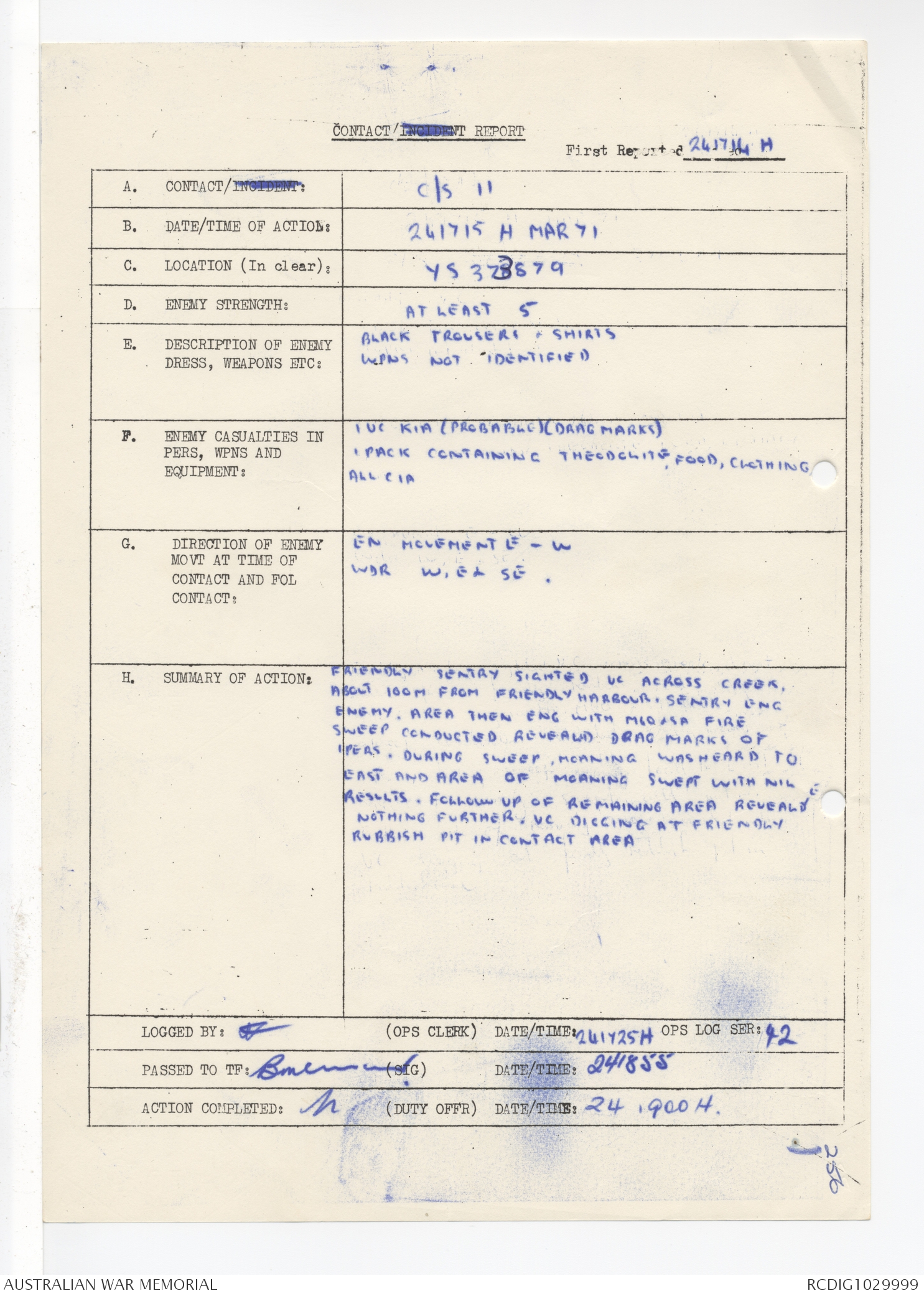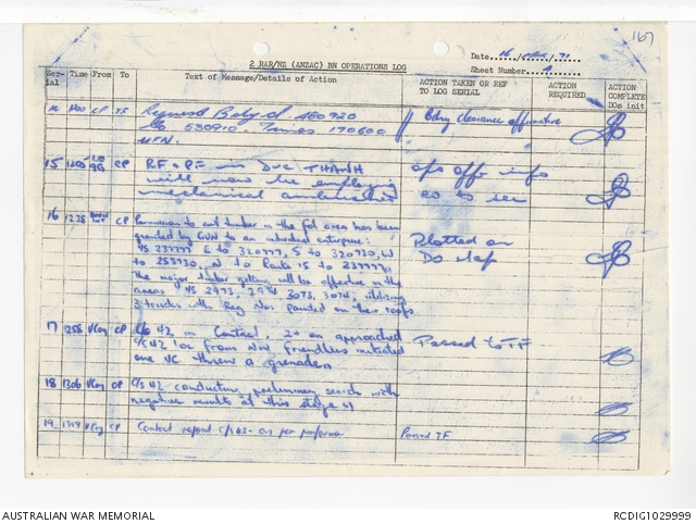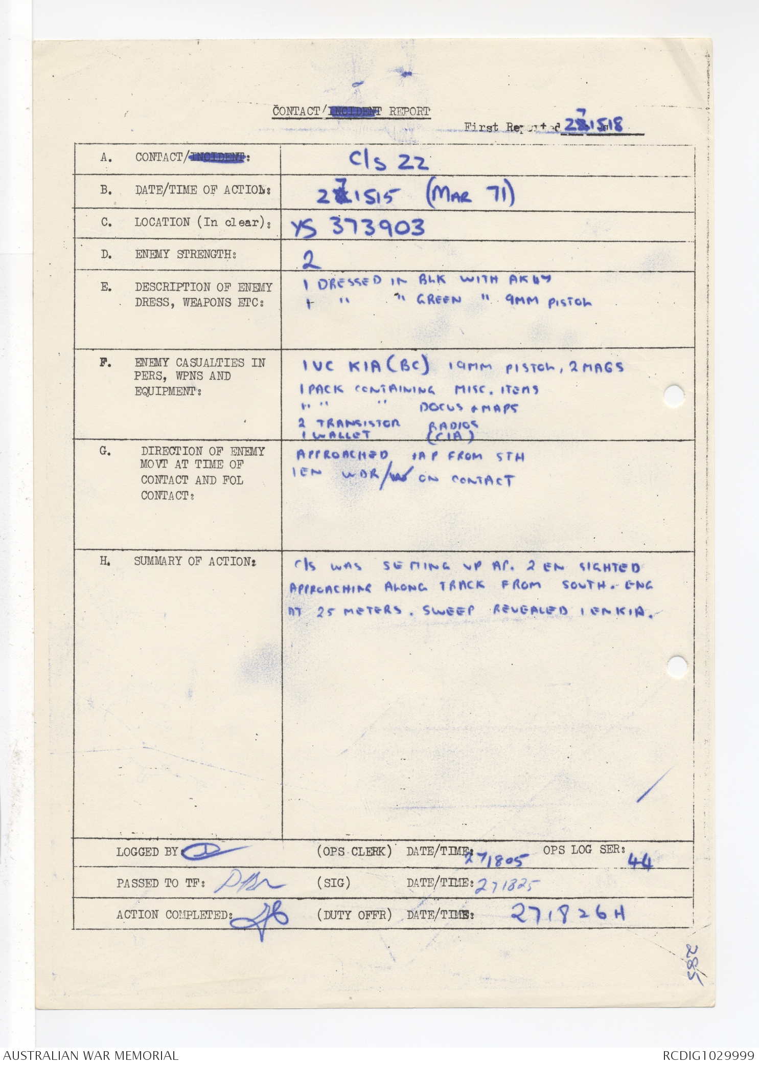 AWM95 7/2/78 - 1-31 March 1971, Duty Officer's log continued