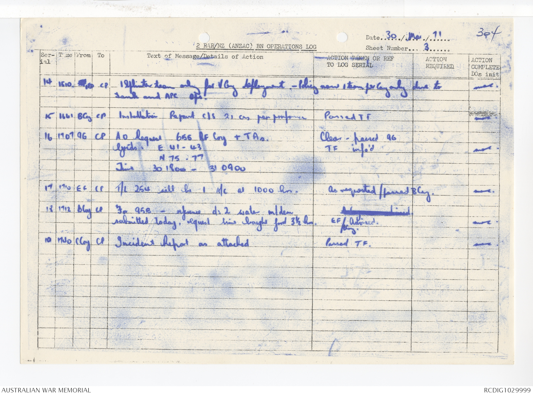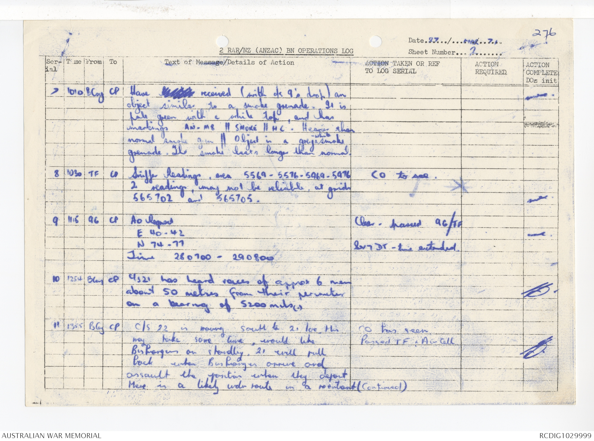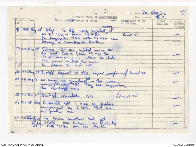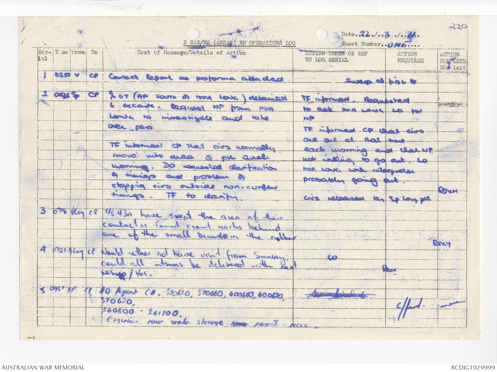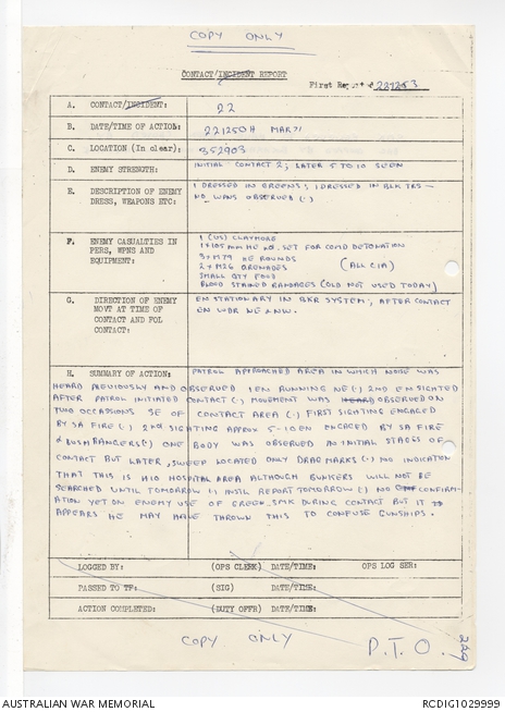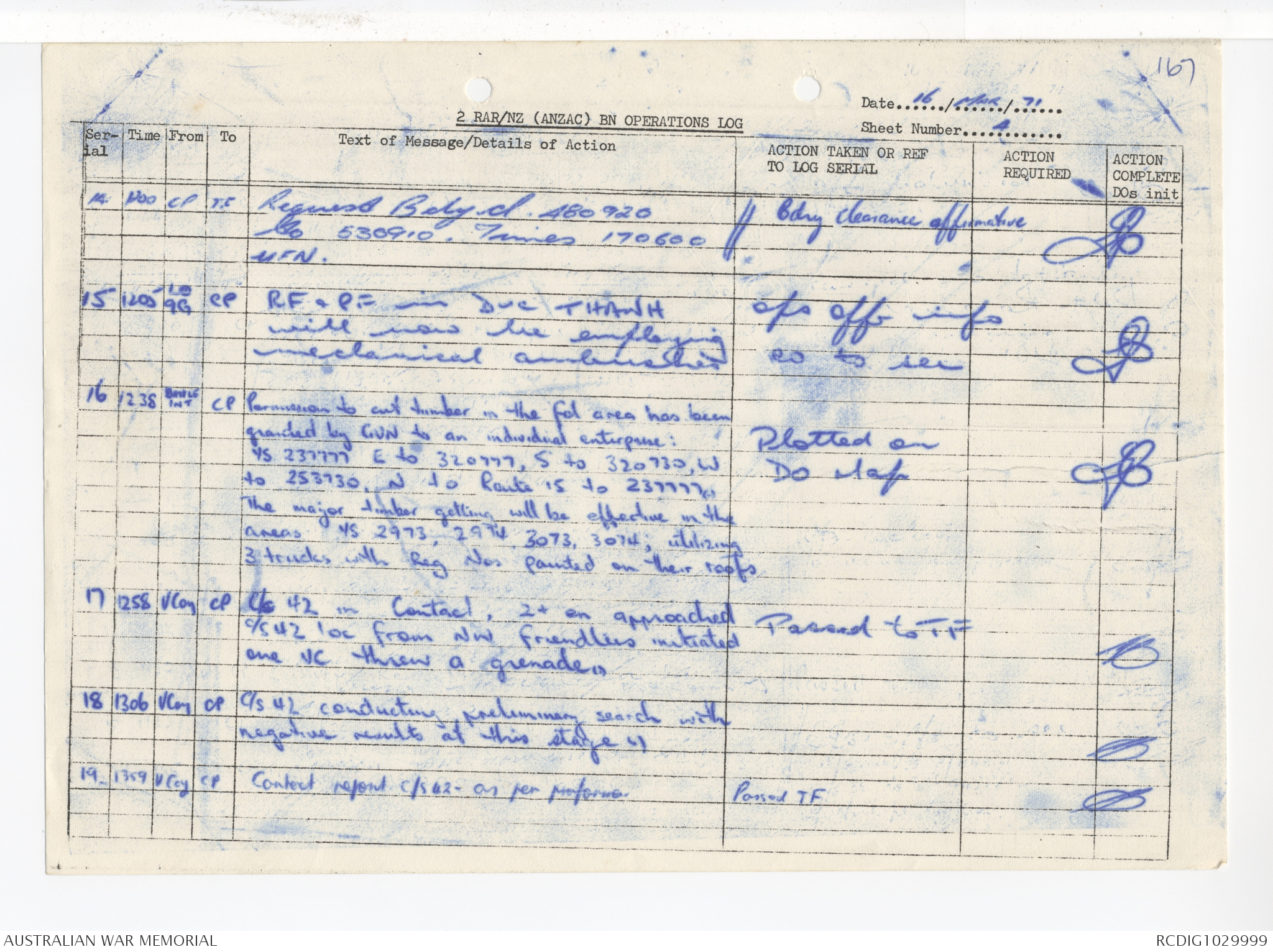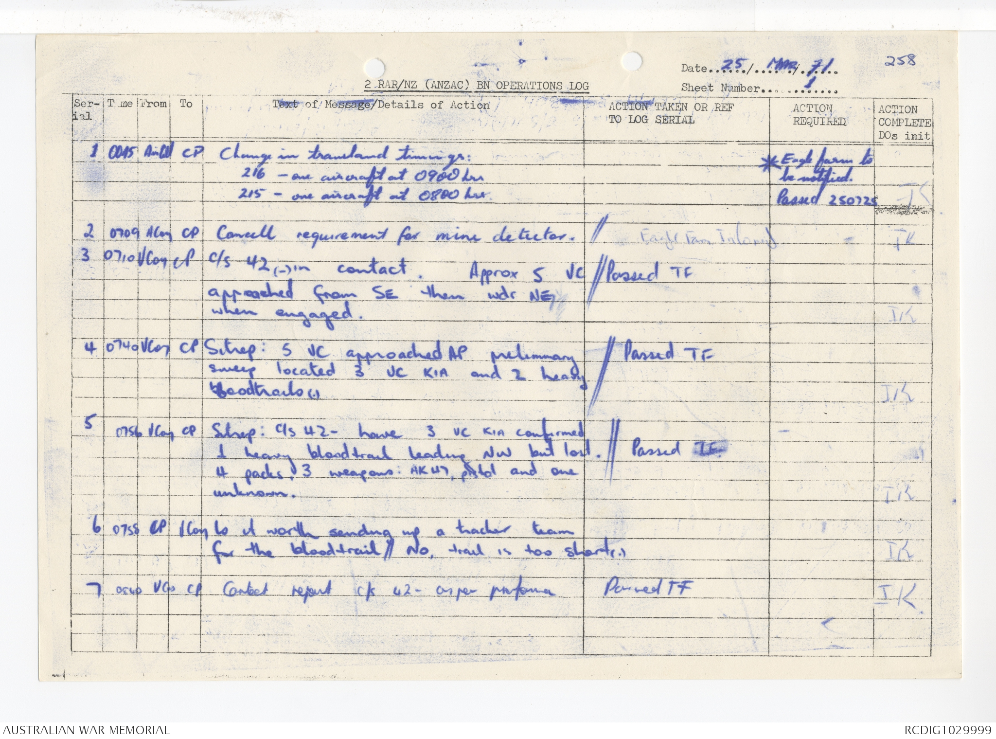 AWM95 7/2/78 - 1-31 March 1971, Duty Officer's log continued