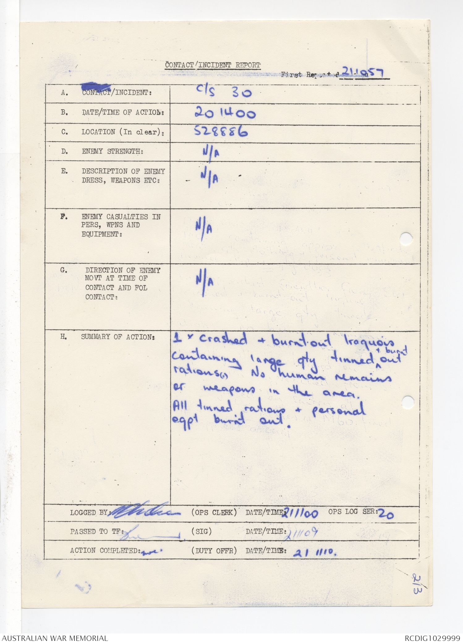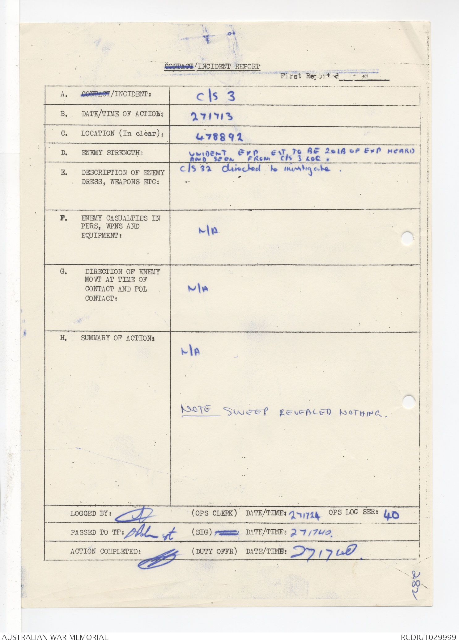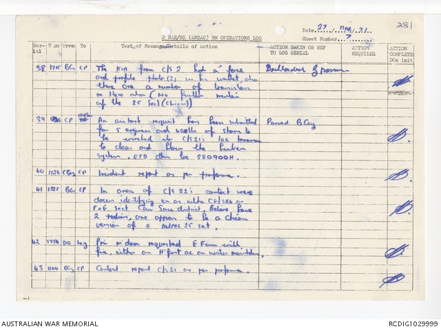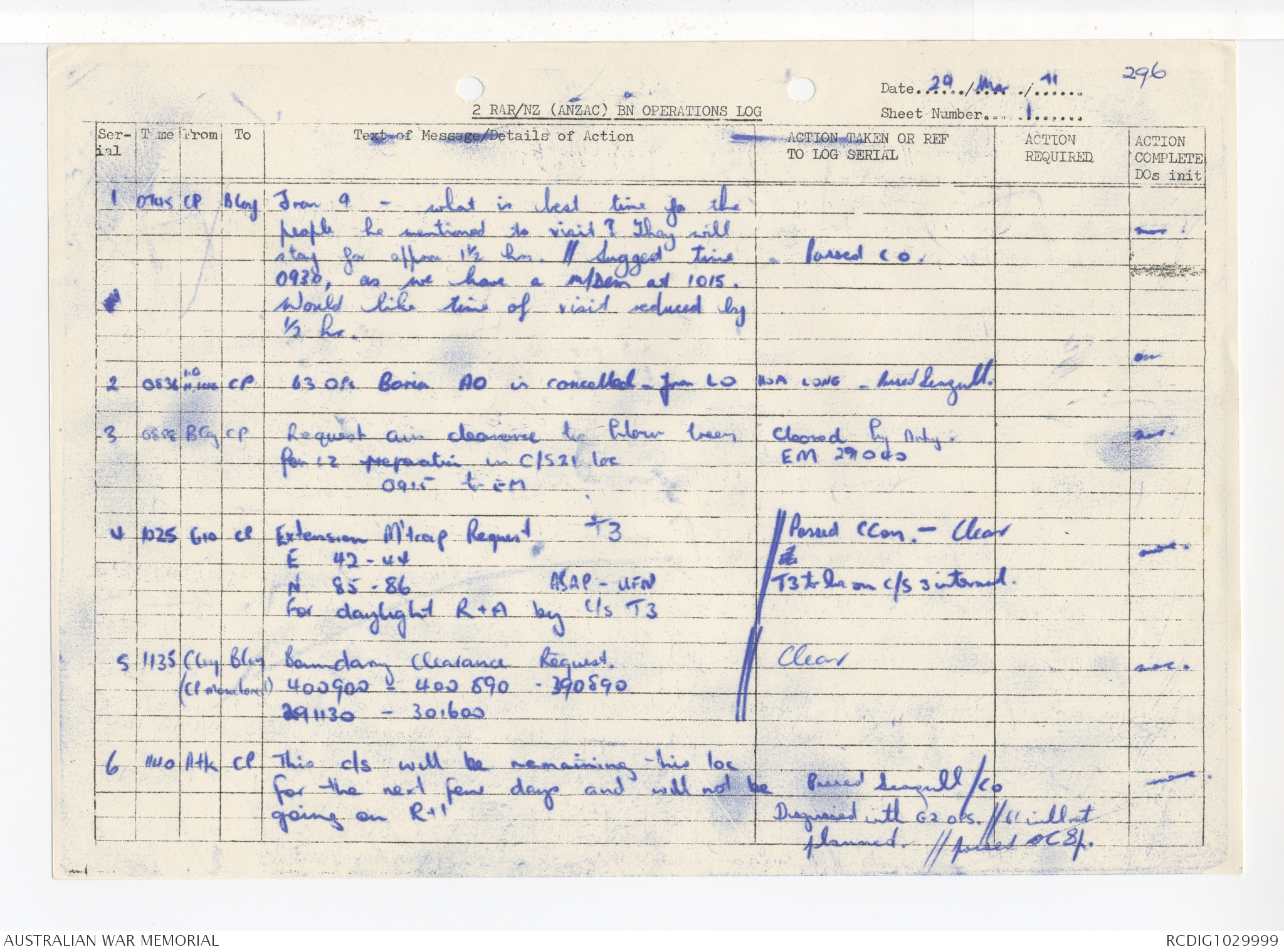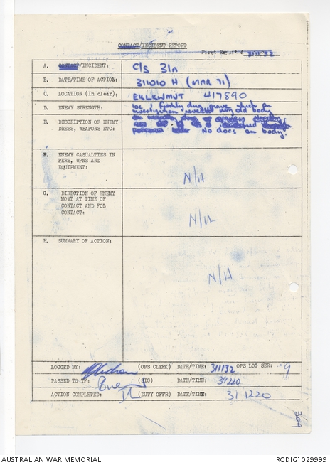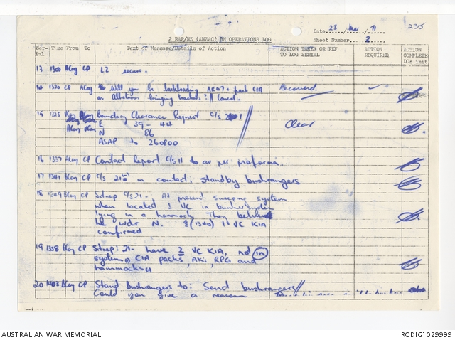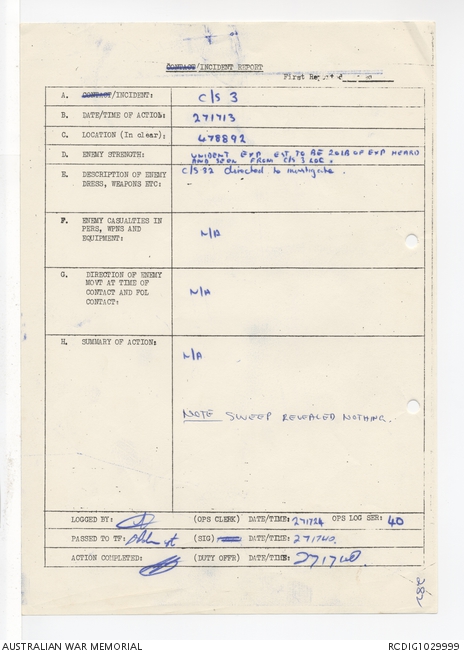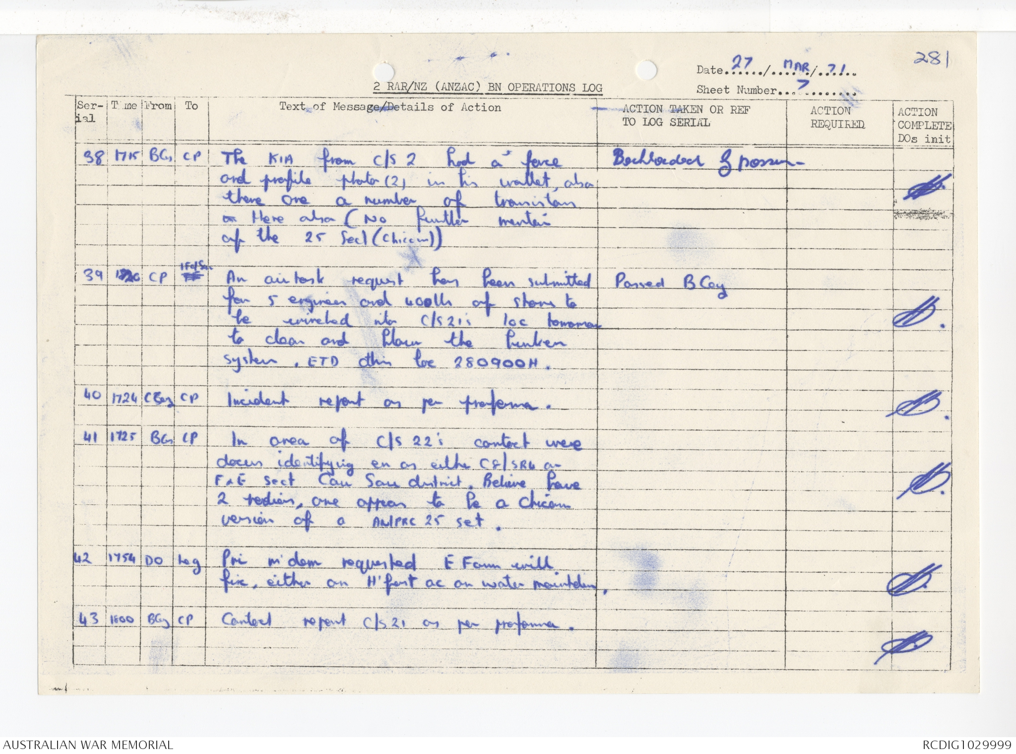 AWM95 7/2/78 - 1-31 March 1971, Duty Officer's log continued