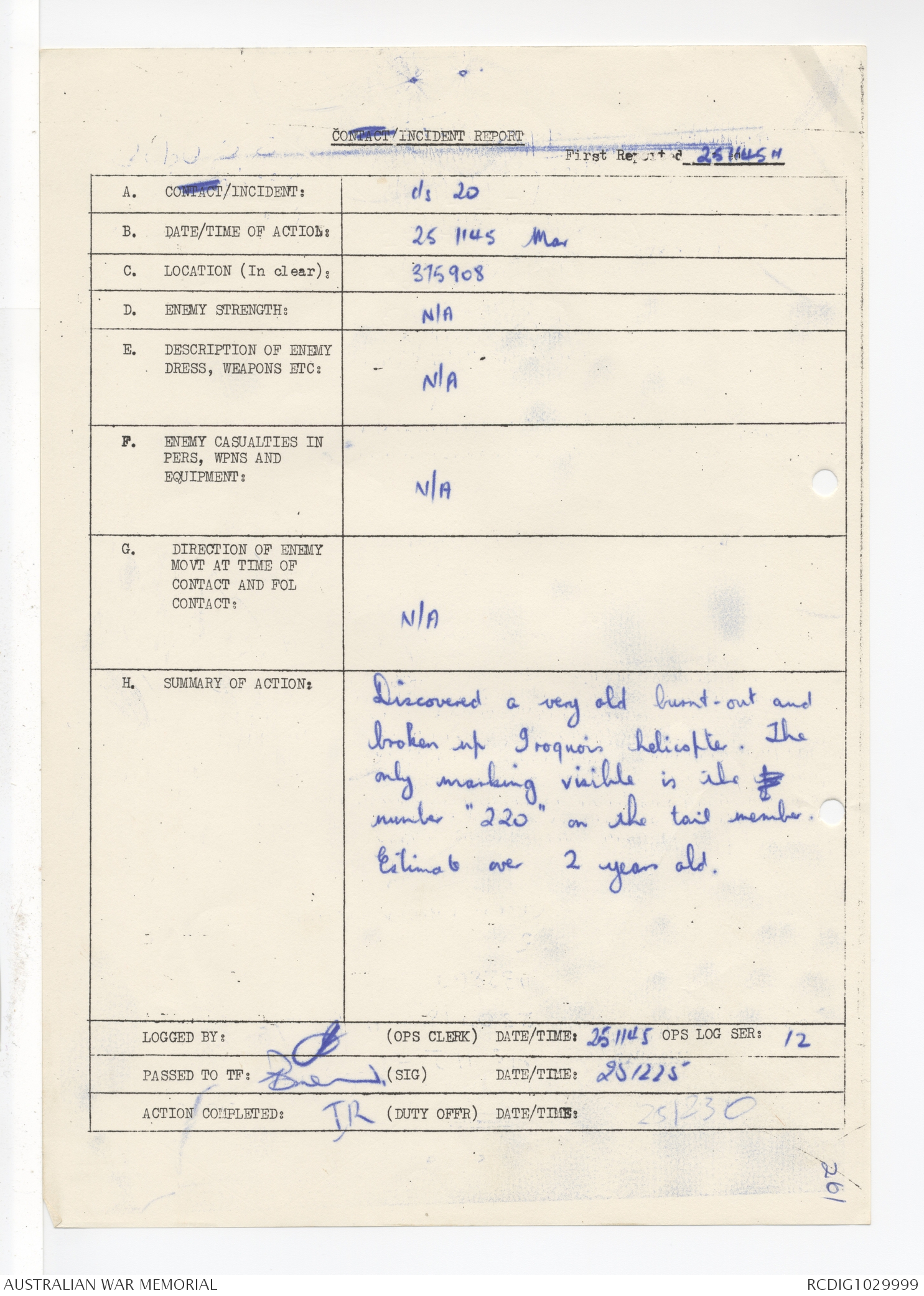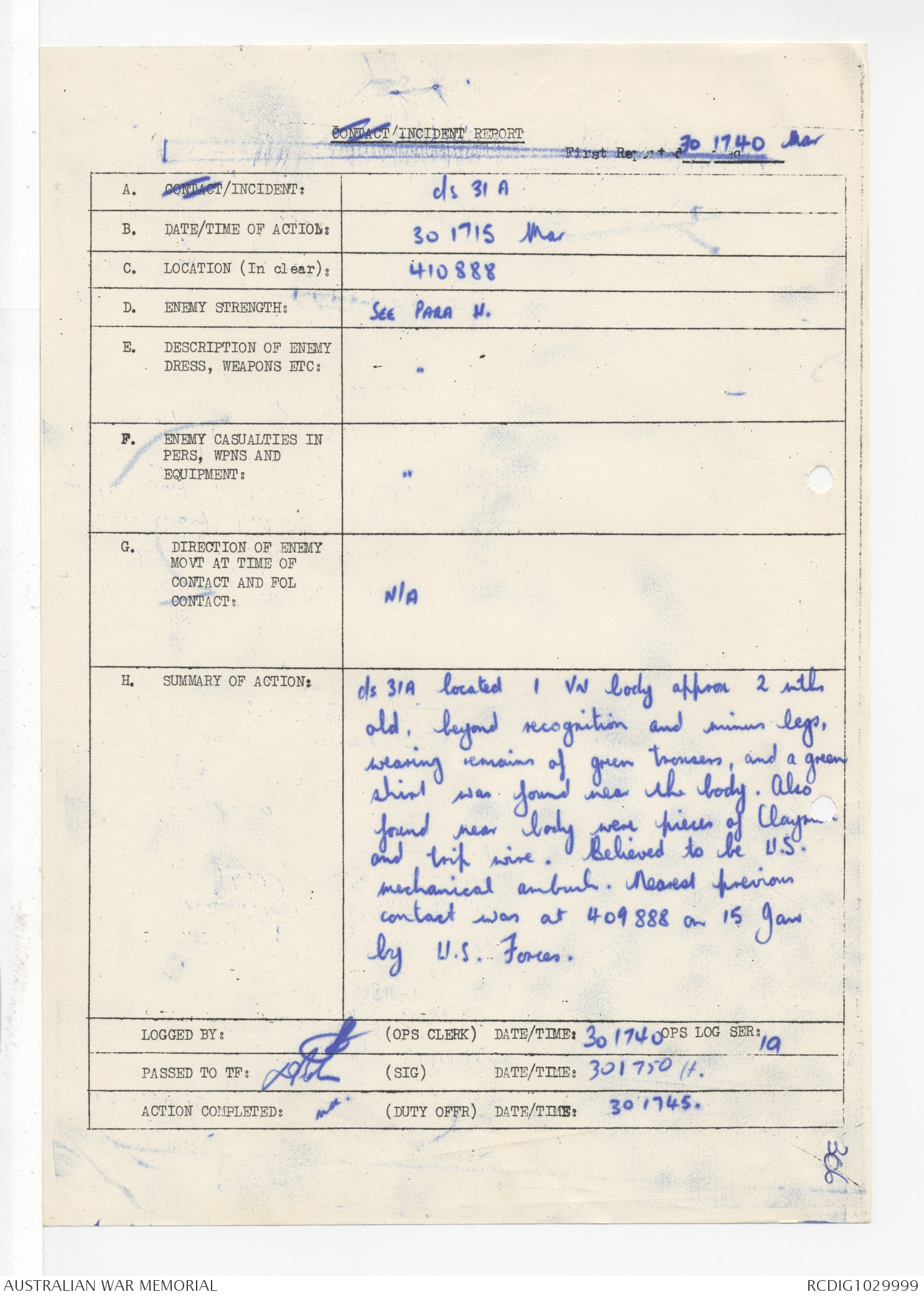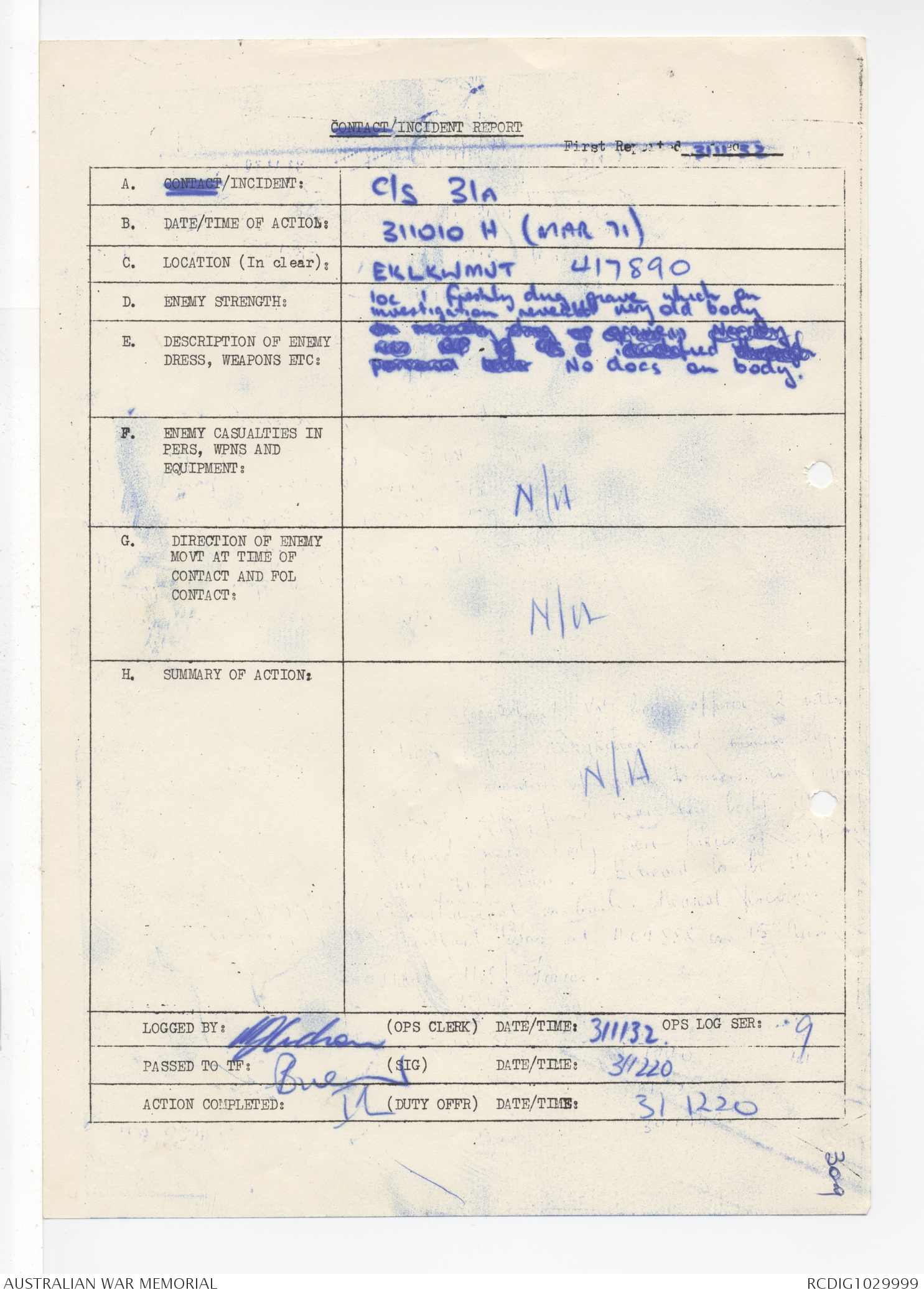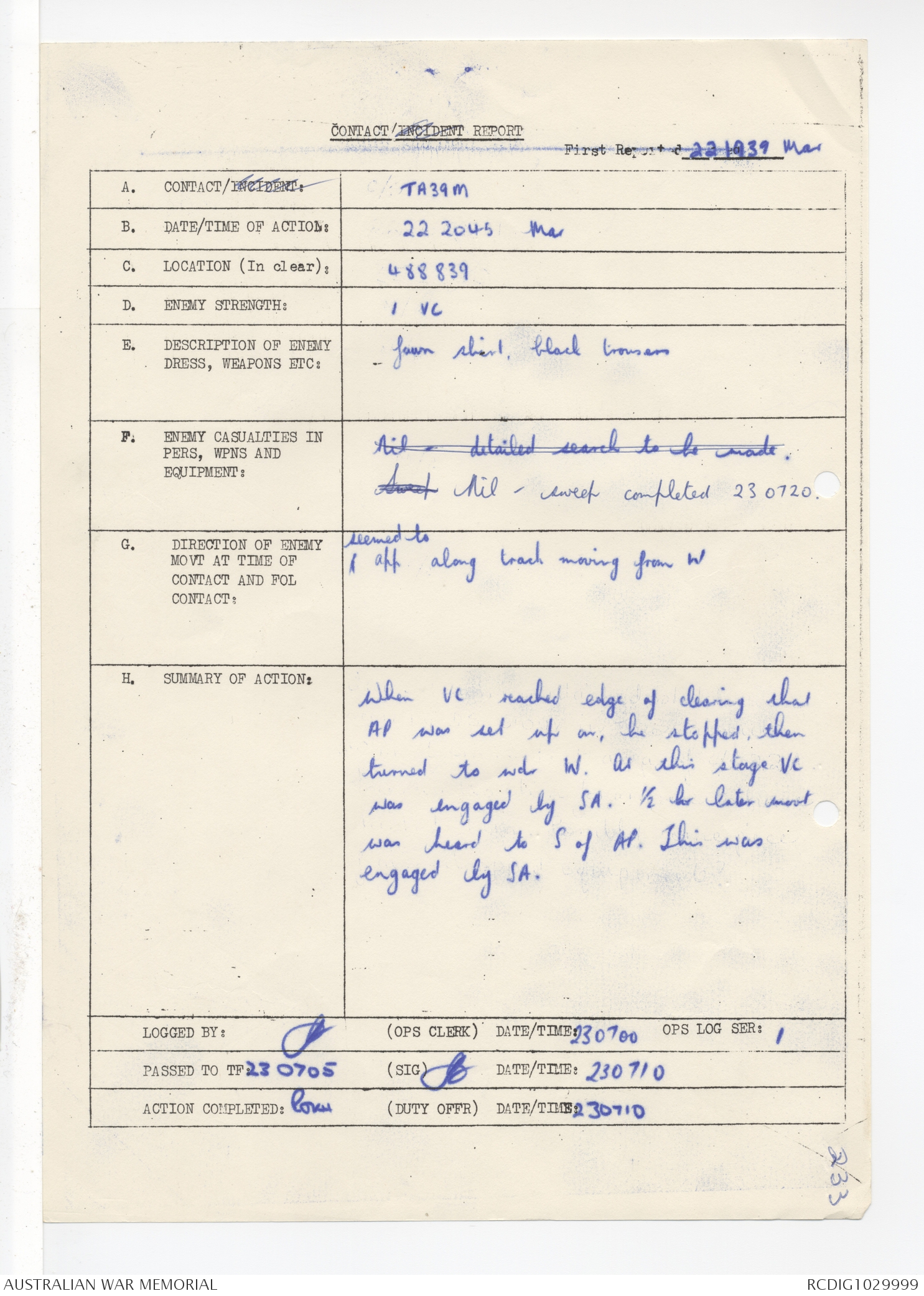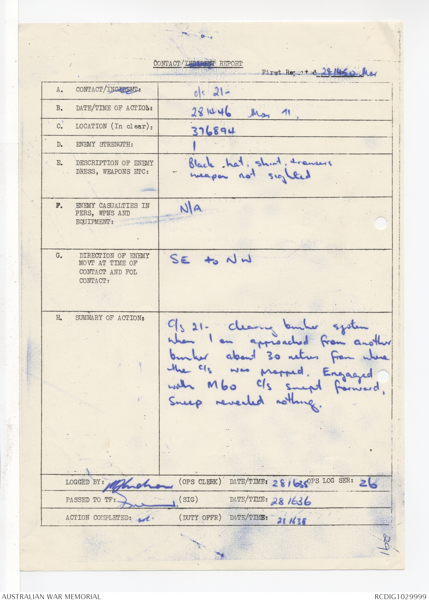 AWM95 7/2/78 - 1-31 March 1971, Duty Officer's log continued