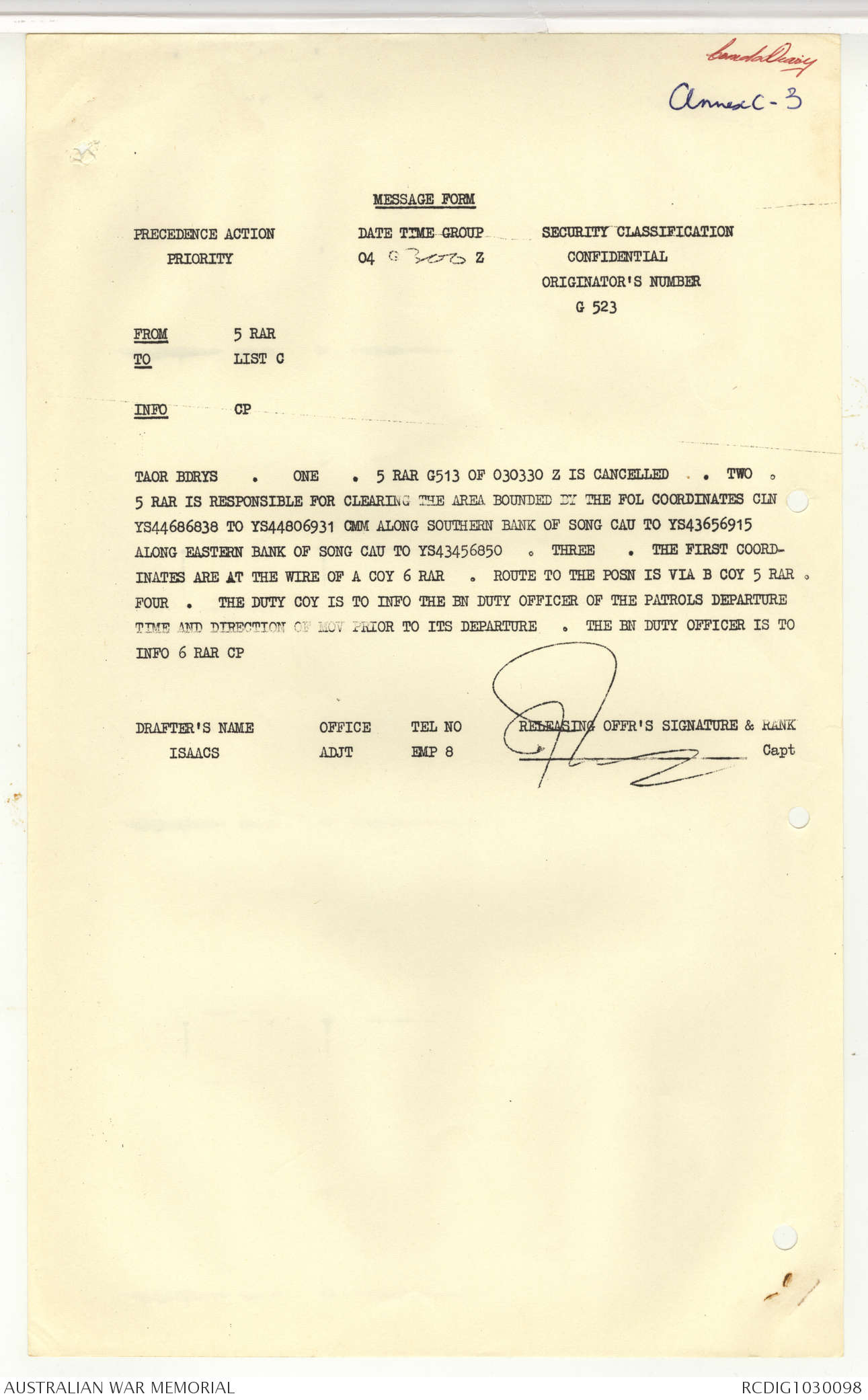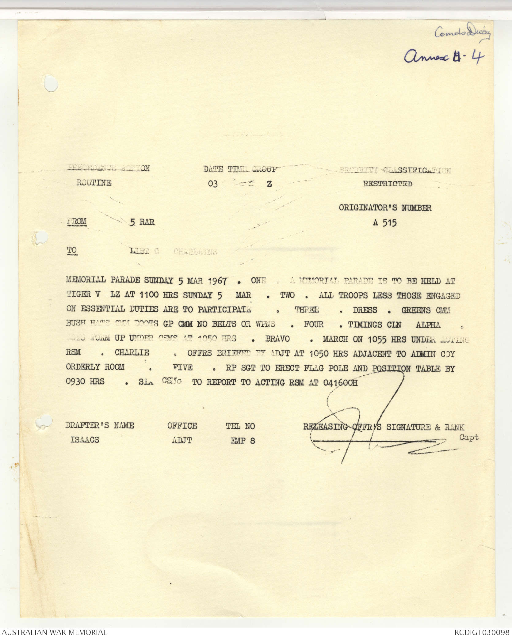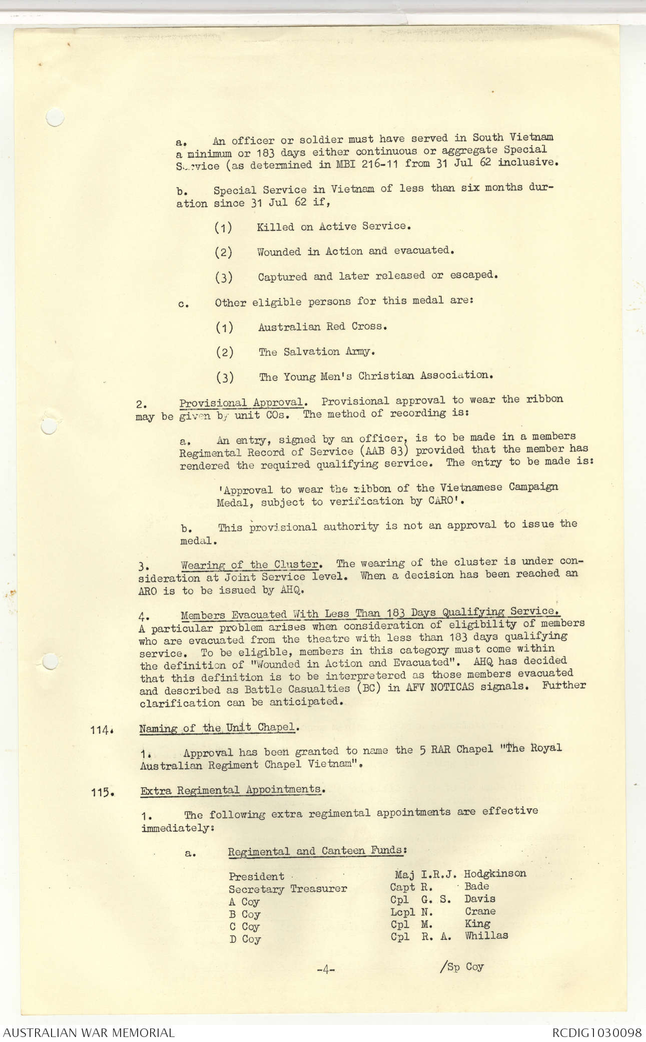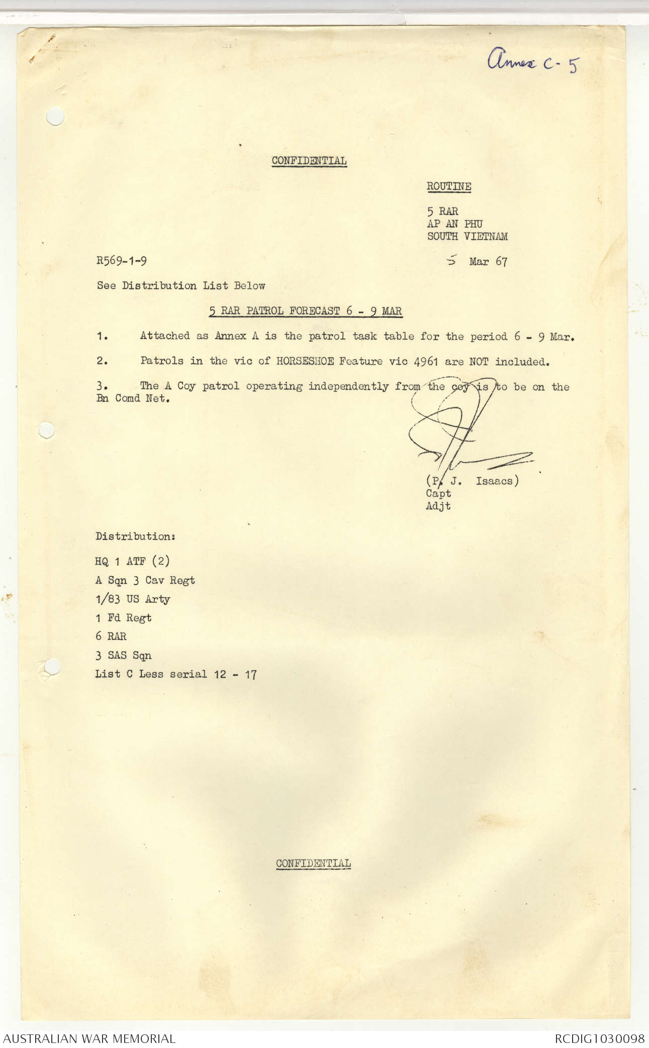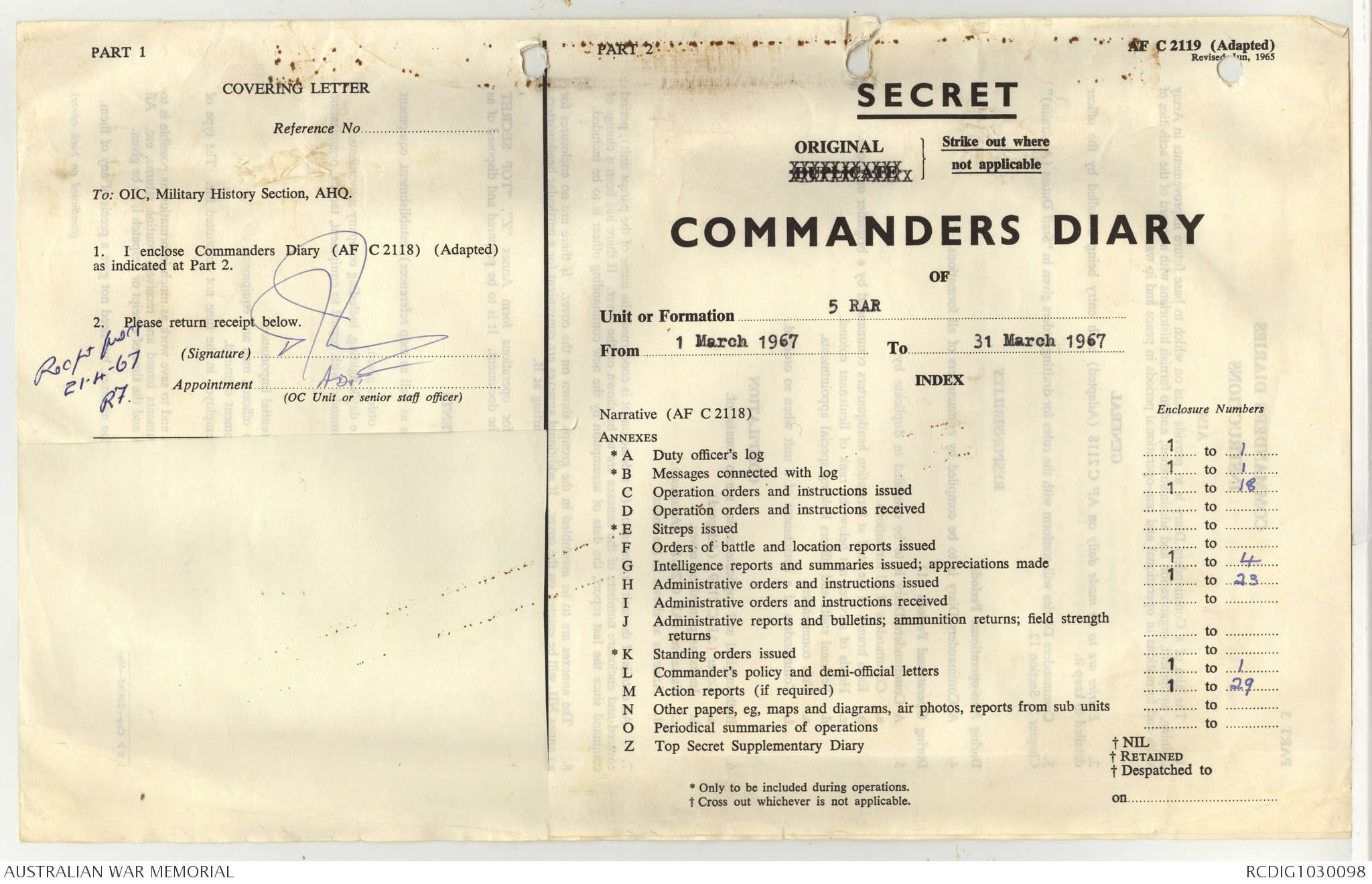 - AWM95 Subclass 7/5 - 5 Battalion Royal Australian Regiment
