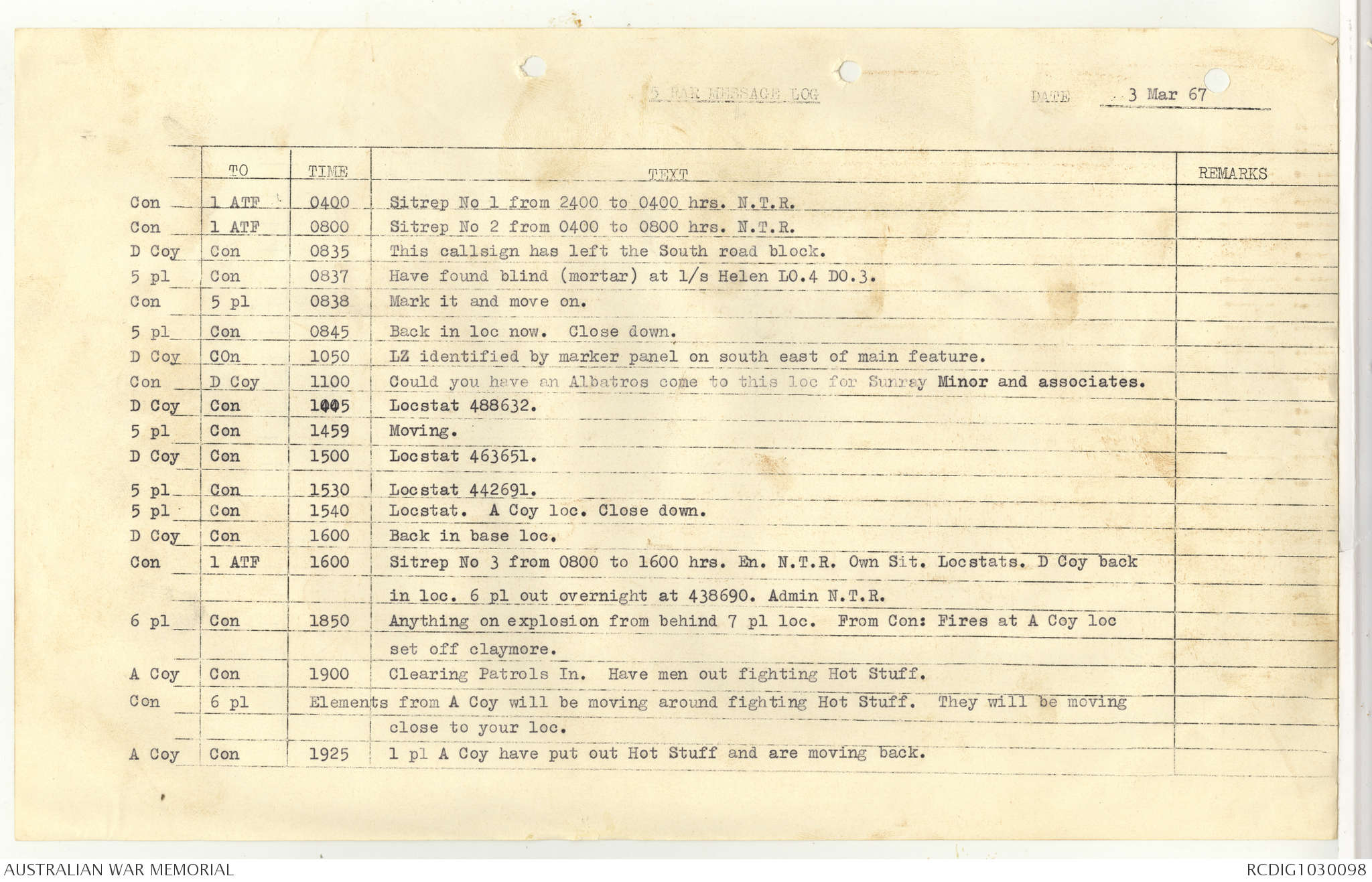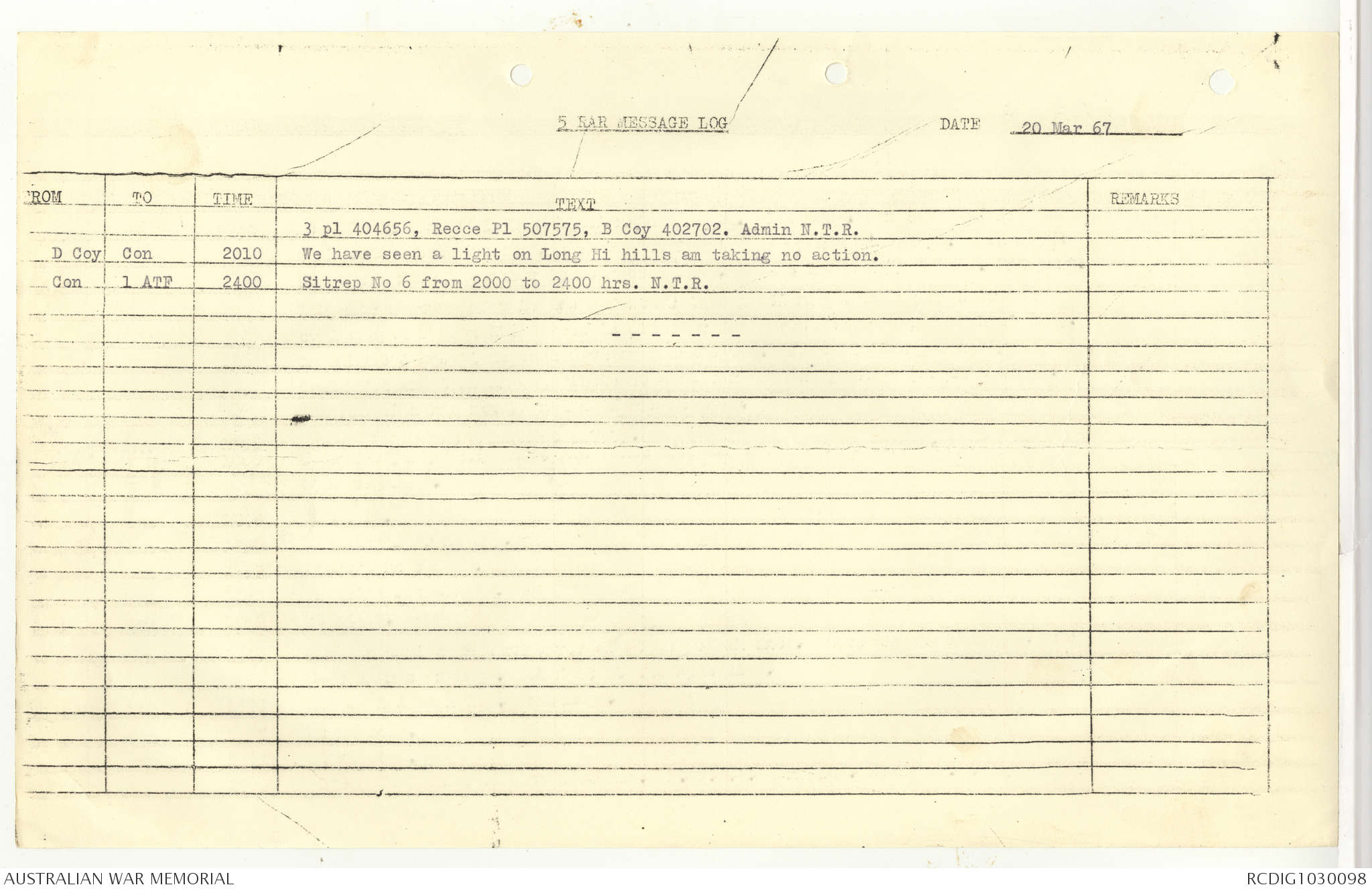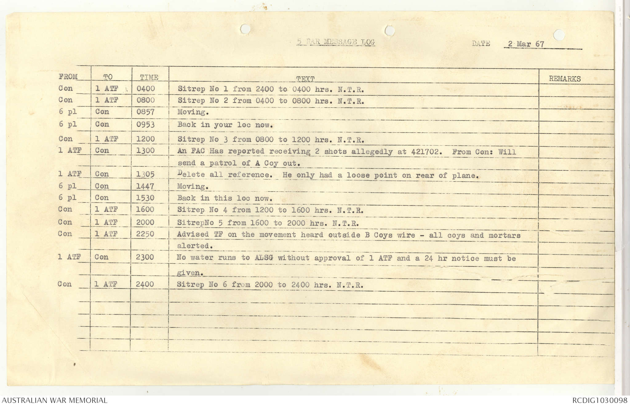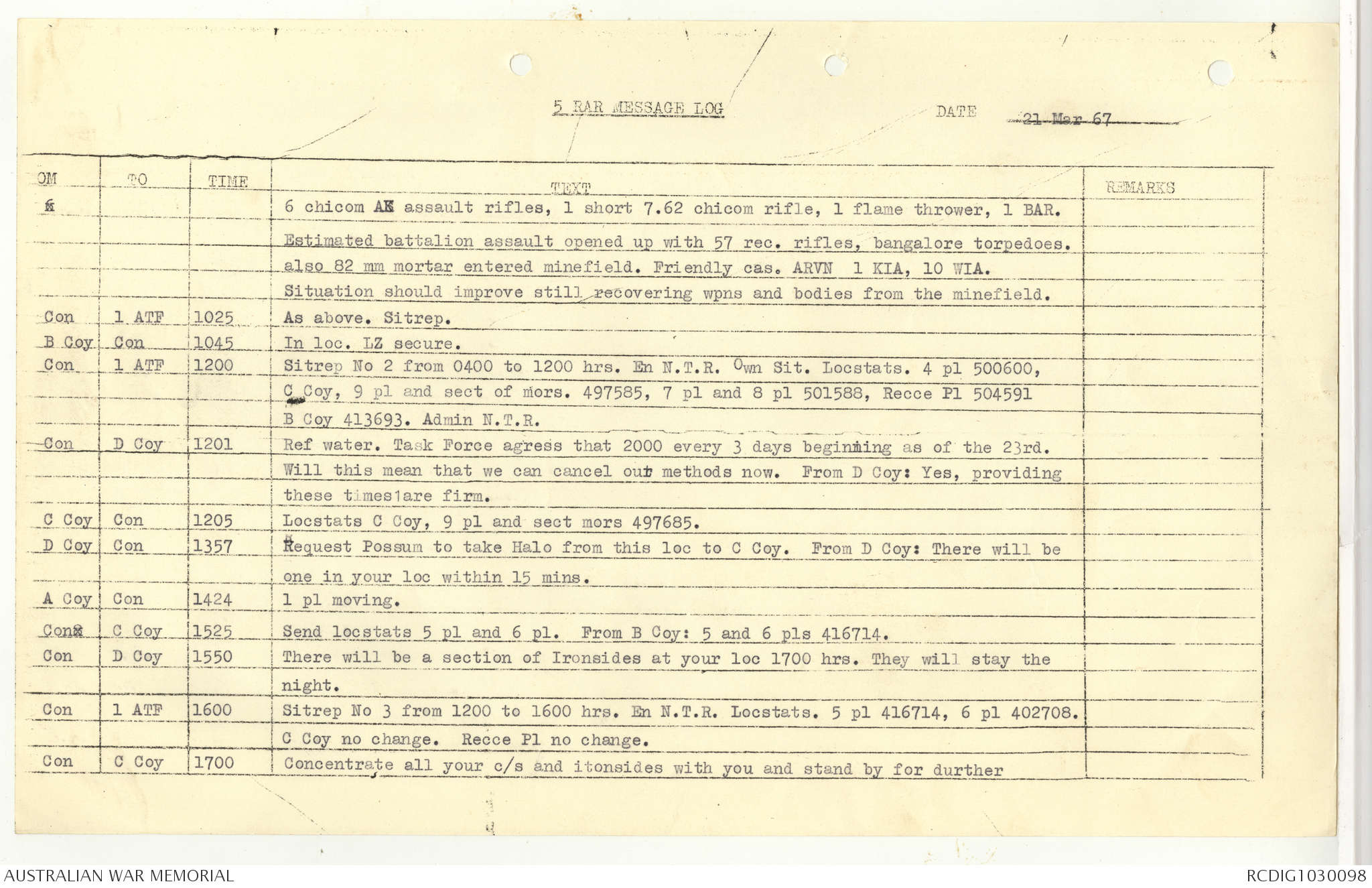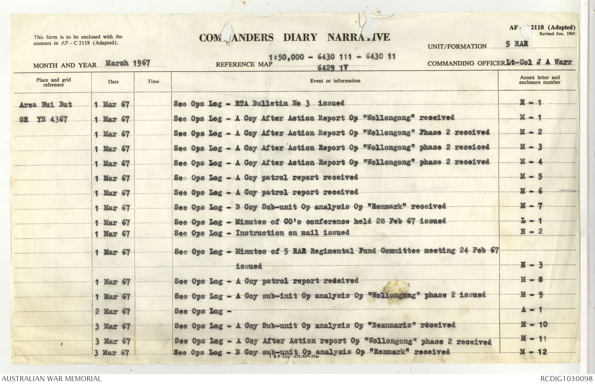 AWM95 7/5/15 - 1-31 March 1967, Narrative, Operation log