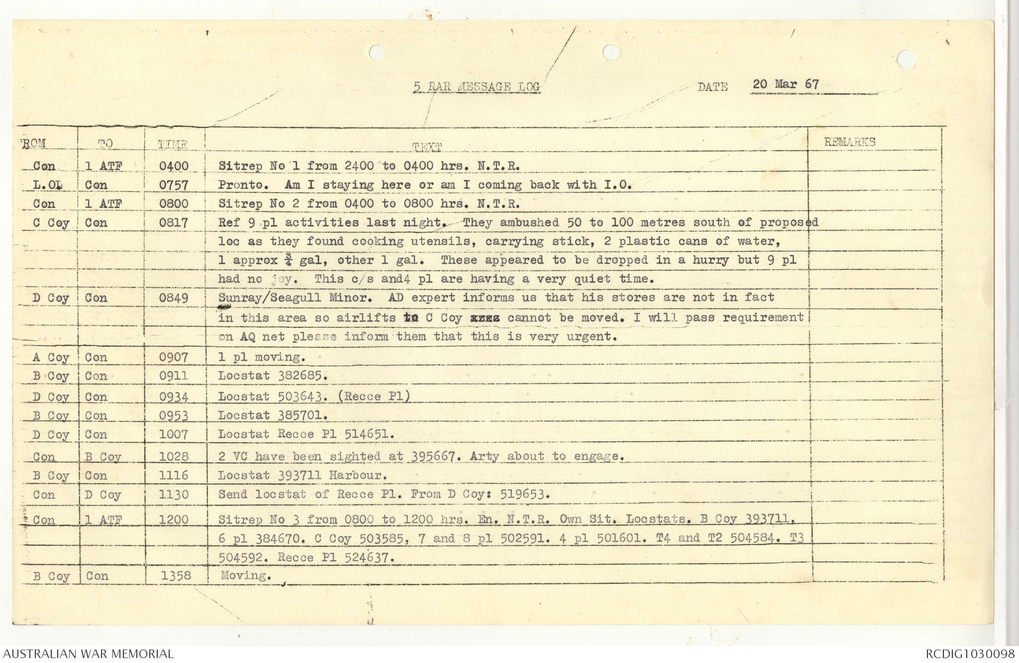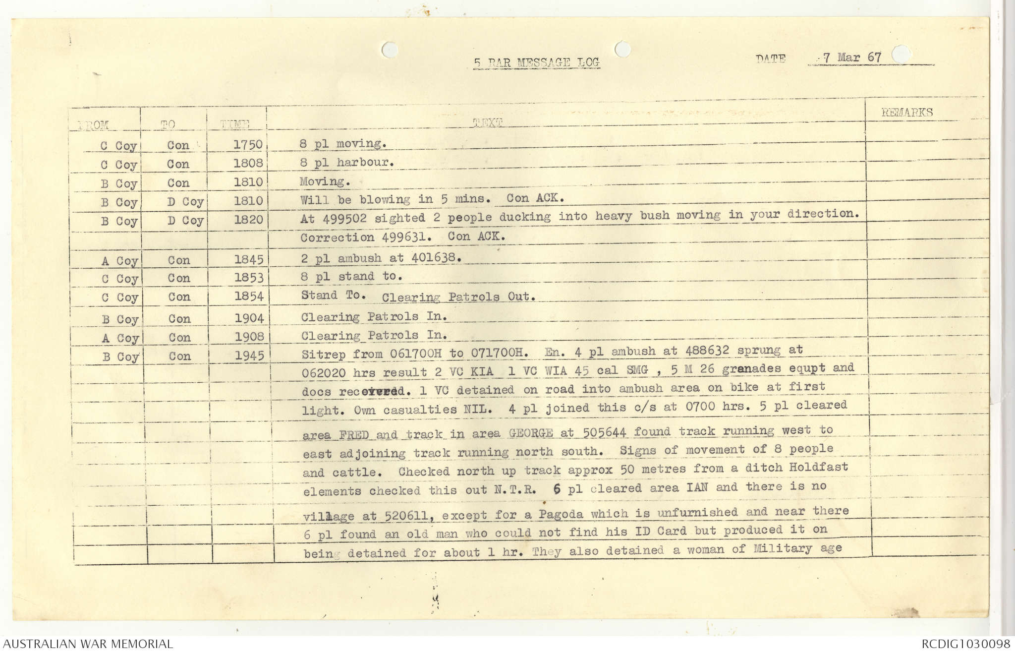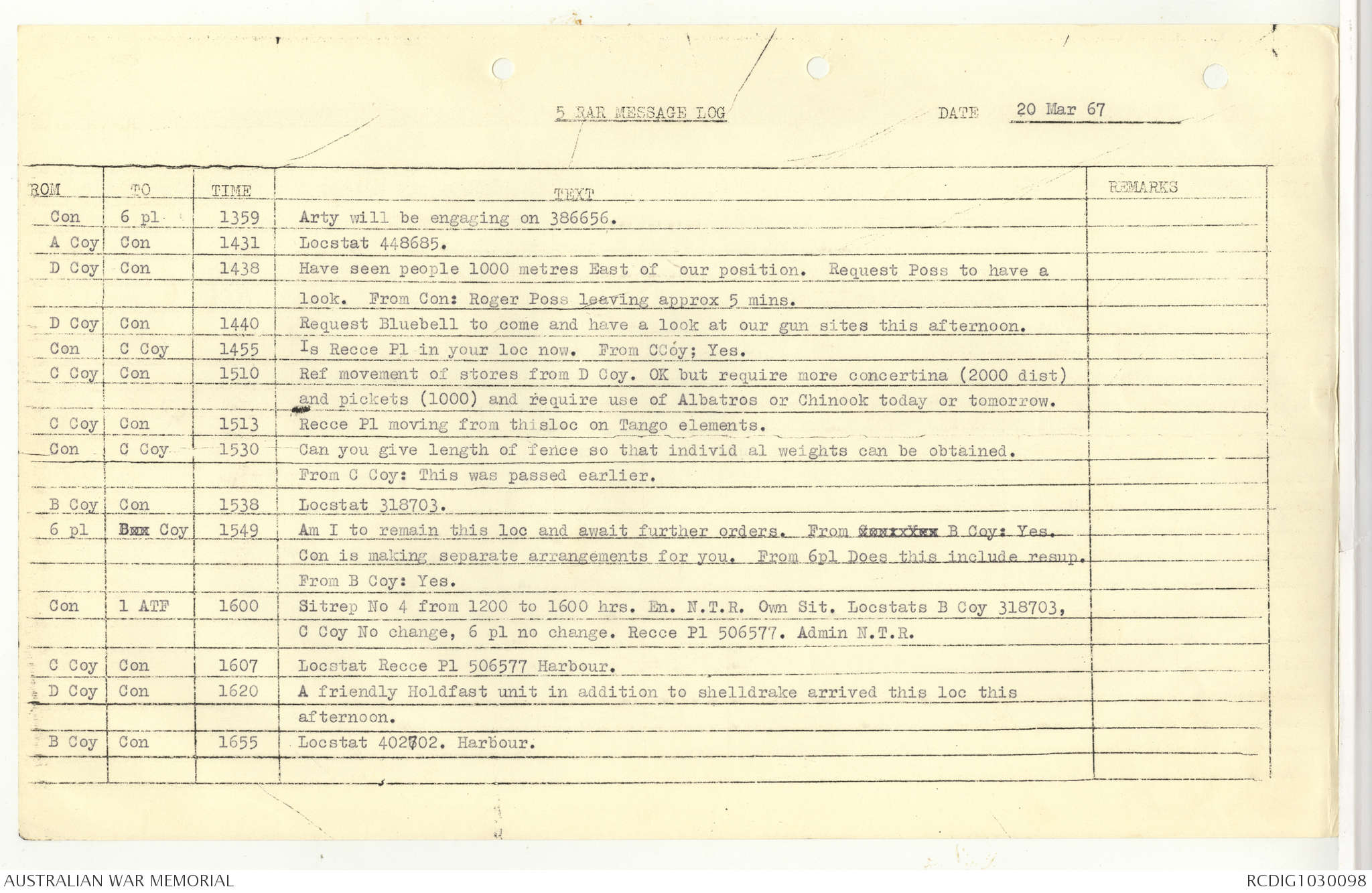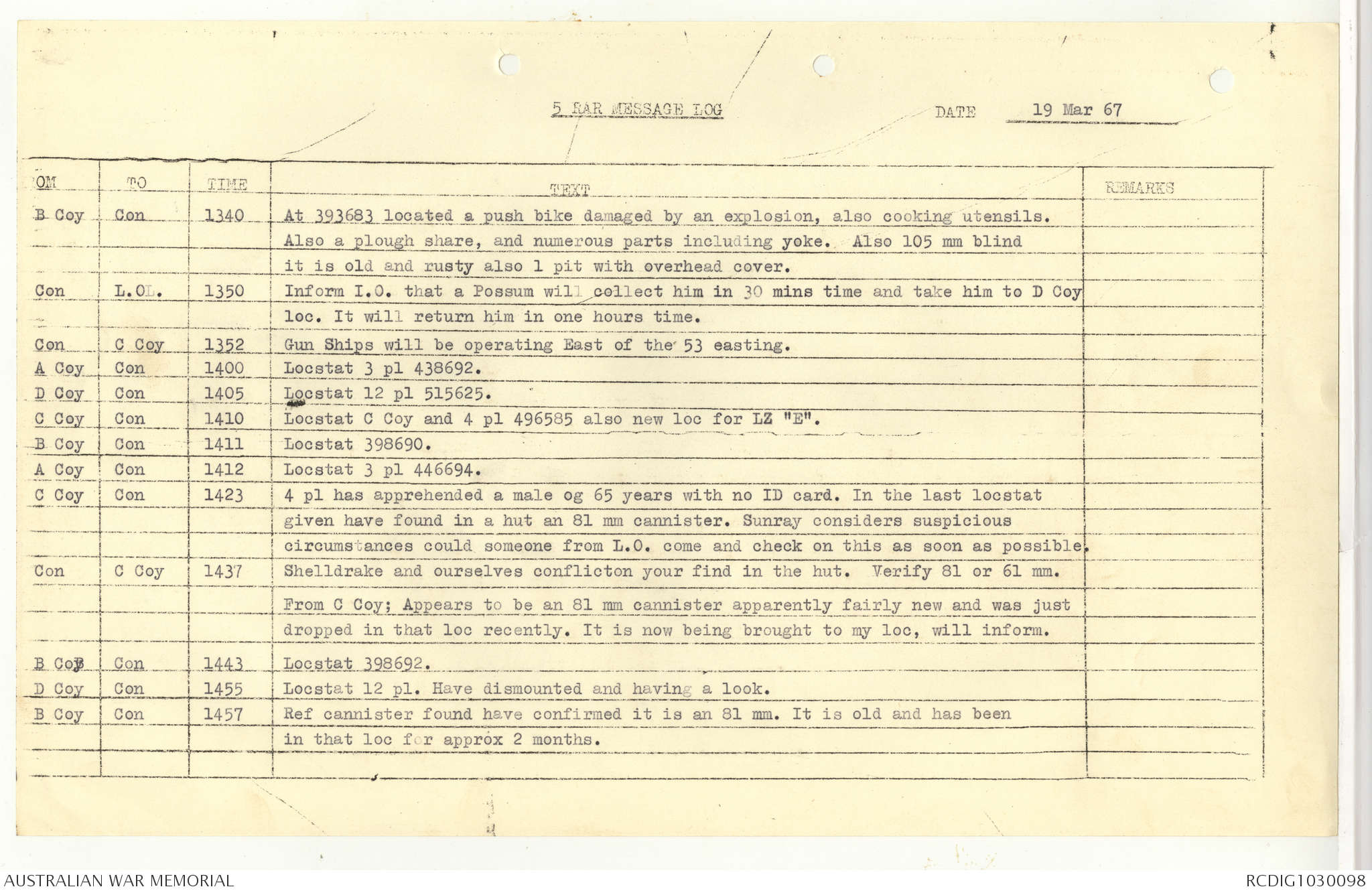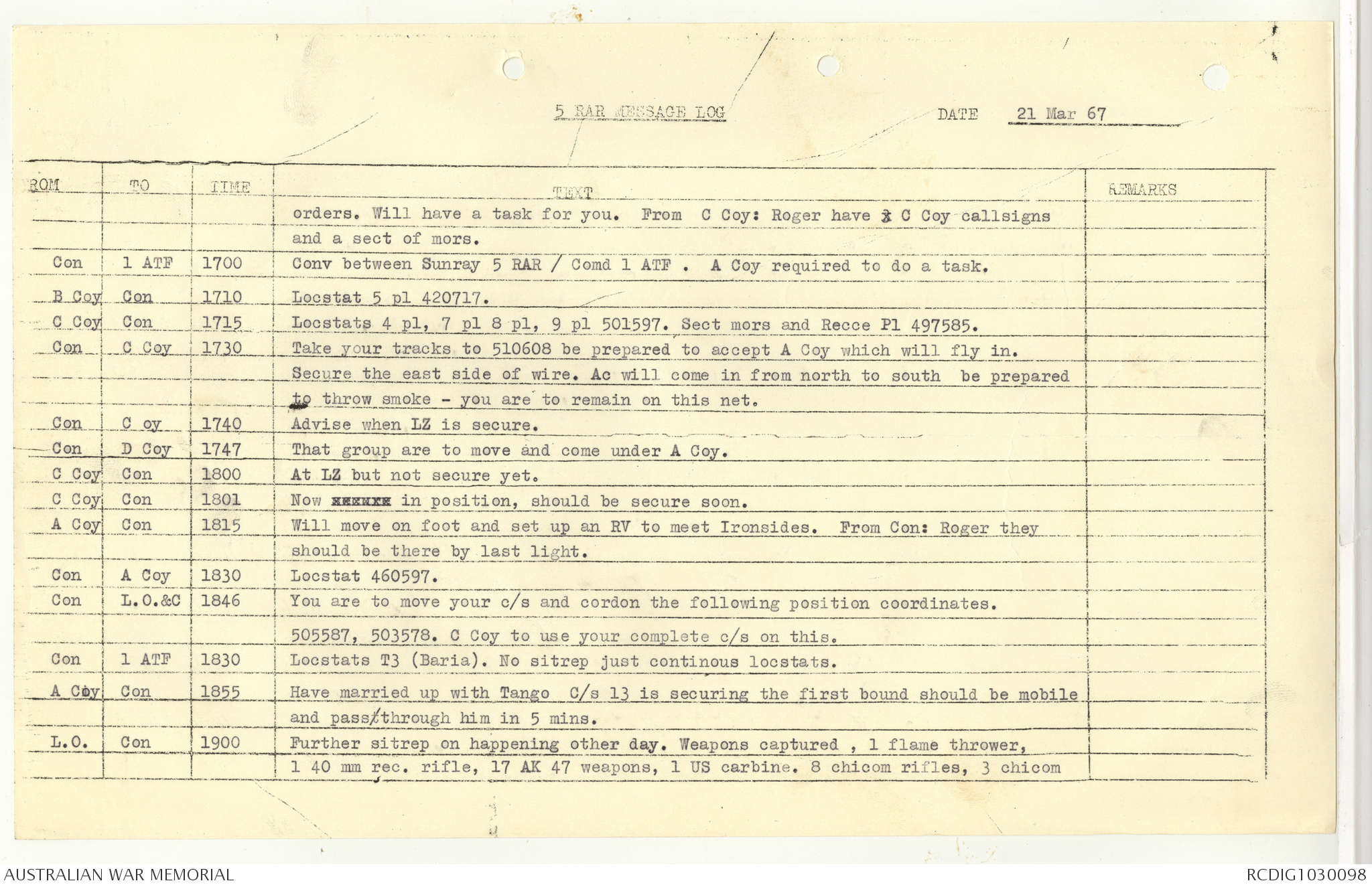 AWM95 7/5/15 - 1-31 March 1967, Narrative, Operation log
