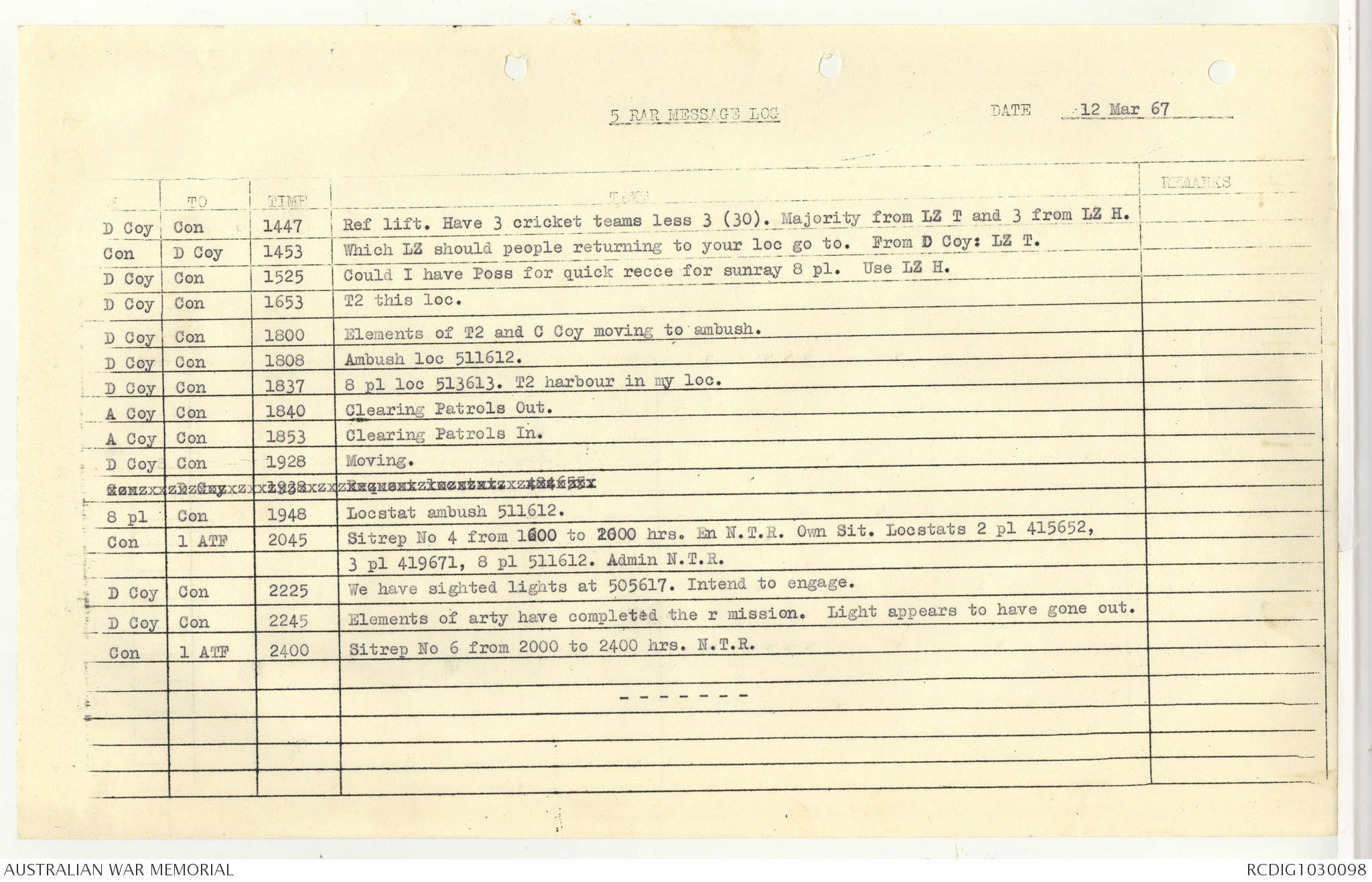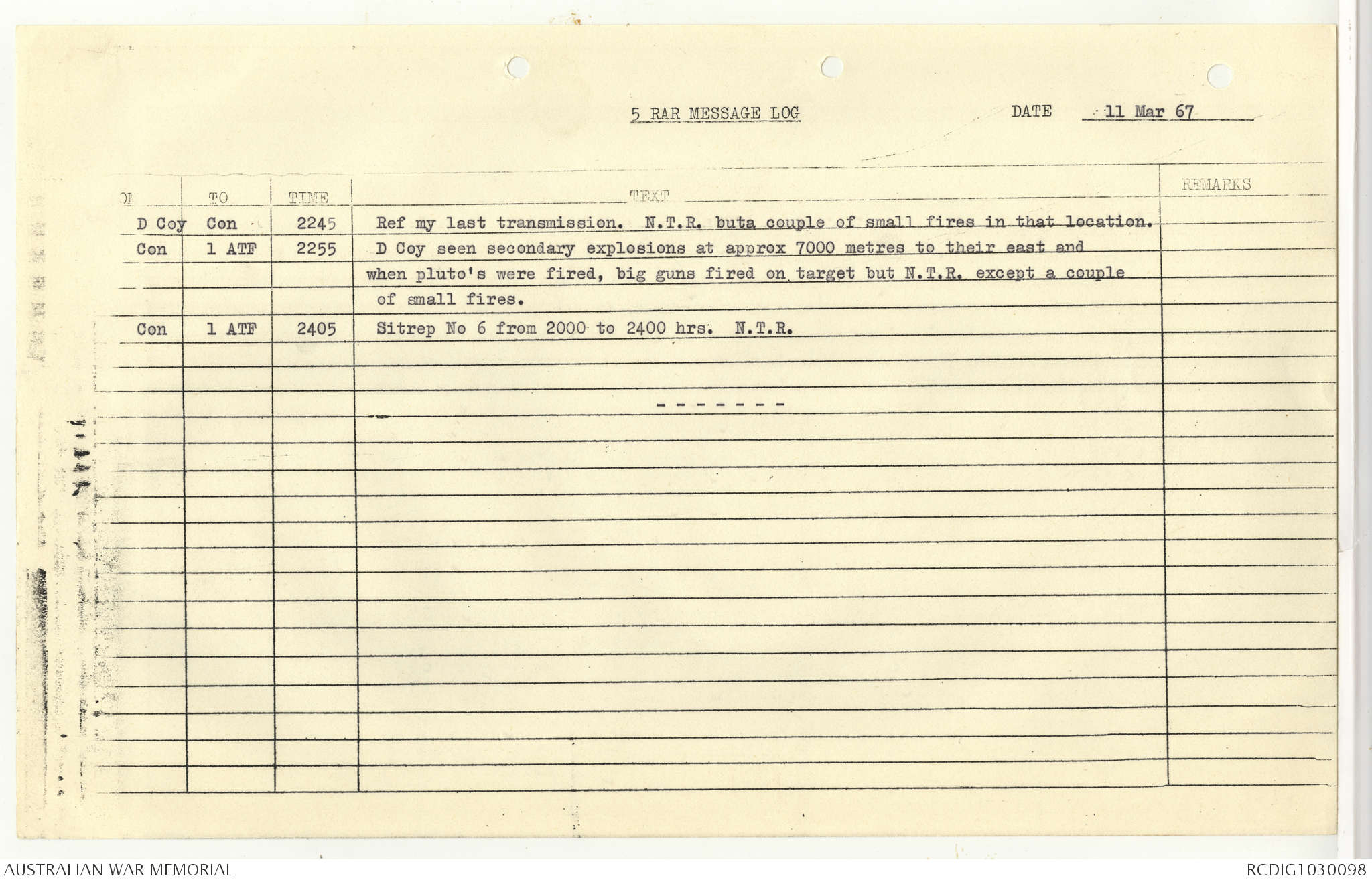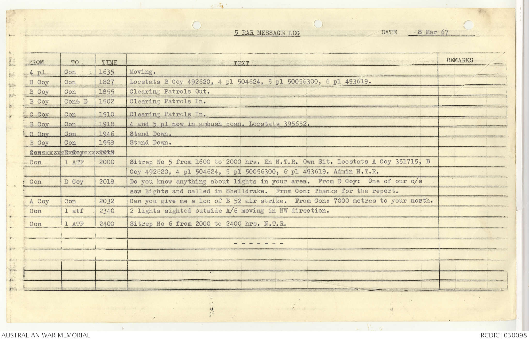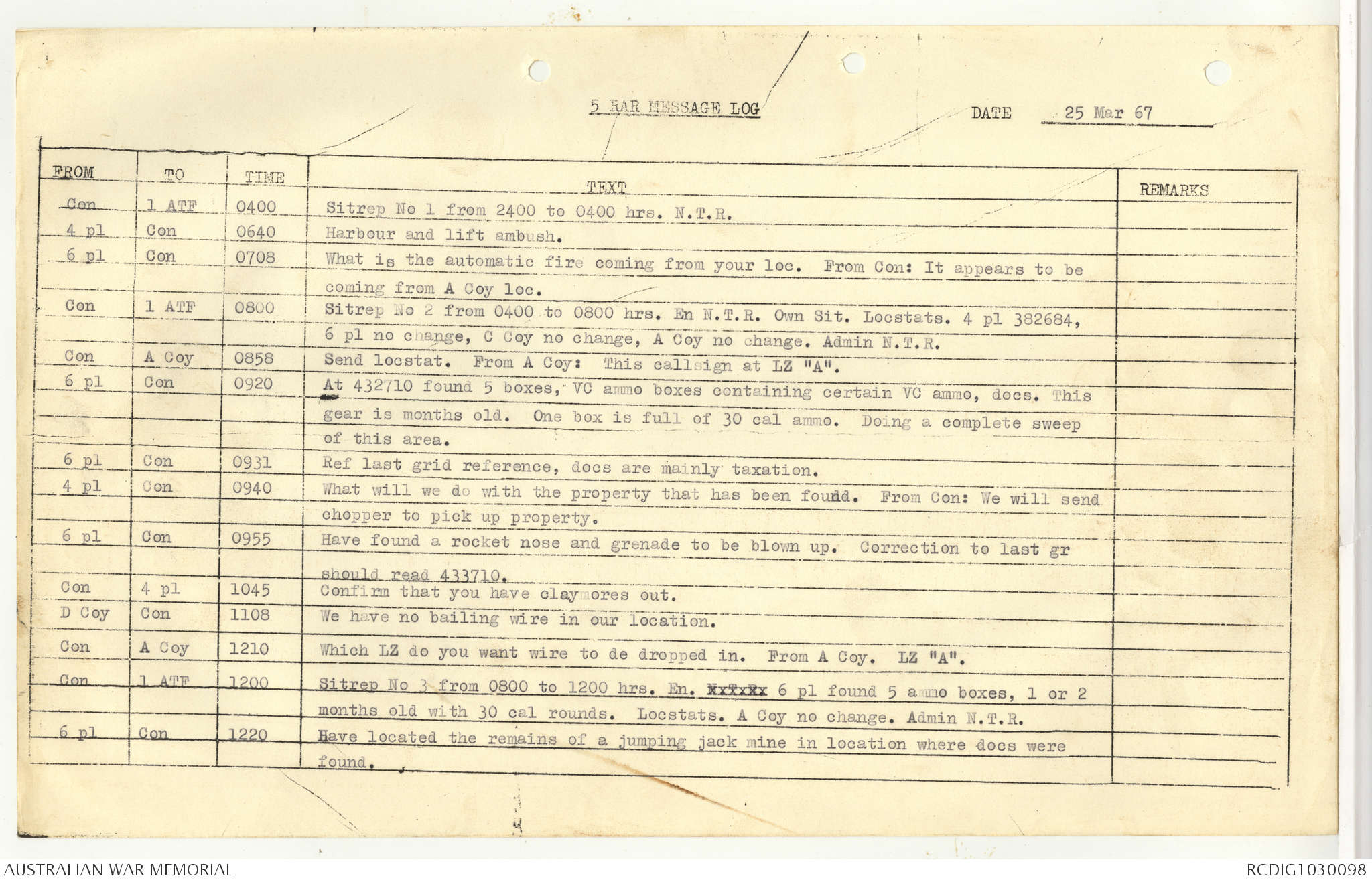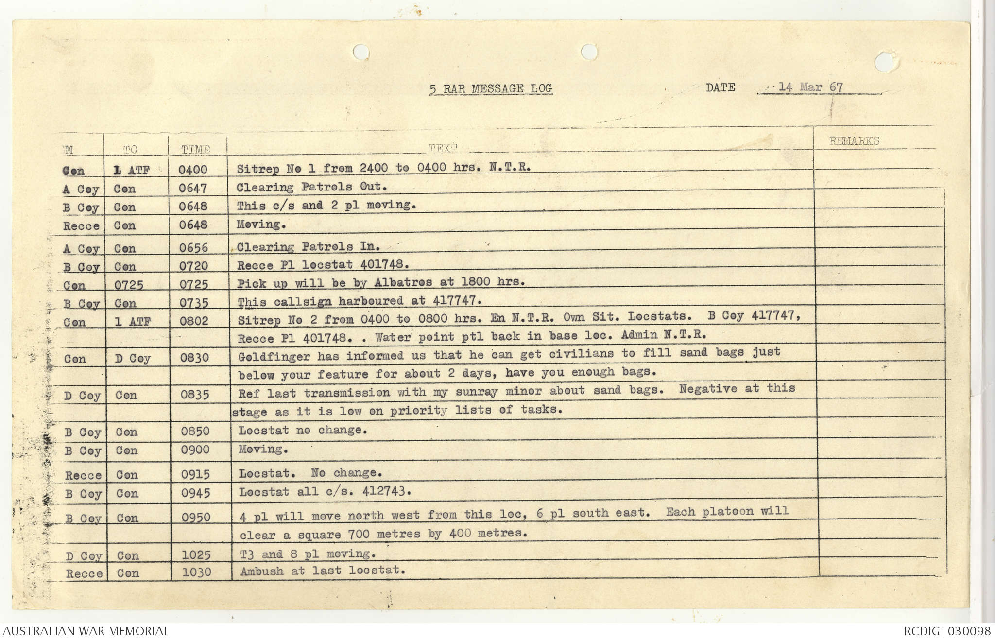 AWM95 7/5/15 - 1-31 March 1967, Narrative, Operation log