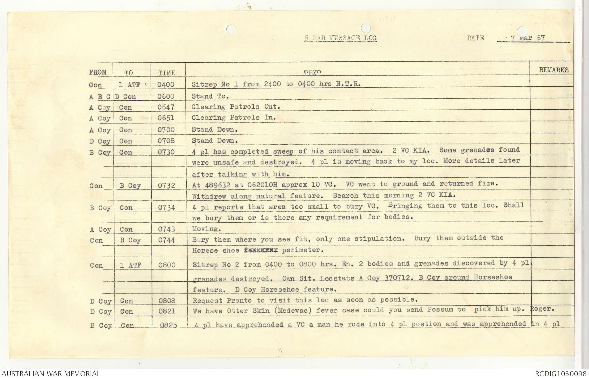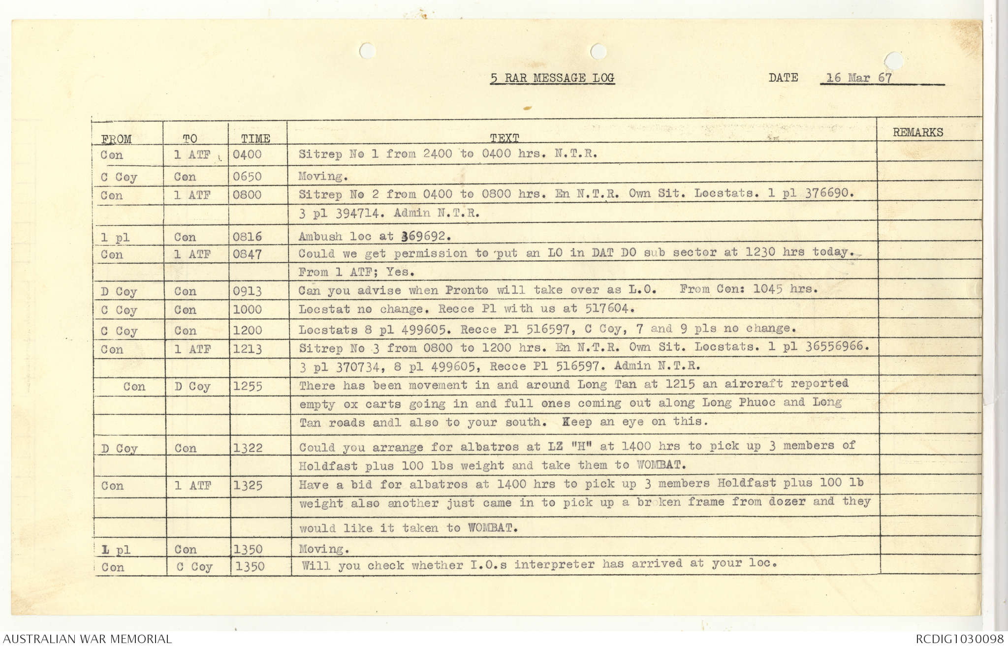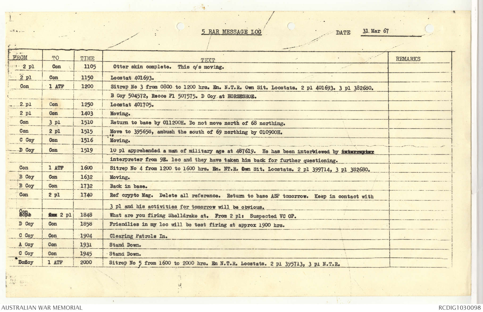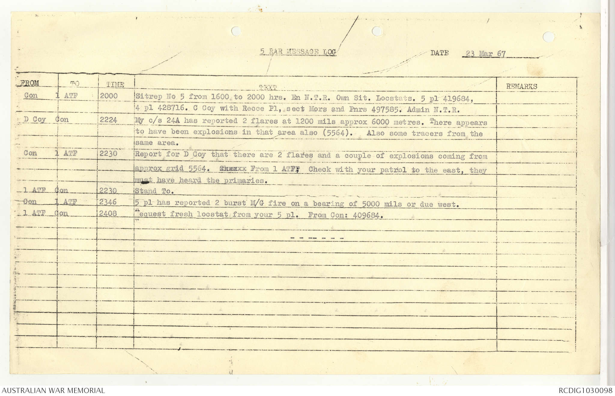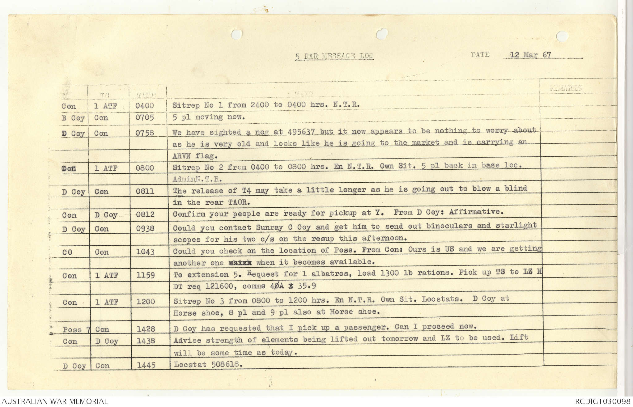 AWM95 7/5/15 - 1-31 March 1967, Narrative, Operation log
