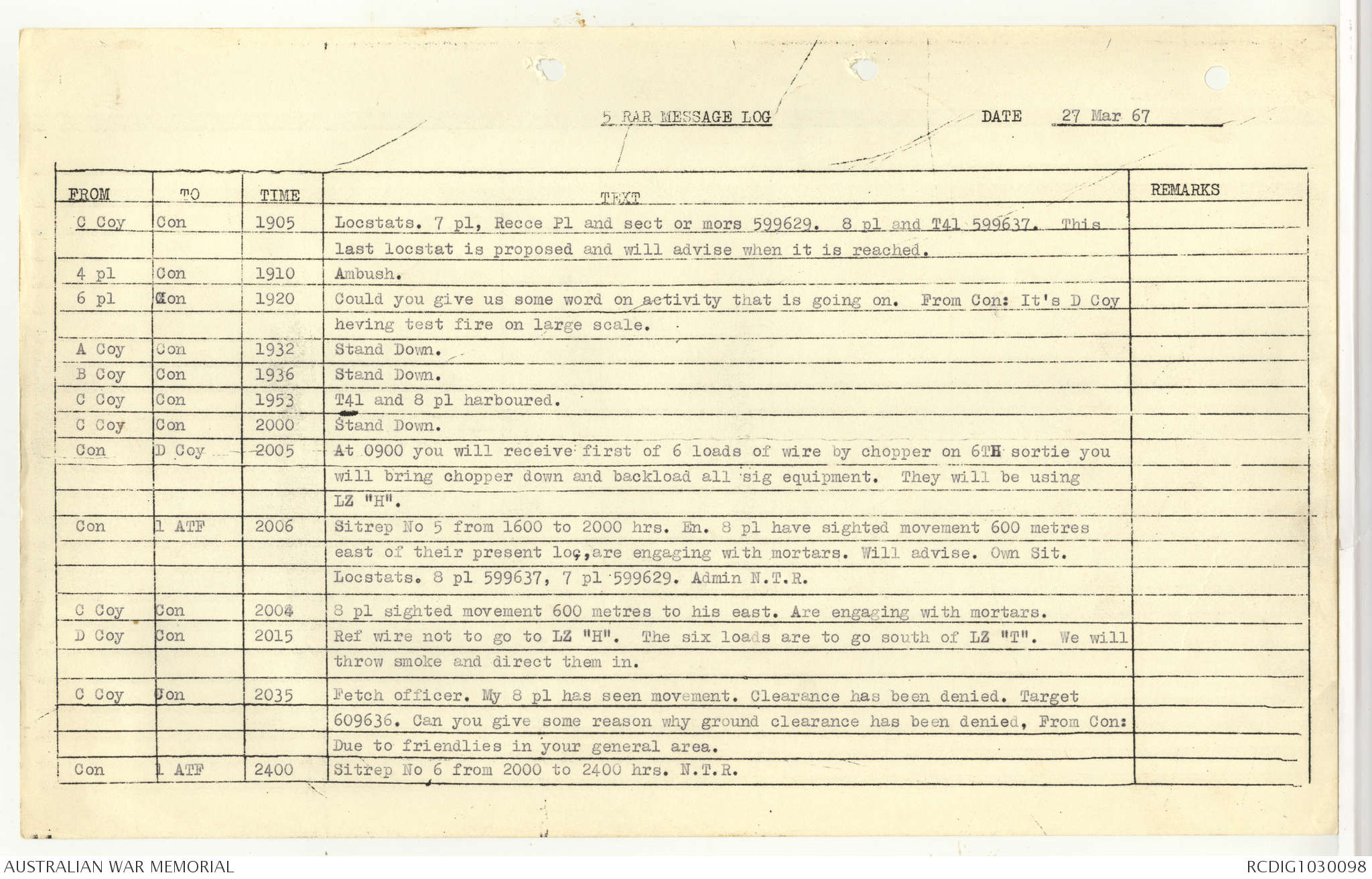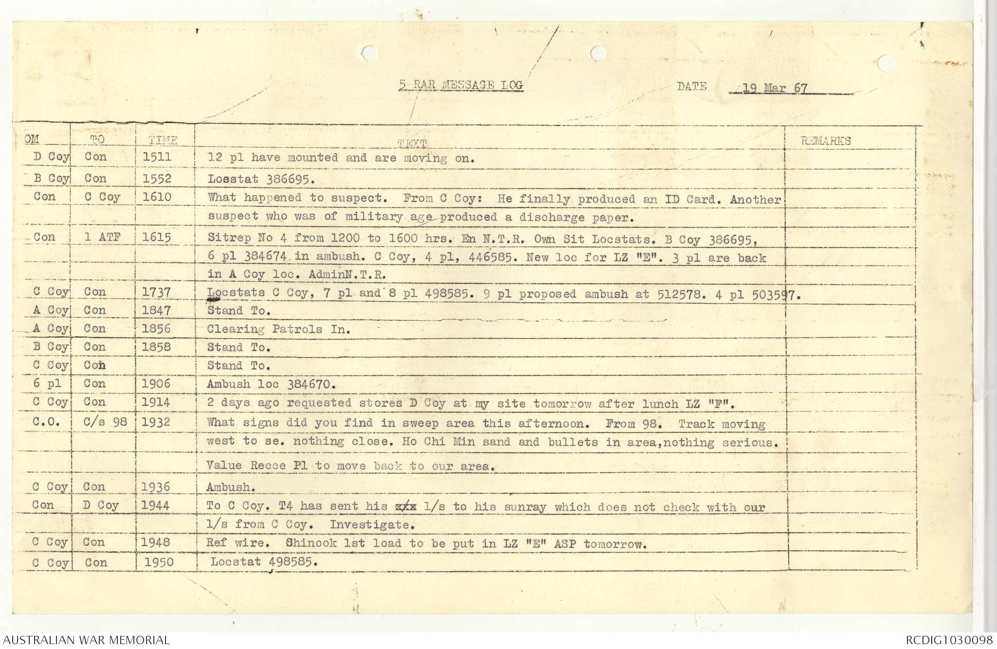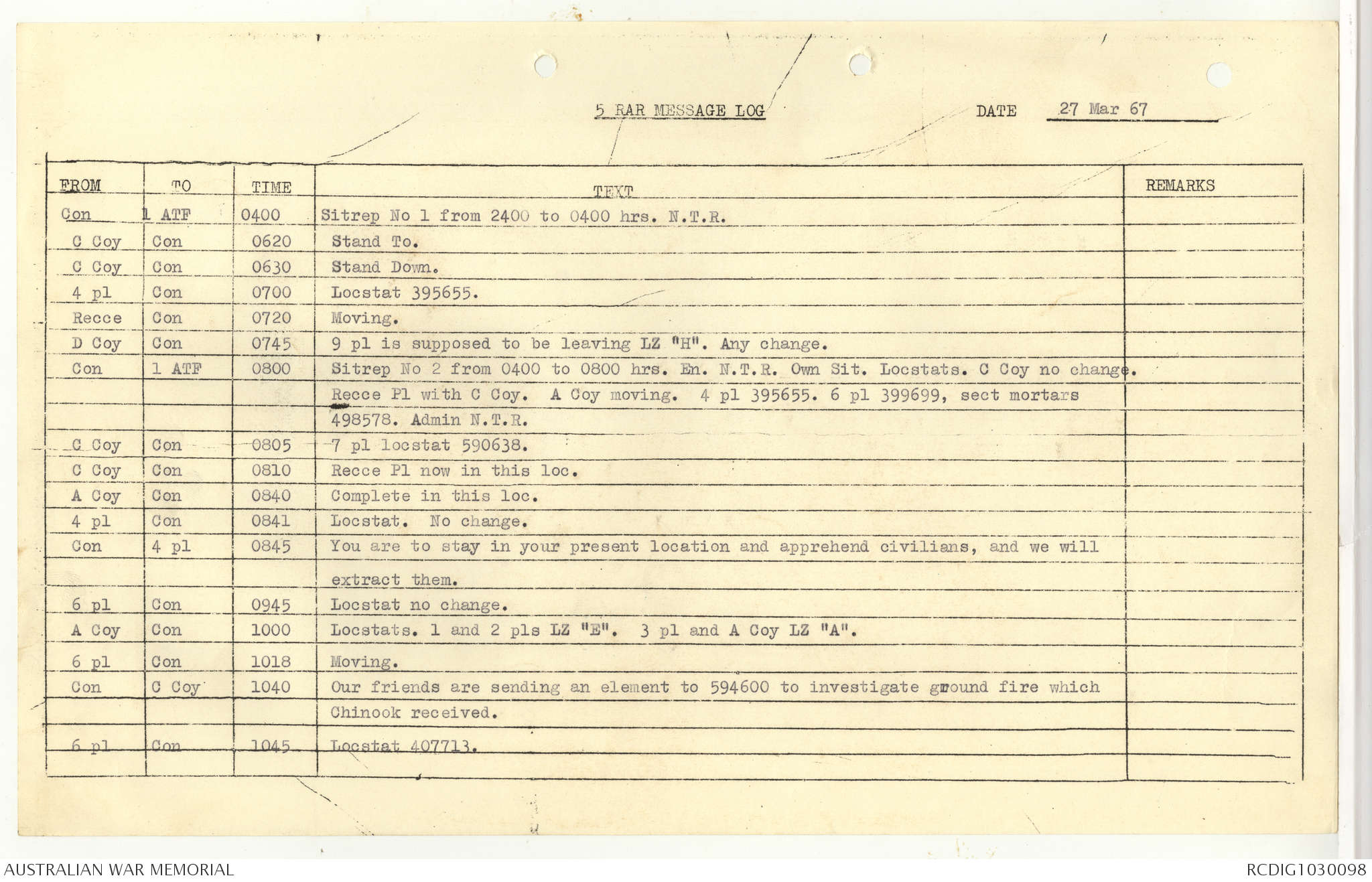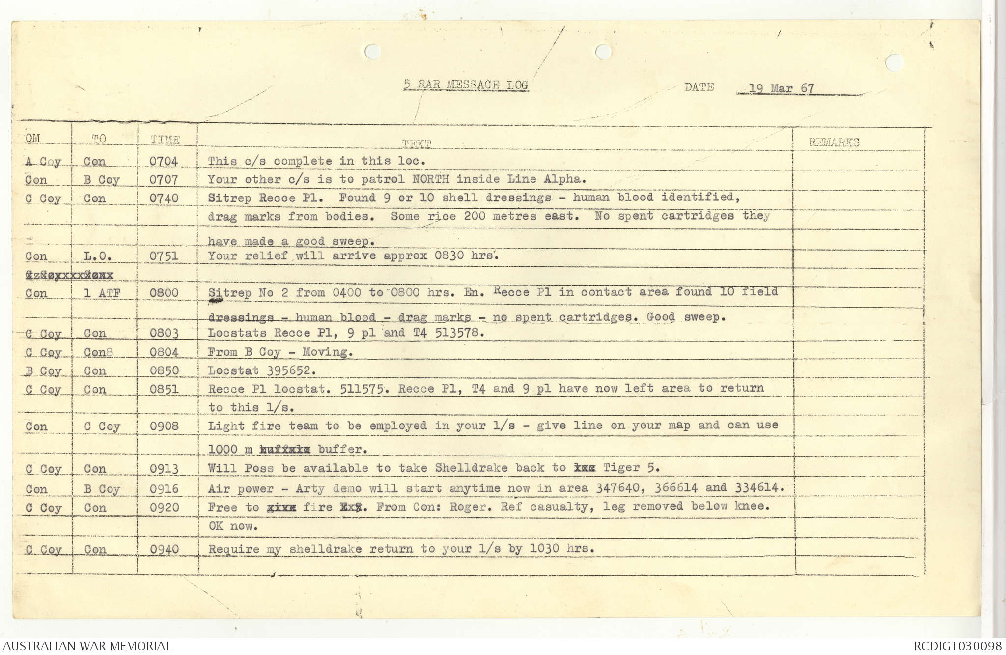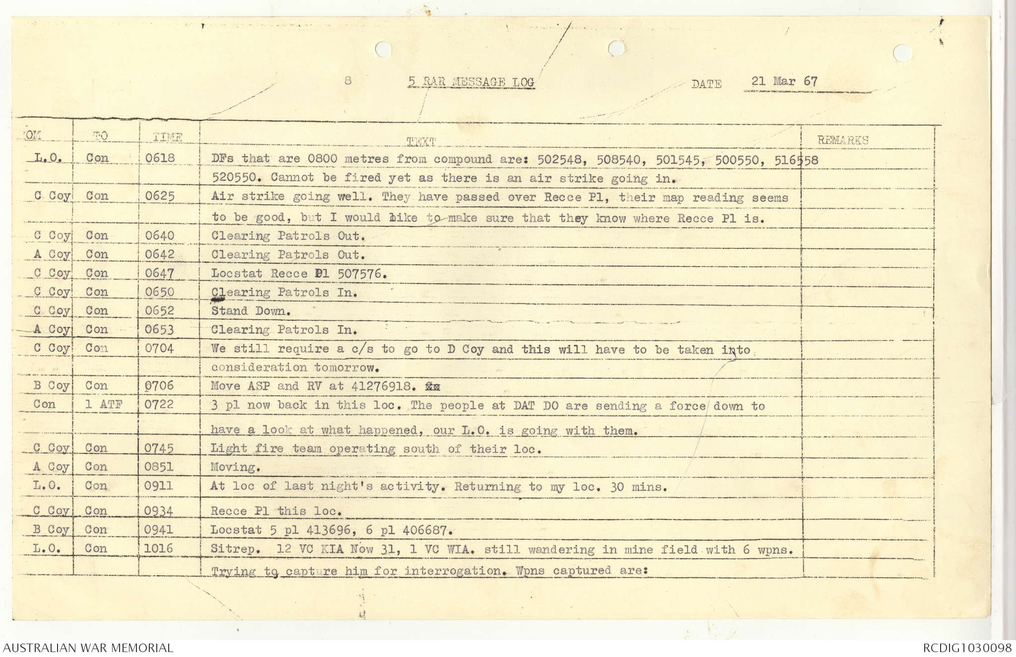 AWM95 7/5/15 - 1-31 March 1967, Narrative, Operation log