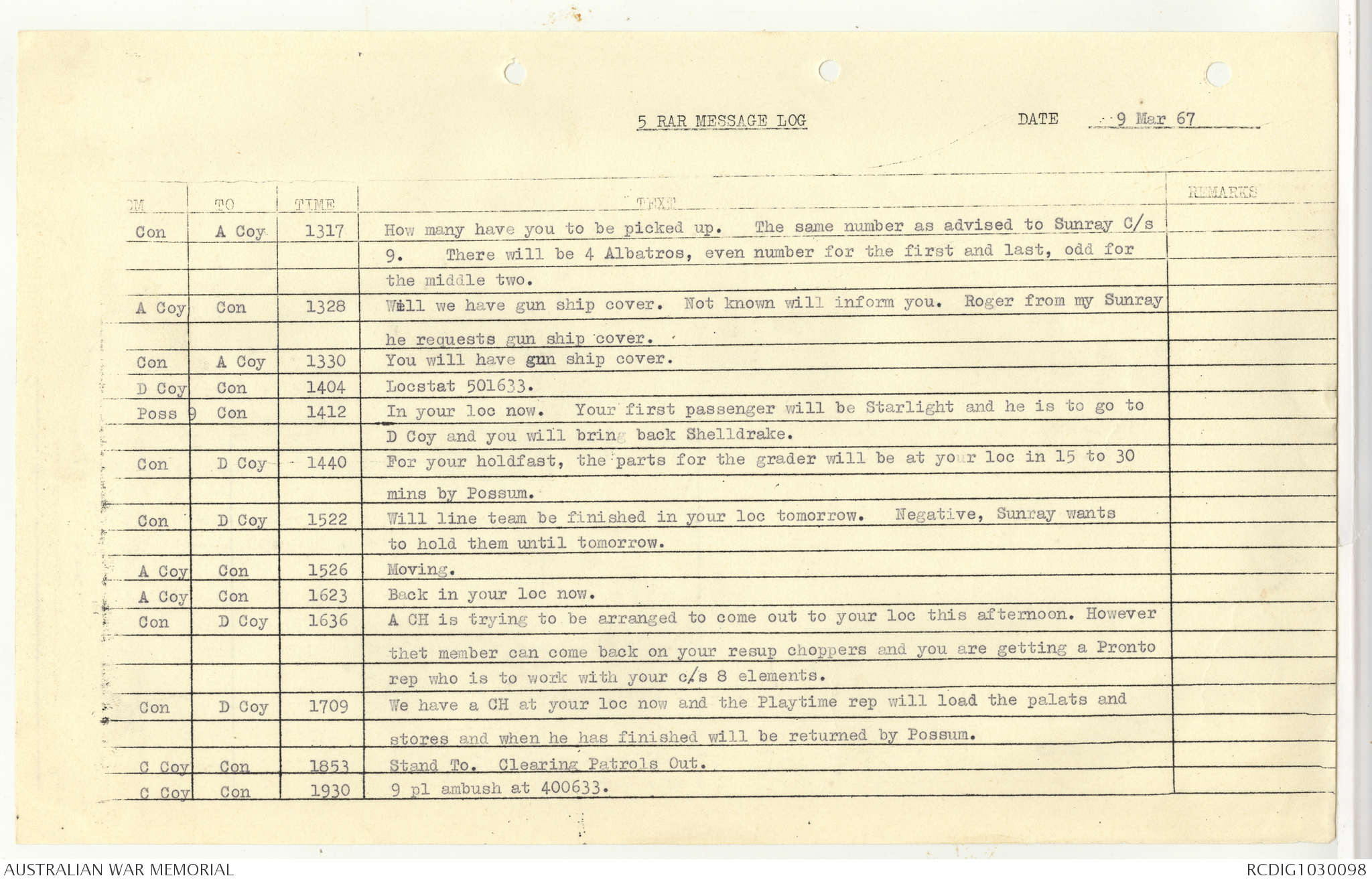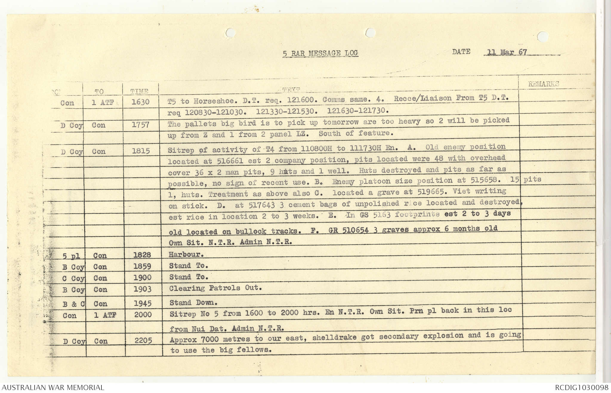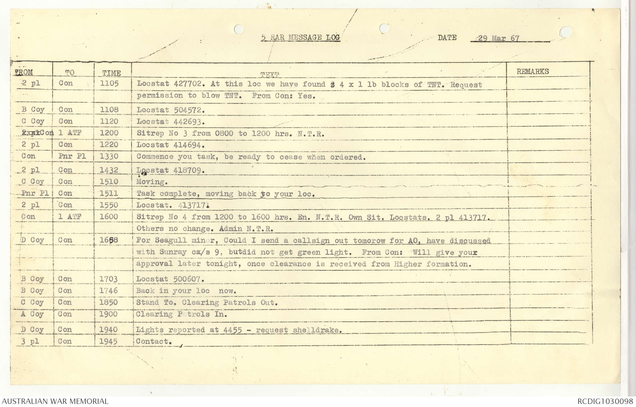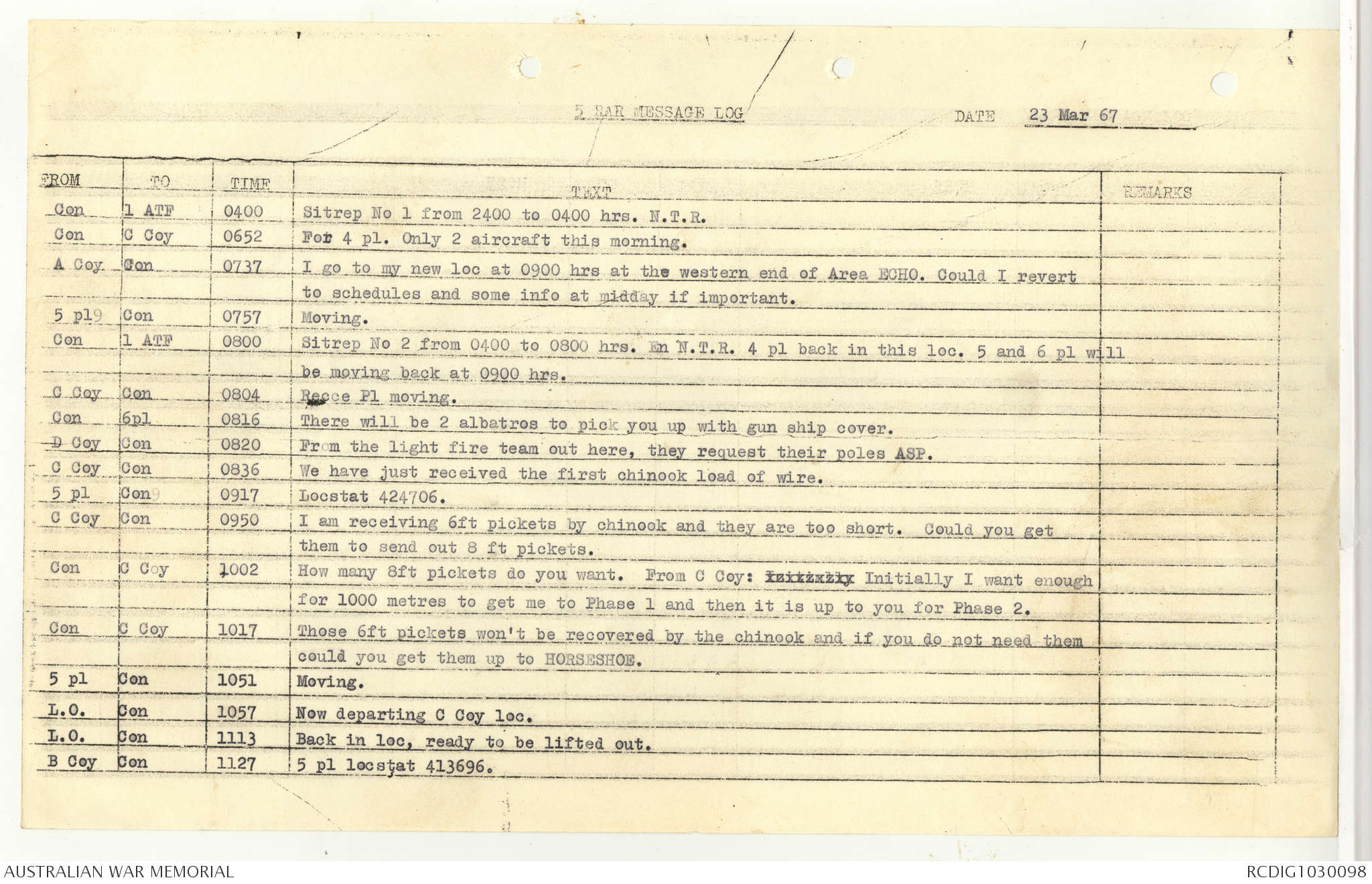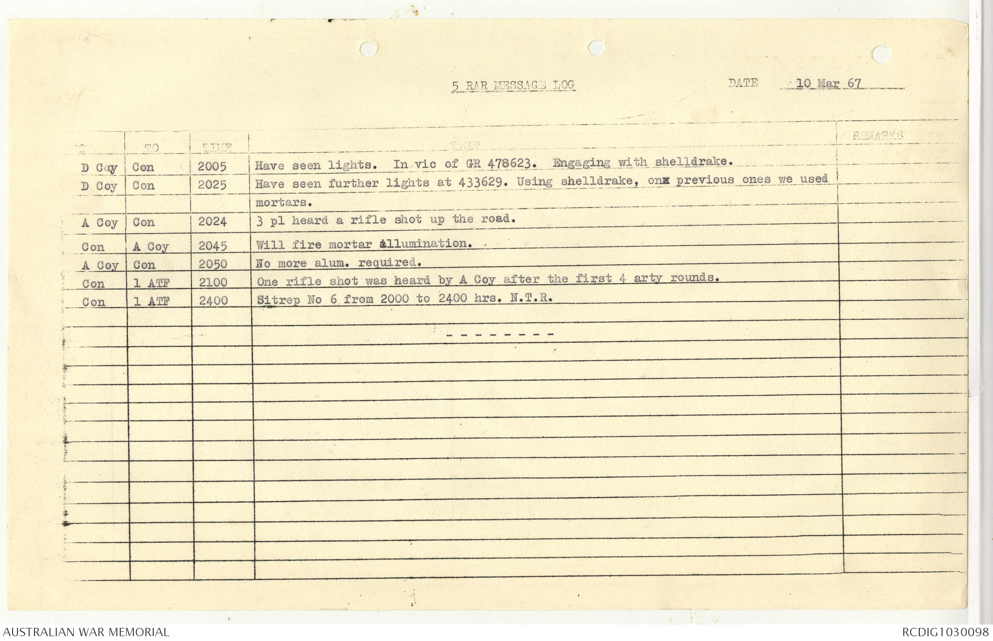 AWM95 7/5/15 - 1-31 March 1967, Narrative, Operation log