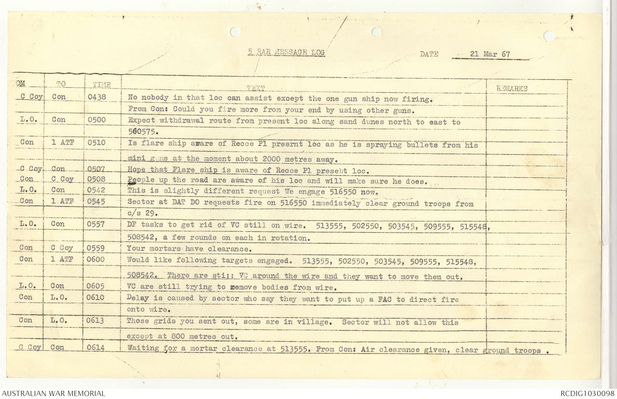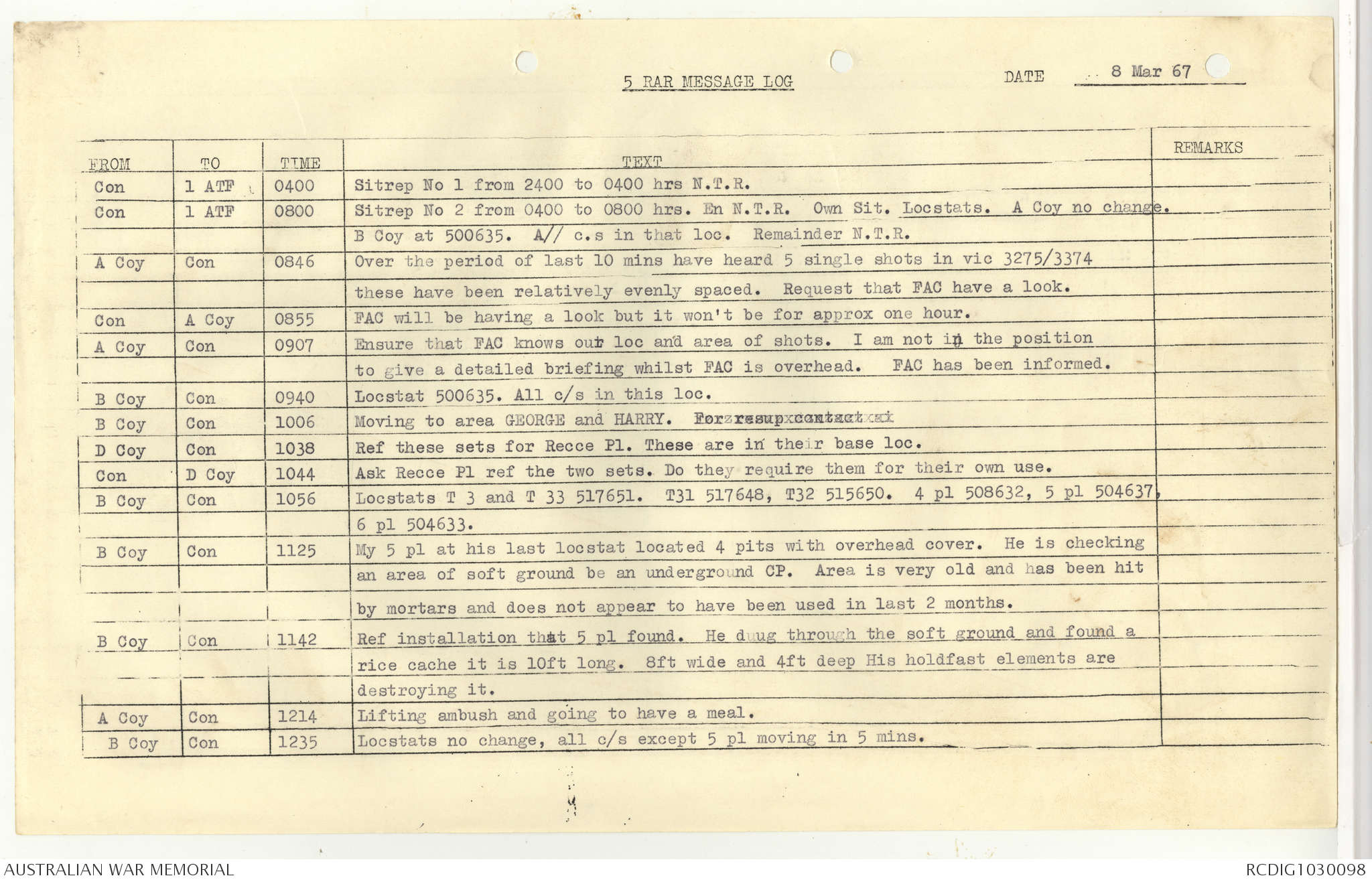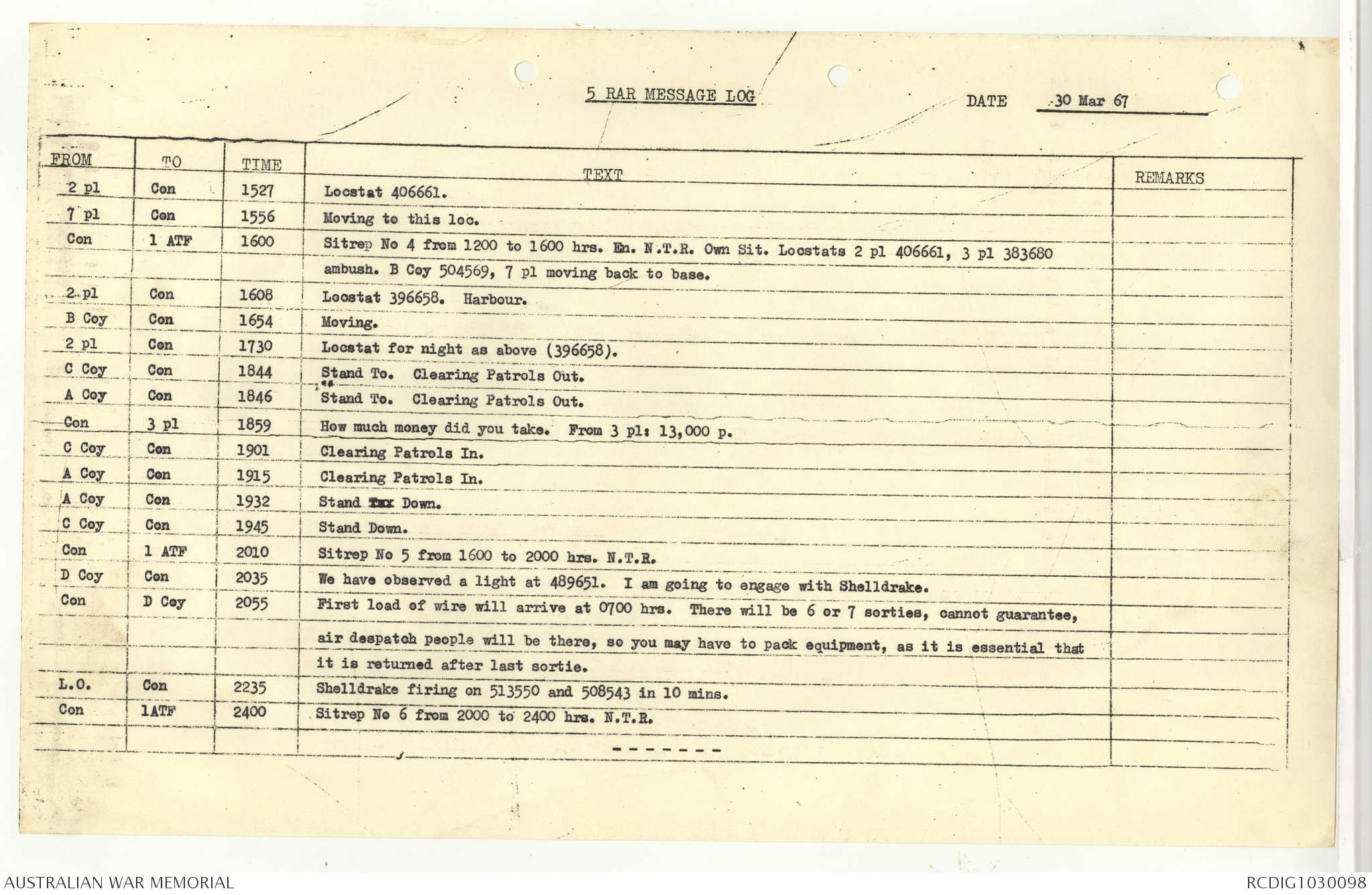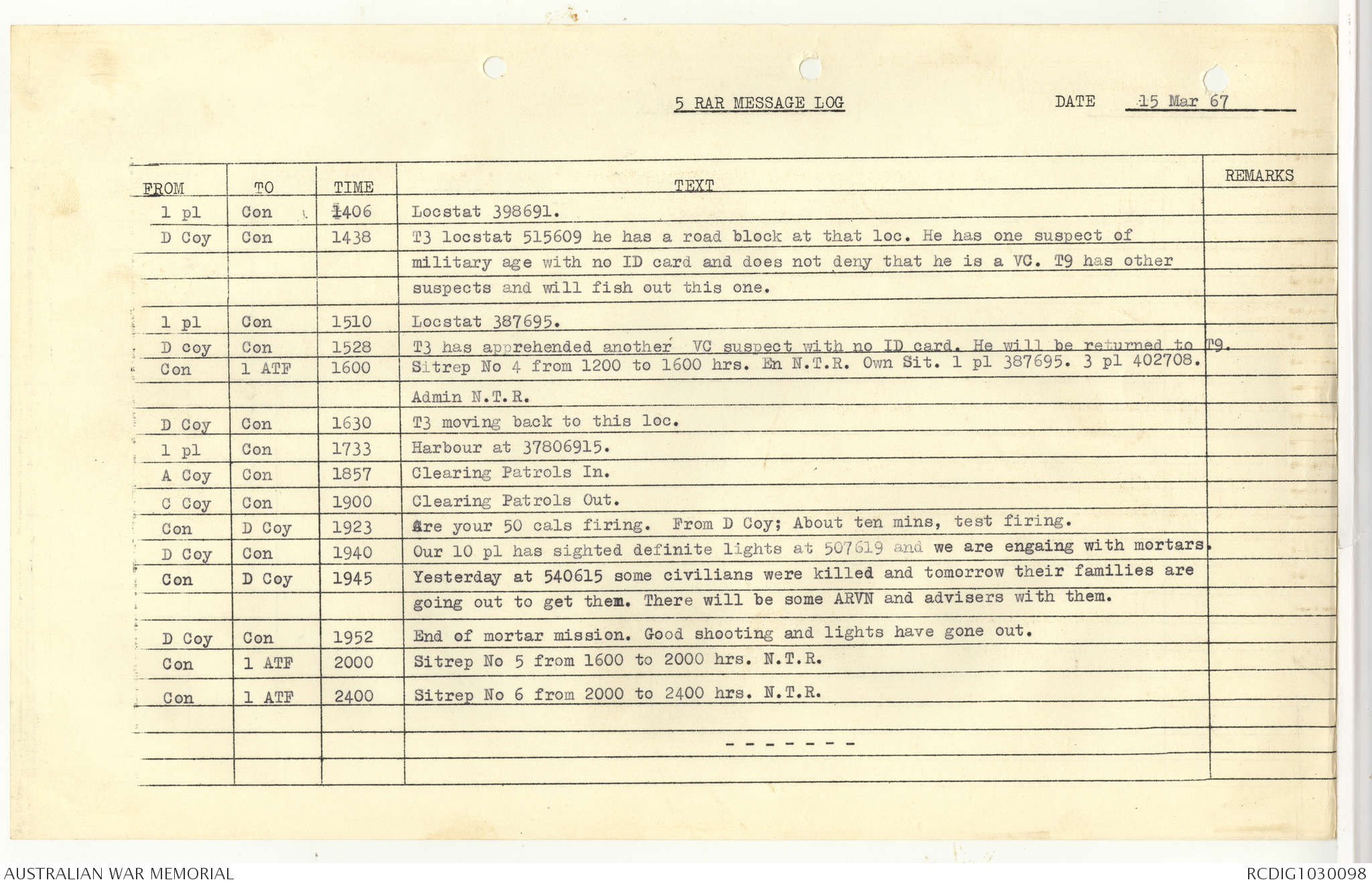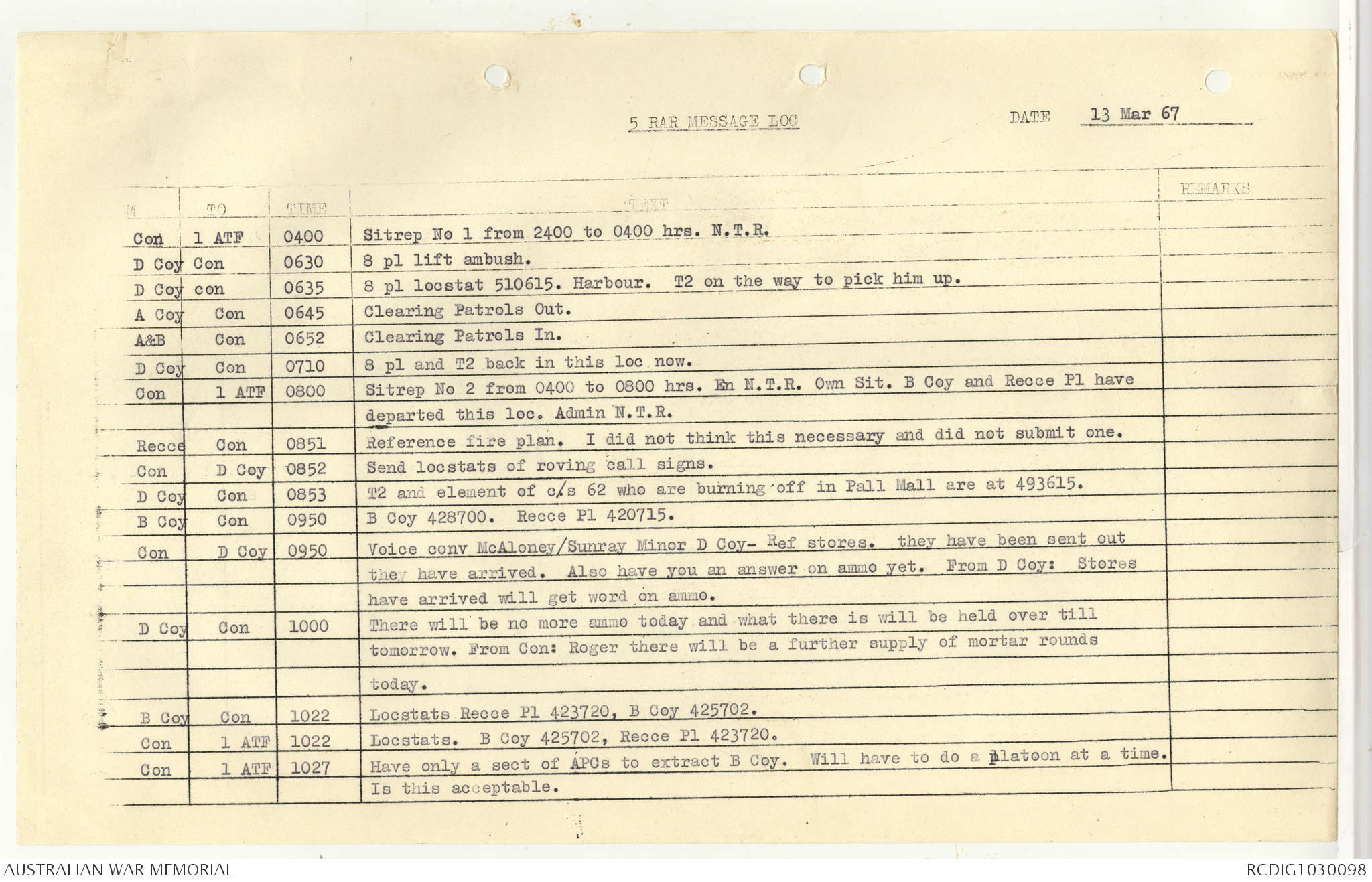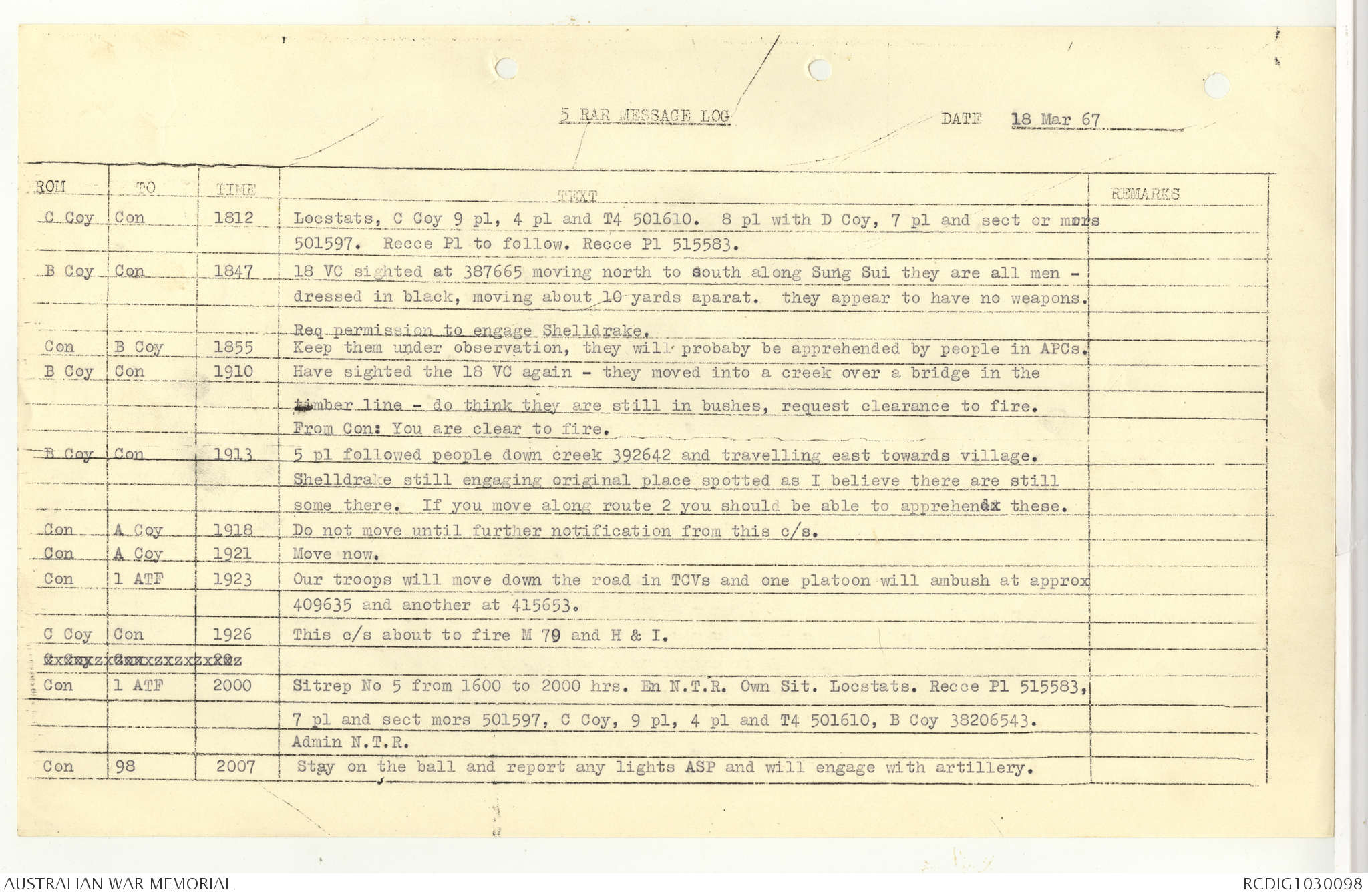 AWM95 7/5/15 - 1-31 March 1967, Narrative, Operation log