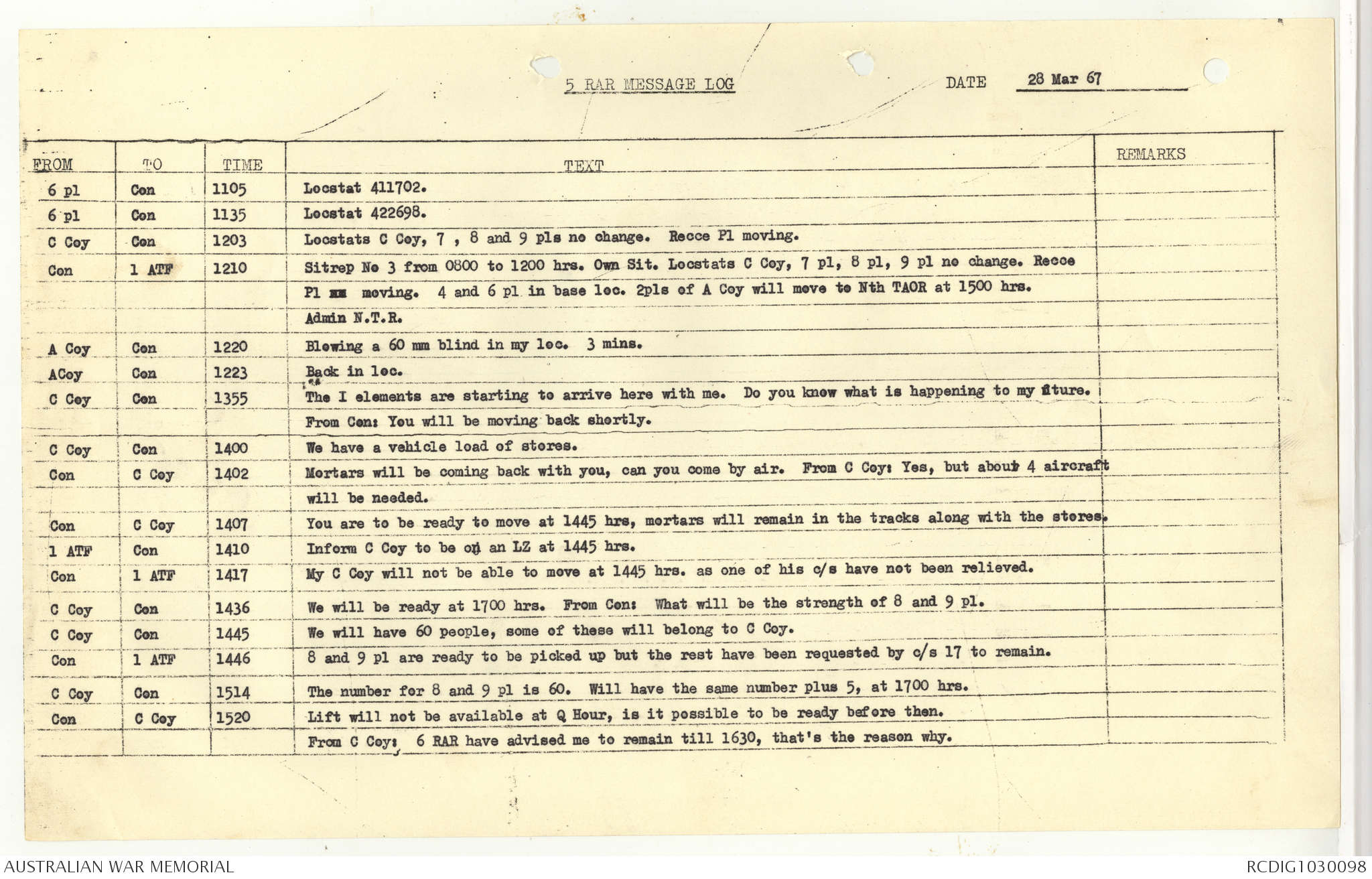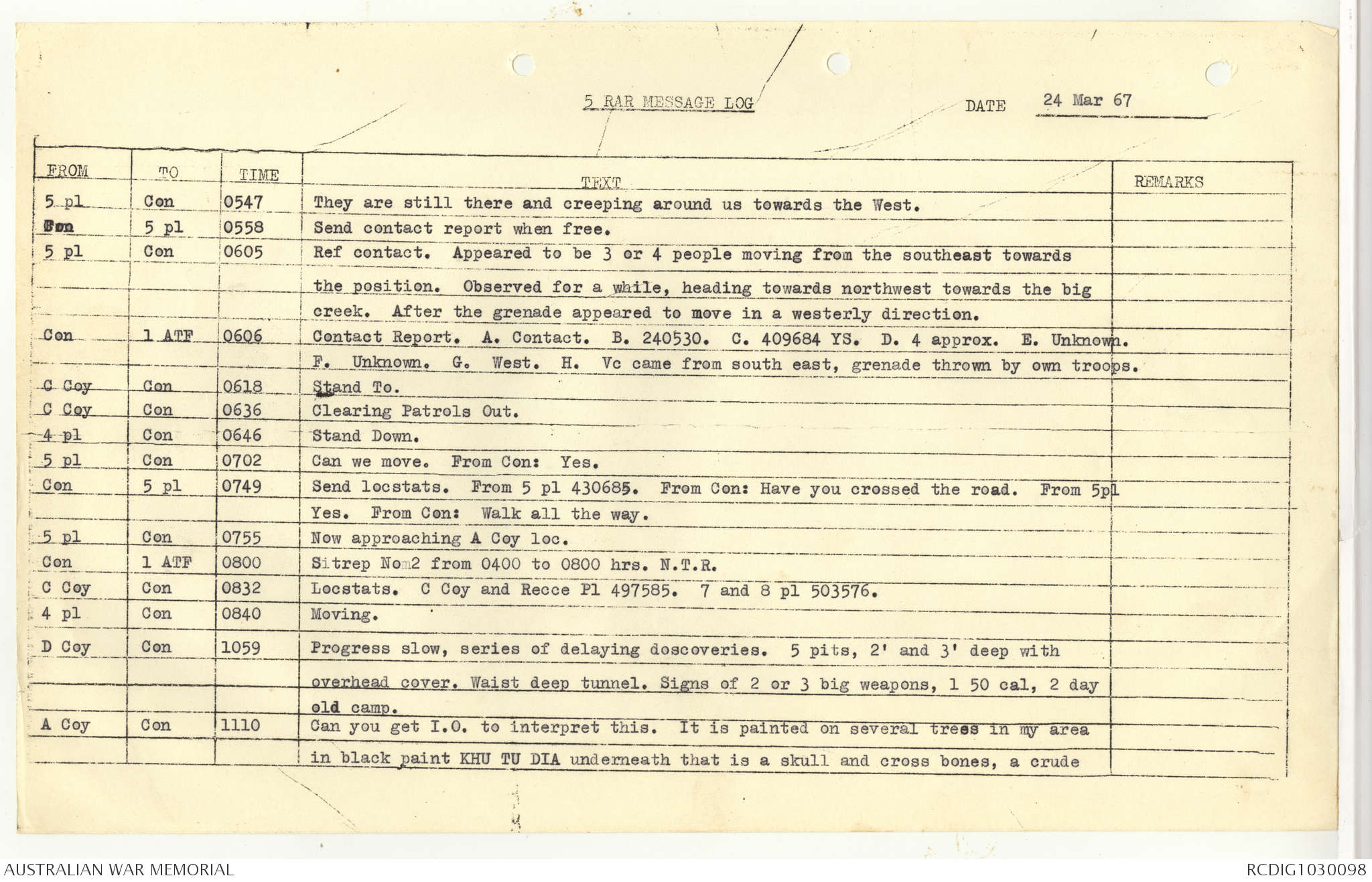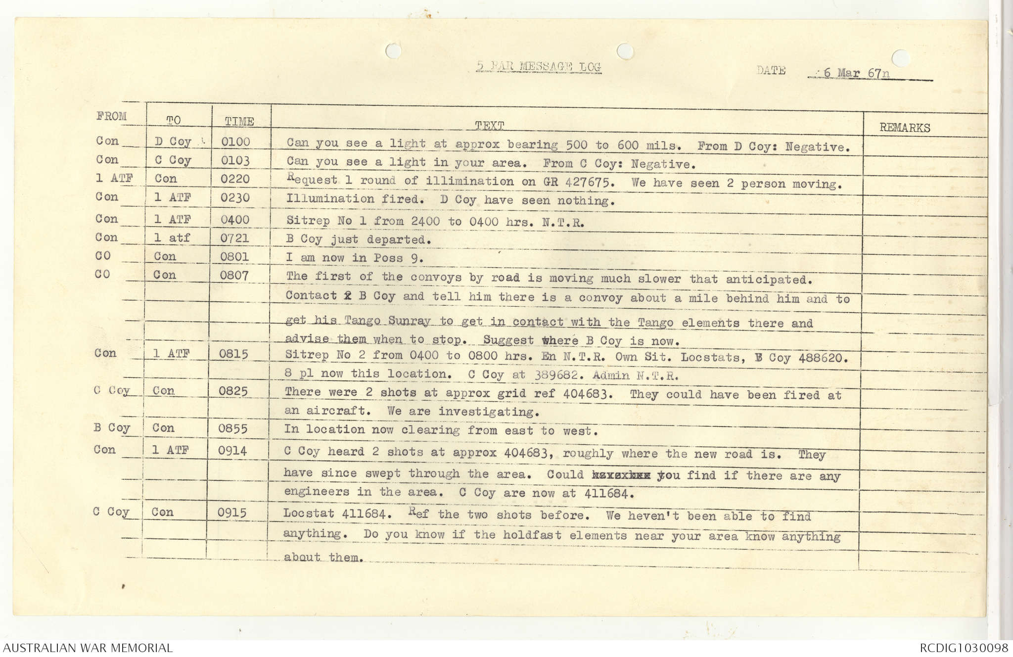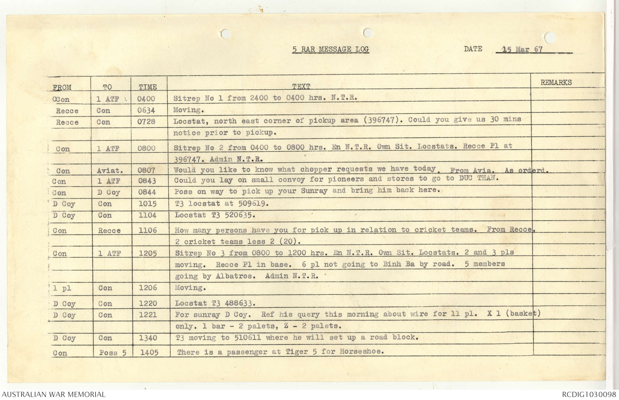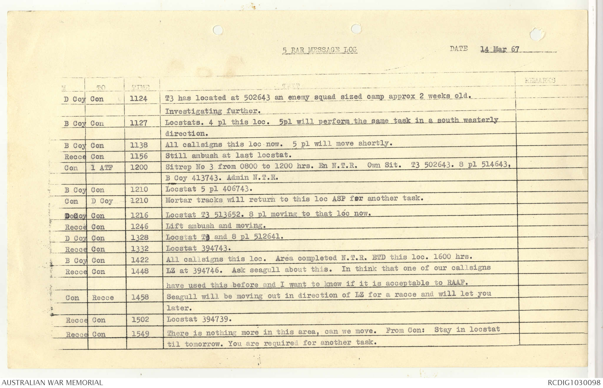 AWM95 7/5/15 - 1-31 March 1967, Narrative, Operation log