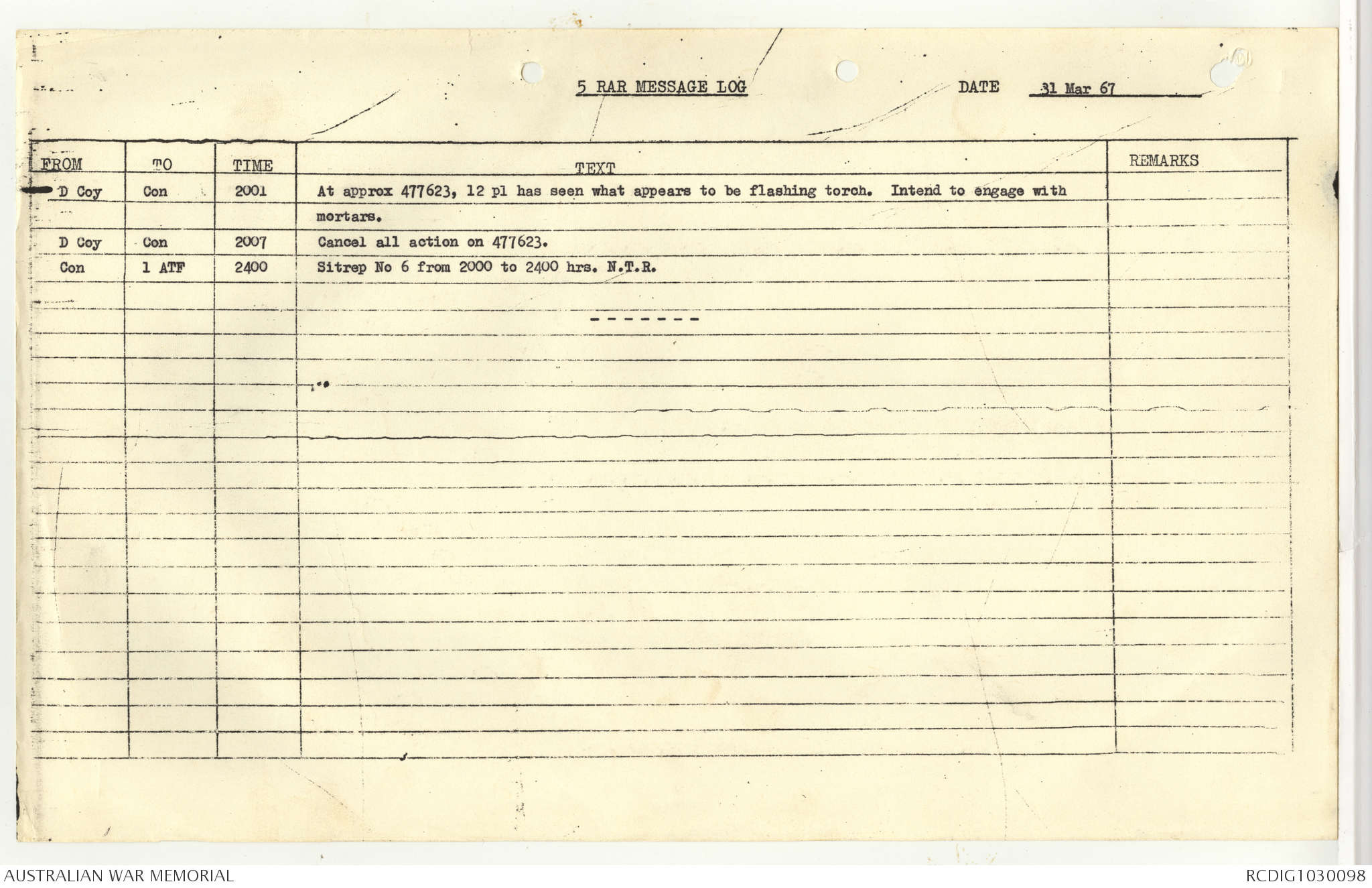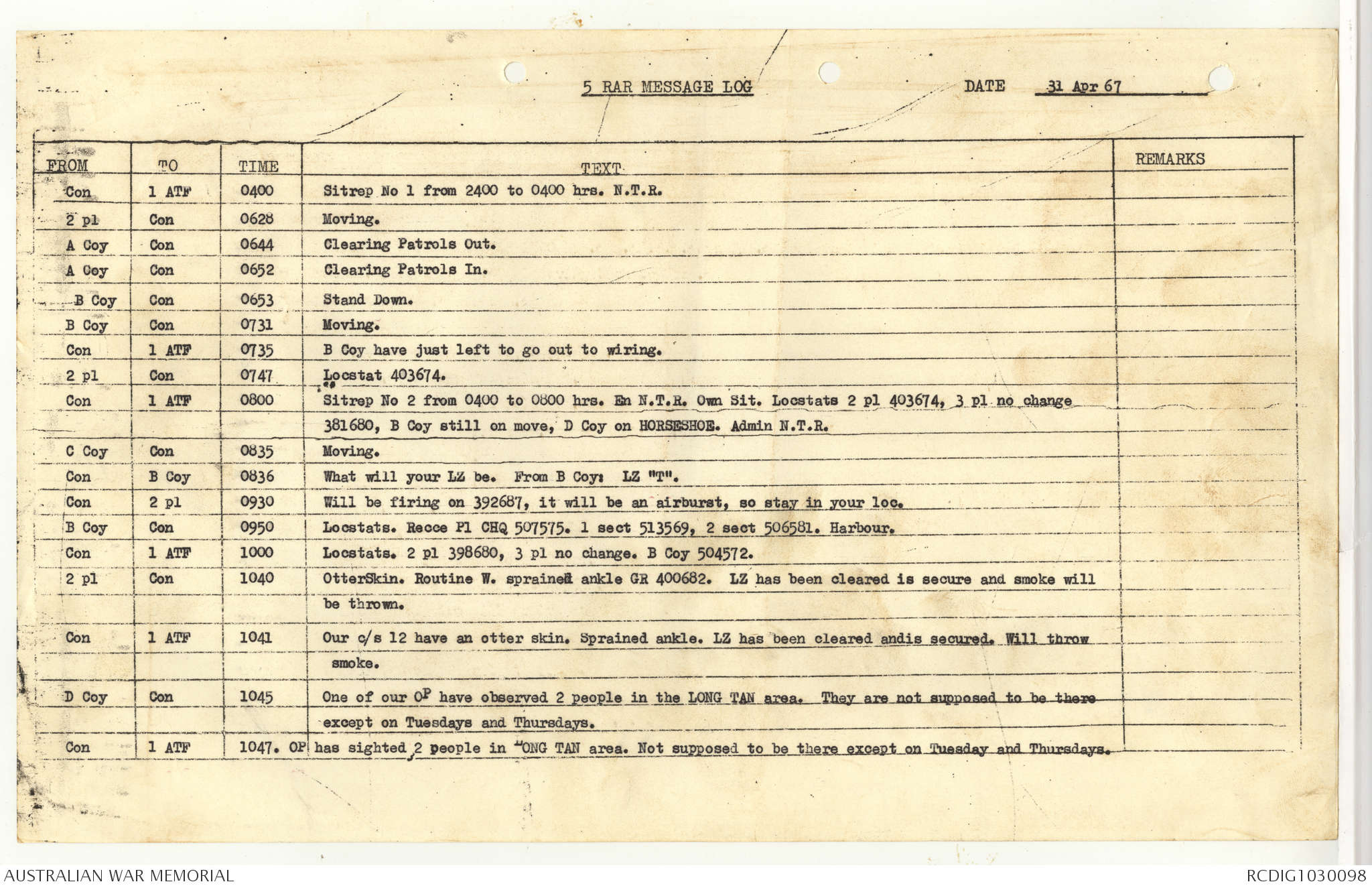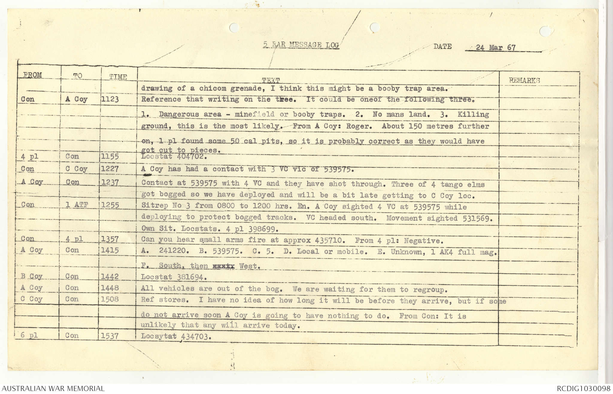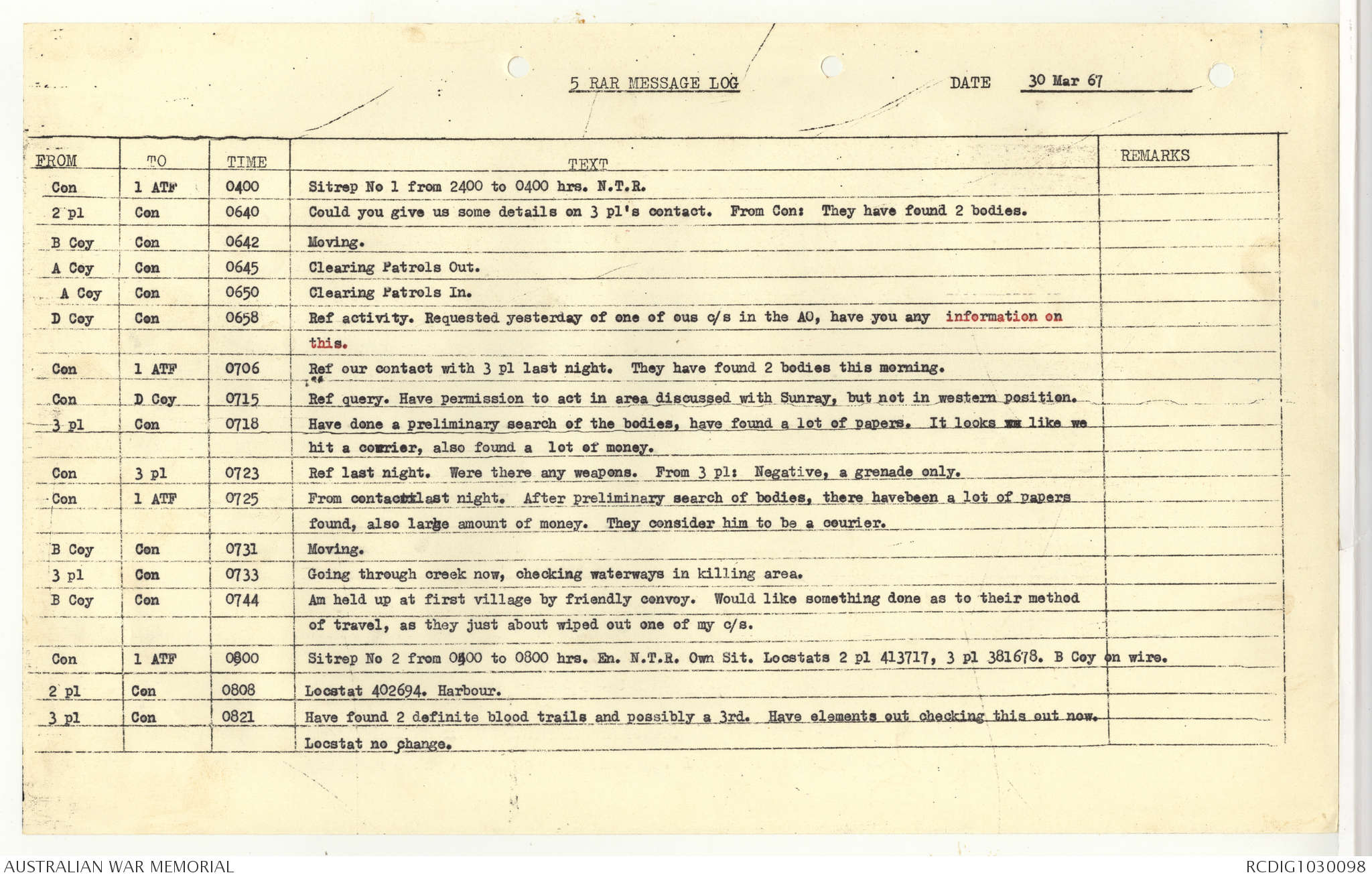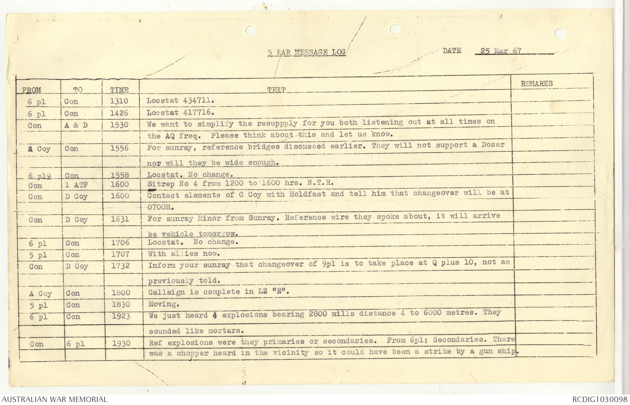 AWM95 7/5/15 - 1-31 March 1967, Narrative, Operation log