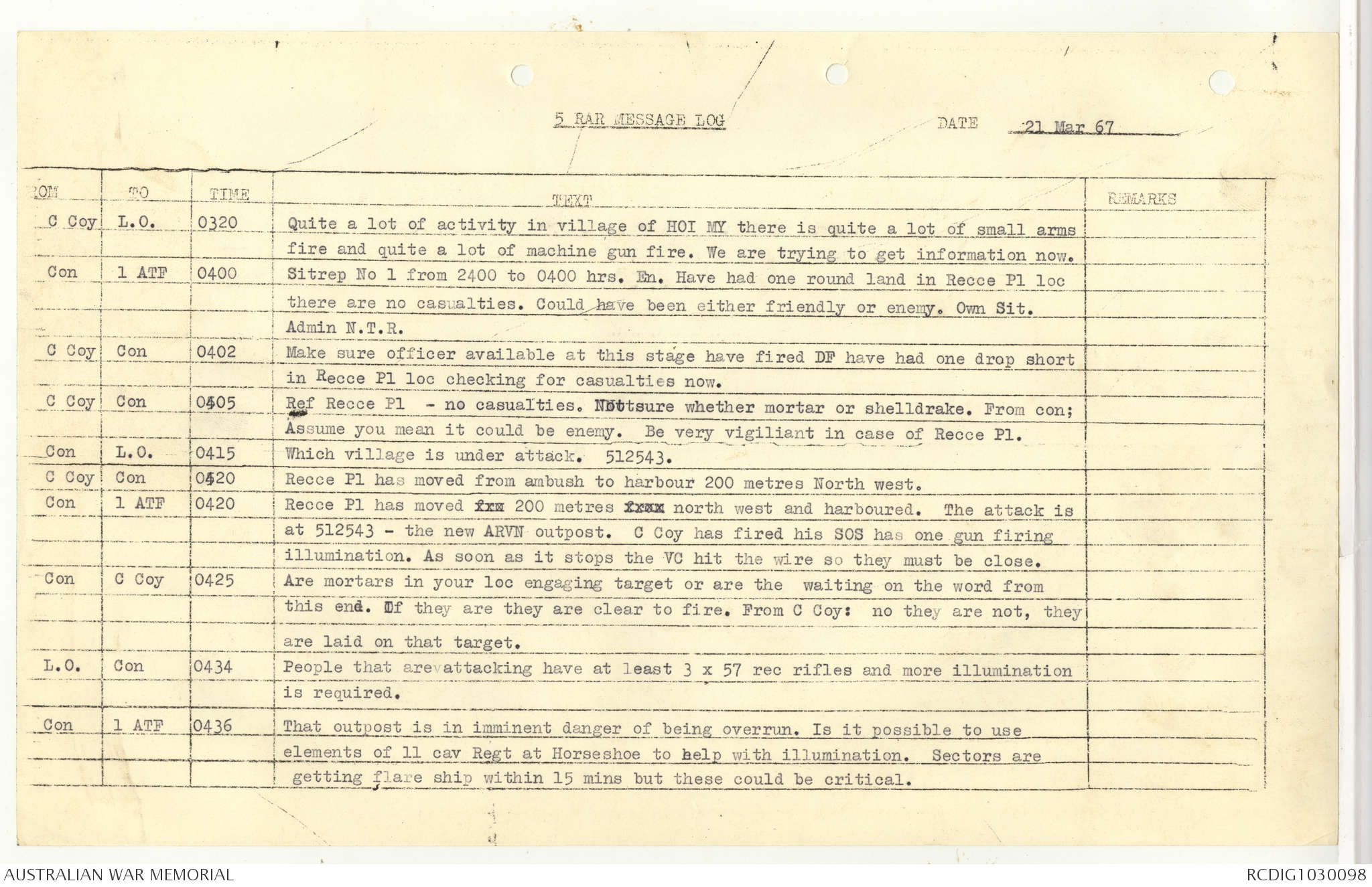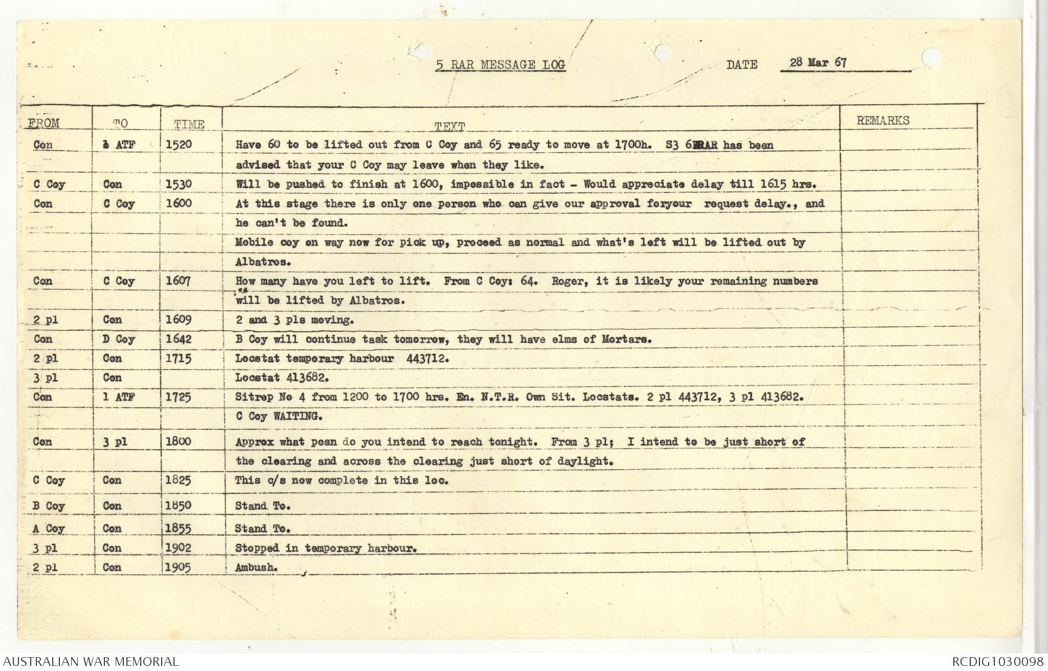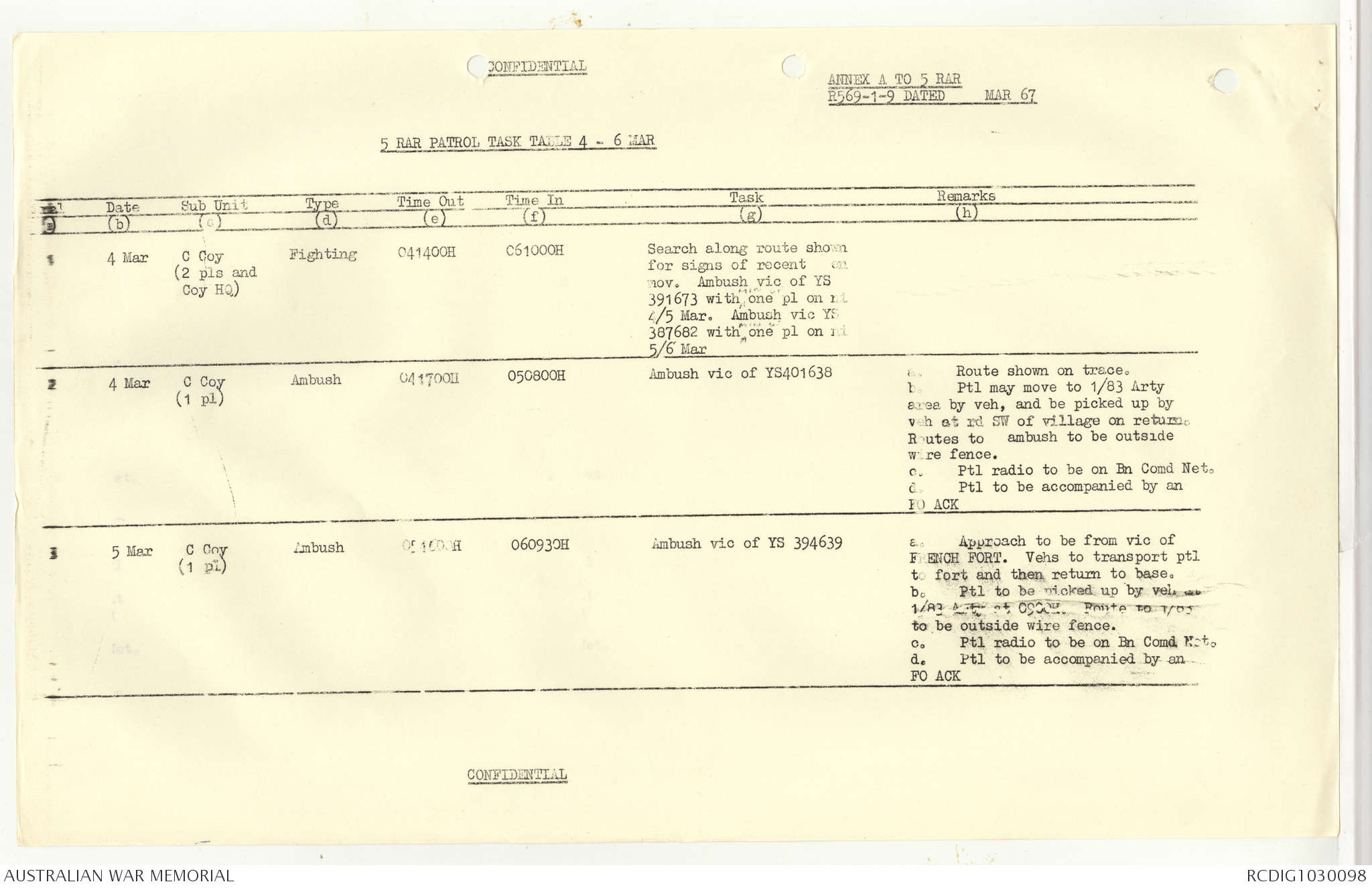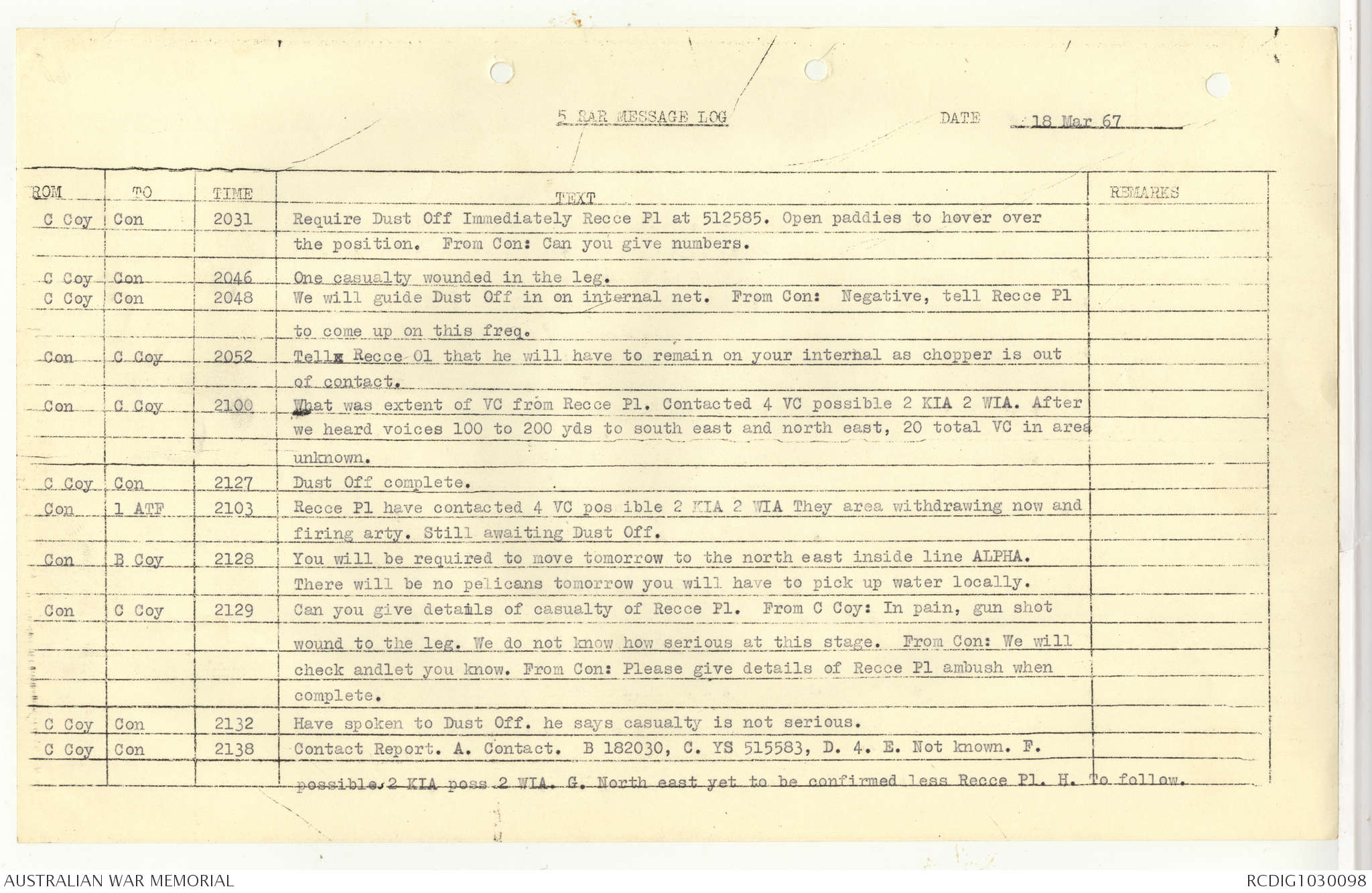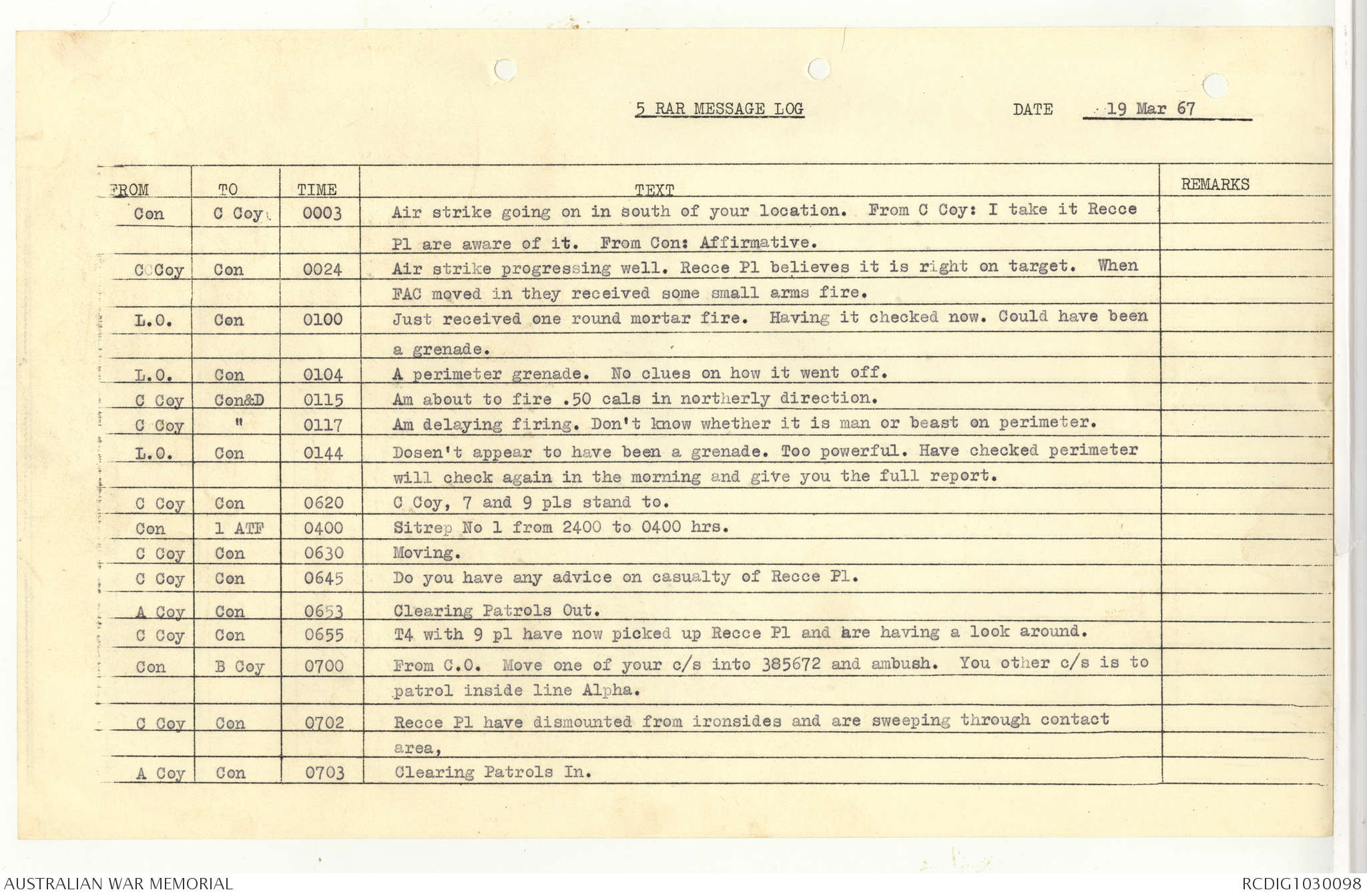 AWM95 7/5/15 - 1-31 March 1967, Narrative, Operation log