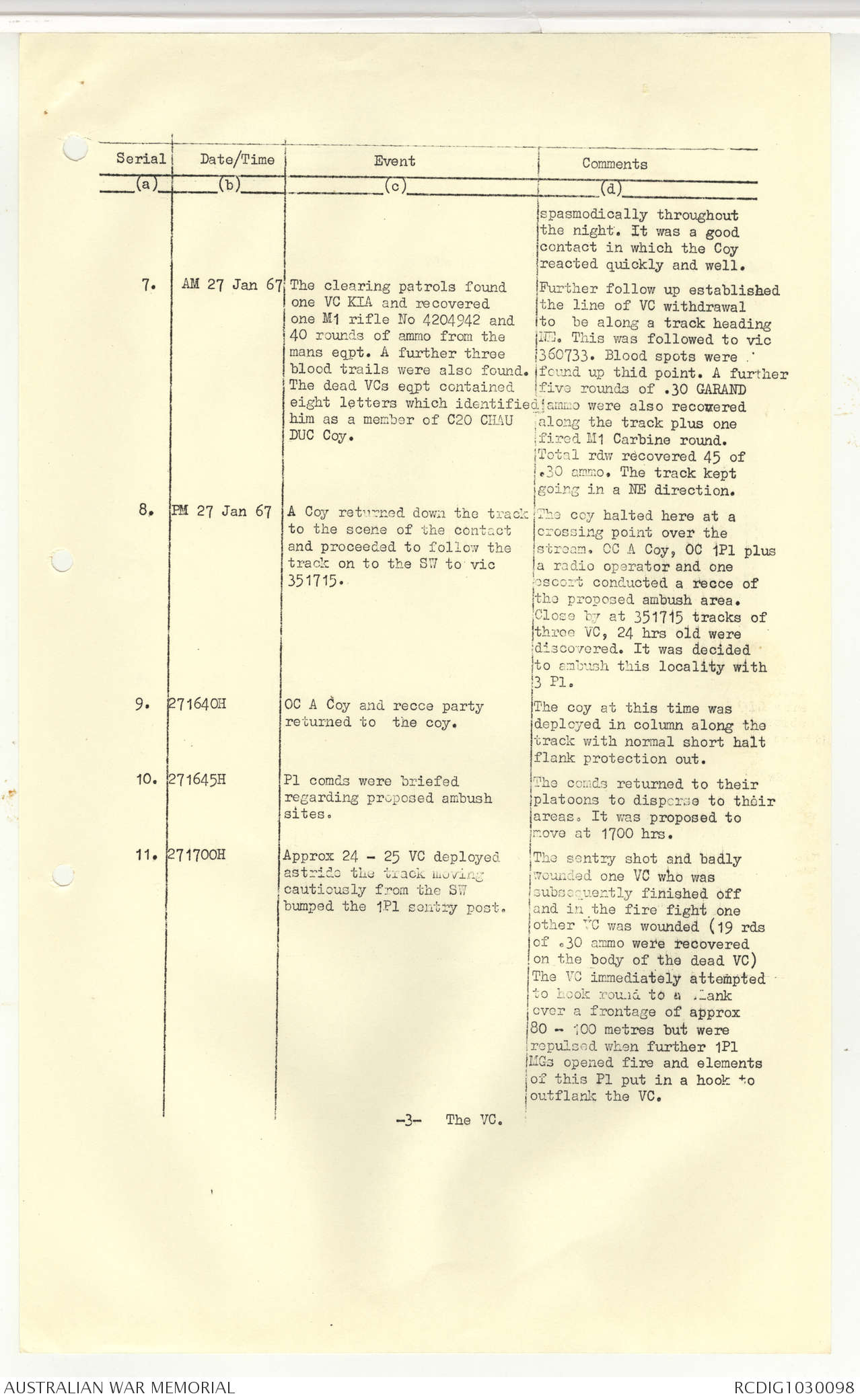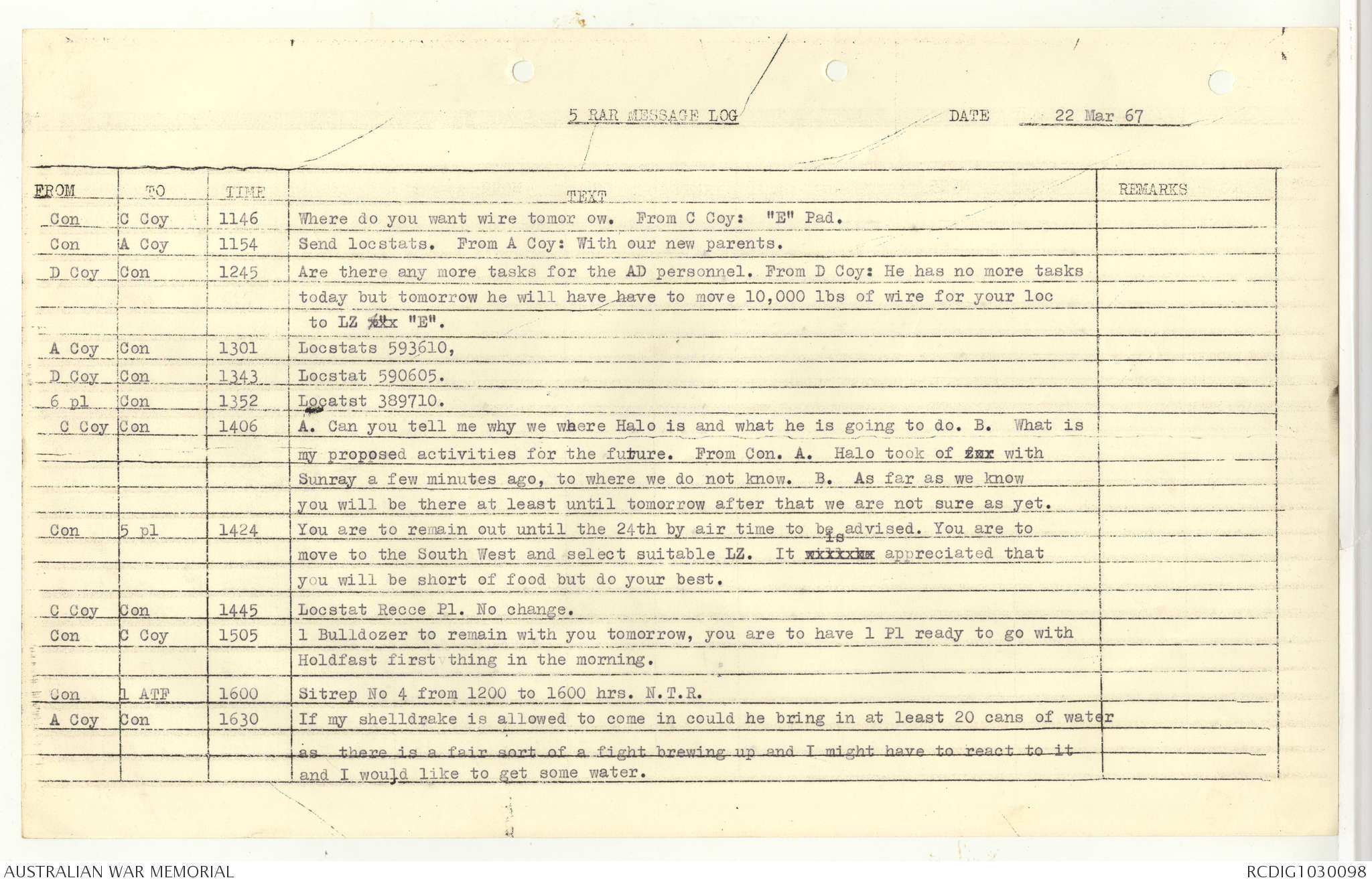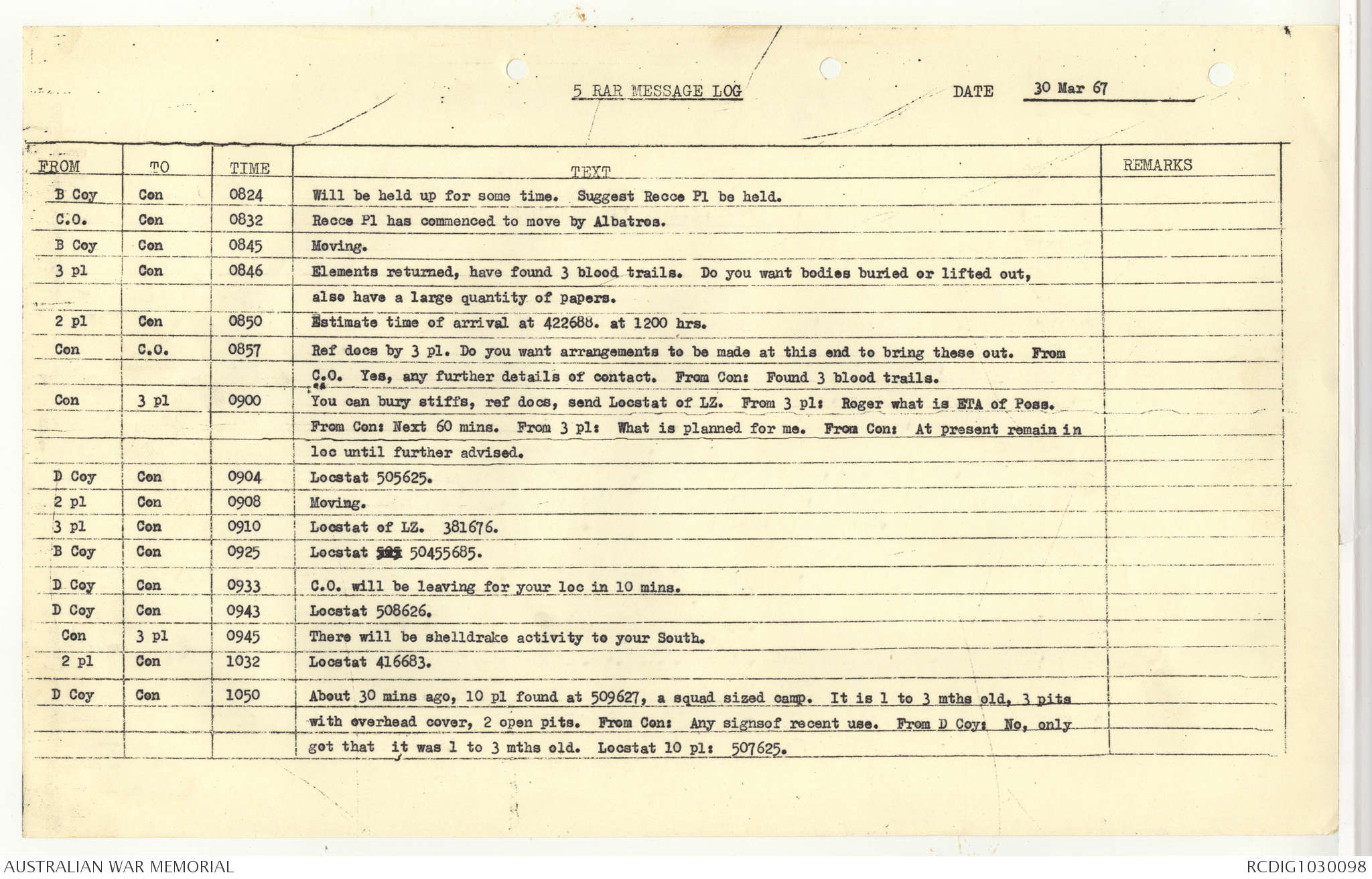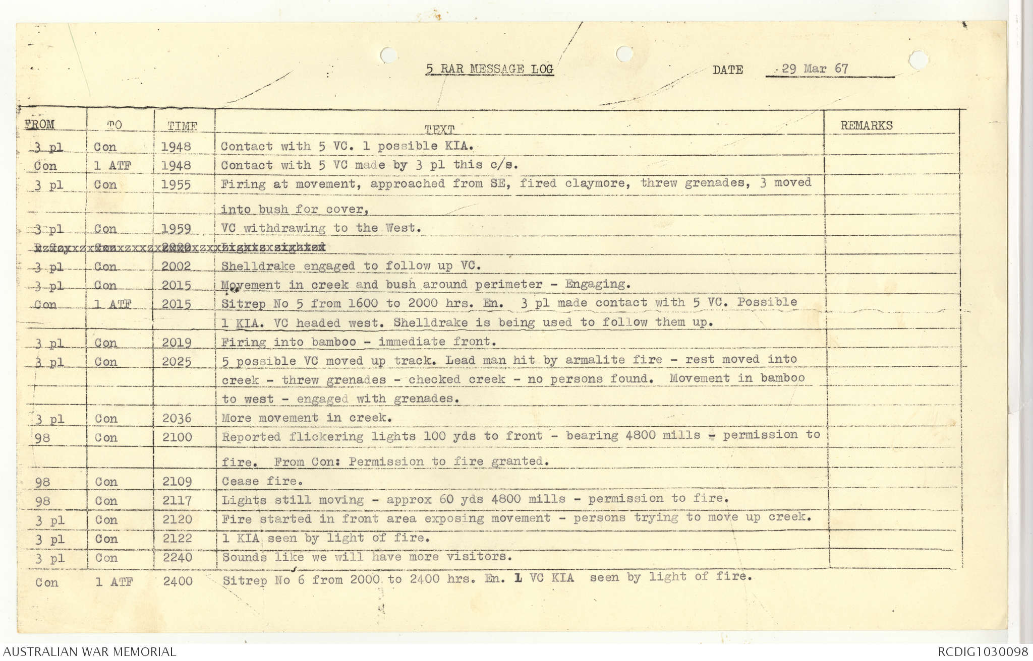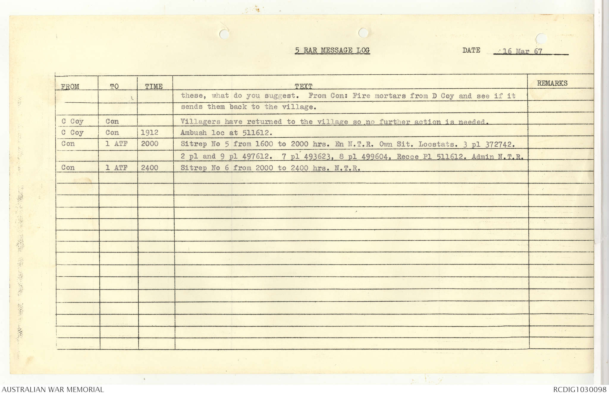 AWM95 7/5/15 - 1-31 March 1967, Narrative, Operation log