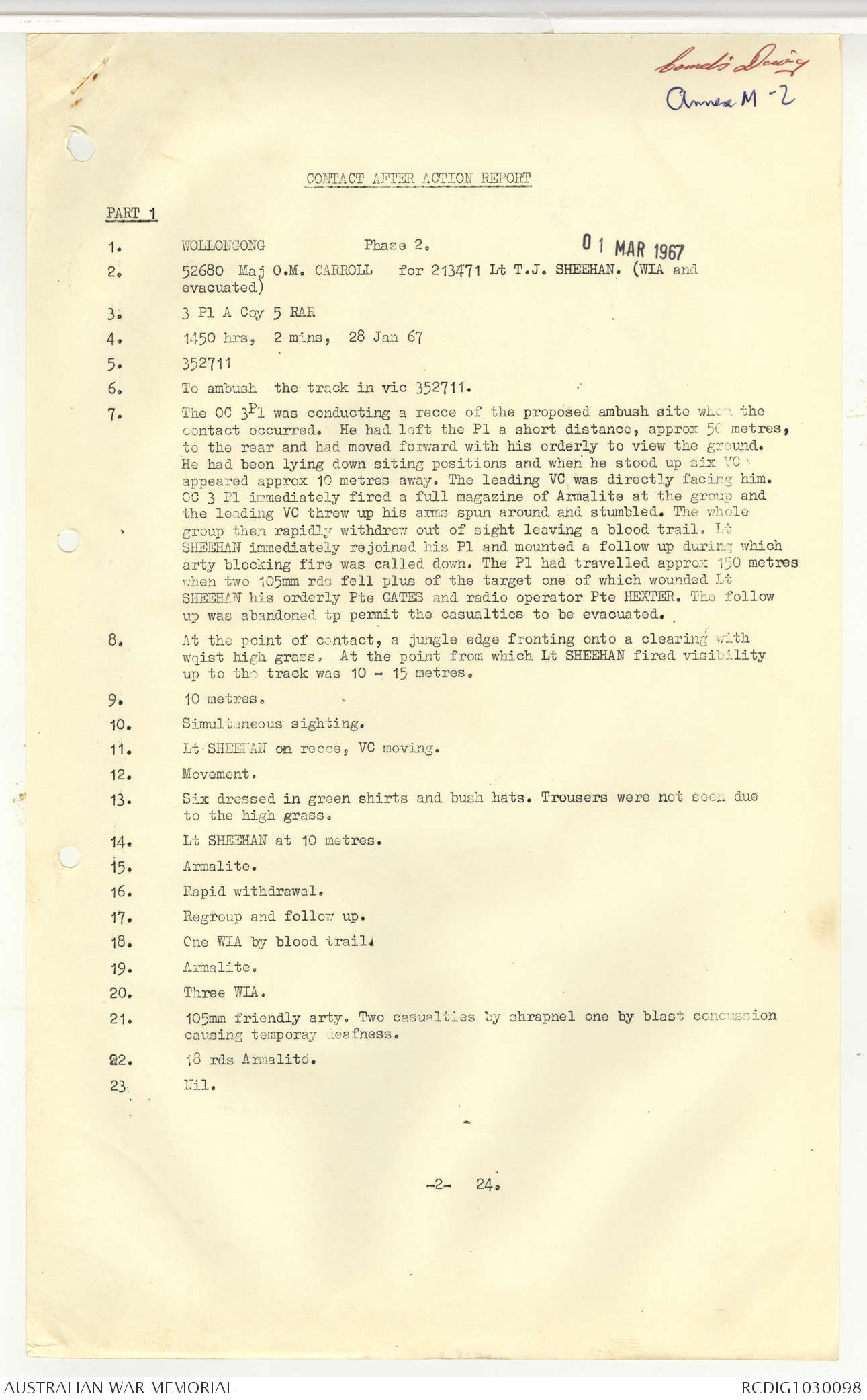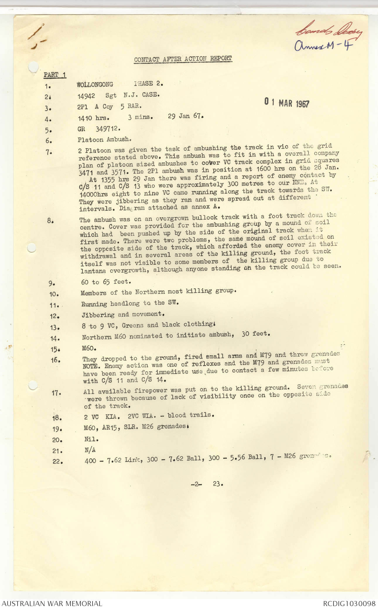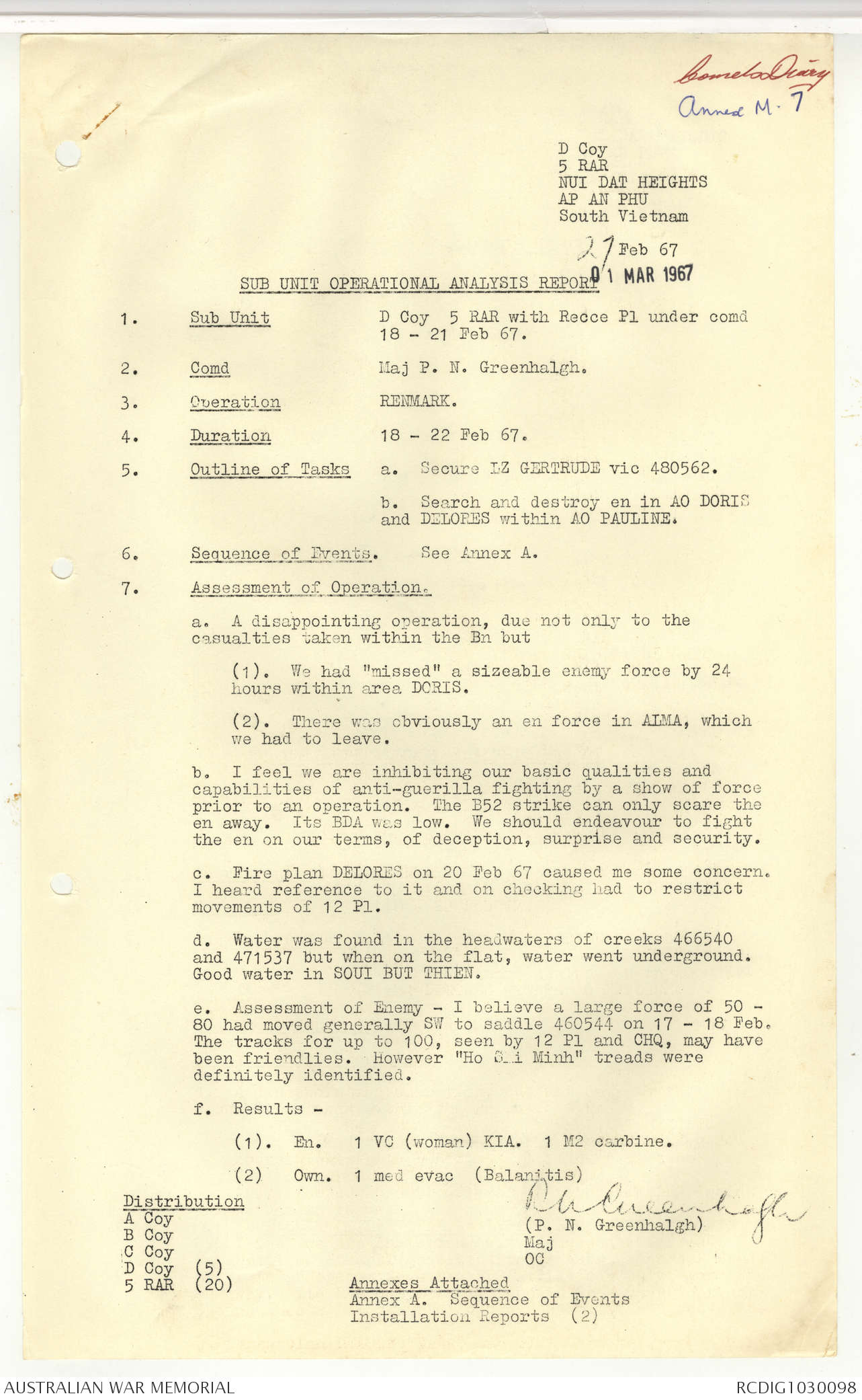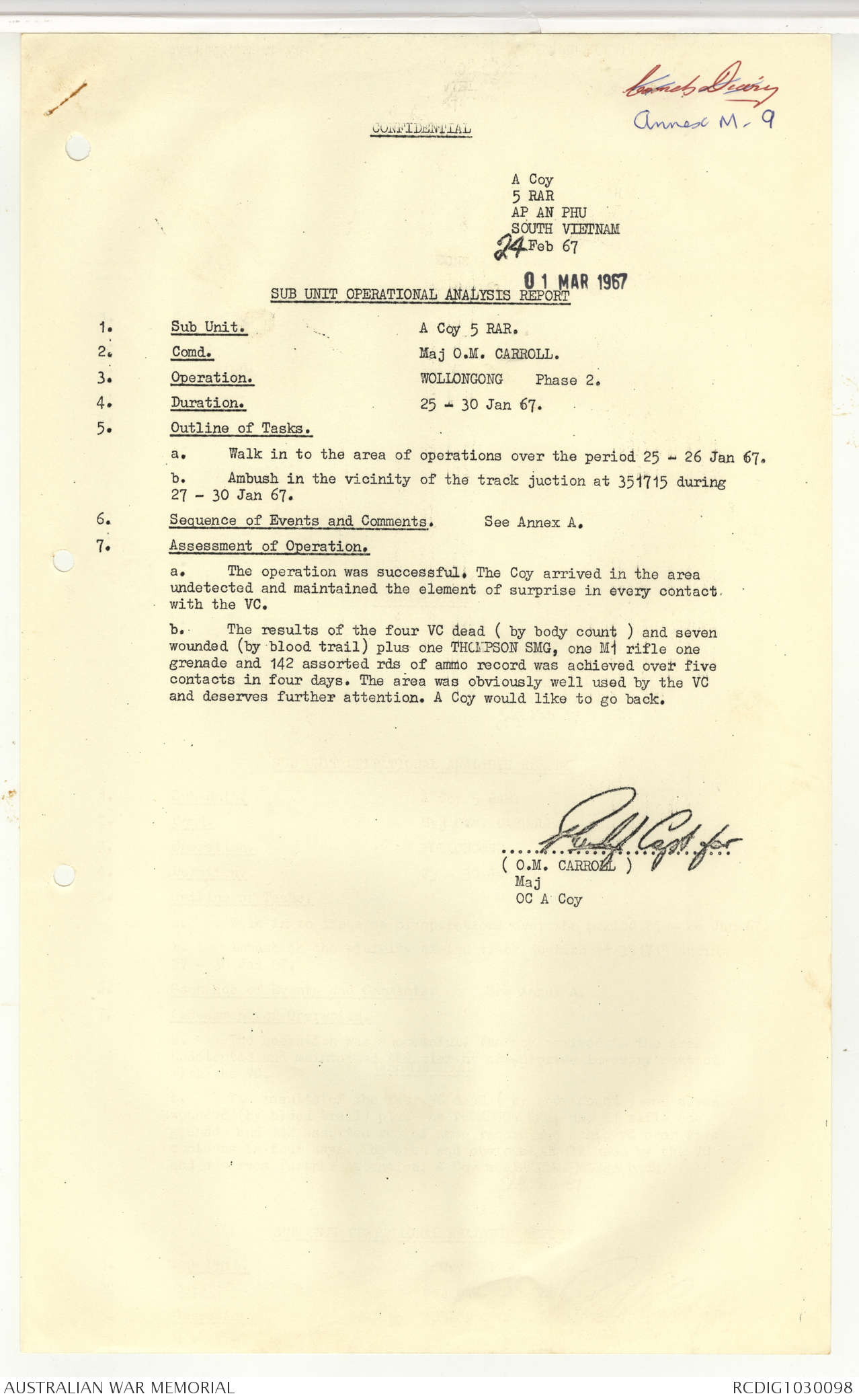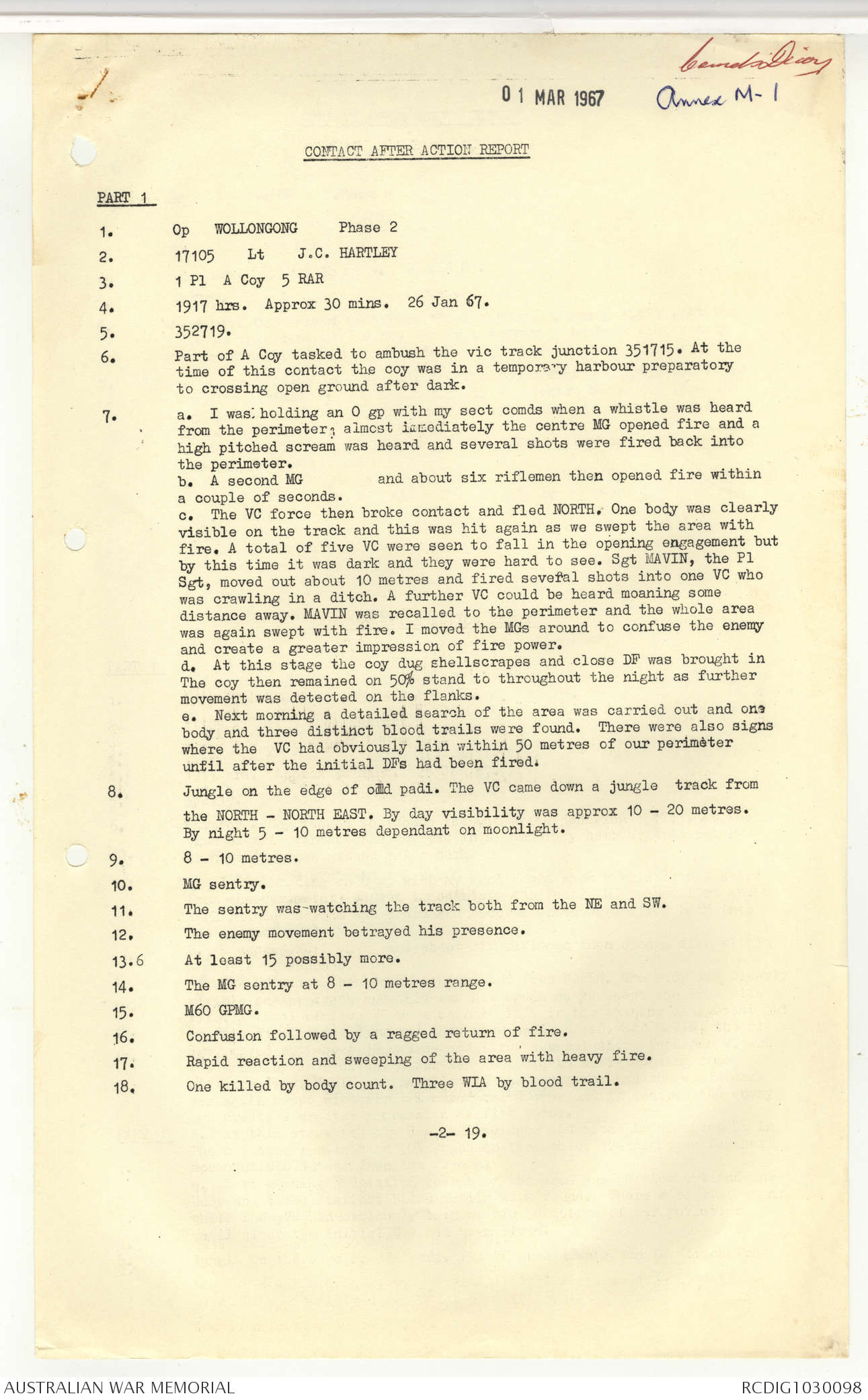 AWM95 7/5/15 - 1-31 March 1967, Narrative, Operation log
