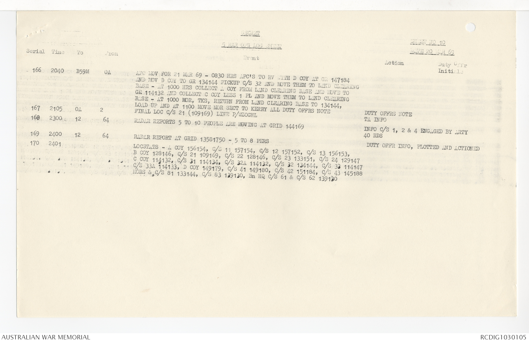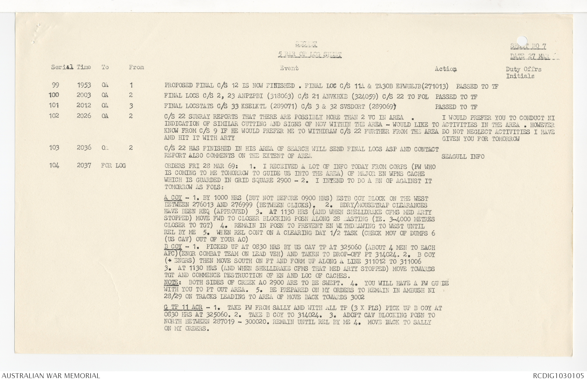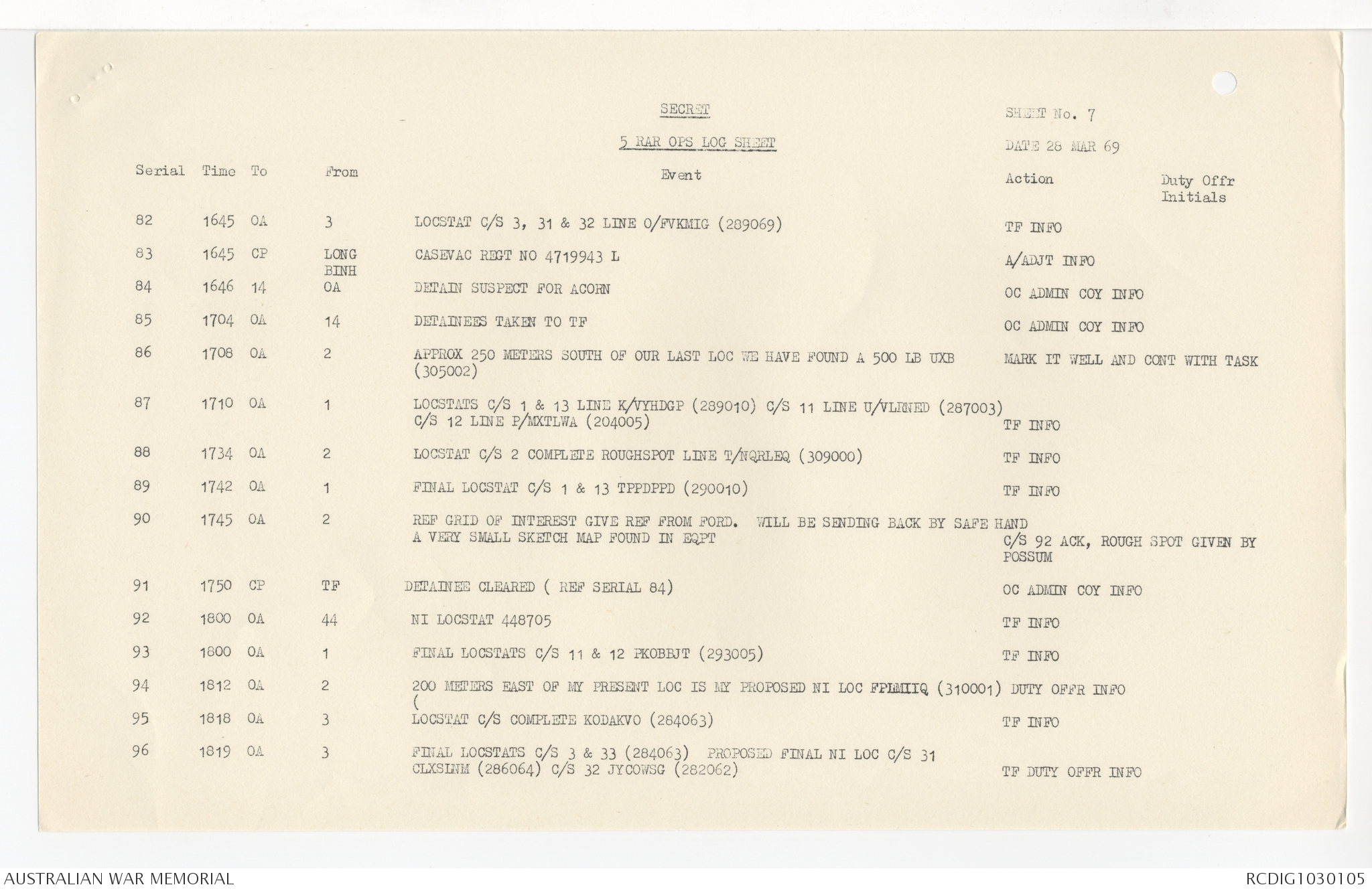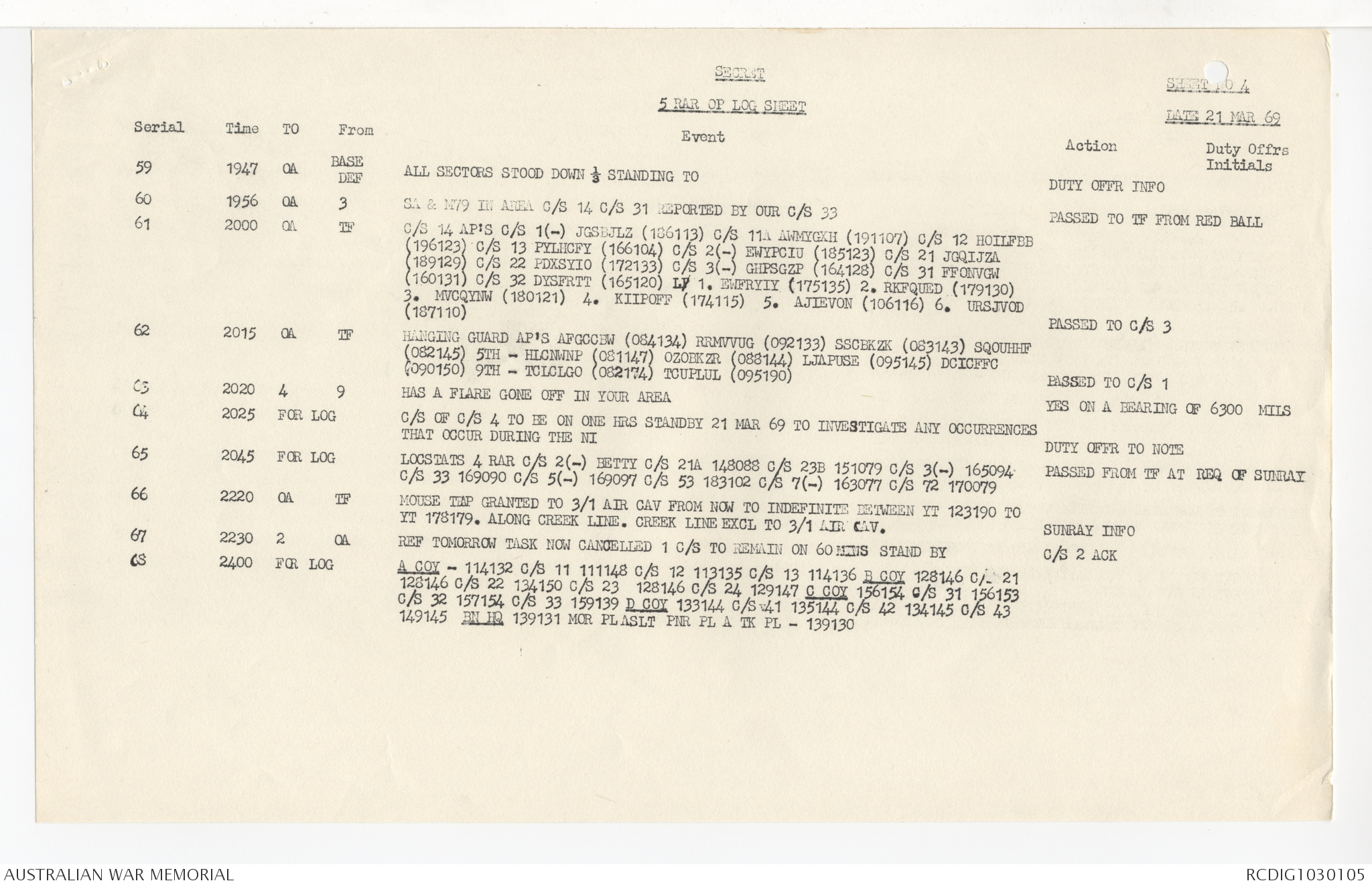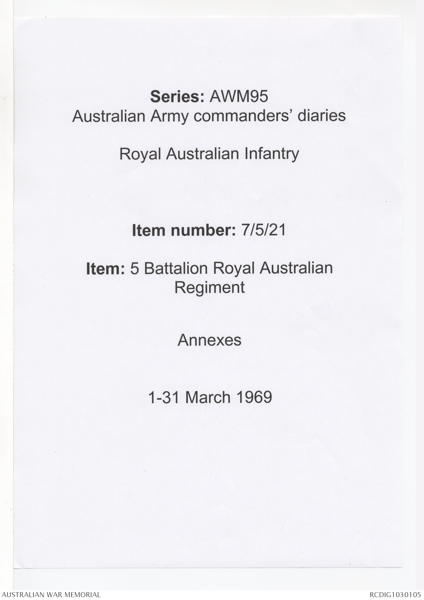 AWM95 7/5/21 - 1-31 March 1969, Annexes