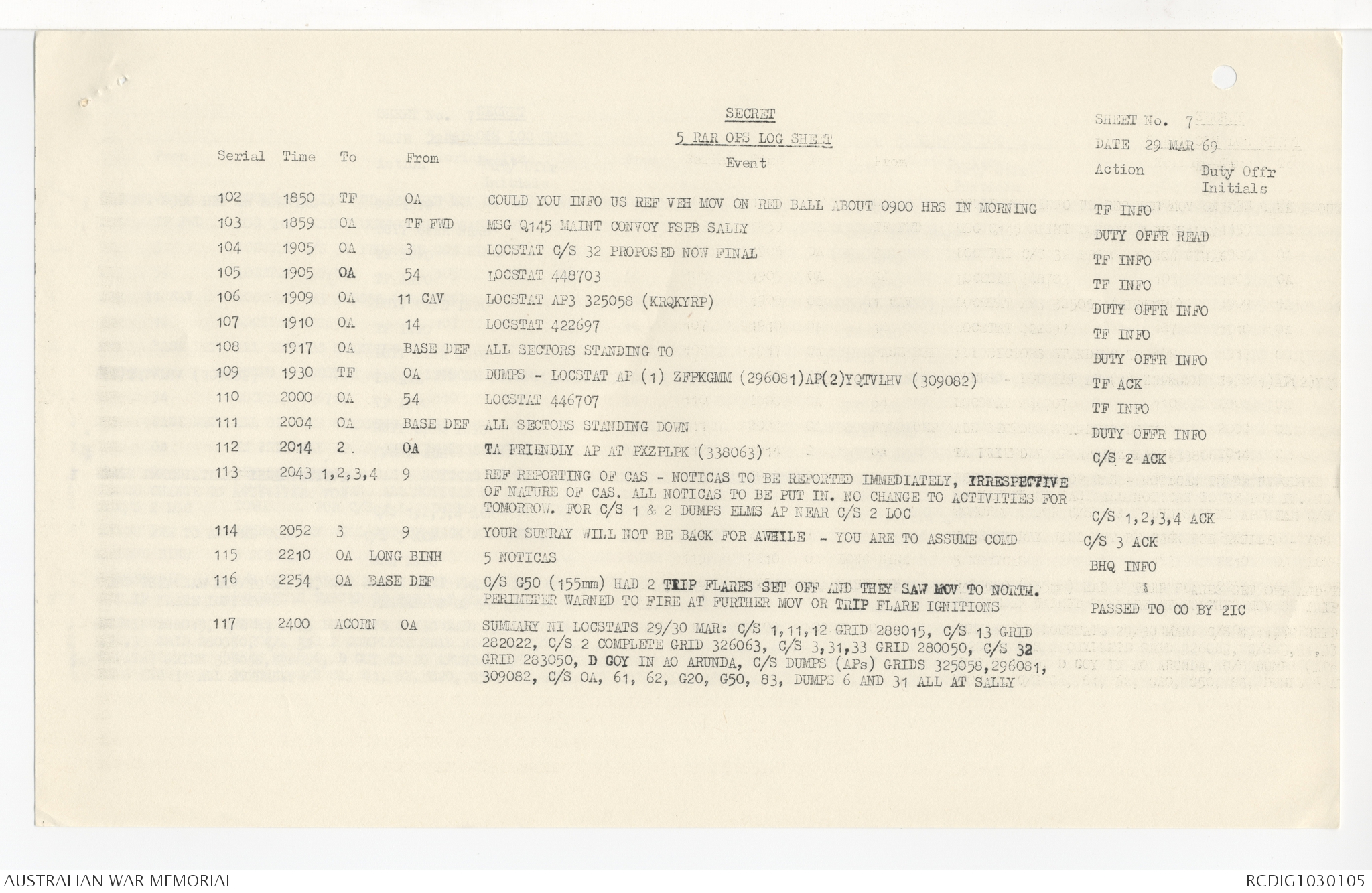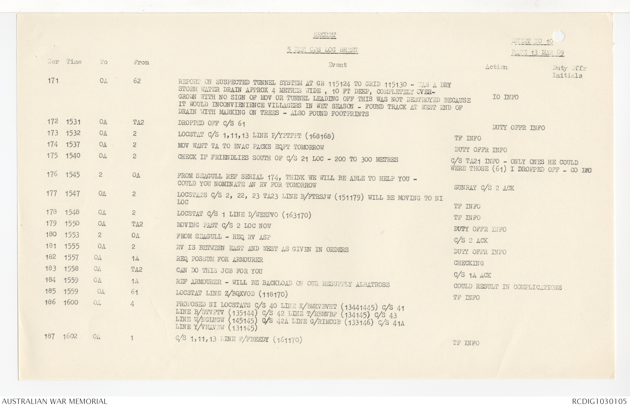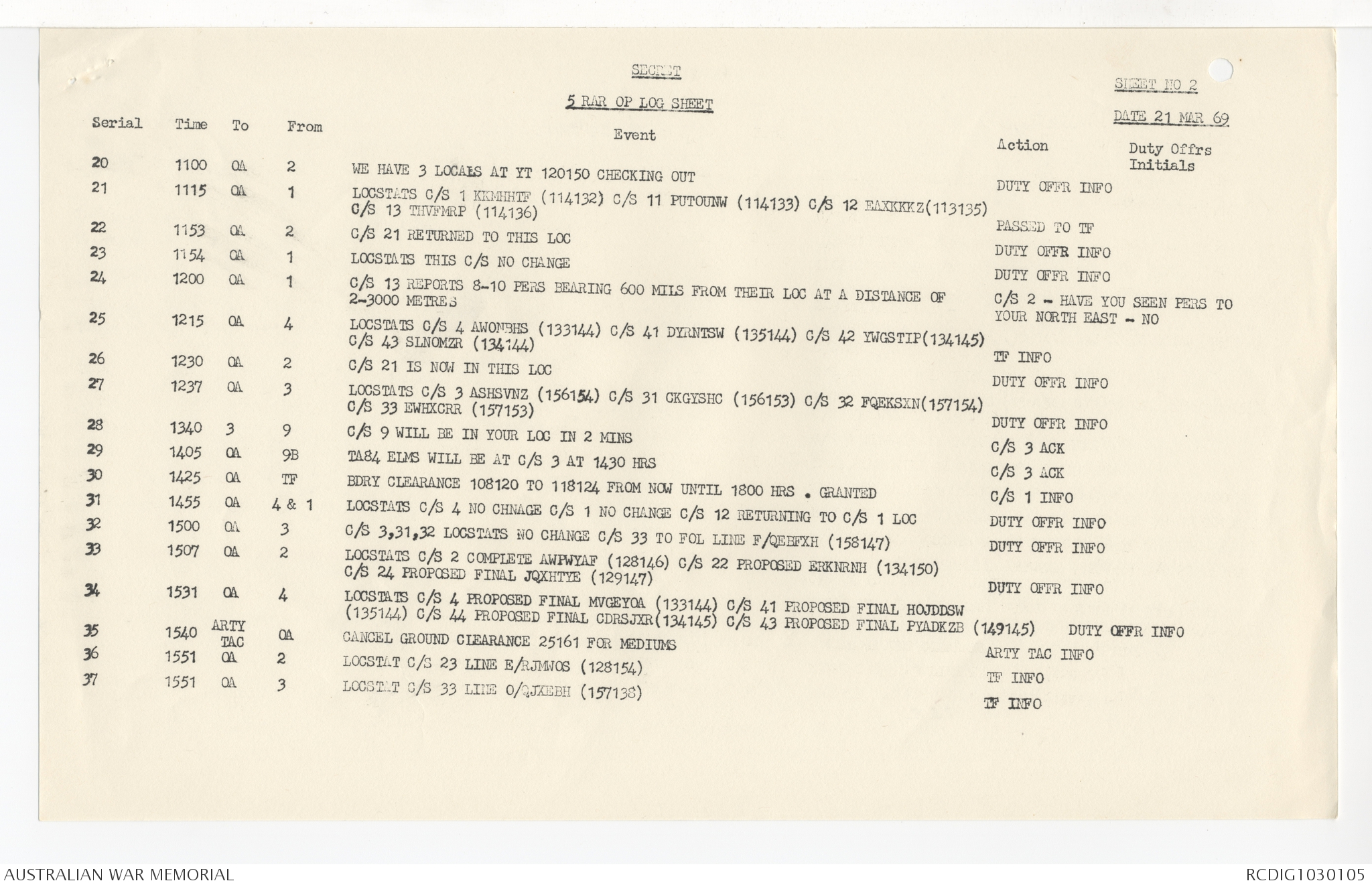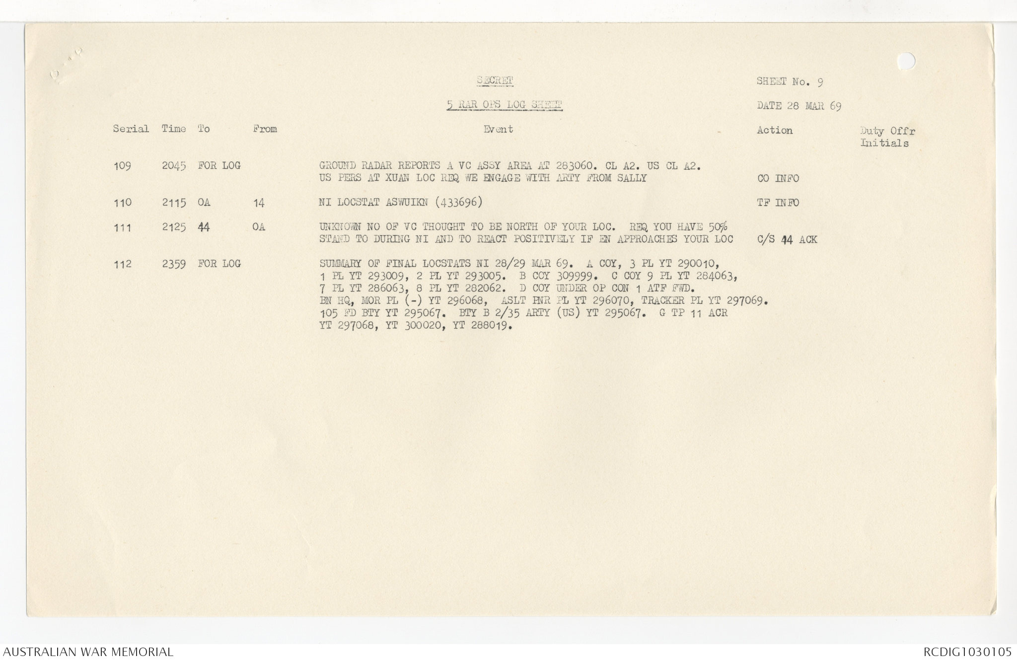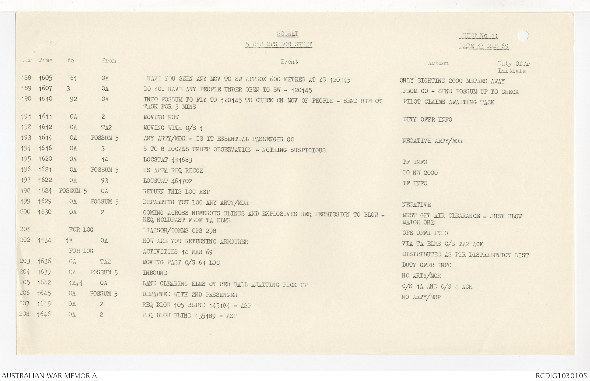 AWM95 7/5/21 - 1-31 March 1969, Annexes