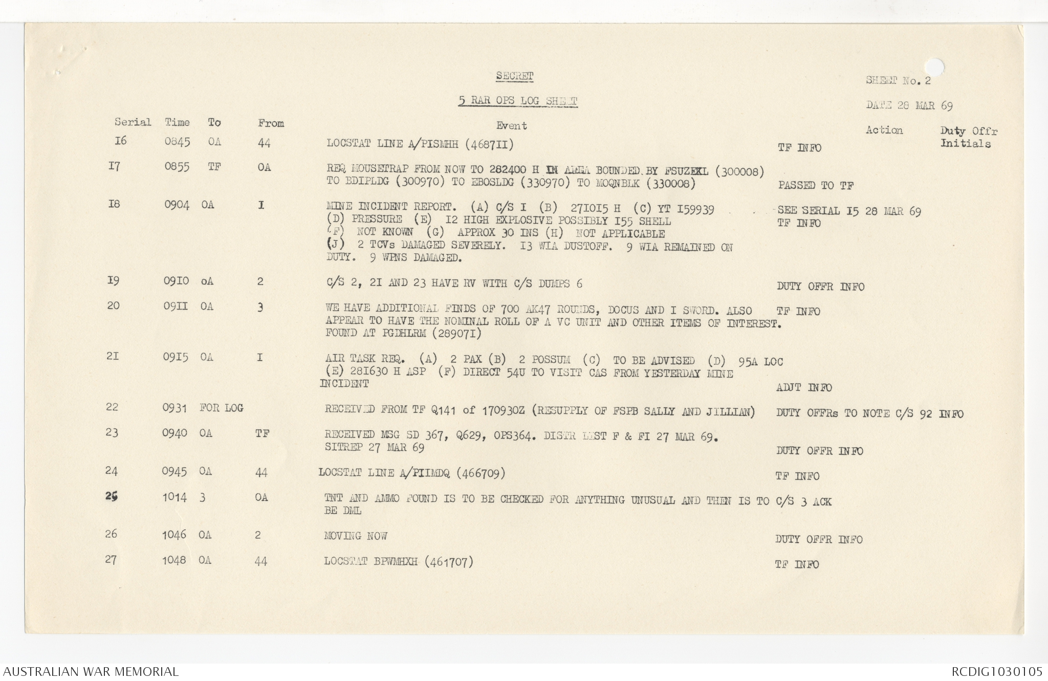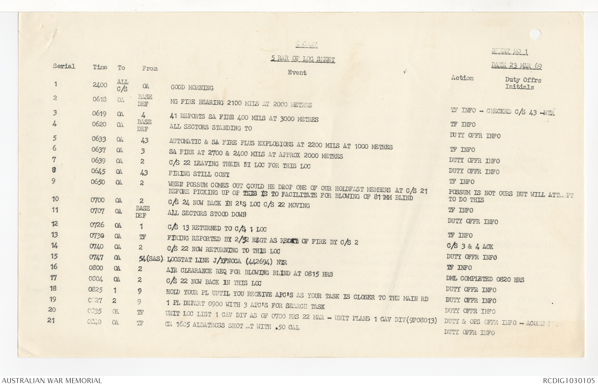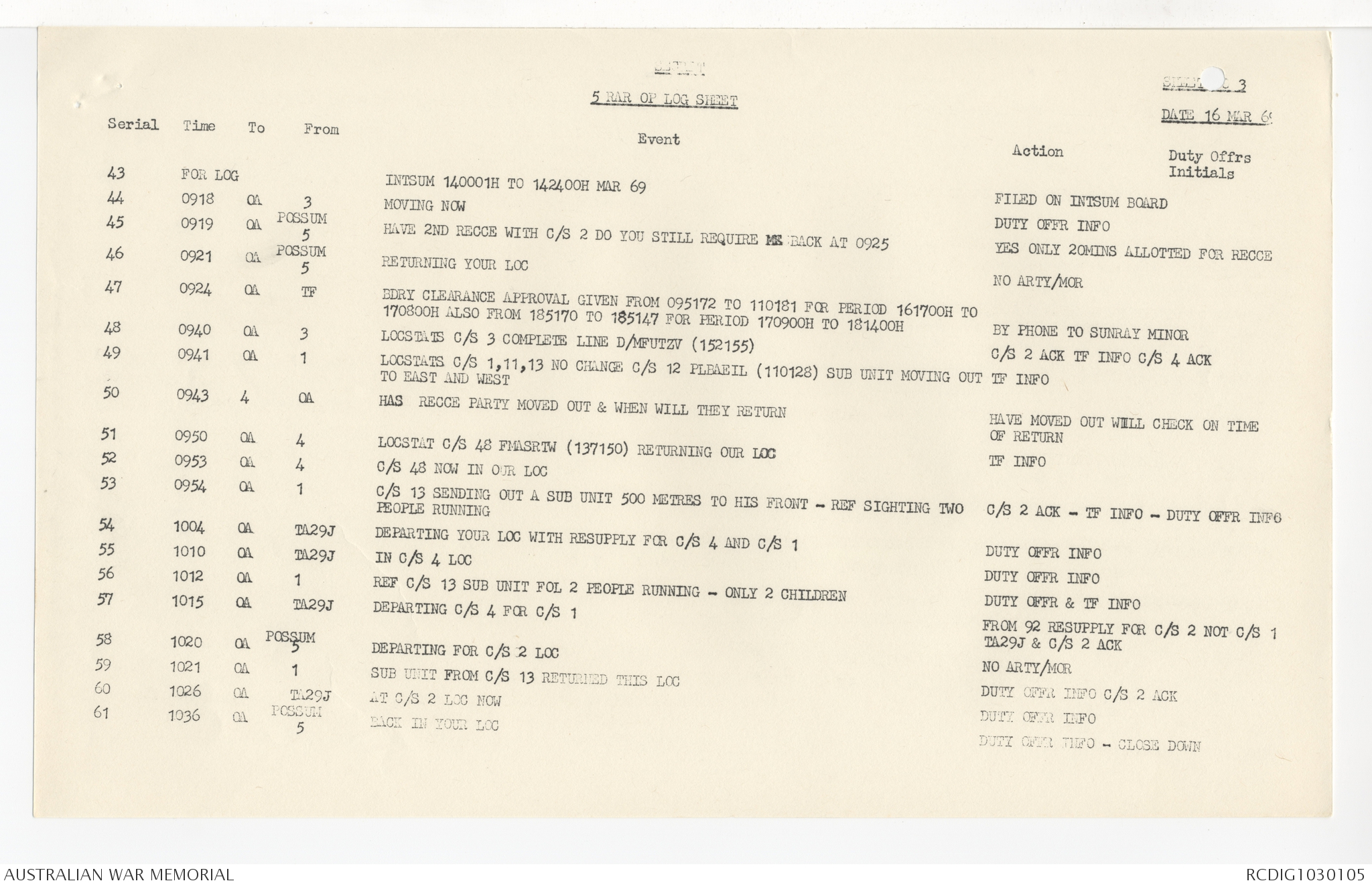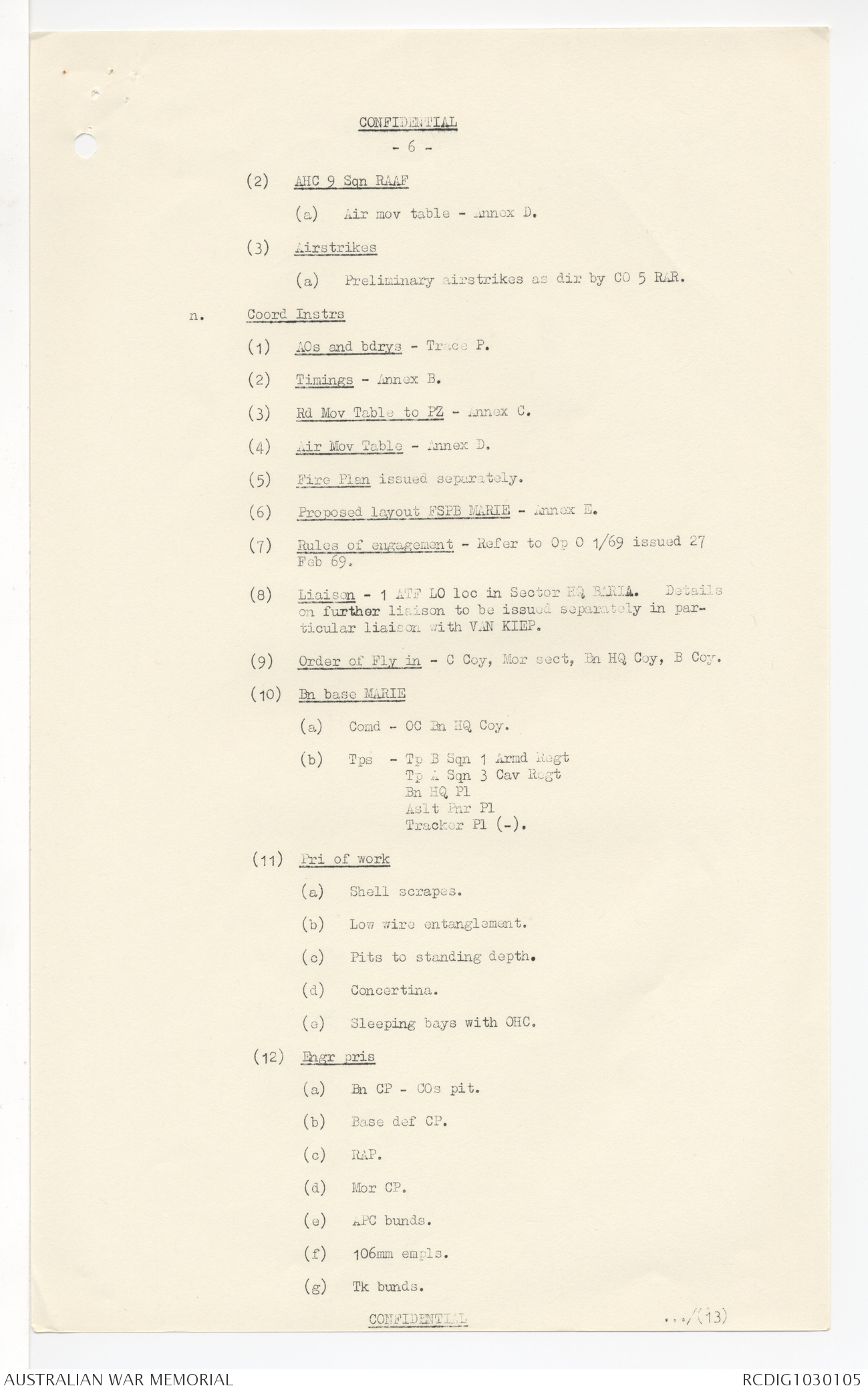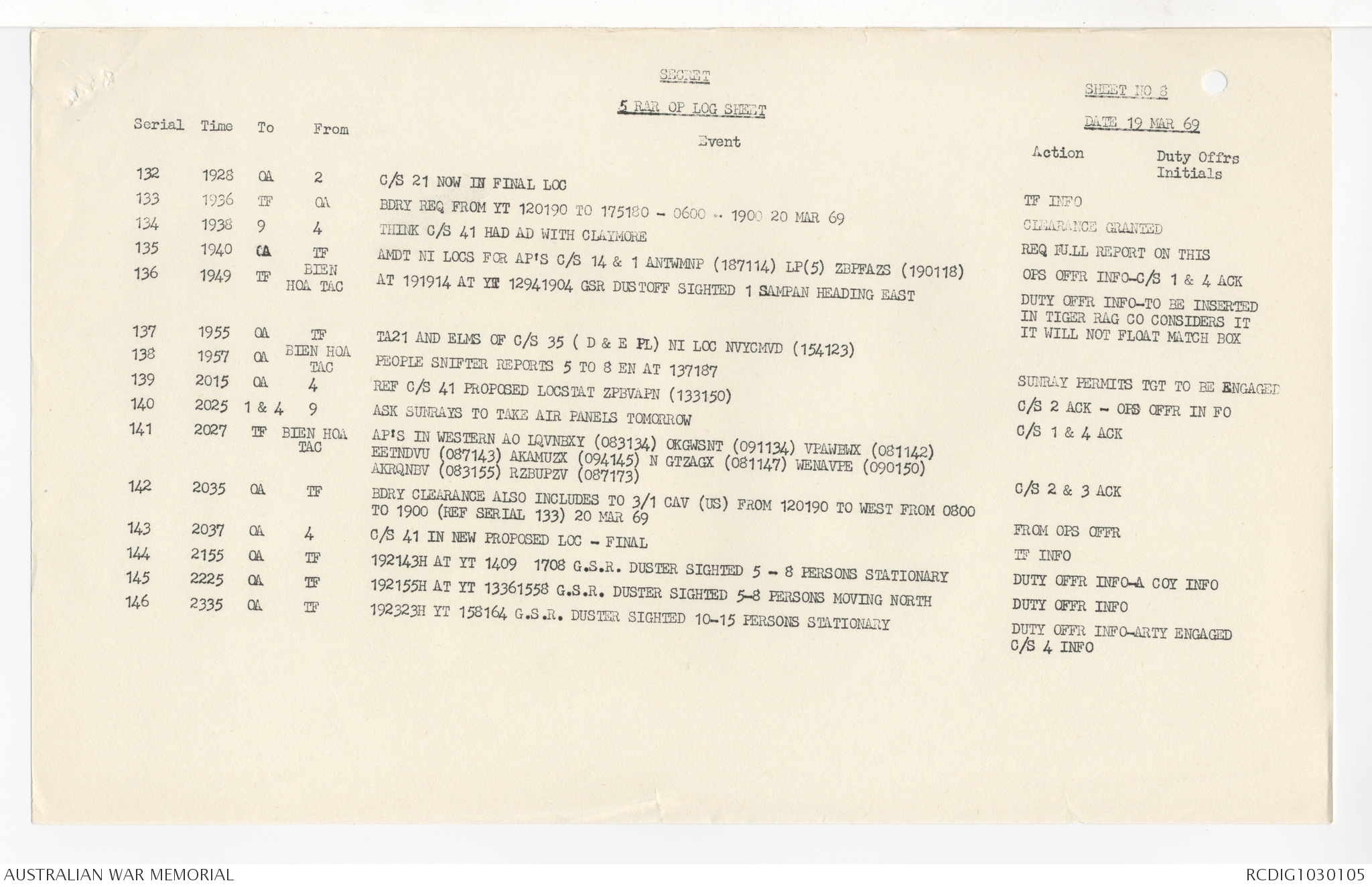 AWM95 7/5/21 - 1-31 March 1969, Annexes