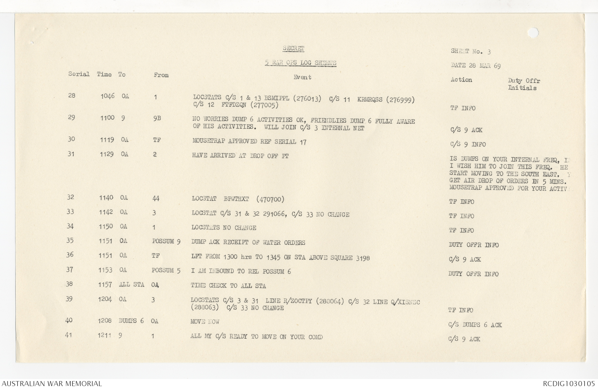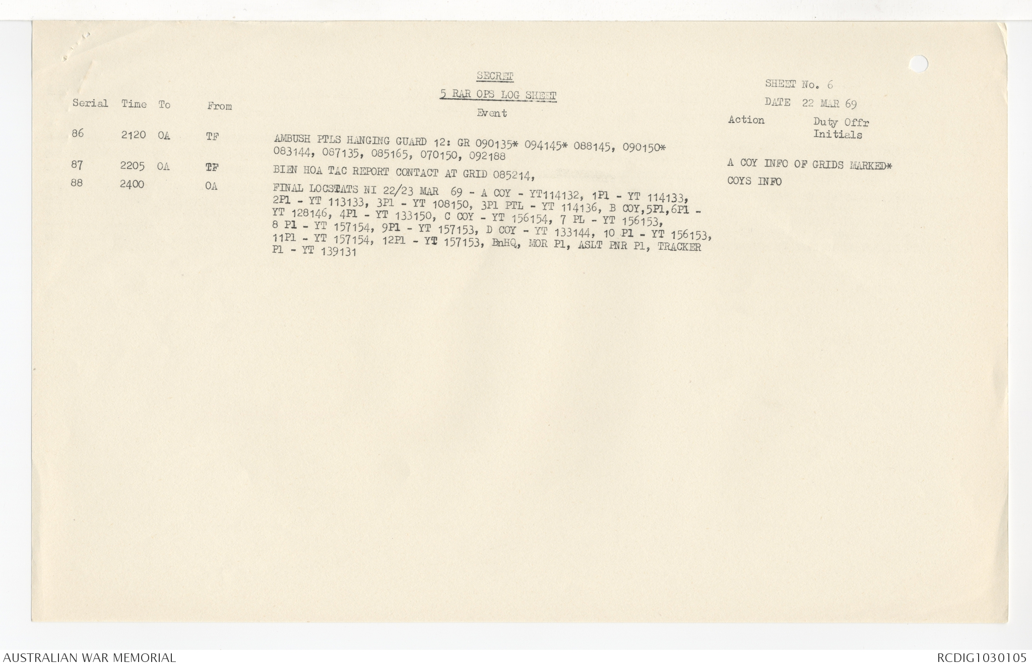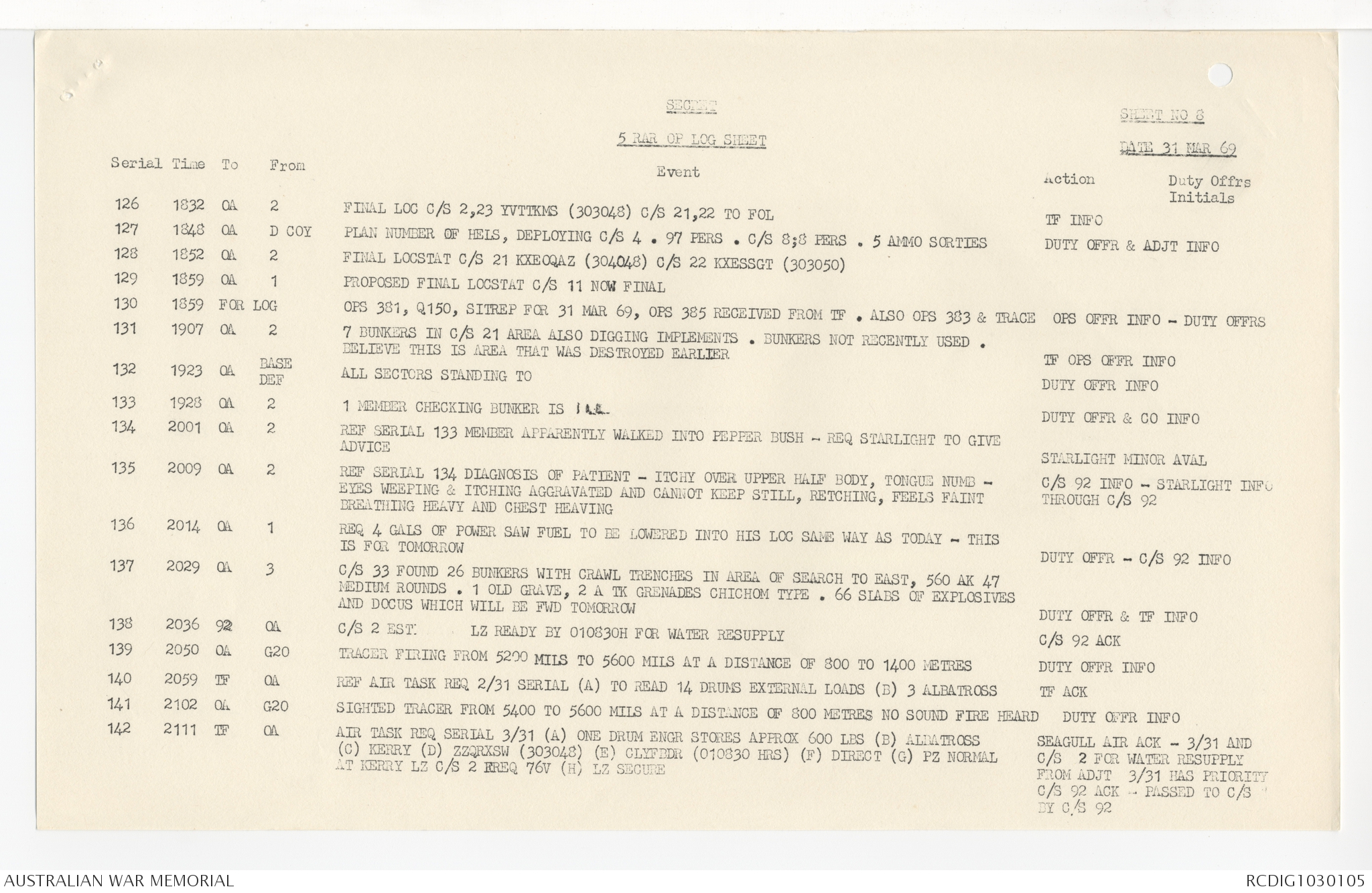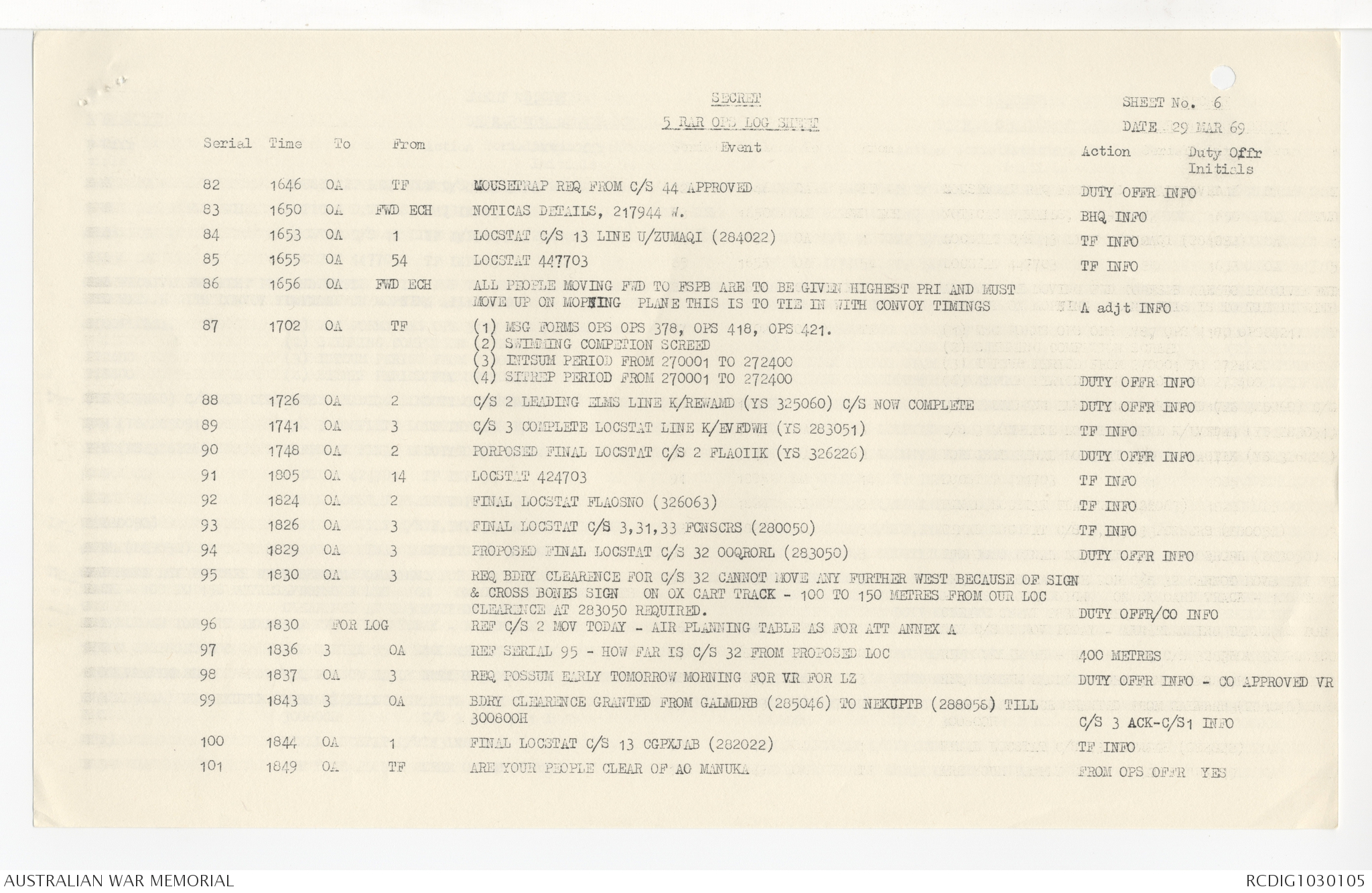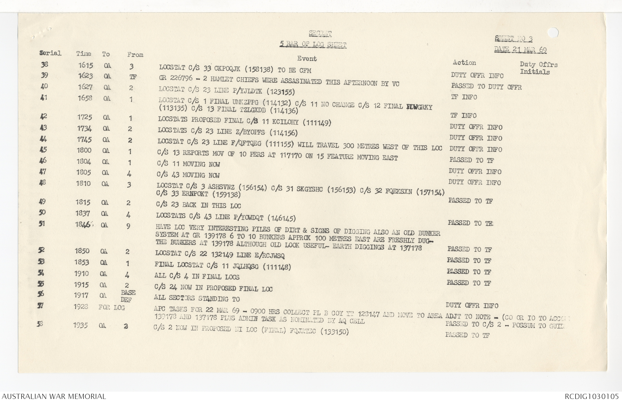 AWM95 7/5/21 - 1-31 March 1969, Annexes