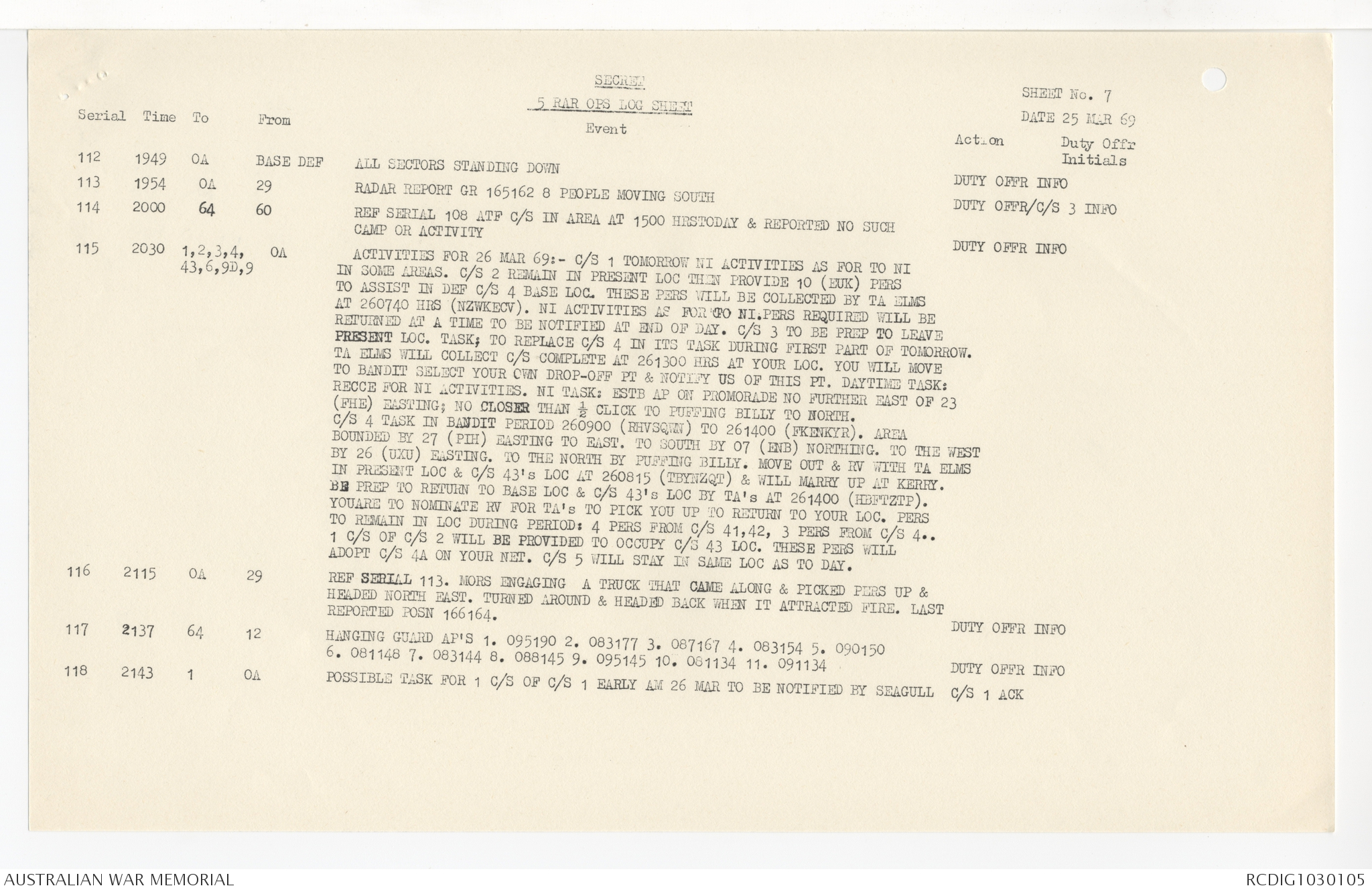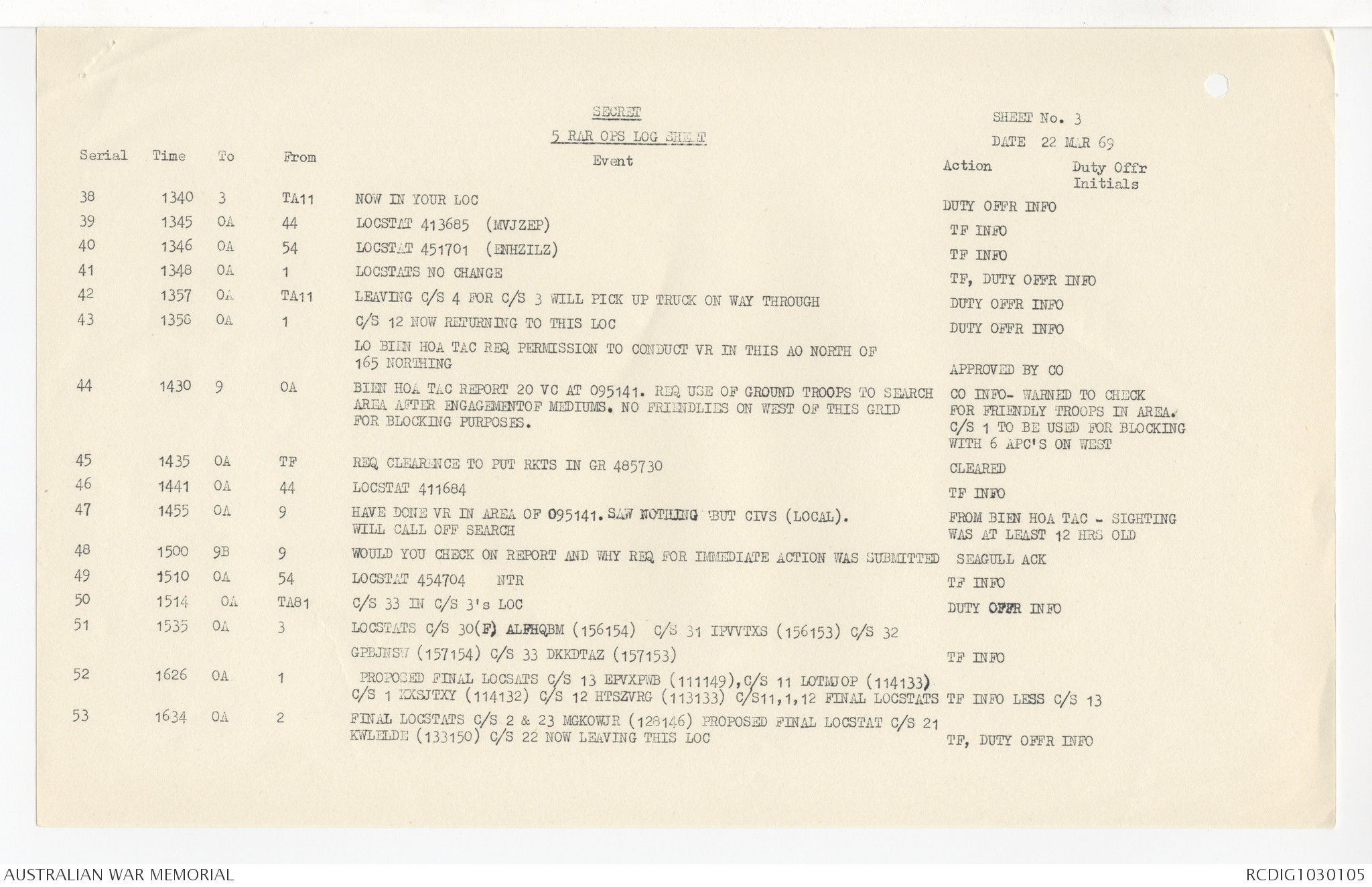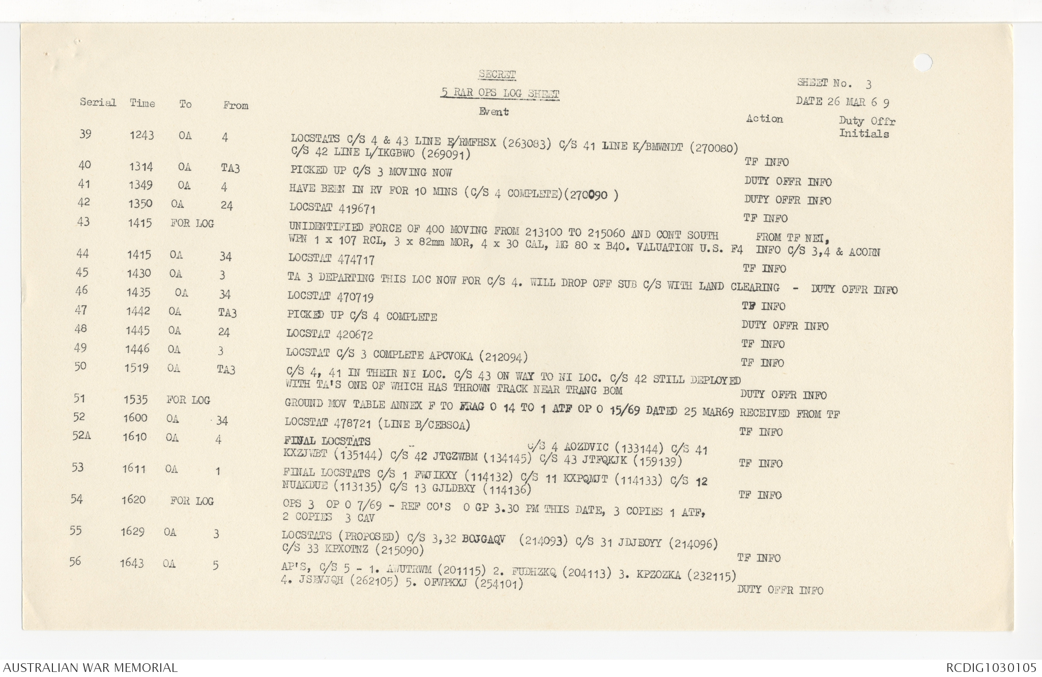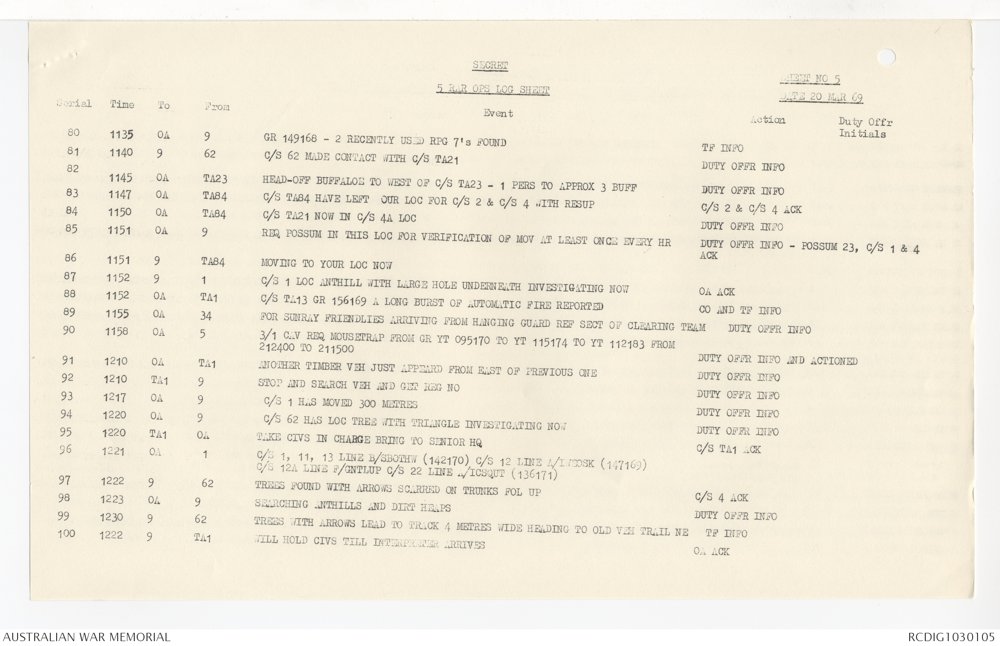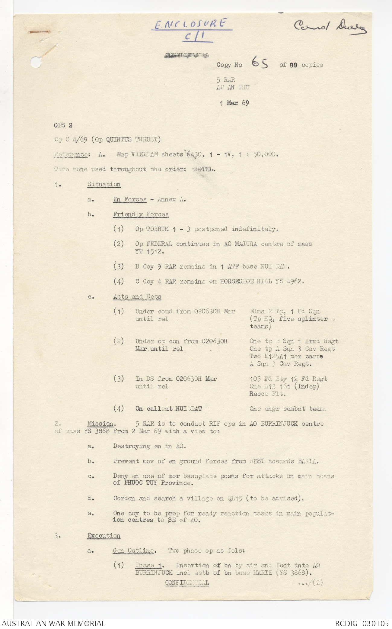 AWM95 7/5/21 - 1-31 March 1969, Annexes
