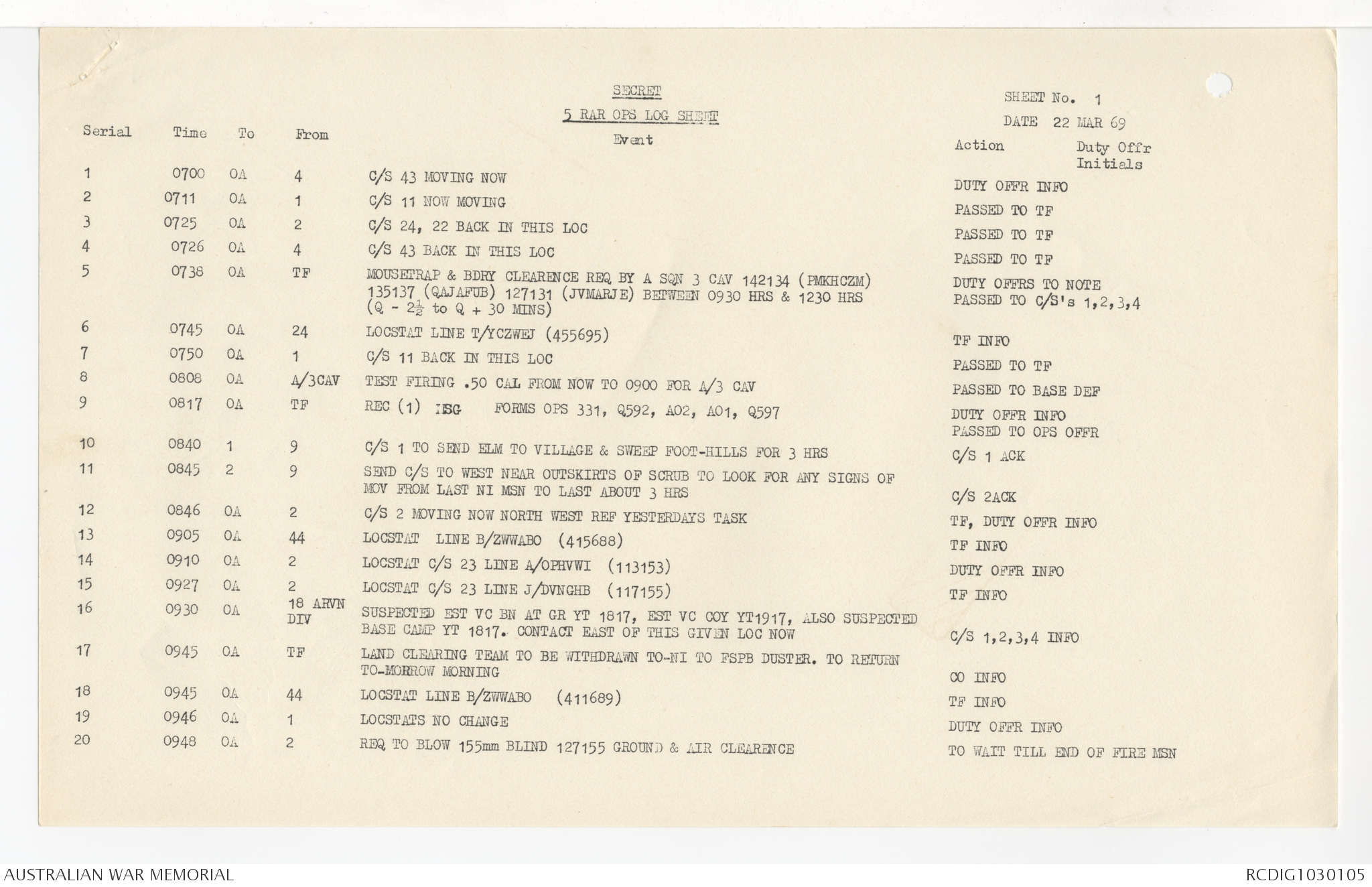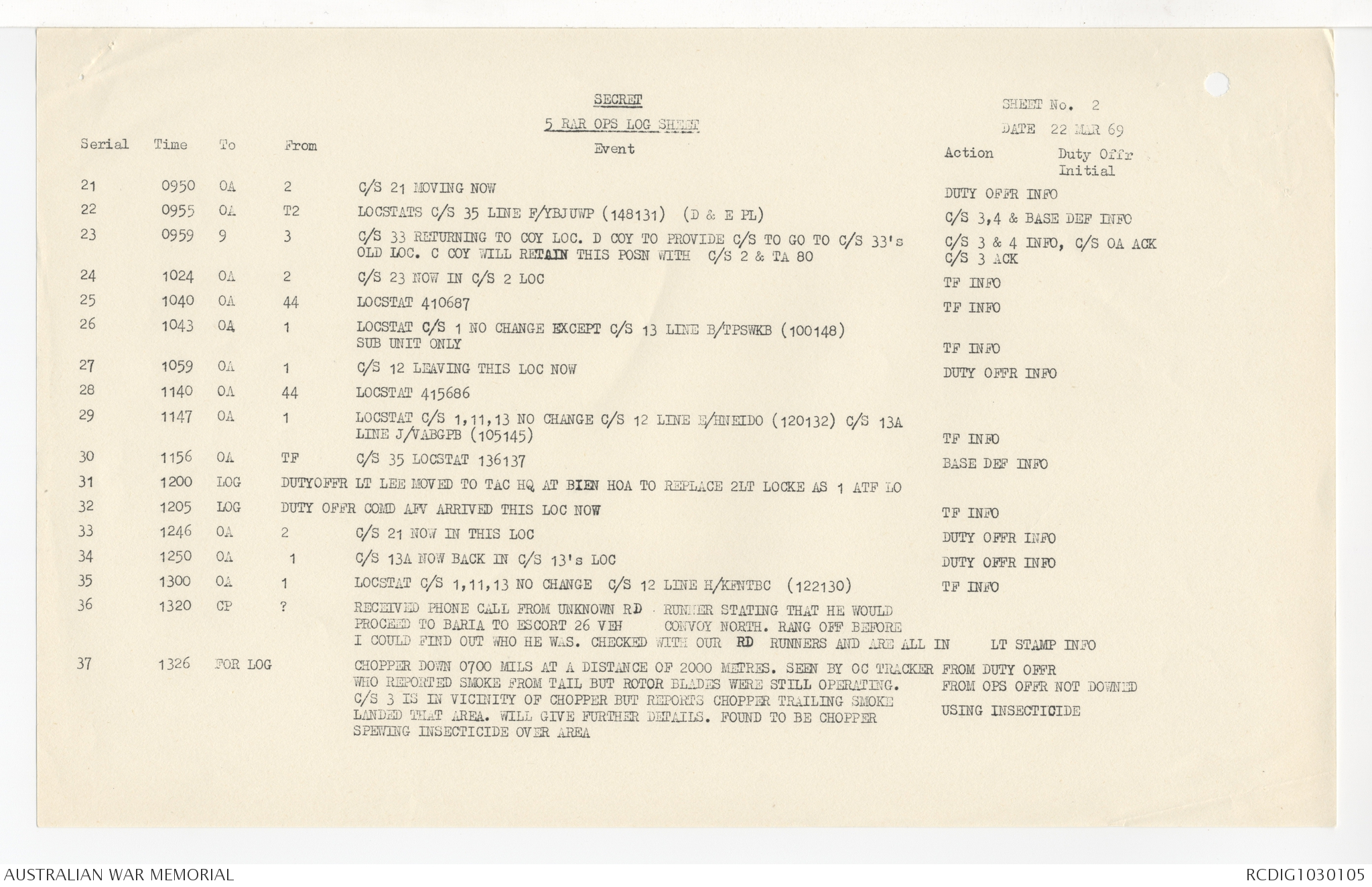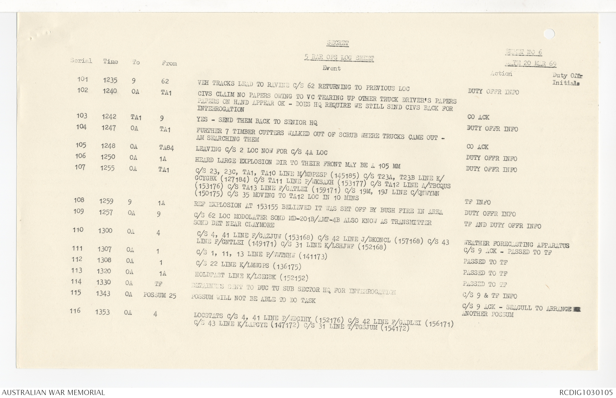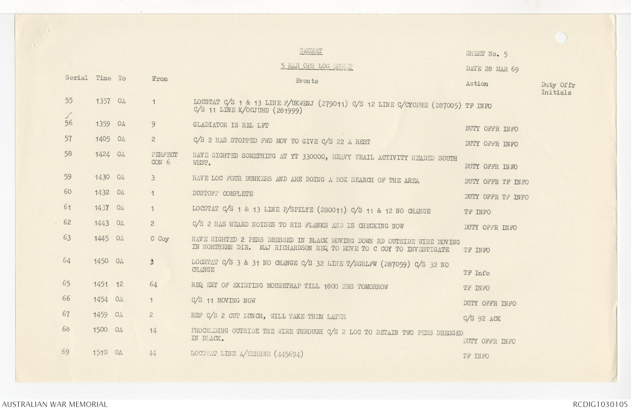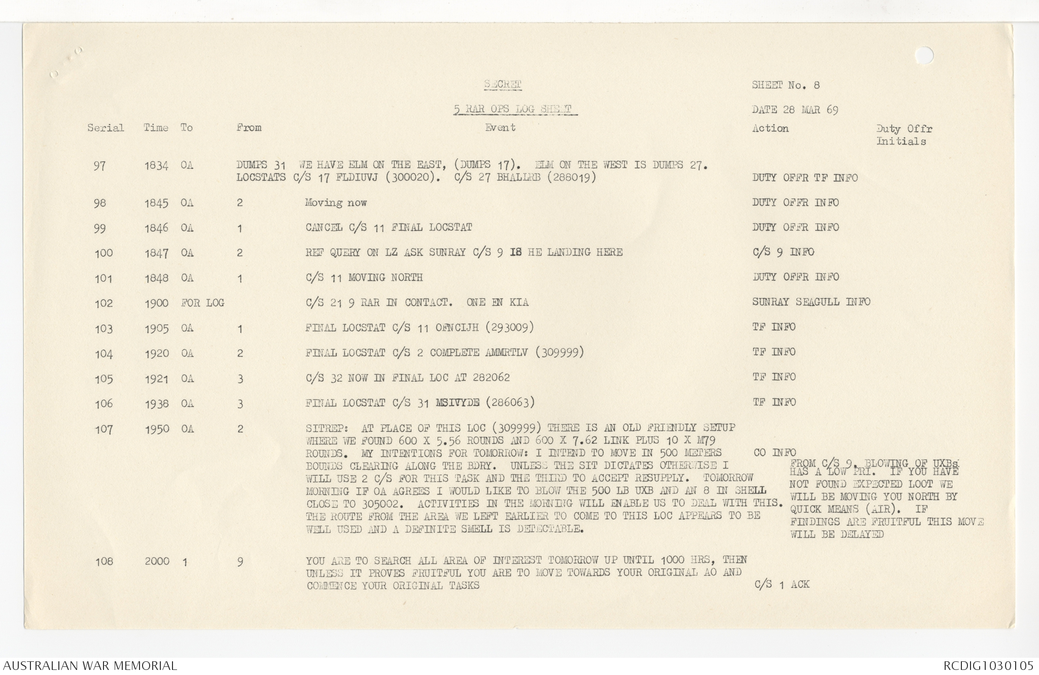 AWM95 7/5/21 - 1-31 March 1969, Annexes