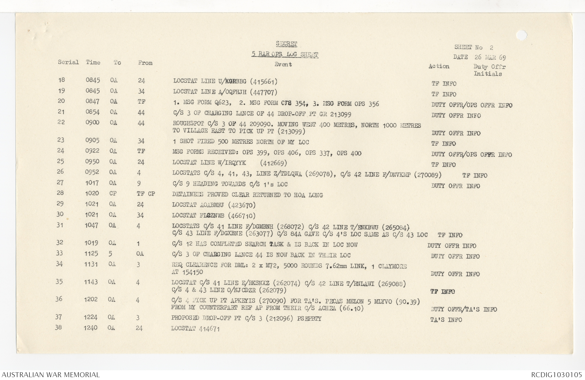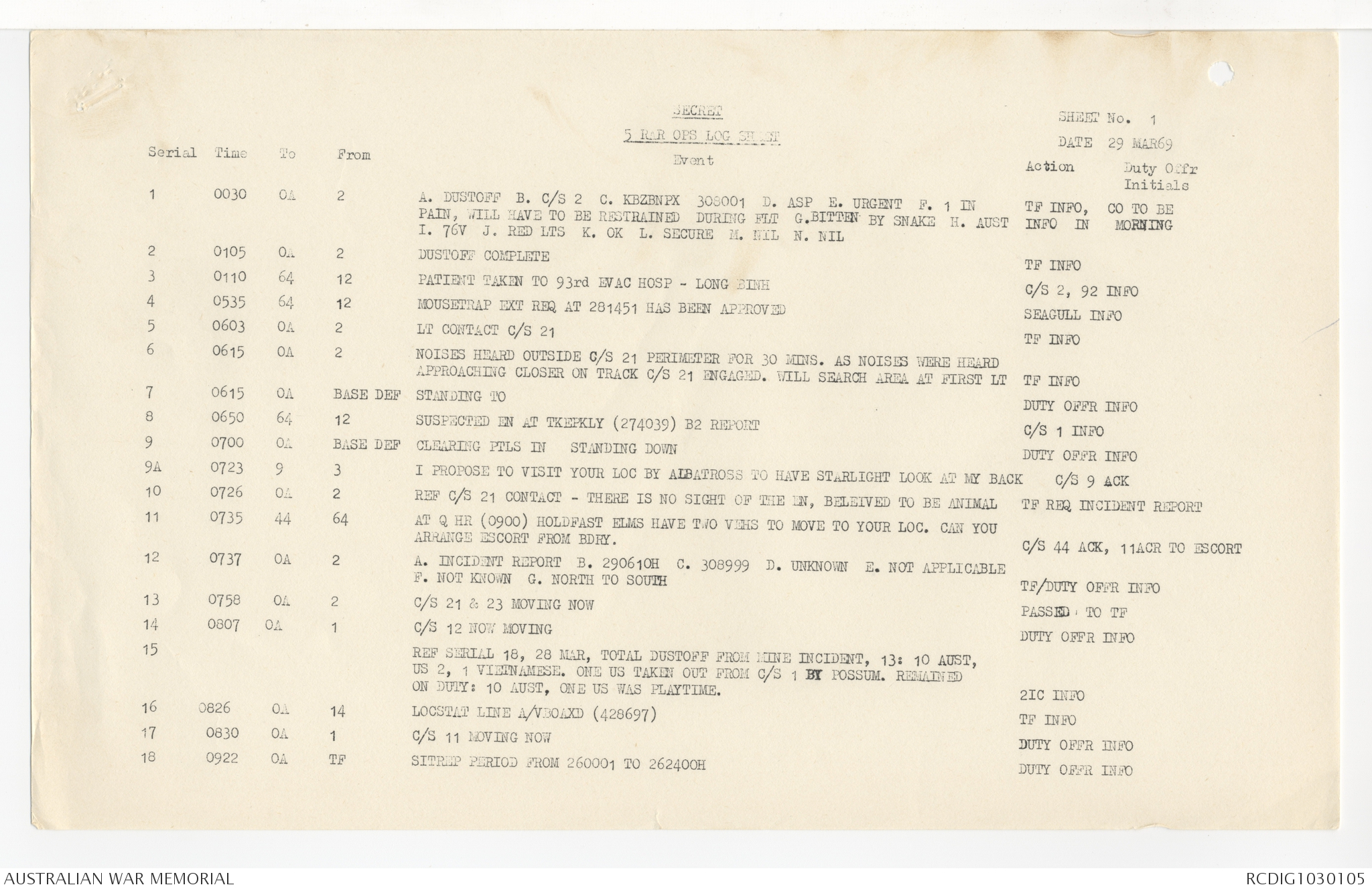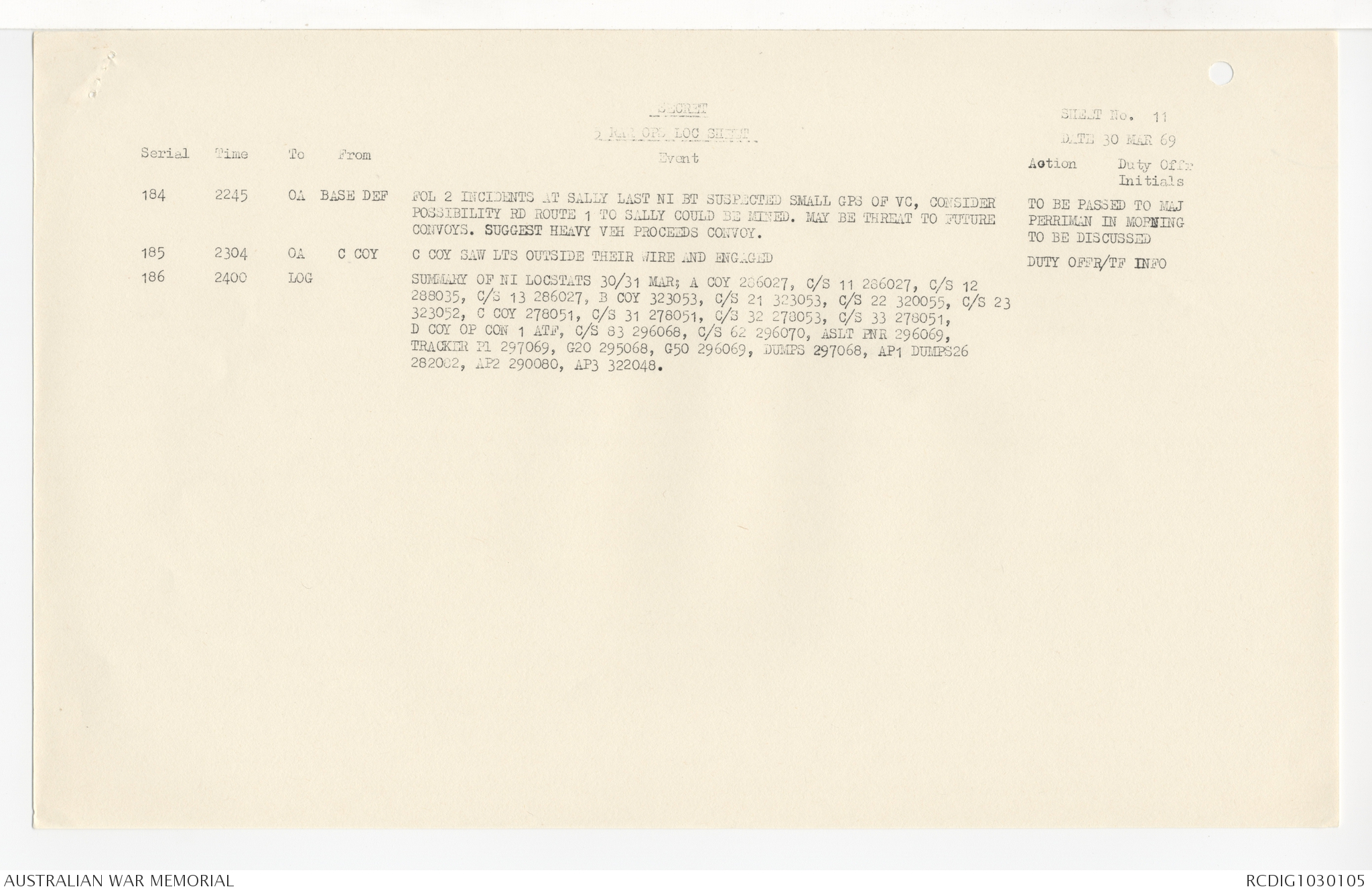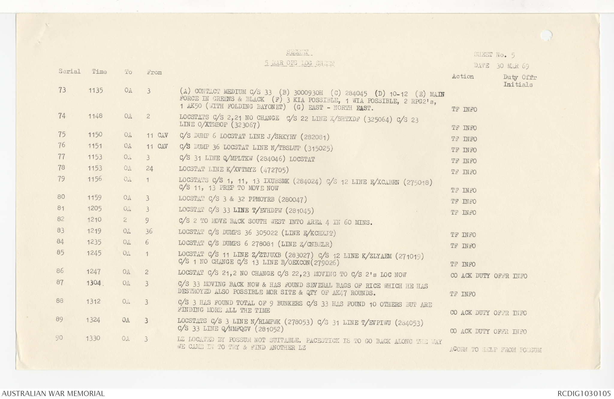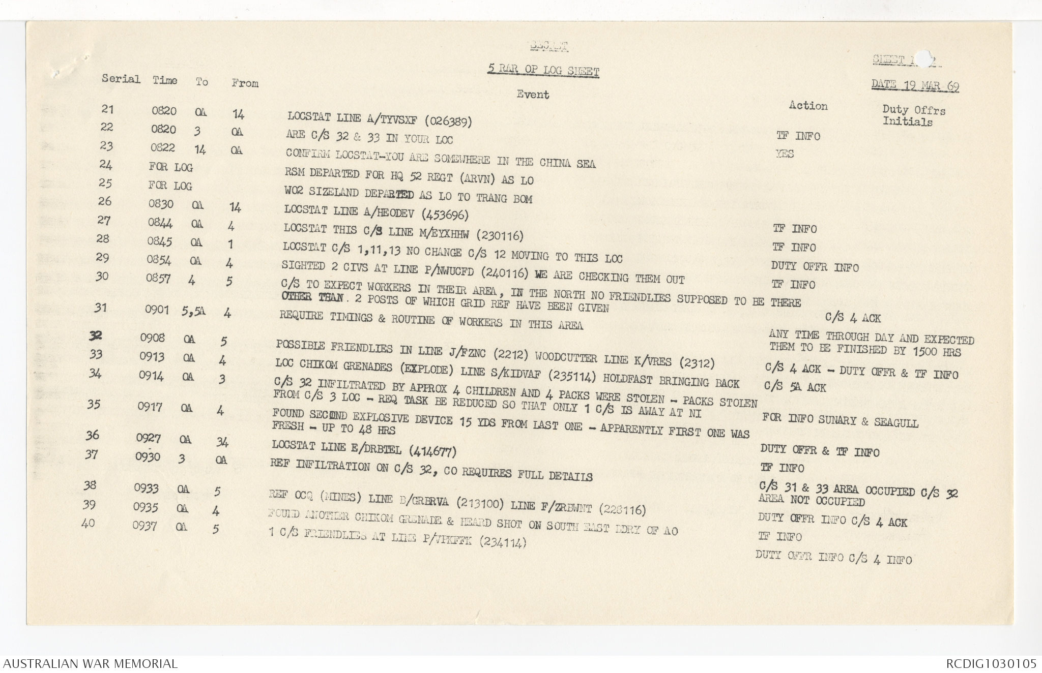 AWM95 7/5/21 - 1-31 March 1969, Annexes