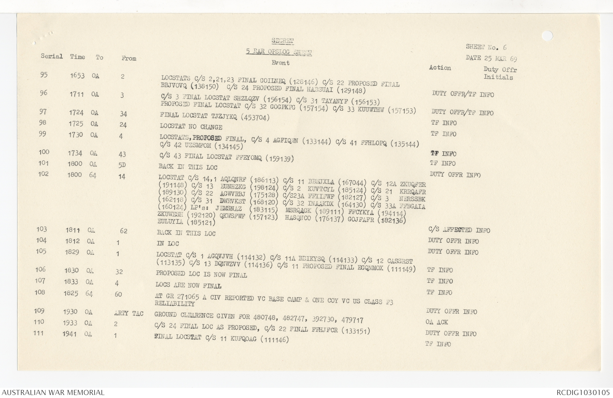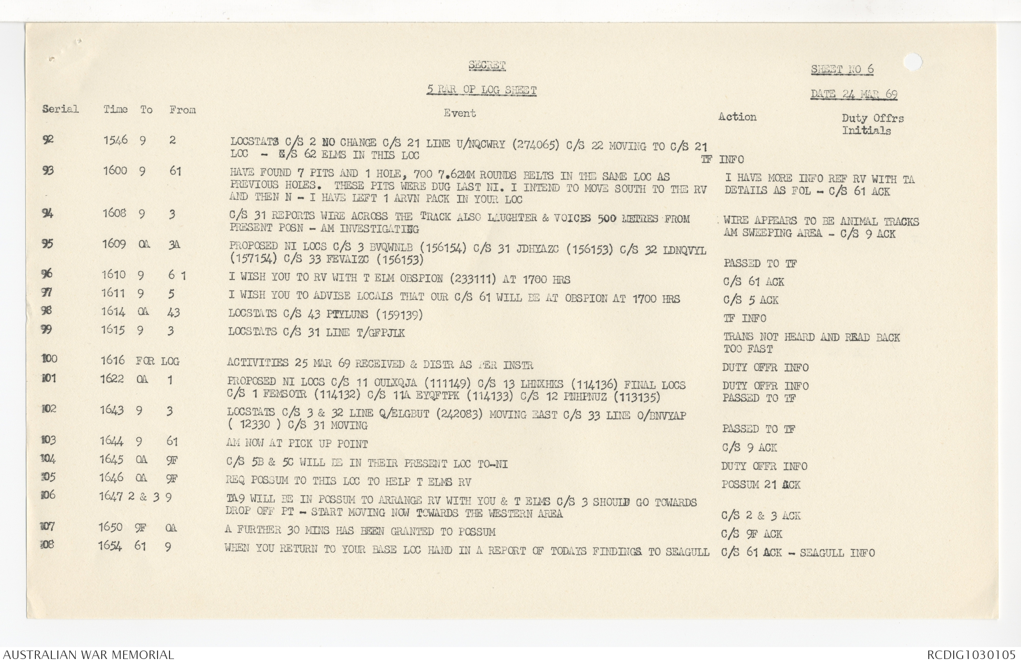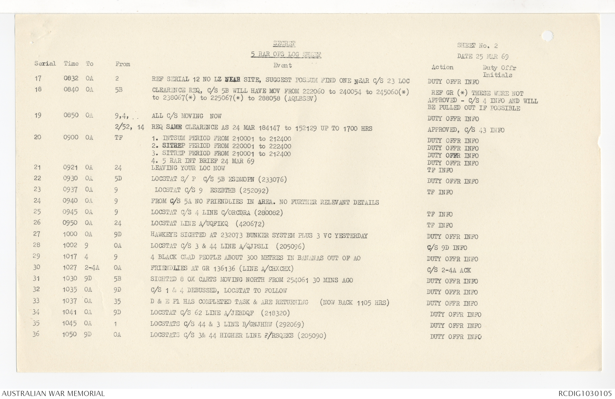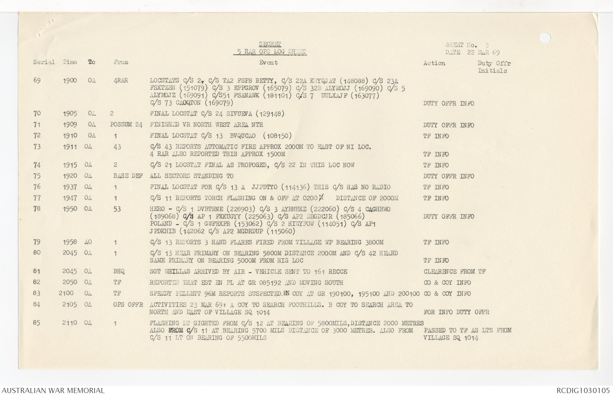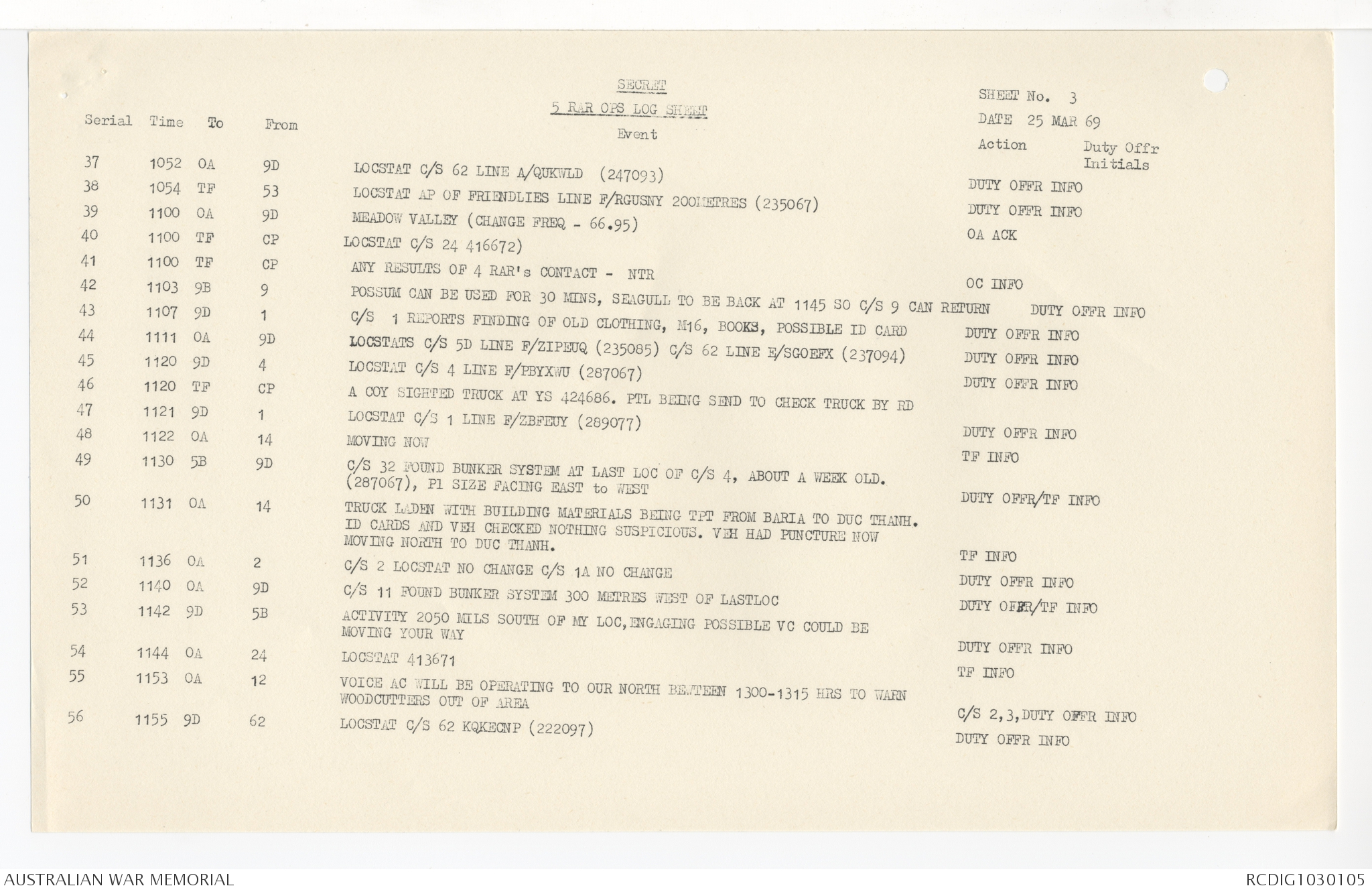 AWM95 7/5/21 - 1-31 March 1969, Annexes