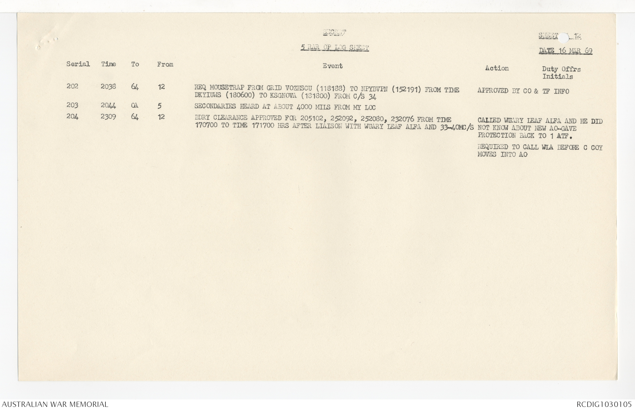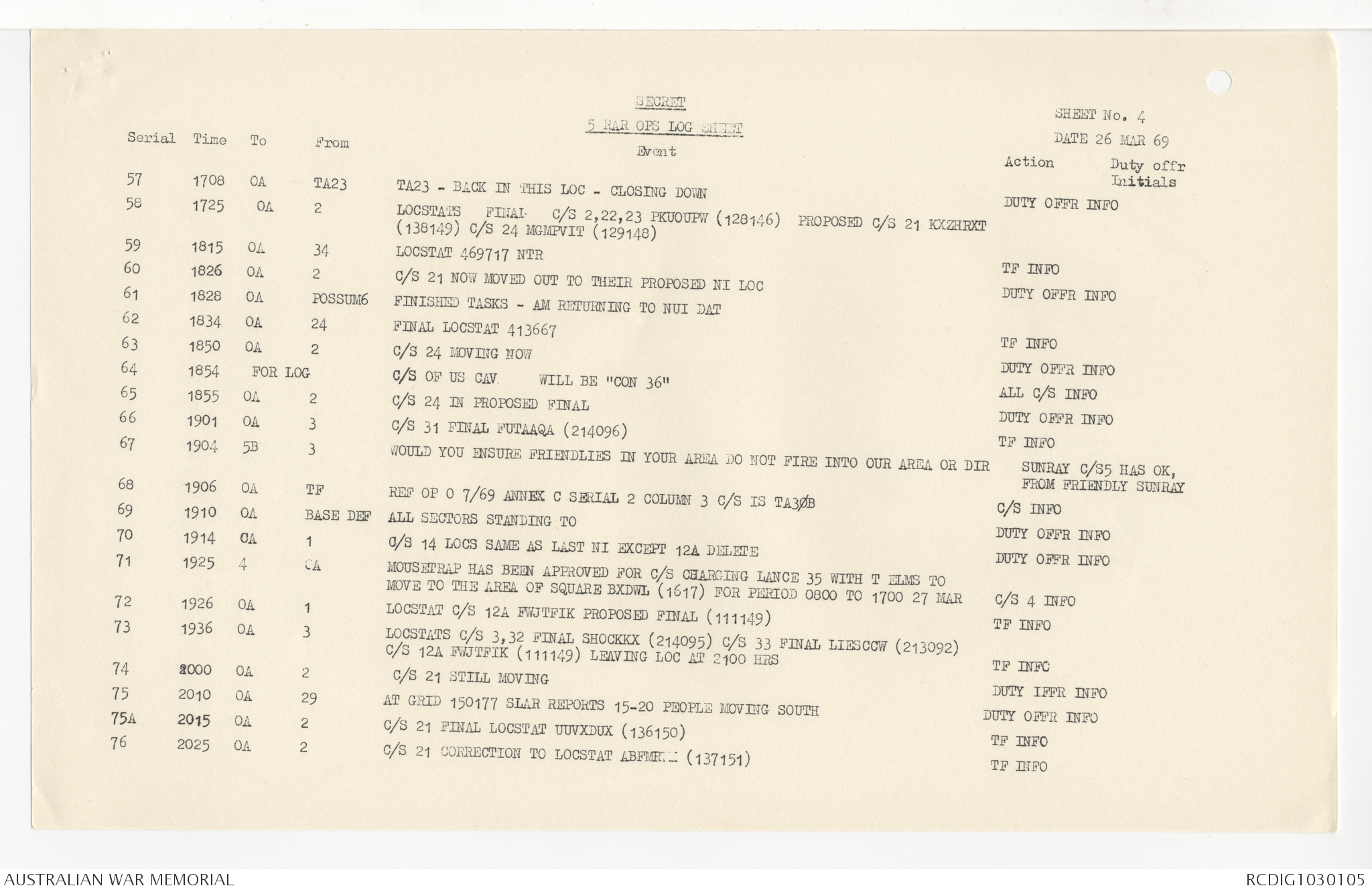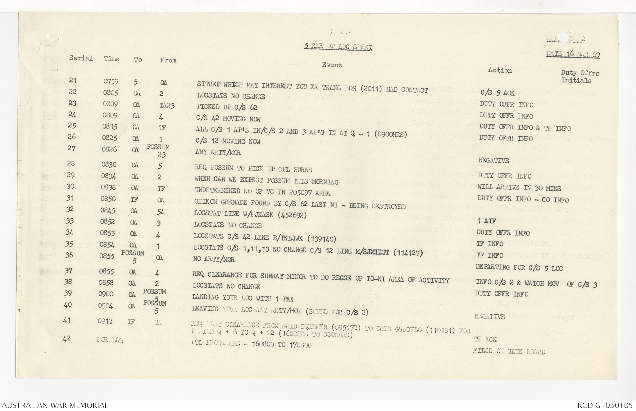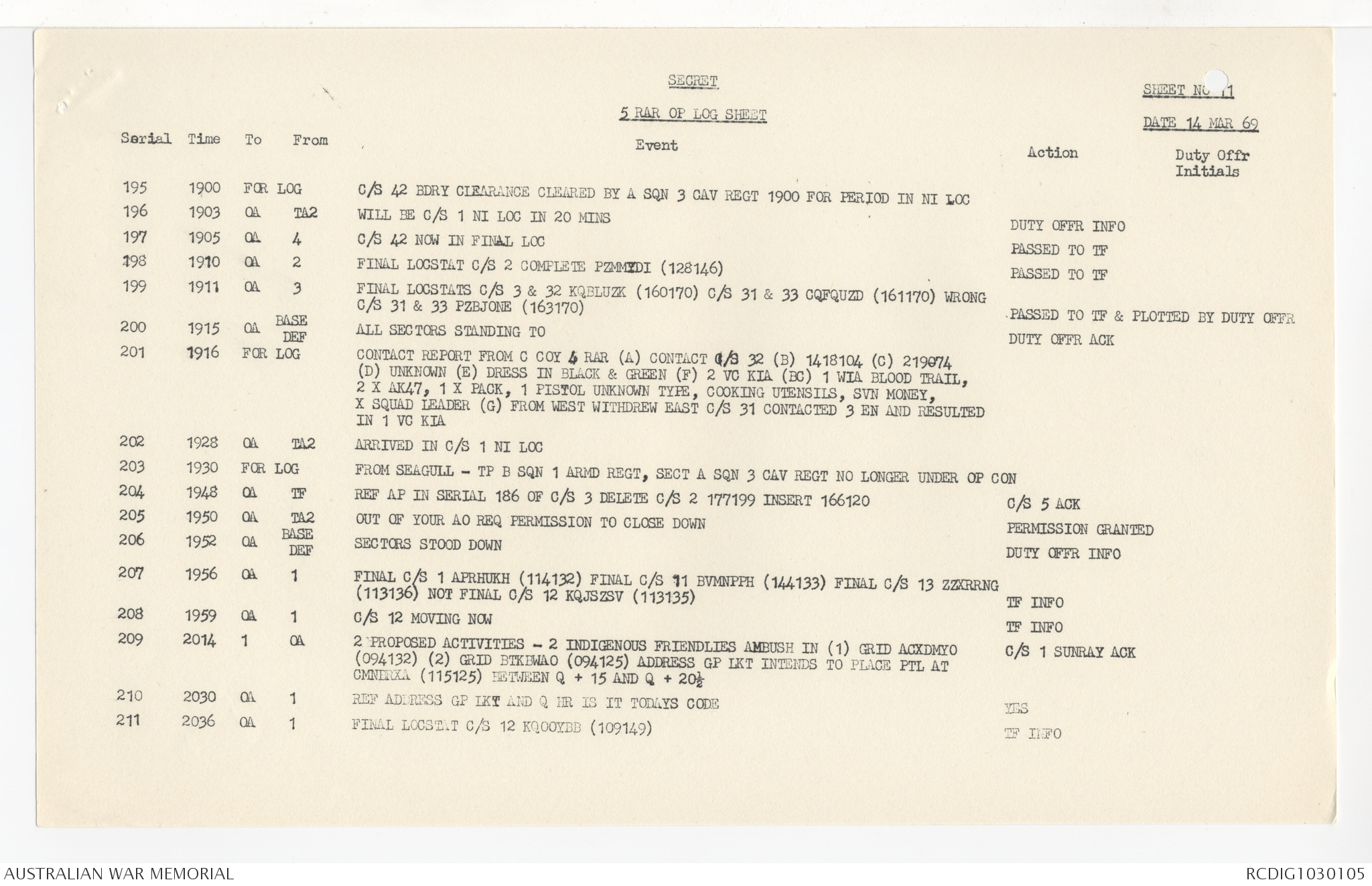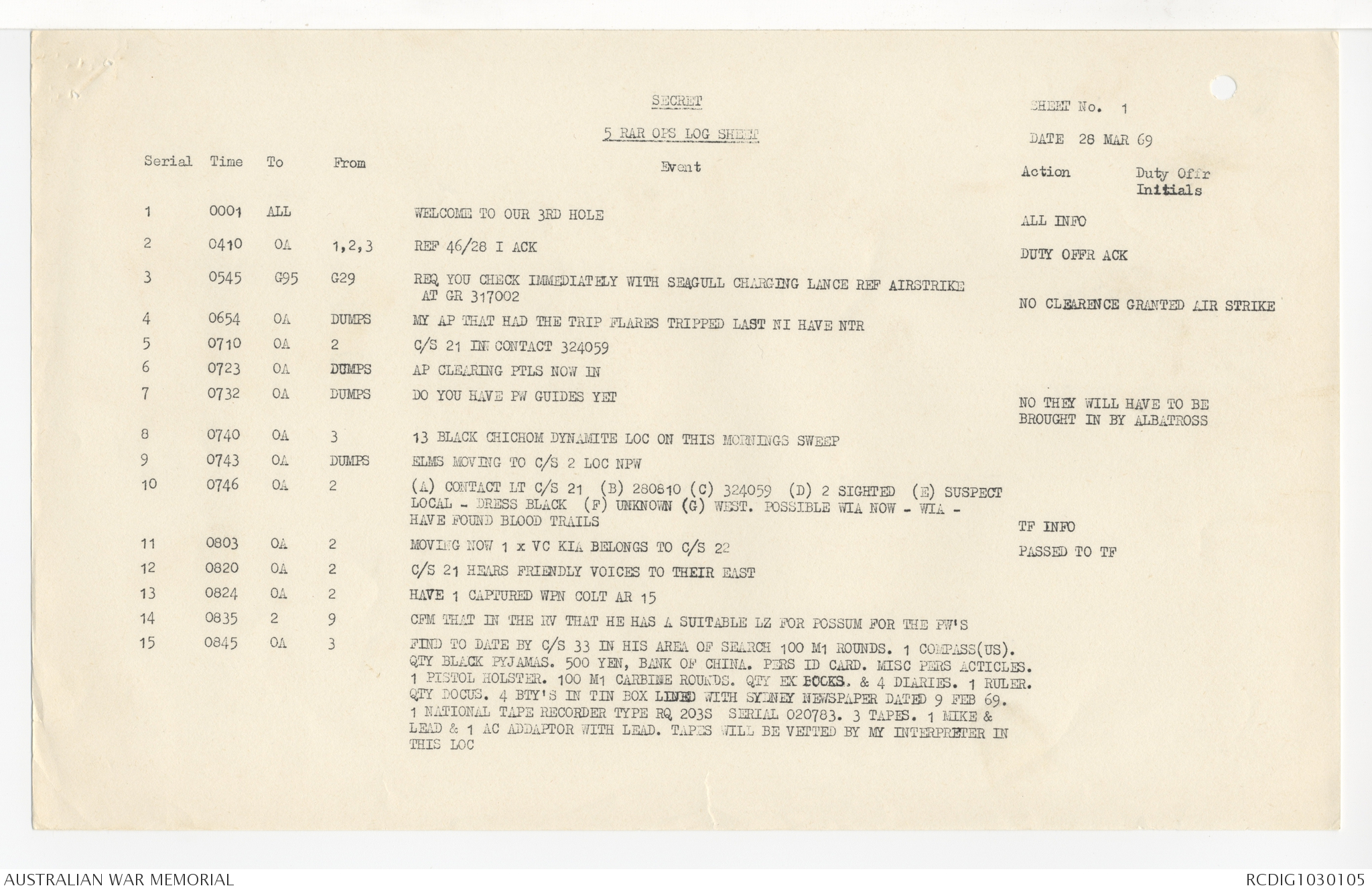 AWM95 7/5/21 - 1-31 March 1969, Annexes