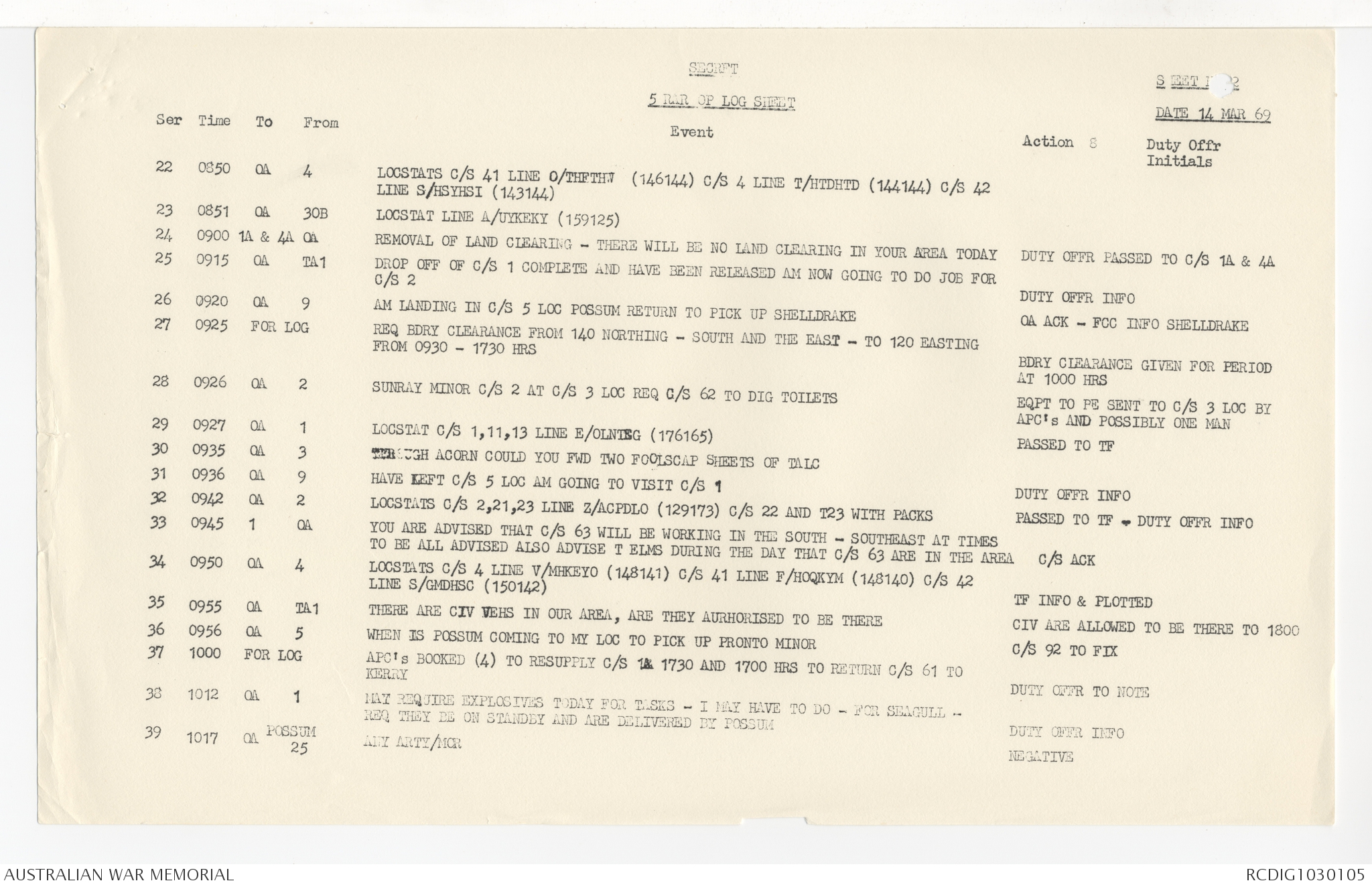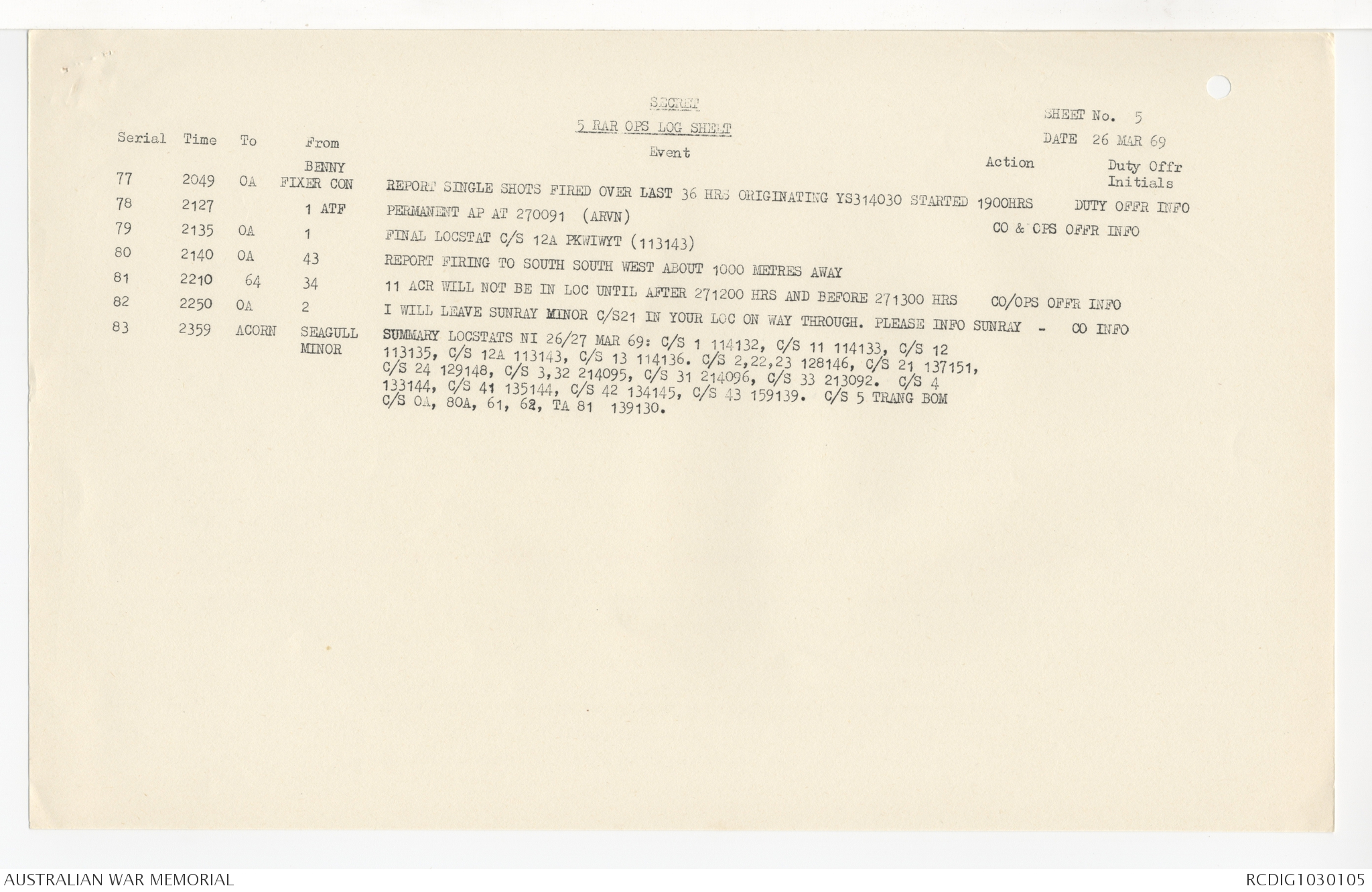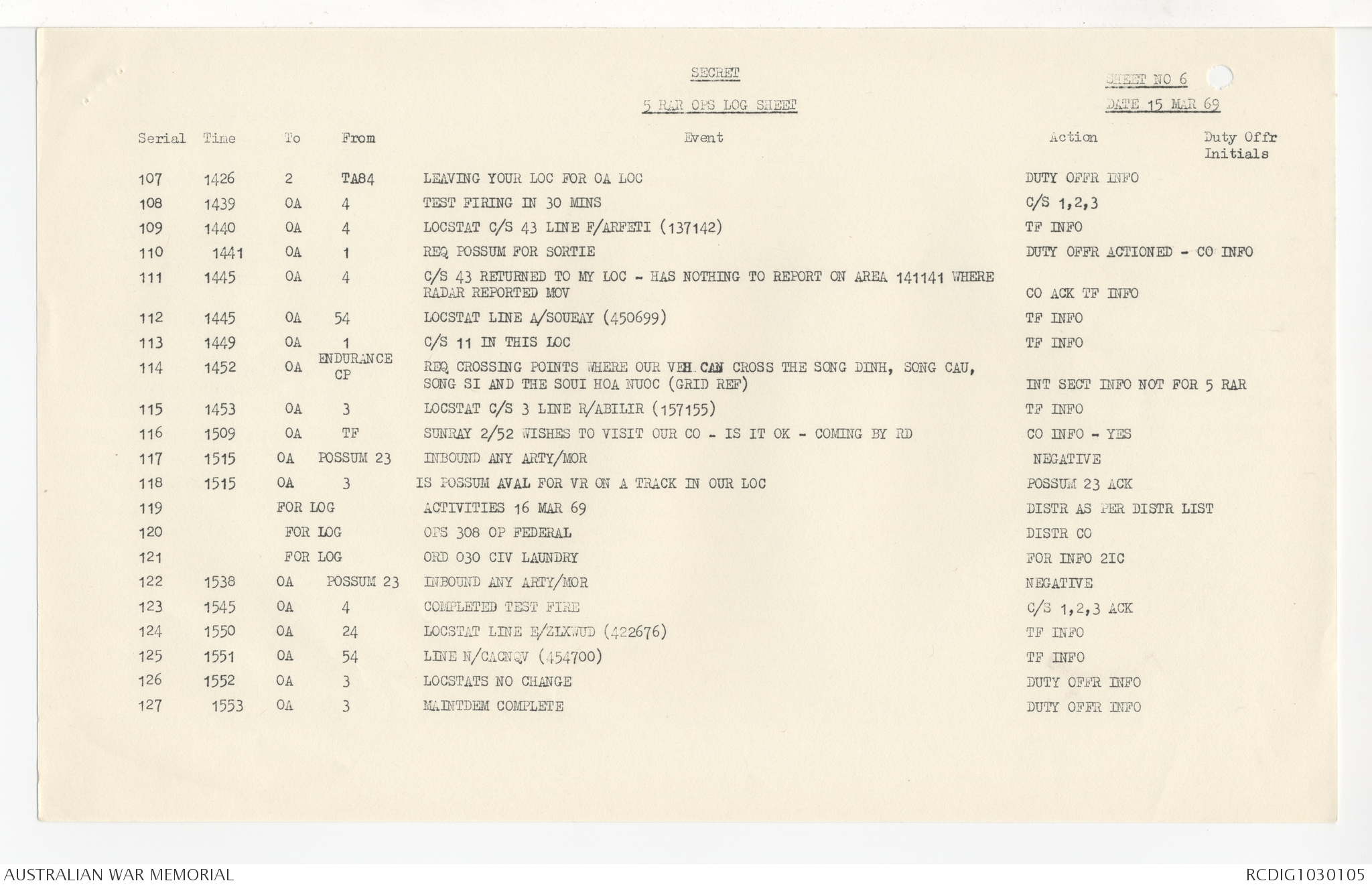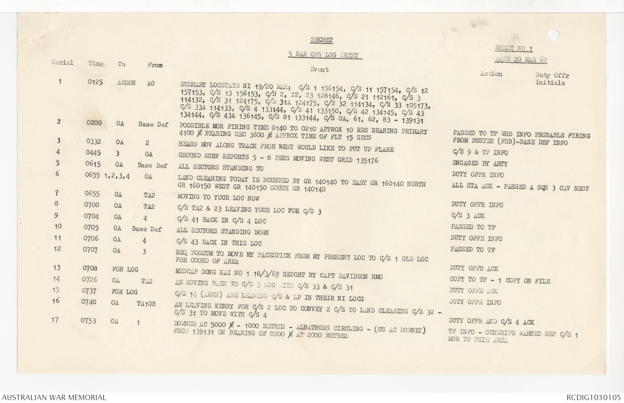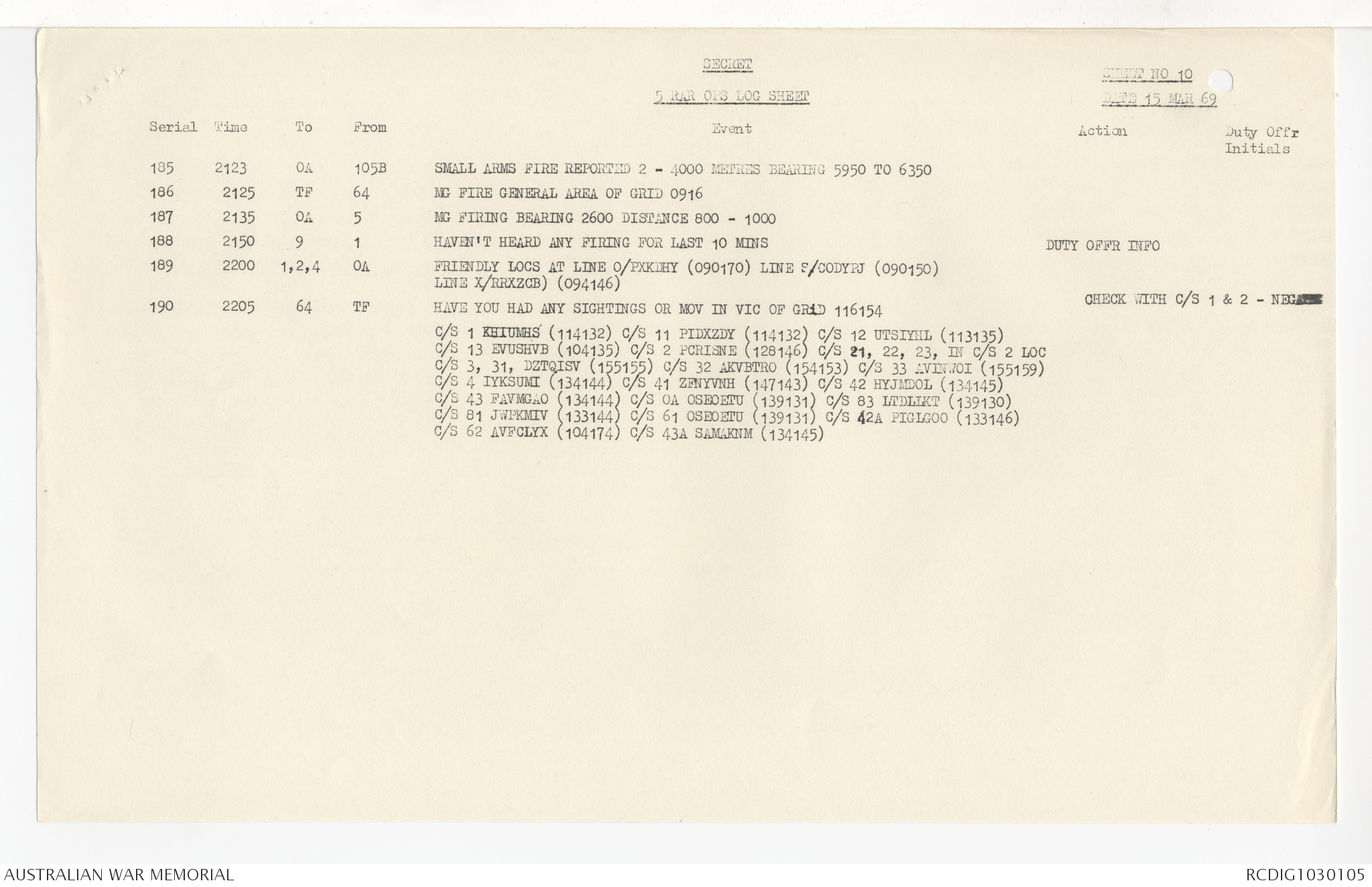 AWM95 7/5/21 - 1-31 March 1969, Annexes