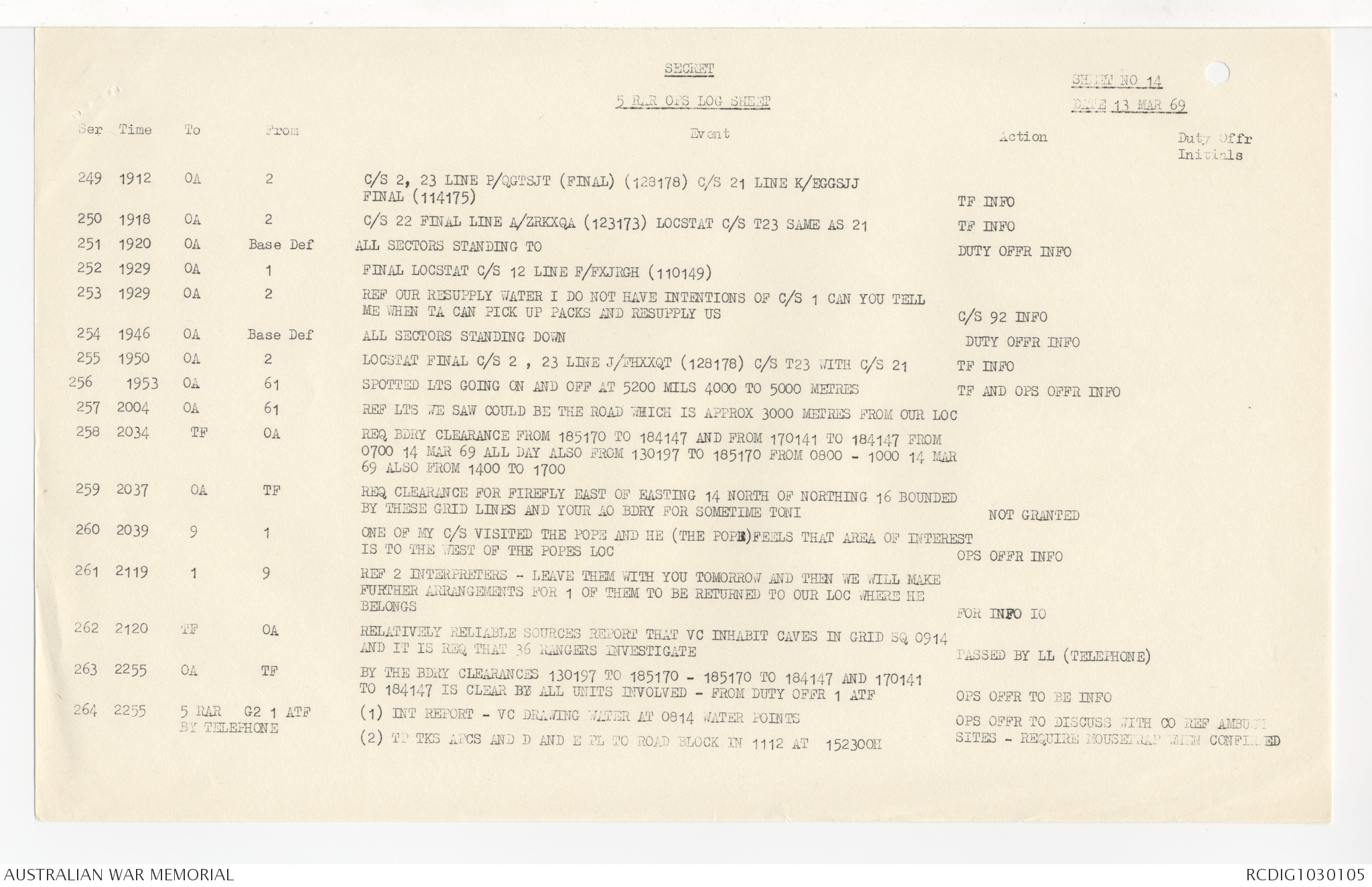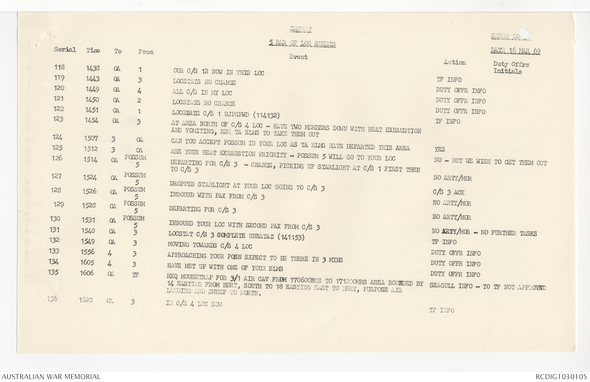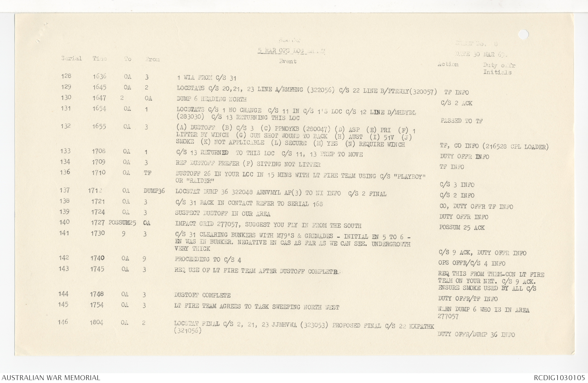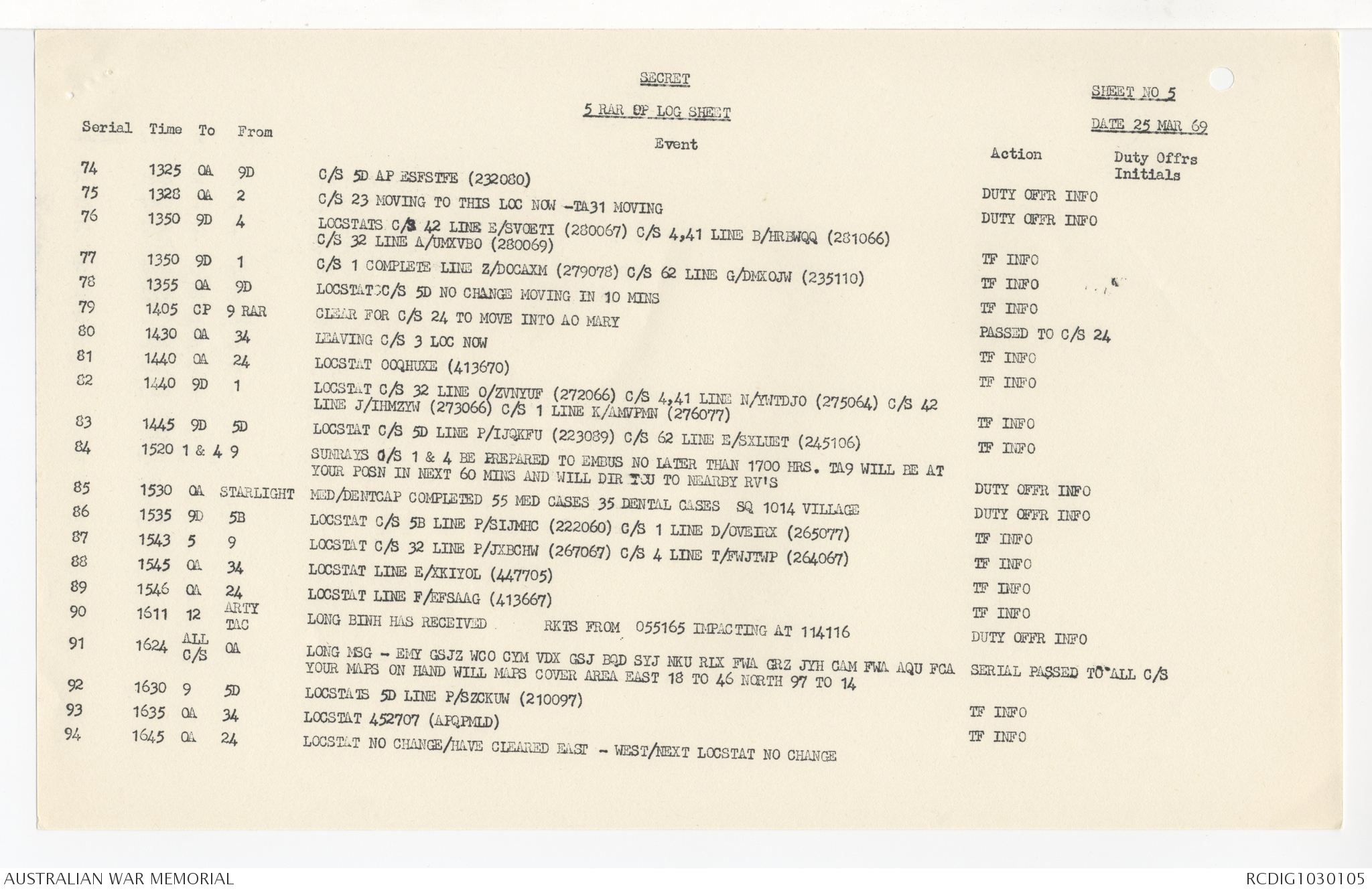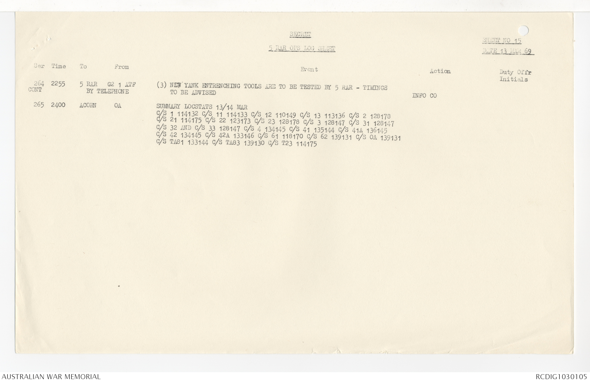 AWM95 7/5/21 - 1-31 March 1969, Annexes