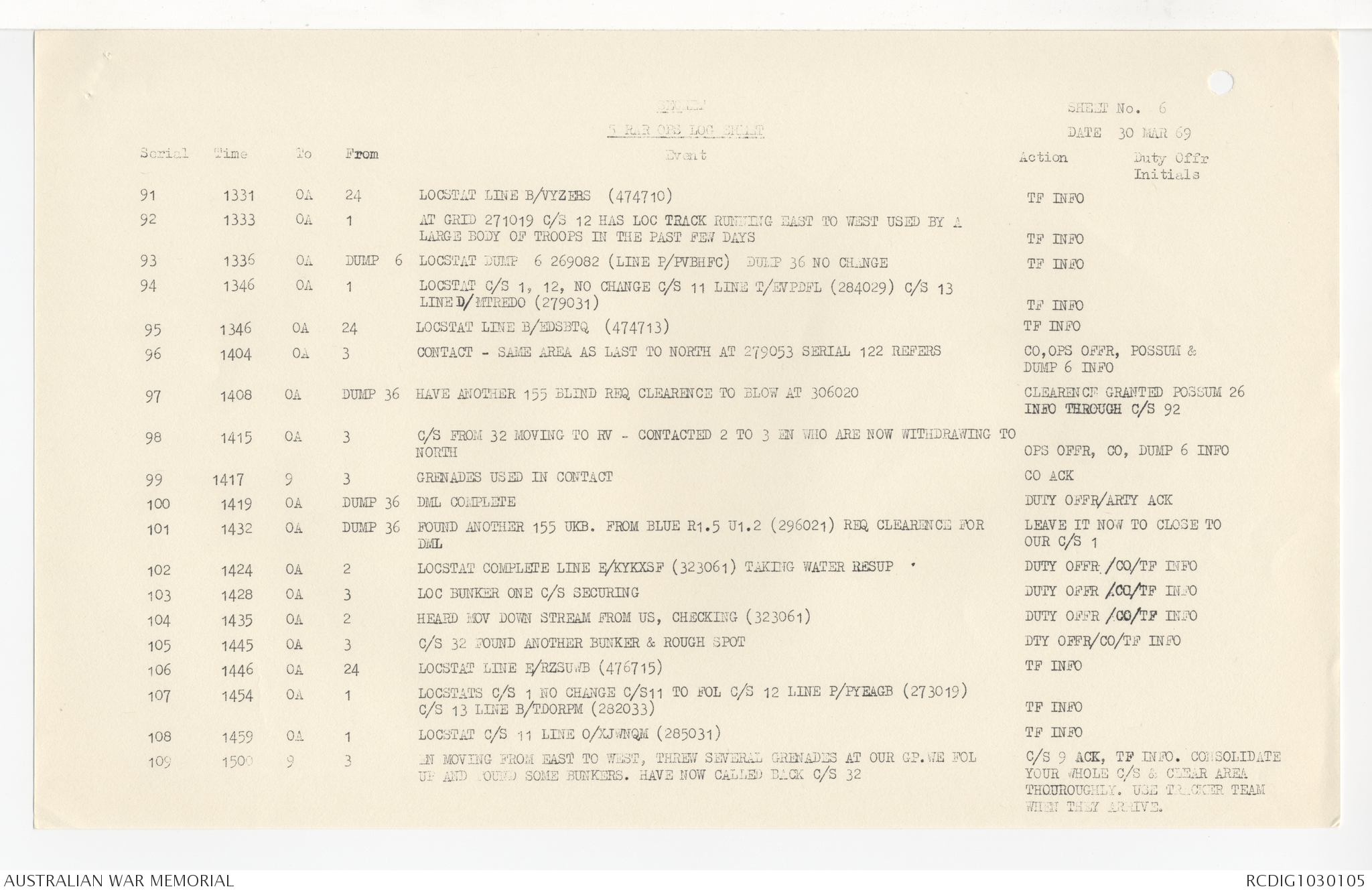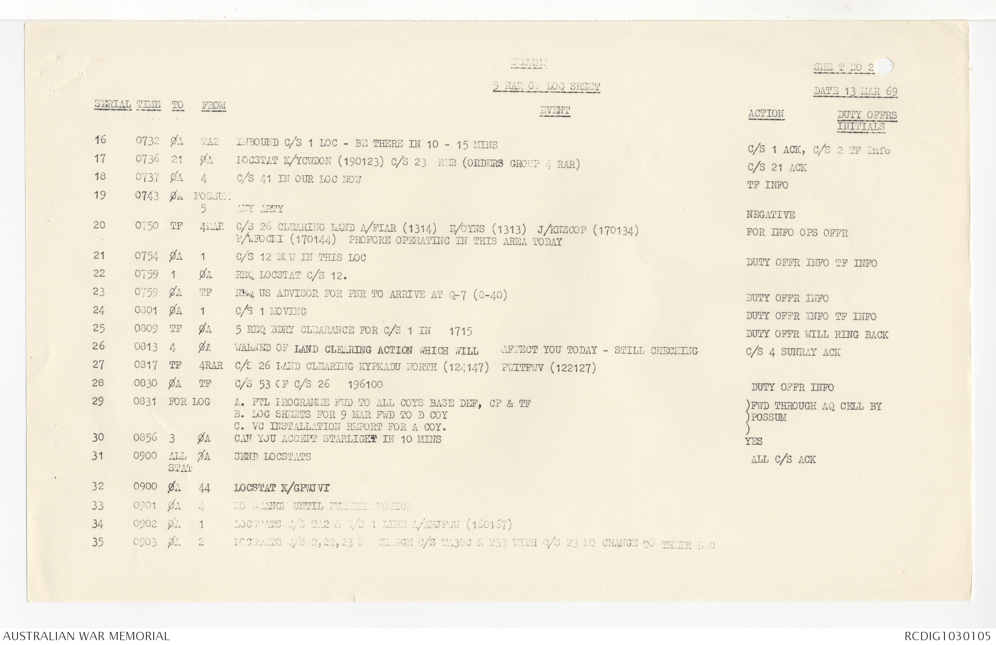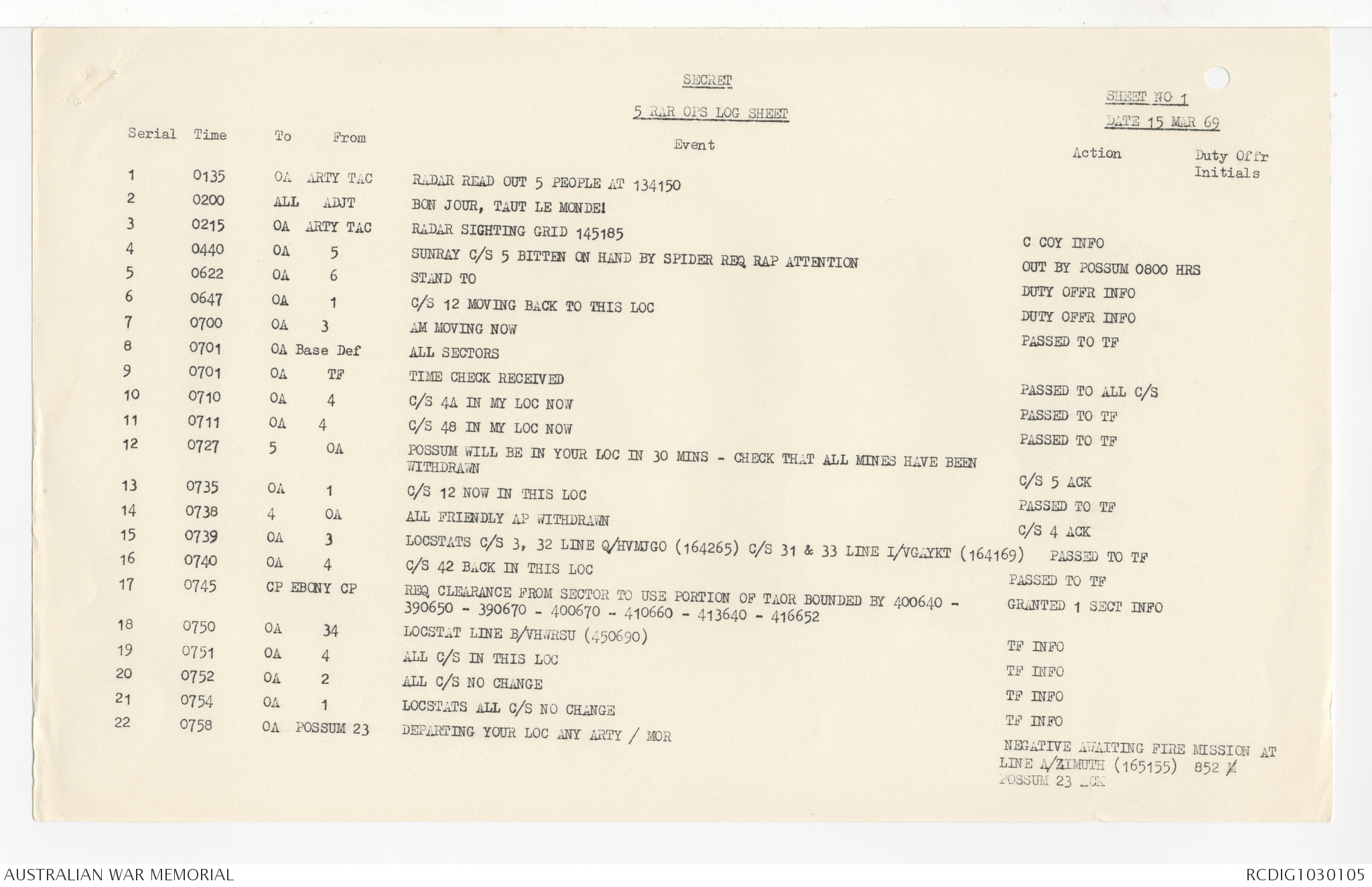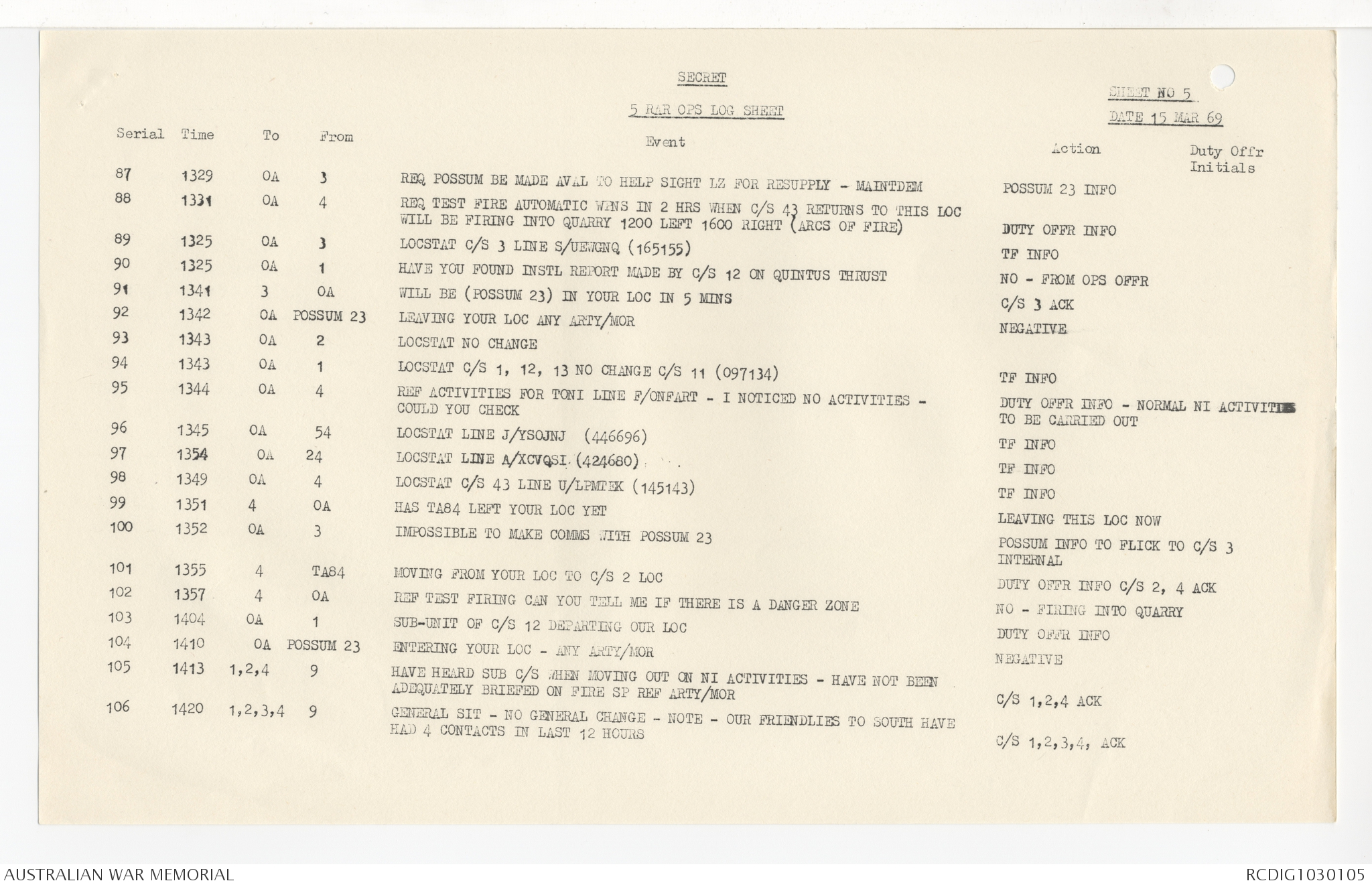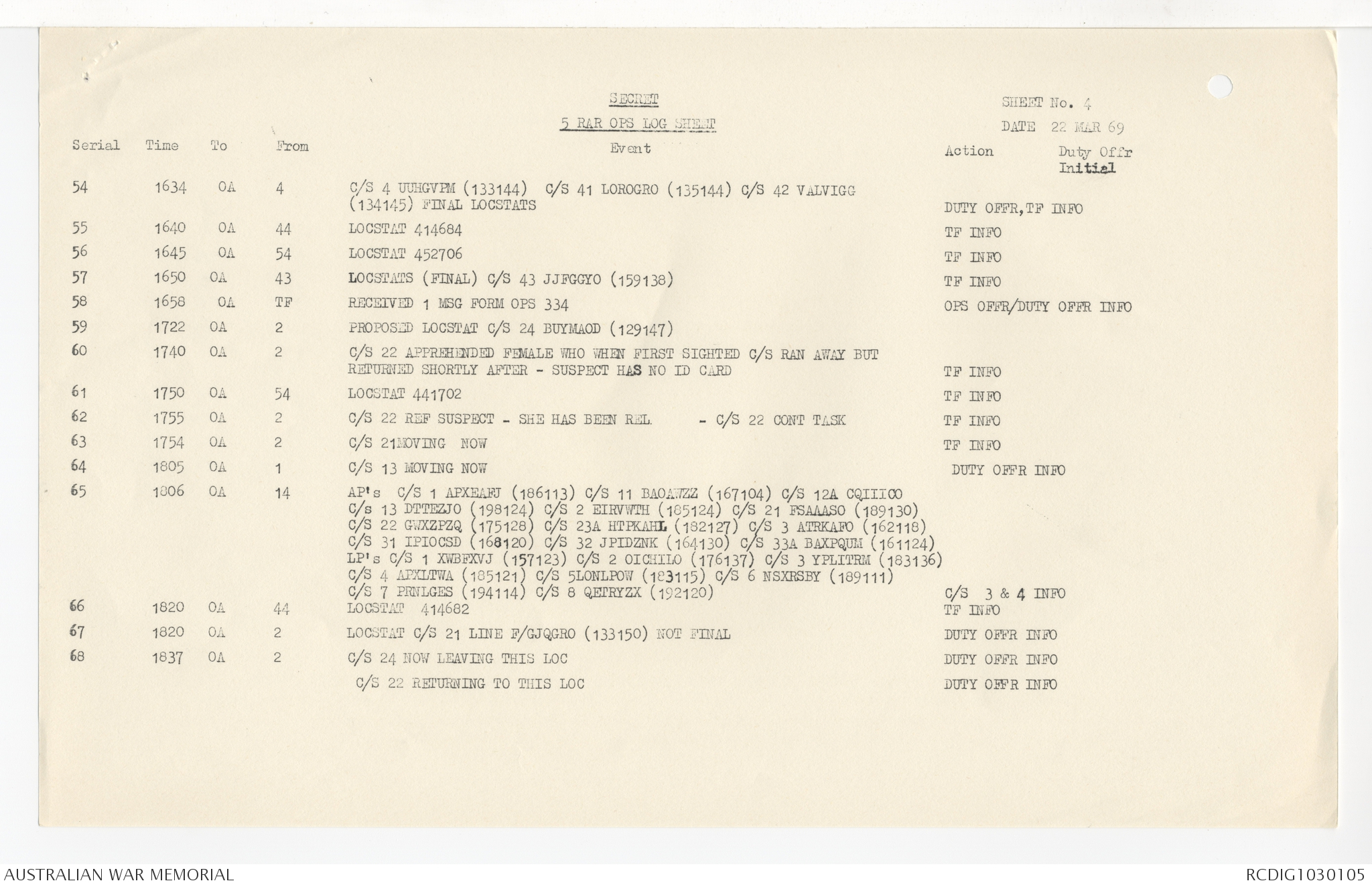 AWM95 7/5/21 - 1-31 March 1969, Annexes