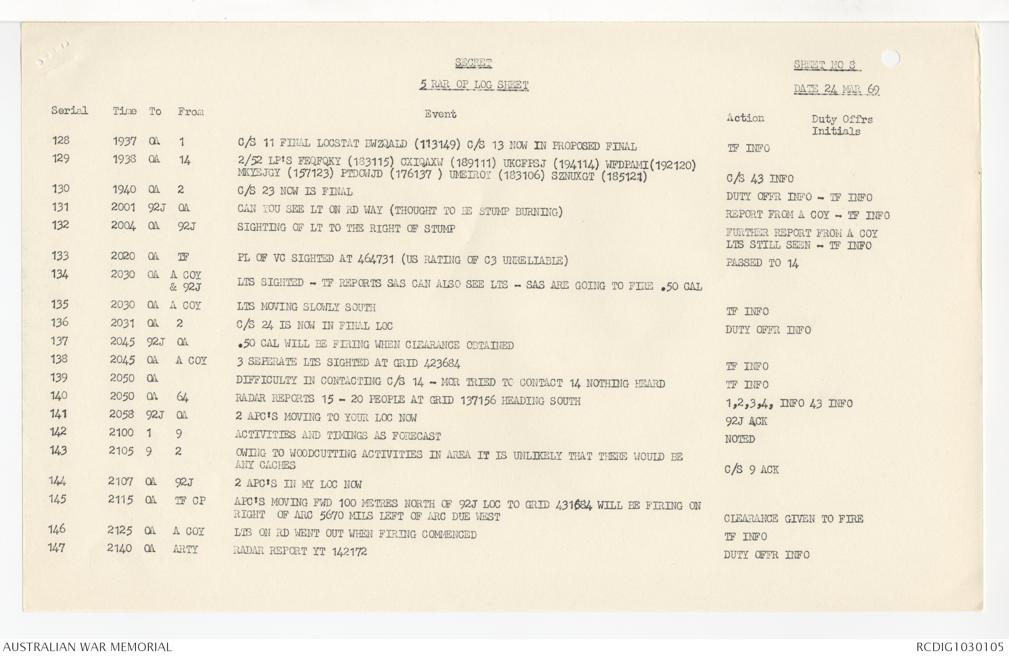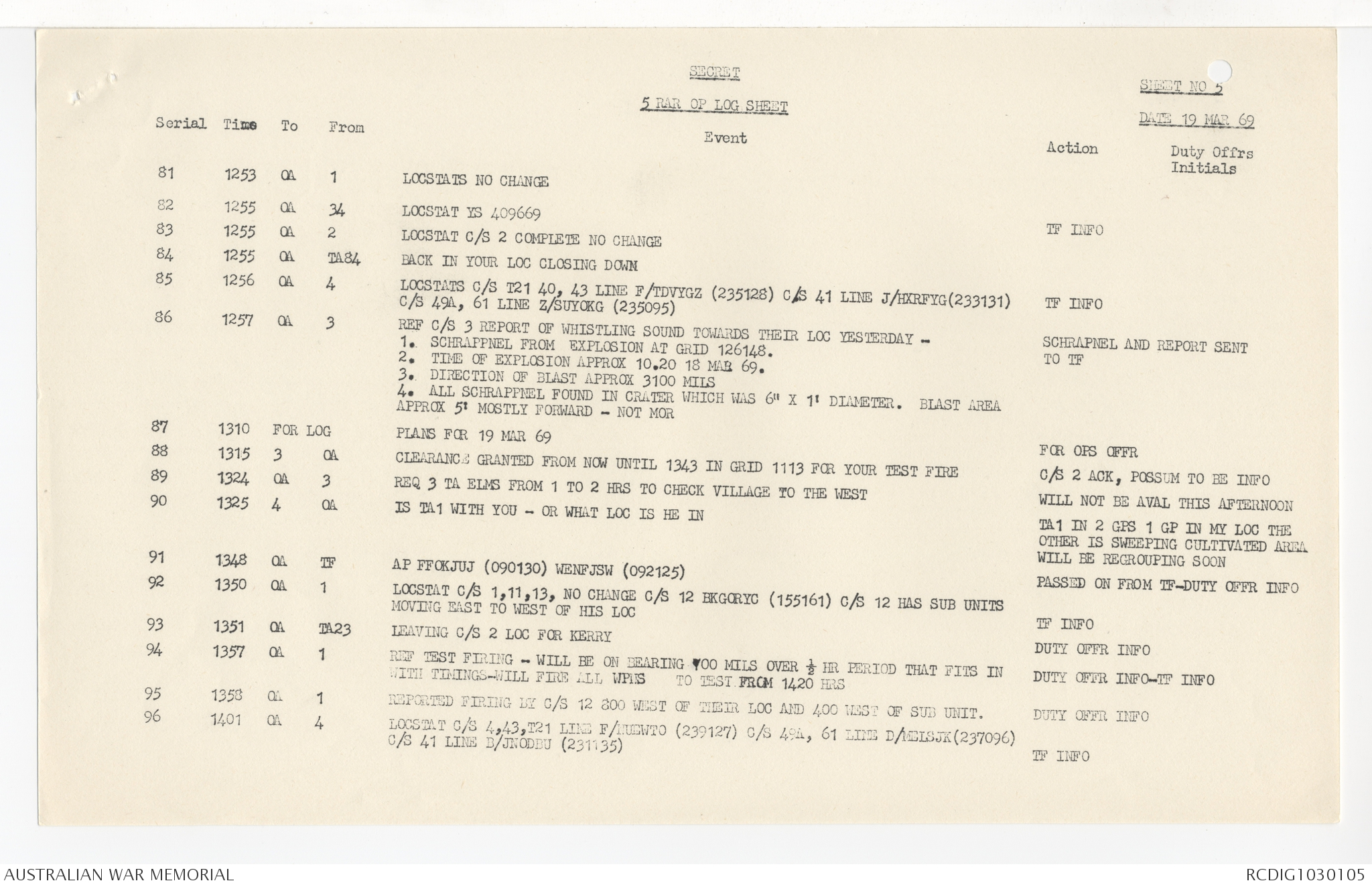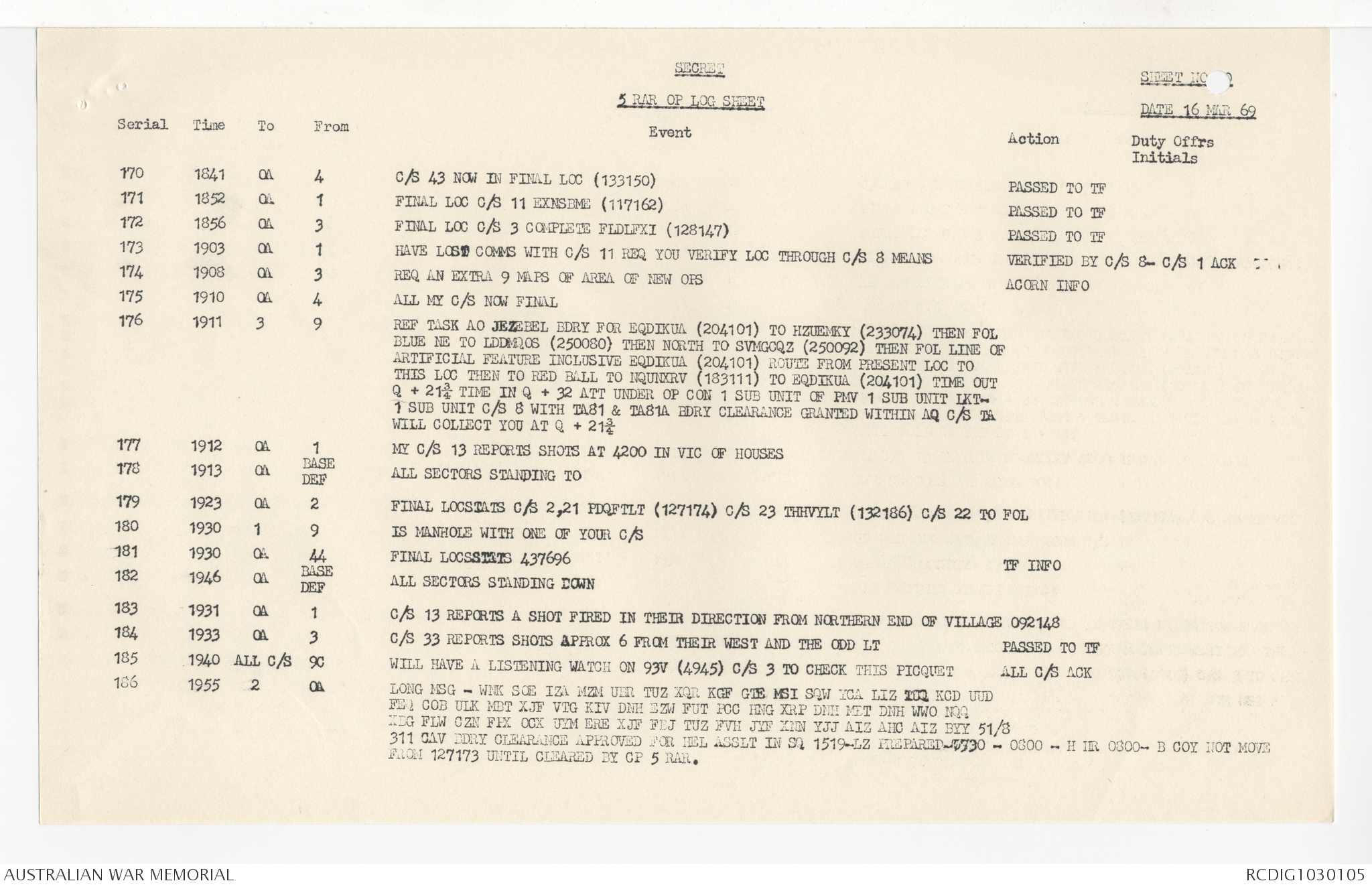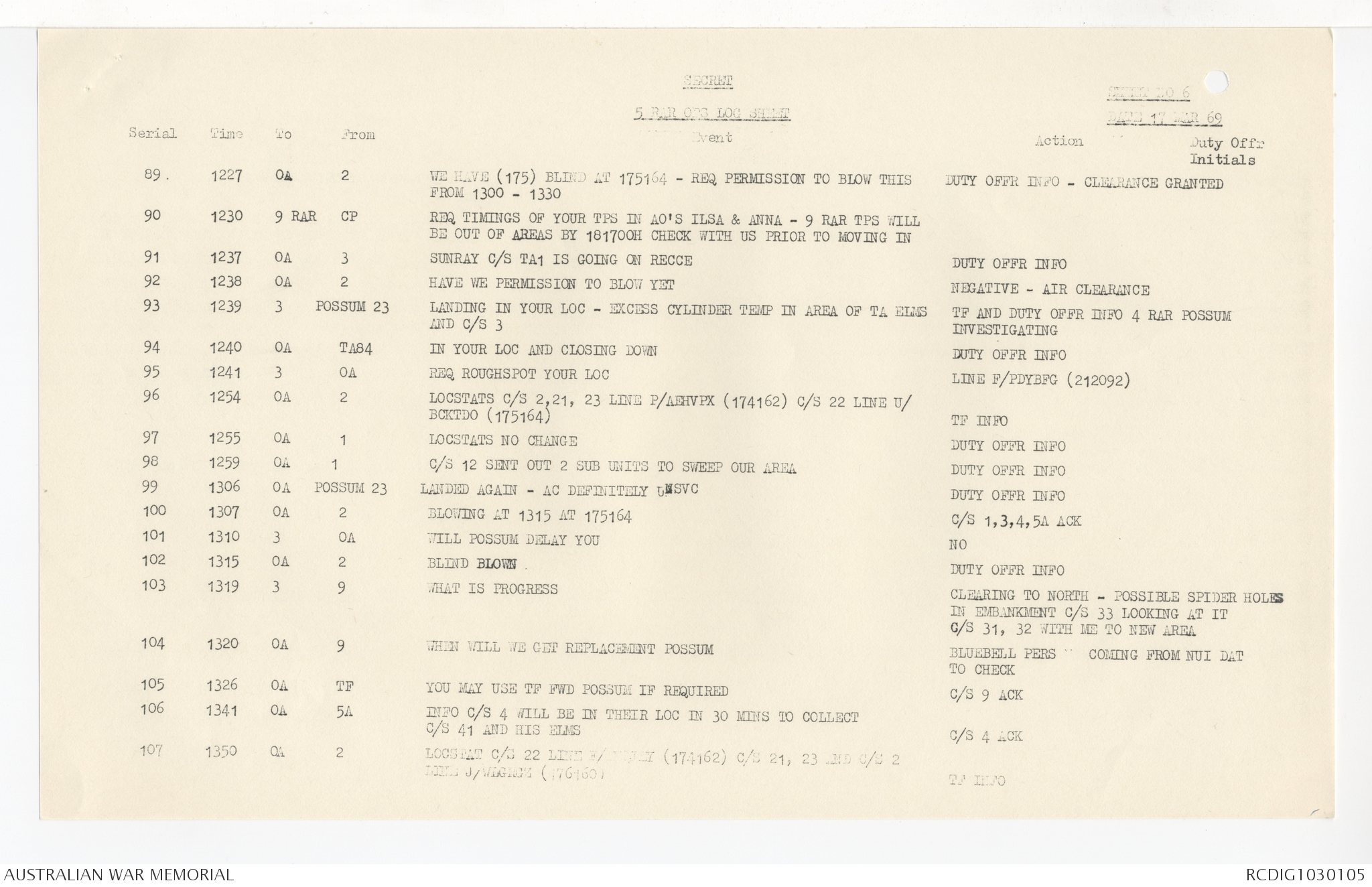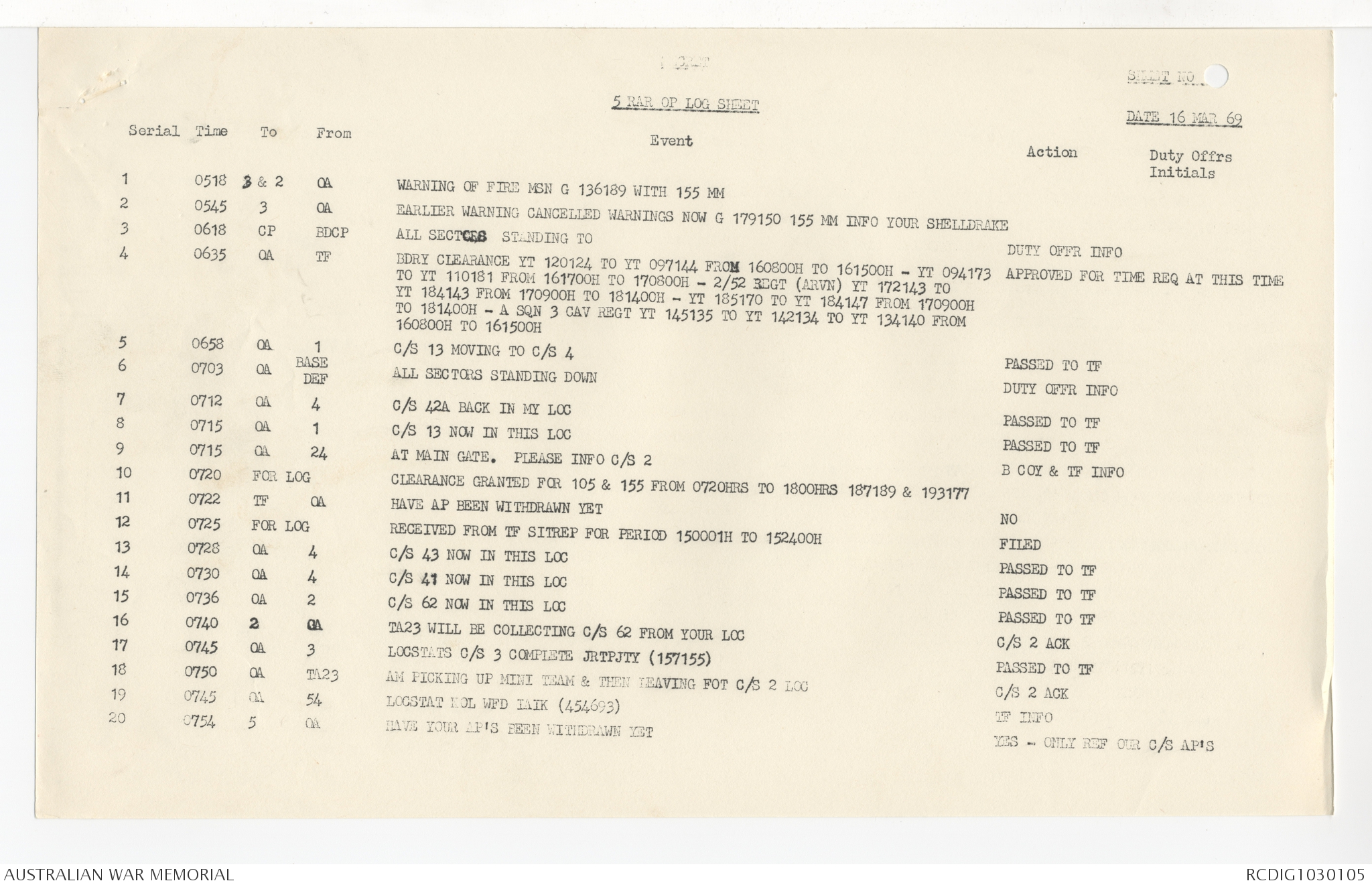 AWM95 7/5/21 - 1-31 March 1969, Annexes