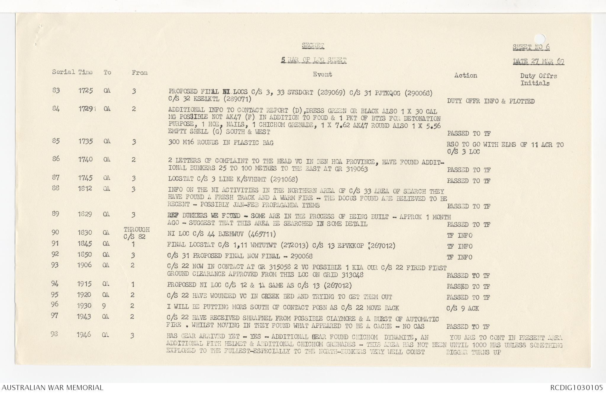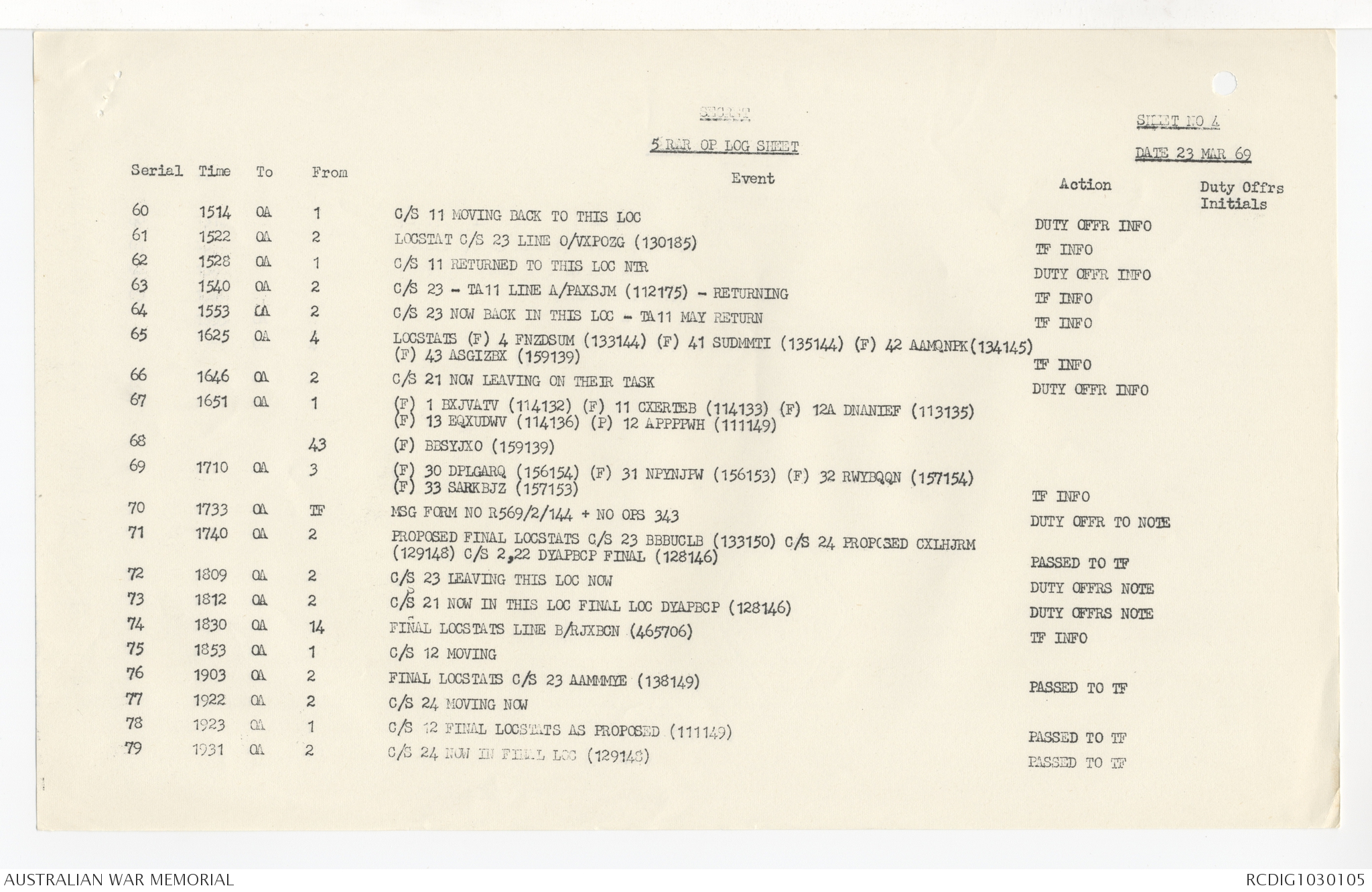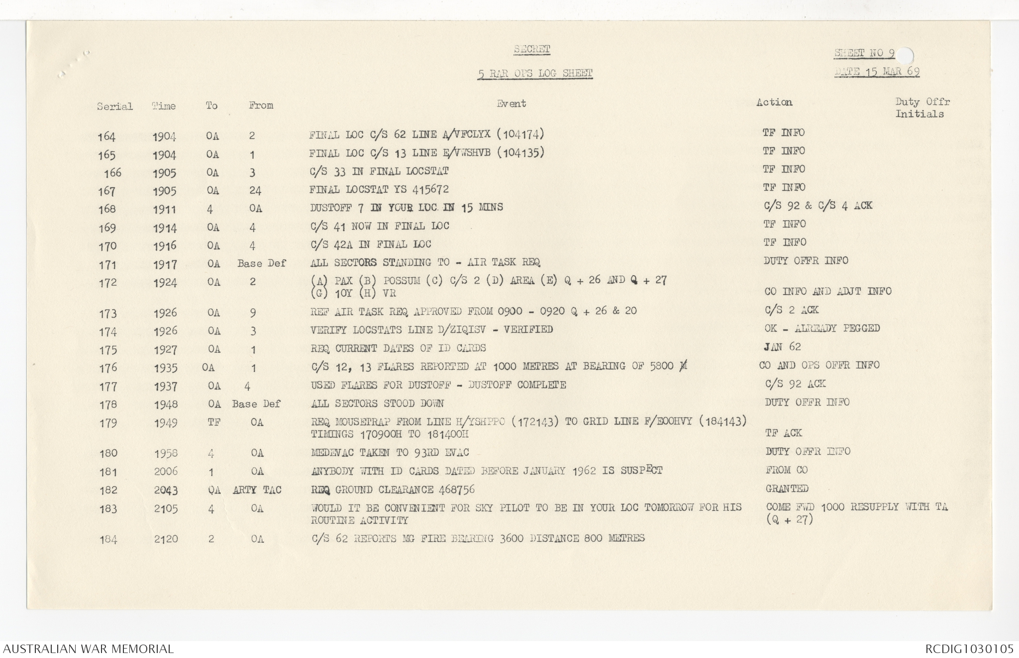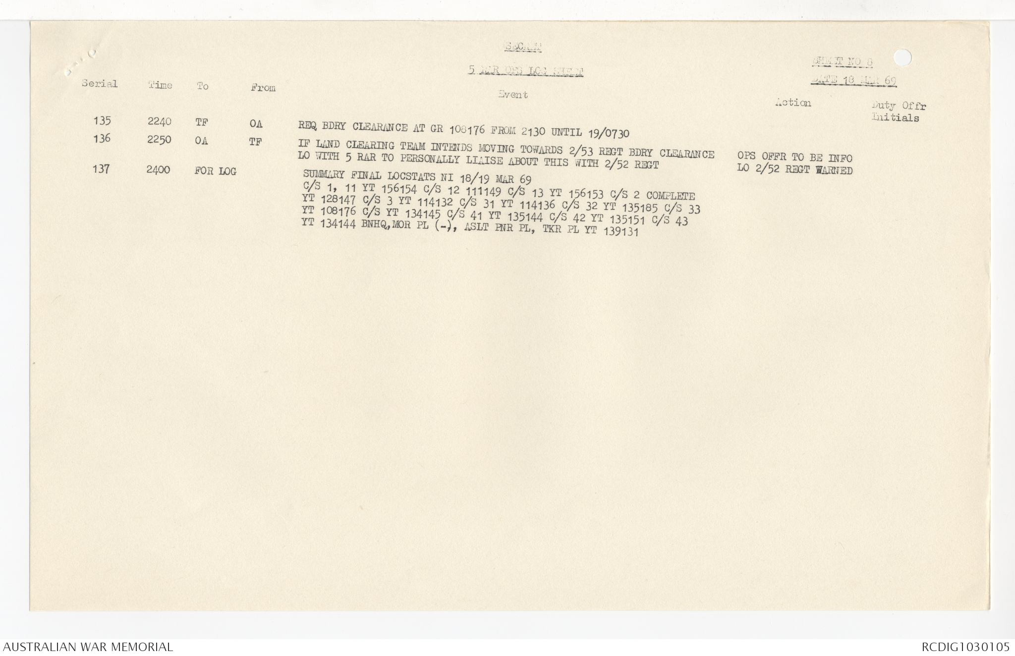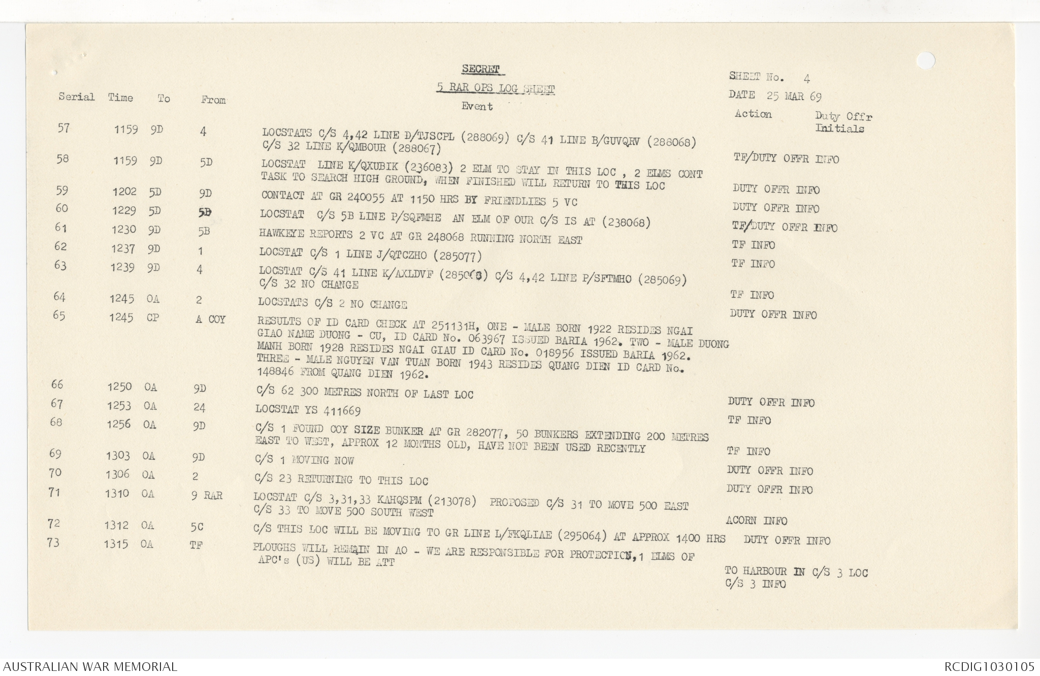 AWM95 7/5/21 - 1-31 March 1969, Annexes