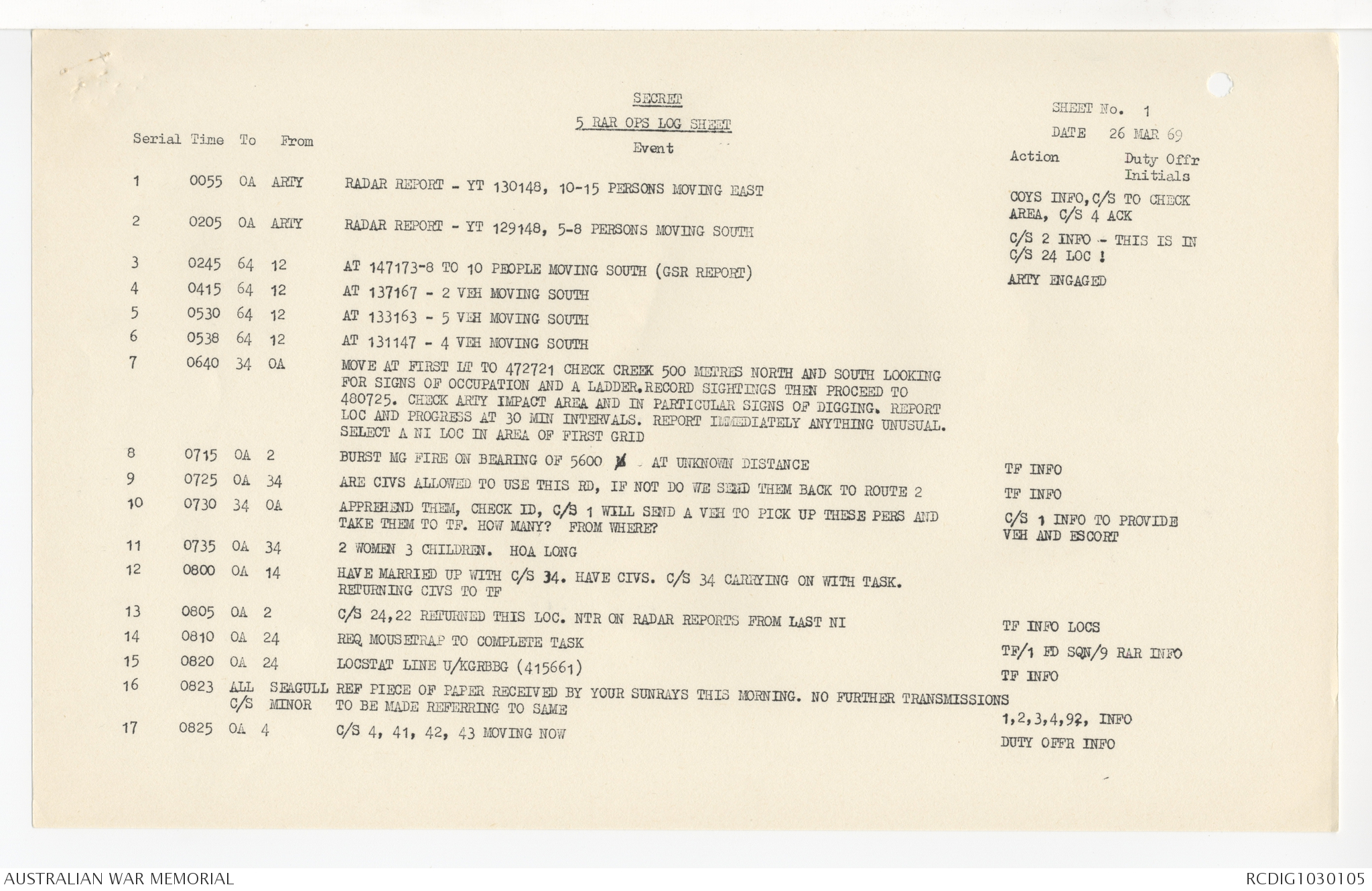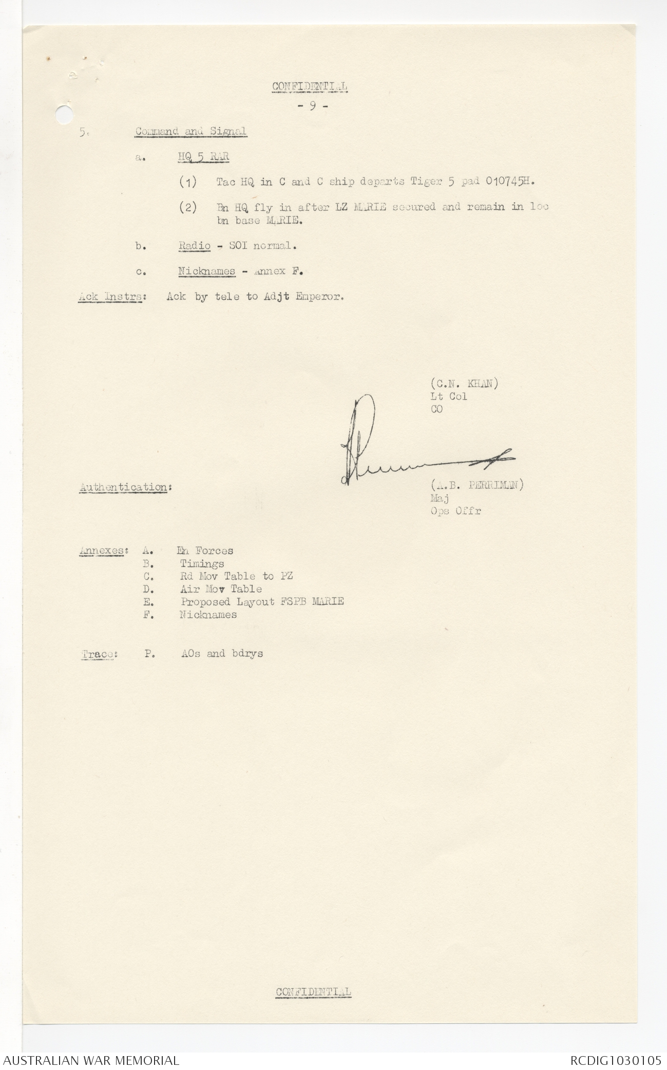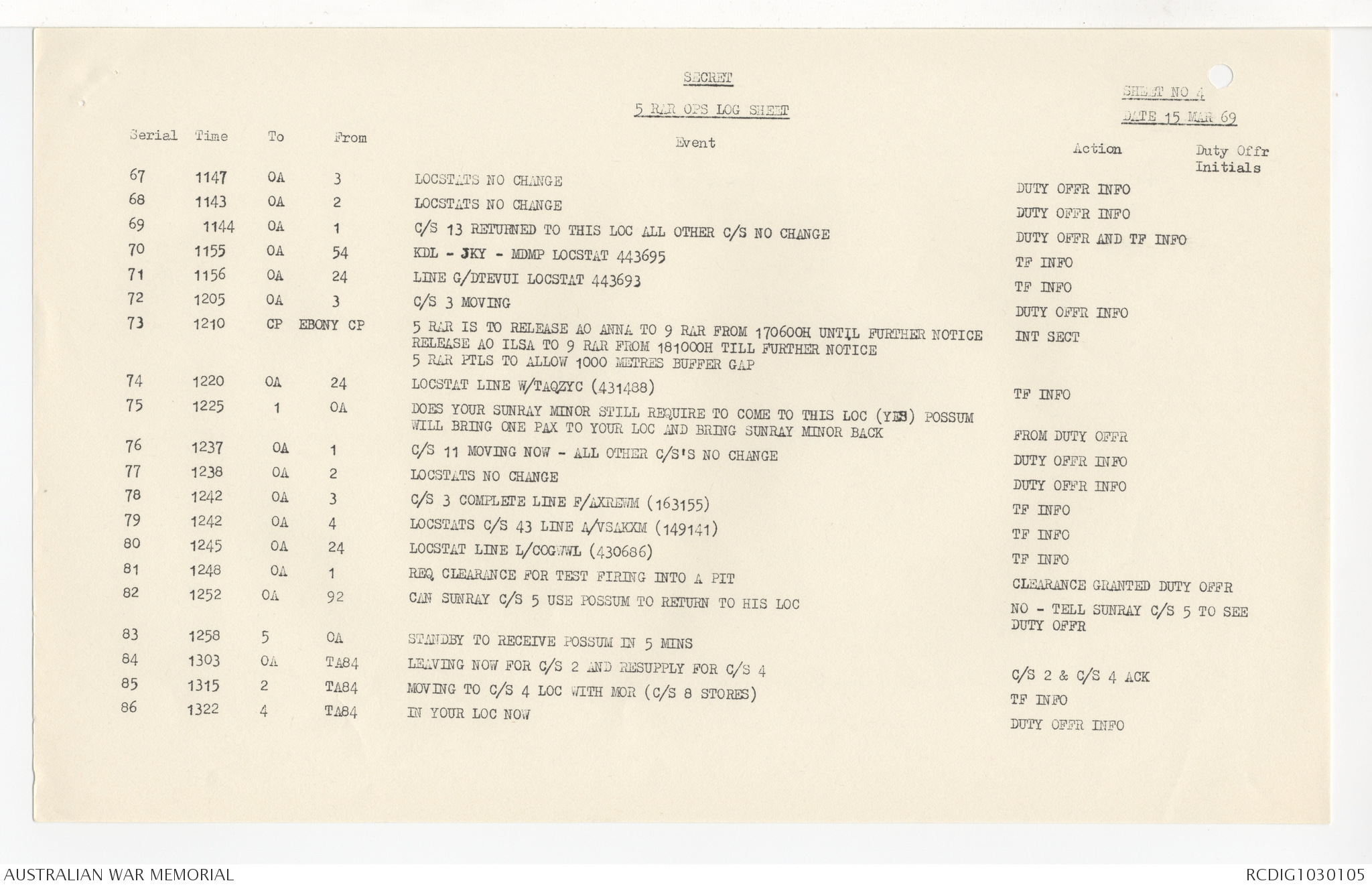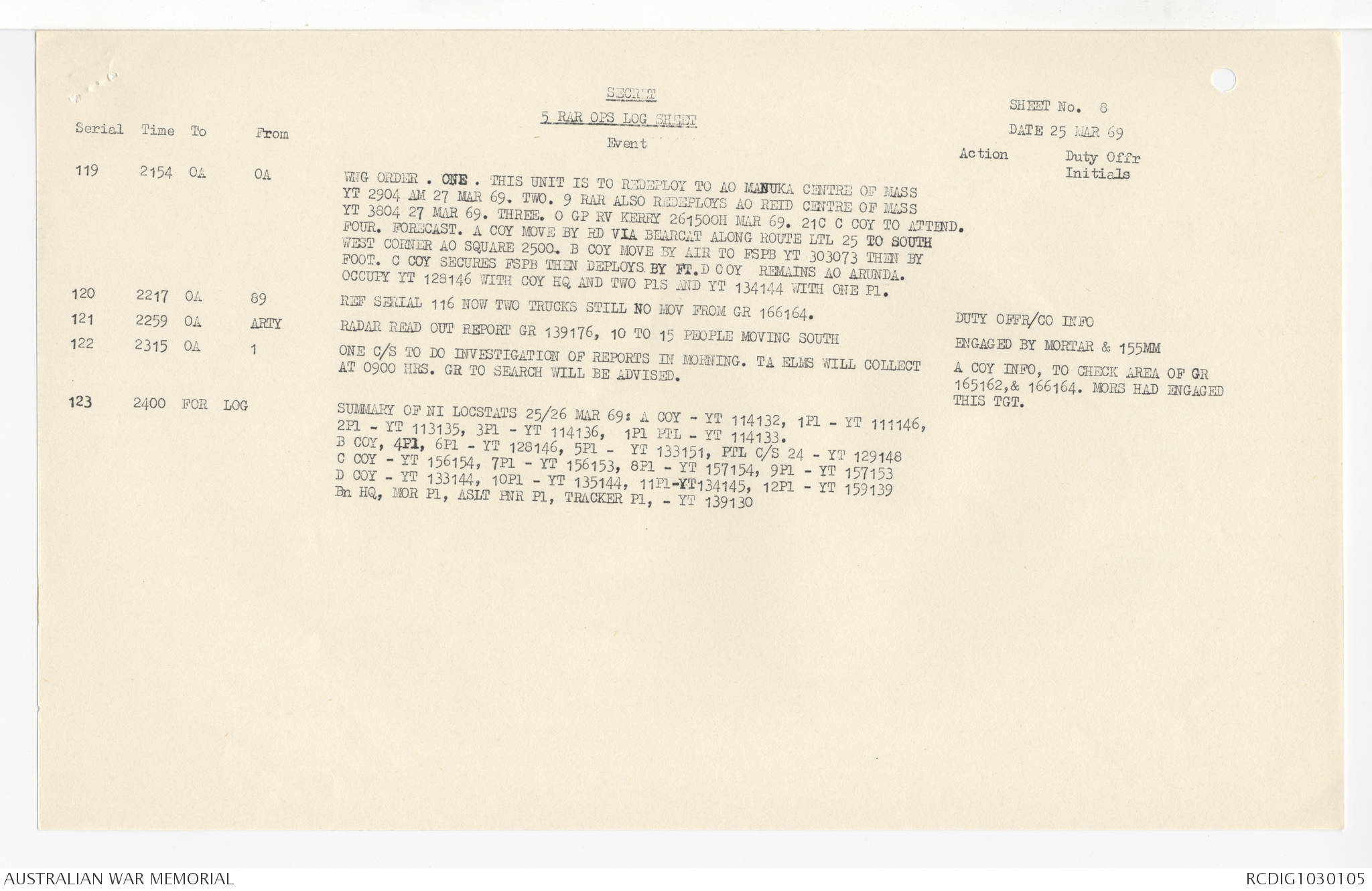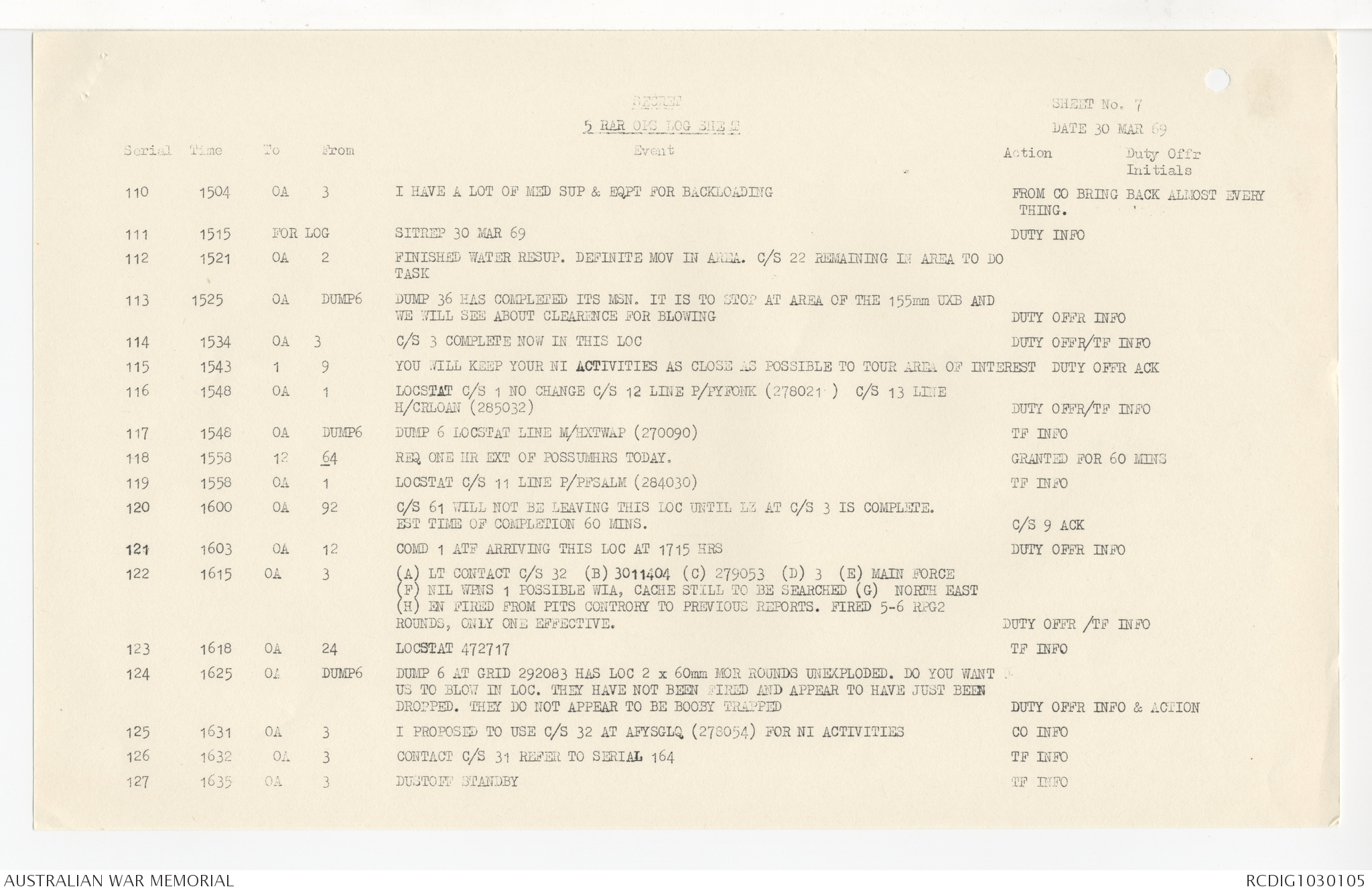 AWM95 7/5/21 - 1-31 March 1969, Annexes