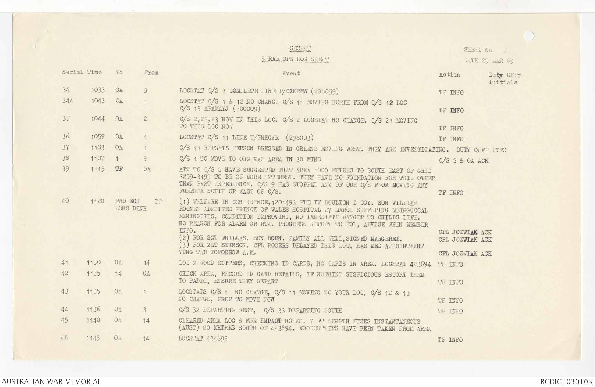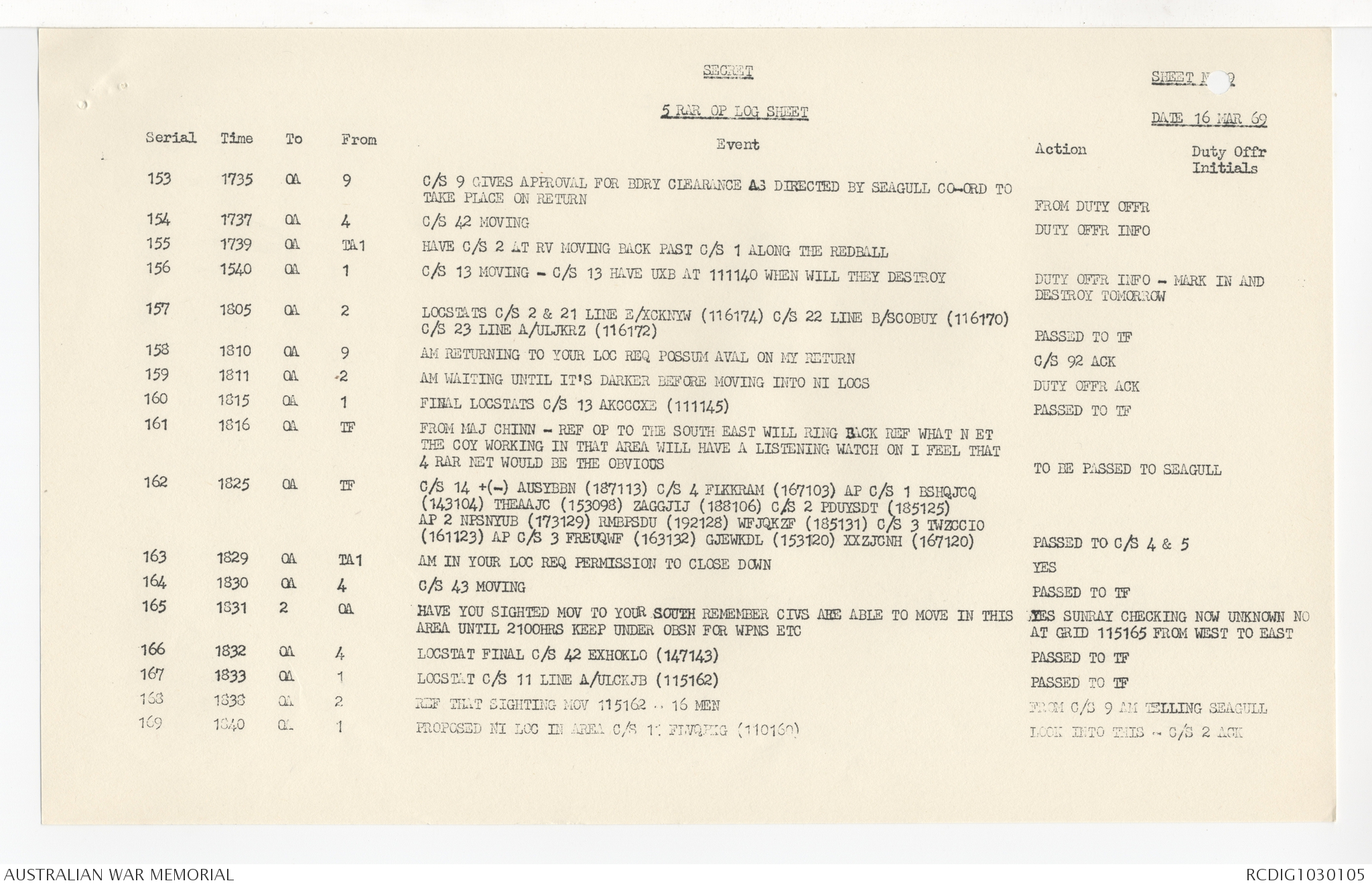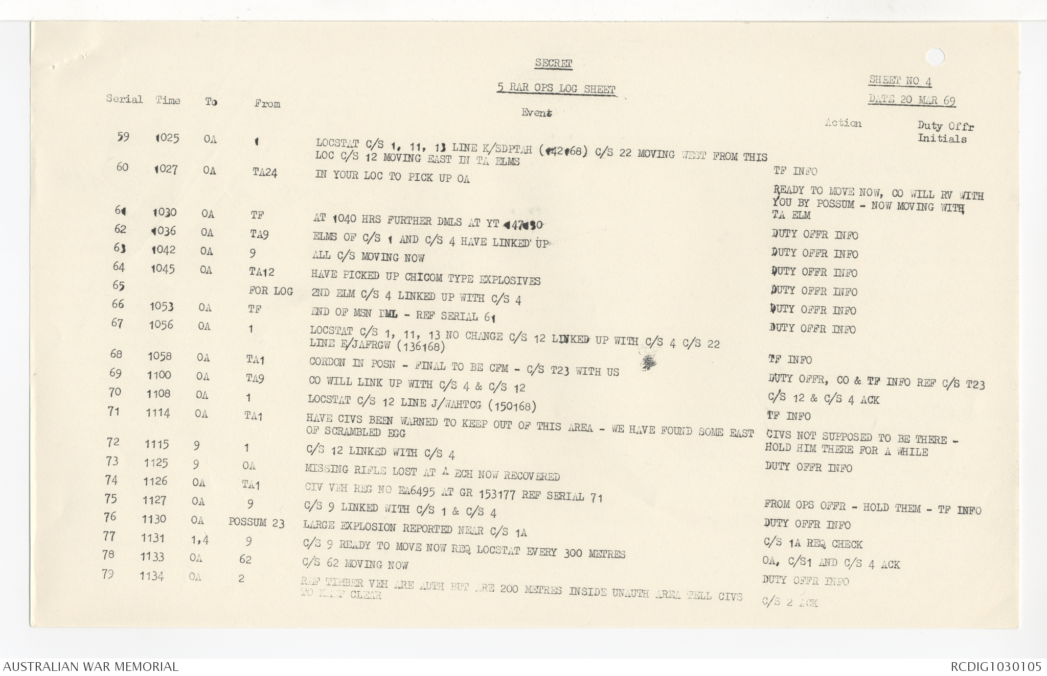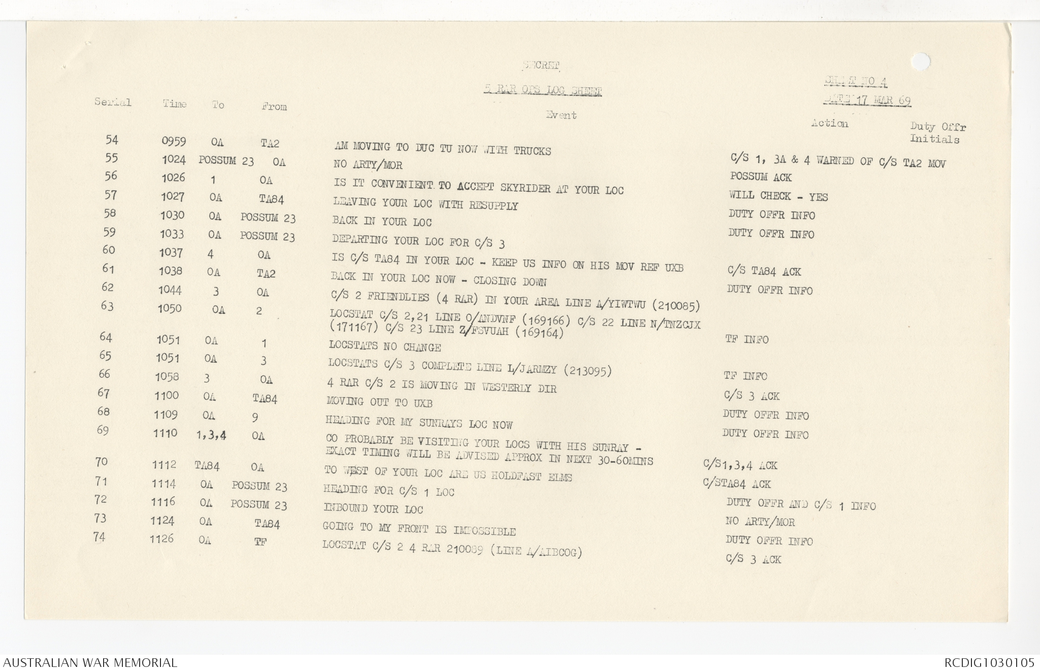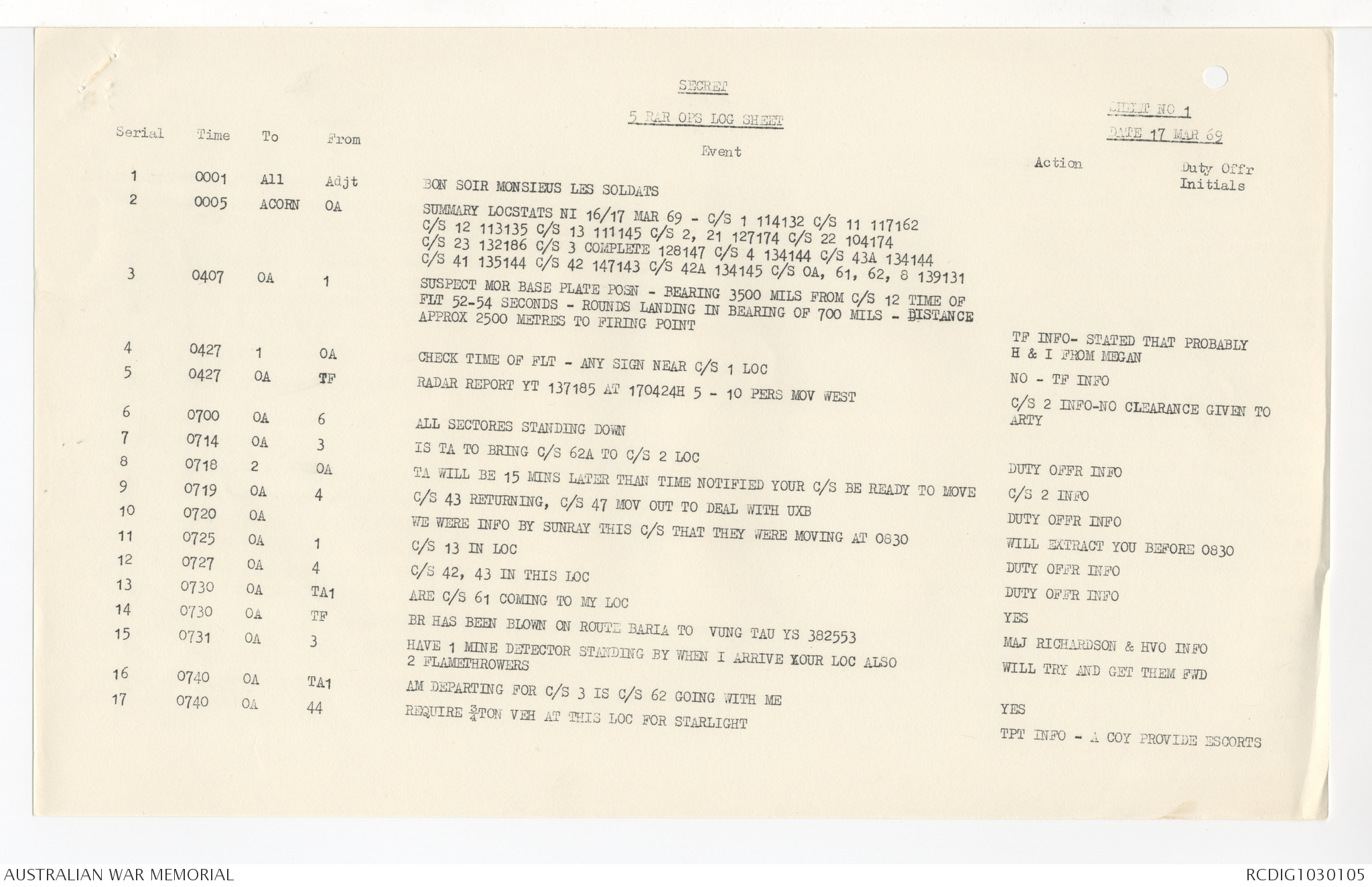 AWM95 7/5/21 - 1-31 March 1969, Annexes