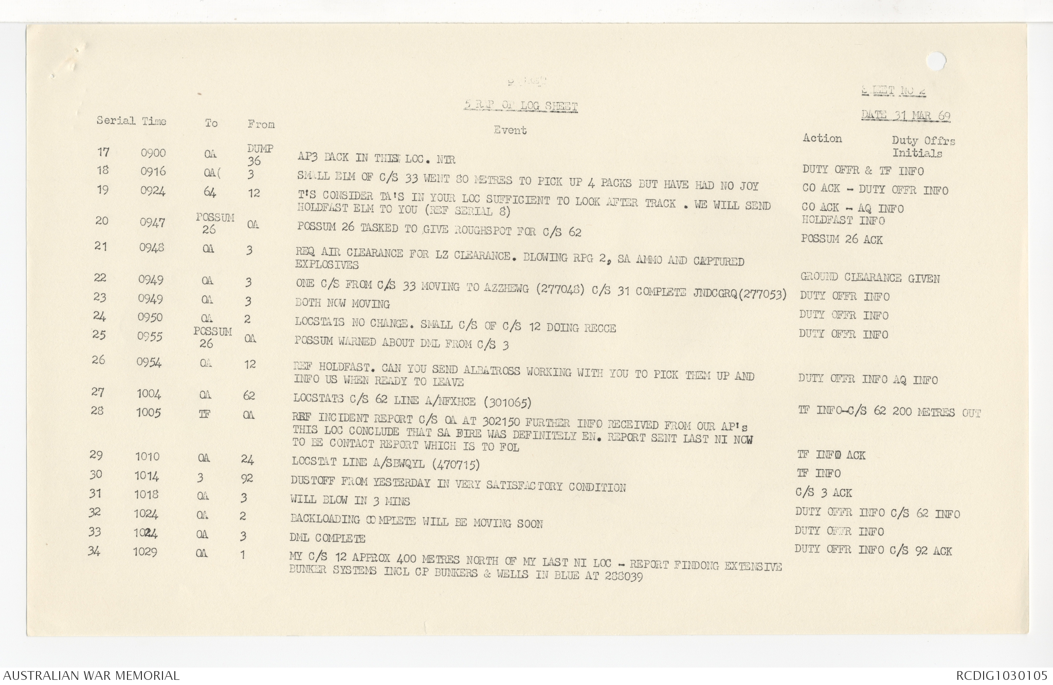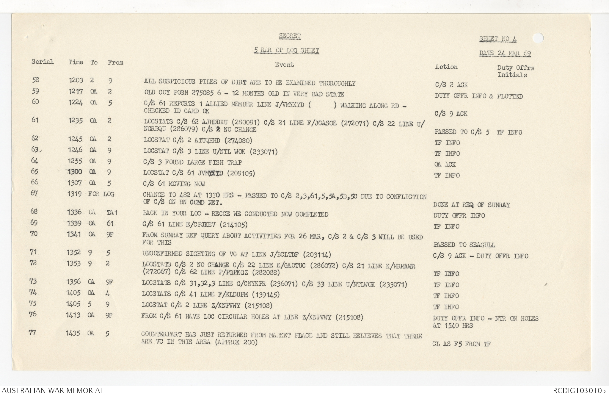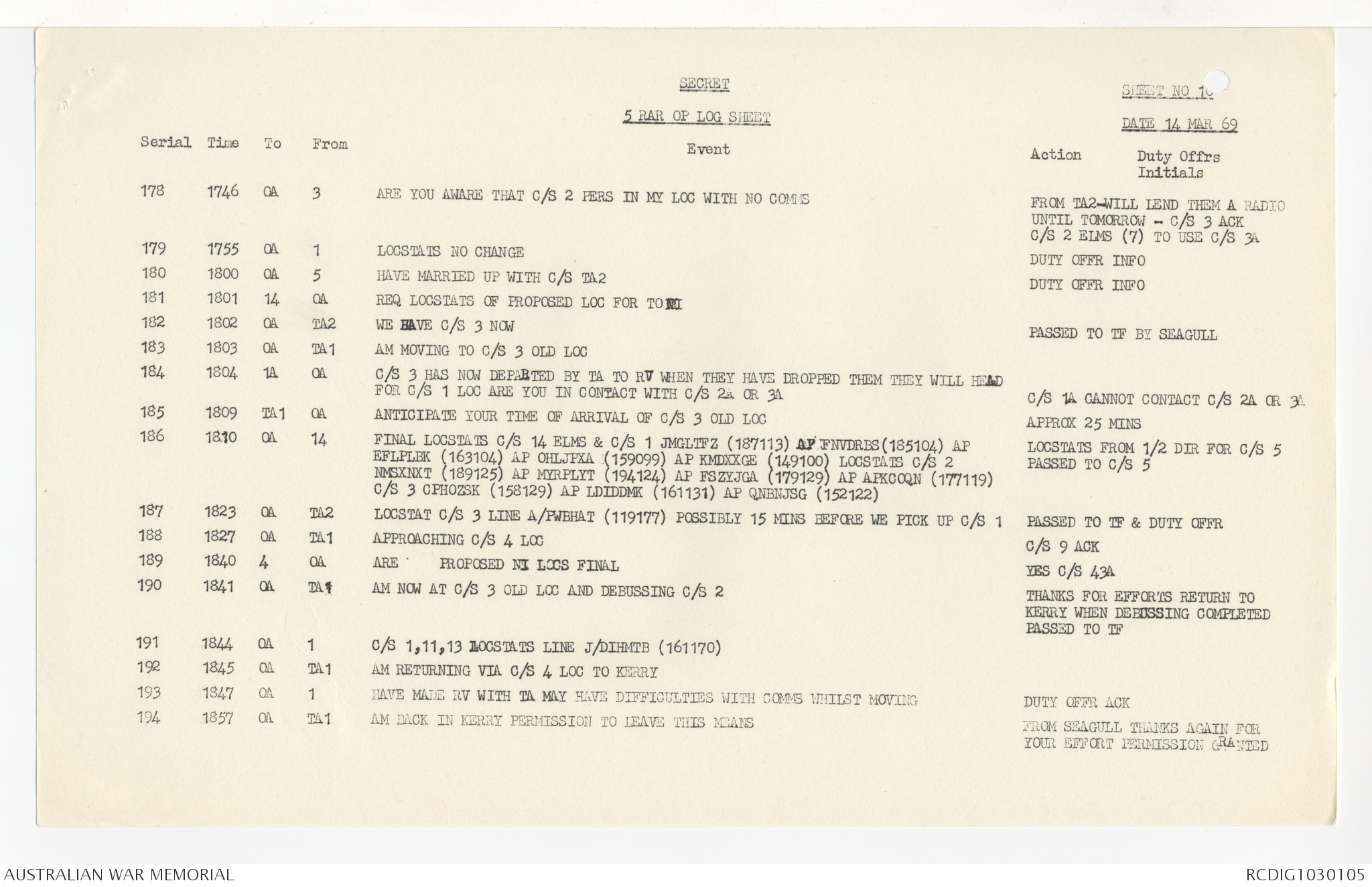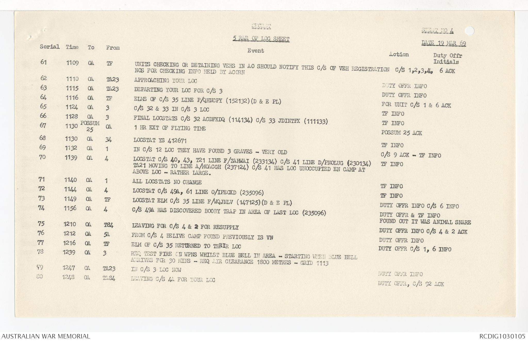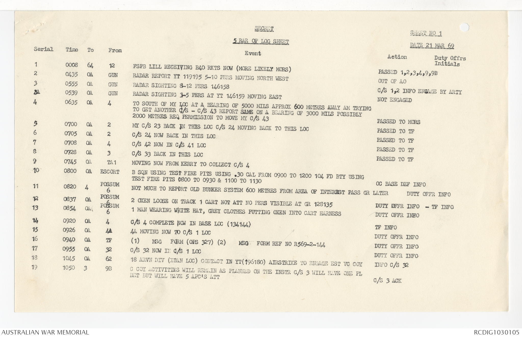 AWM95 7/5/21 - 1-31 March 1969, Annexes