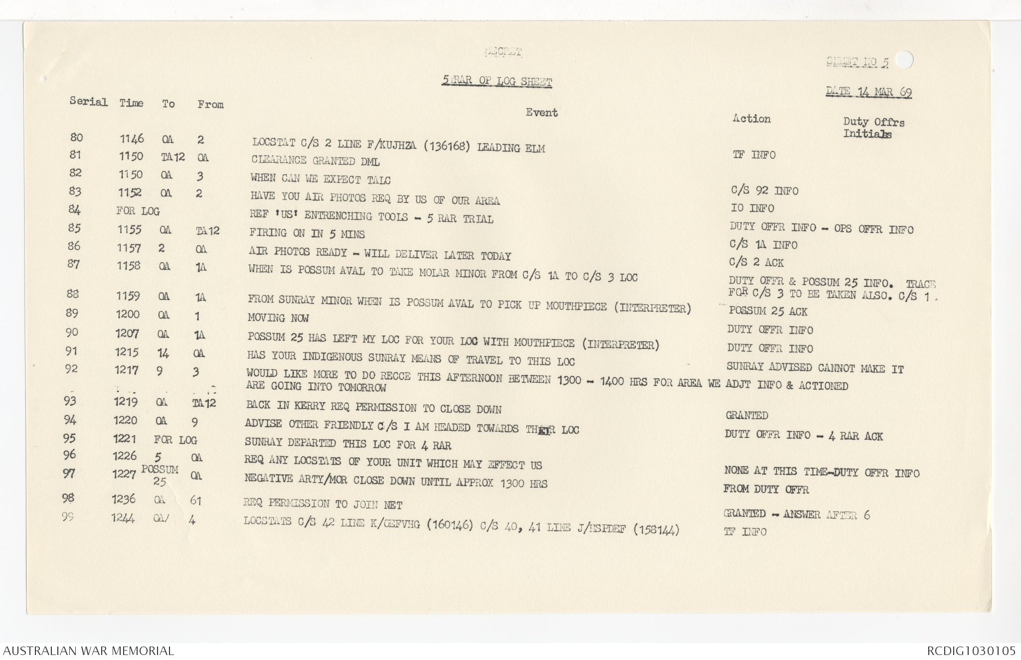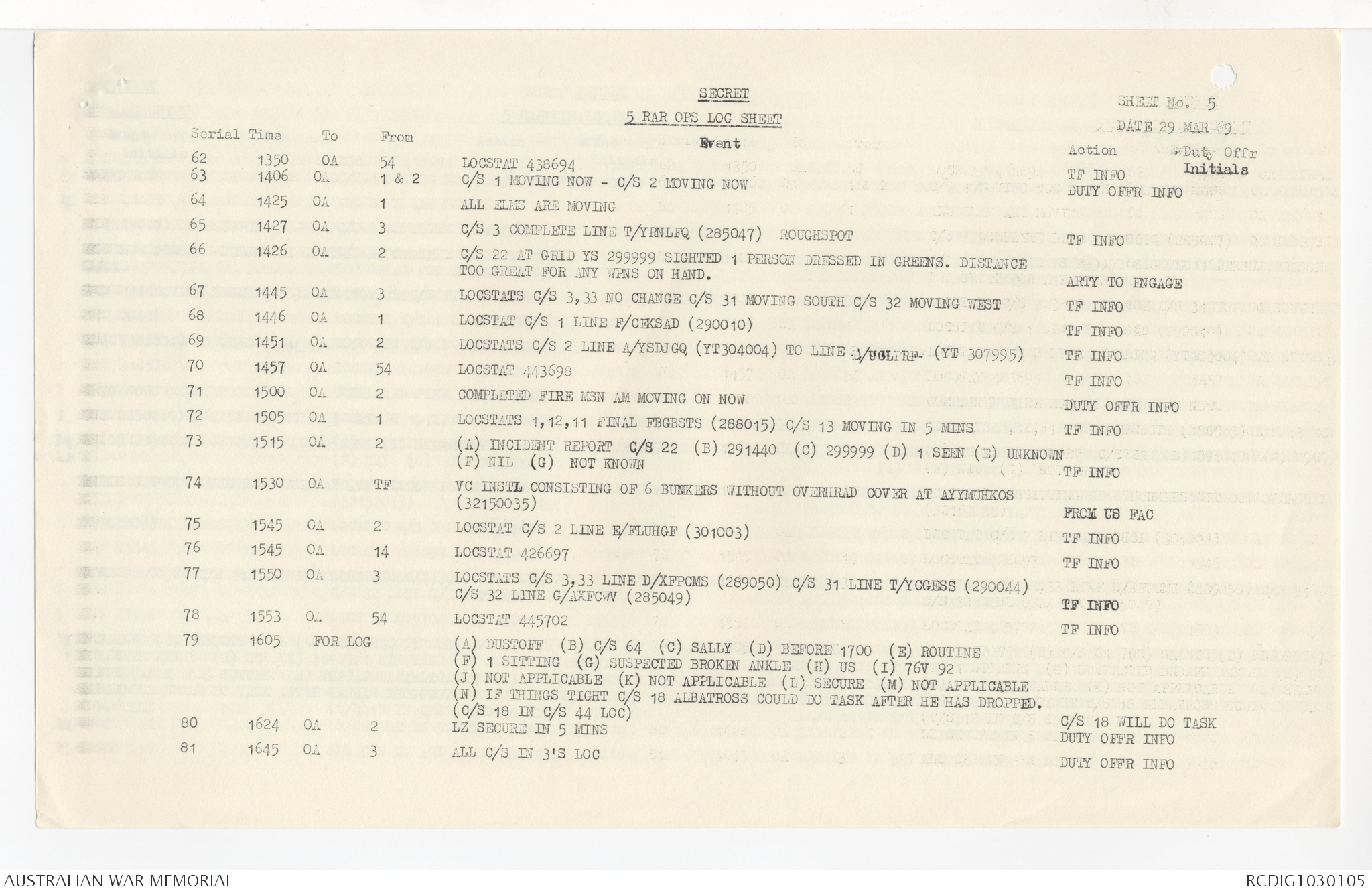 - AWM95 Subclass 7/5 - 5 Battalion Royal Australian Regiment
