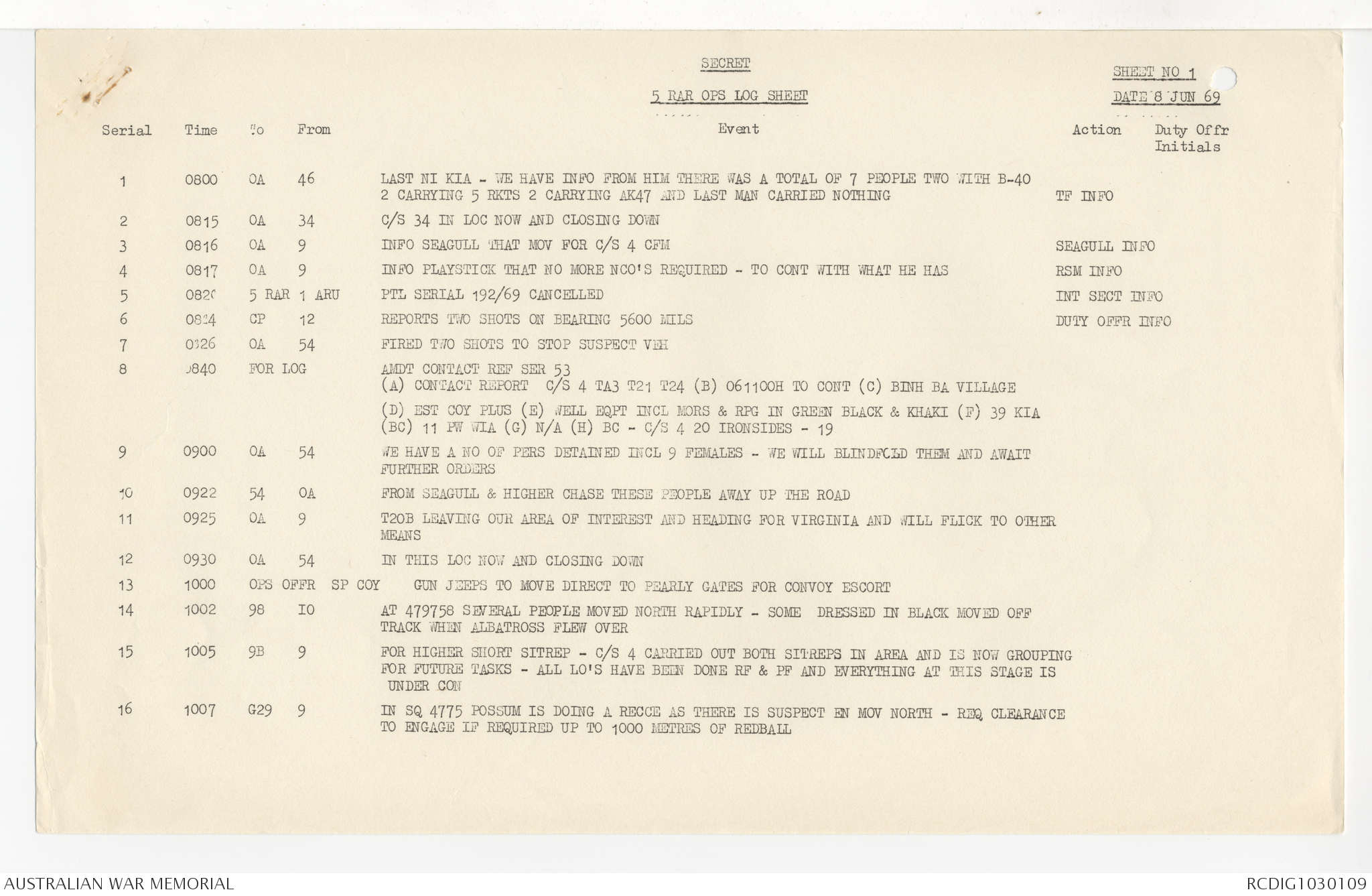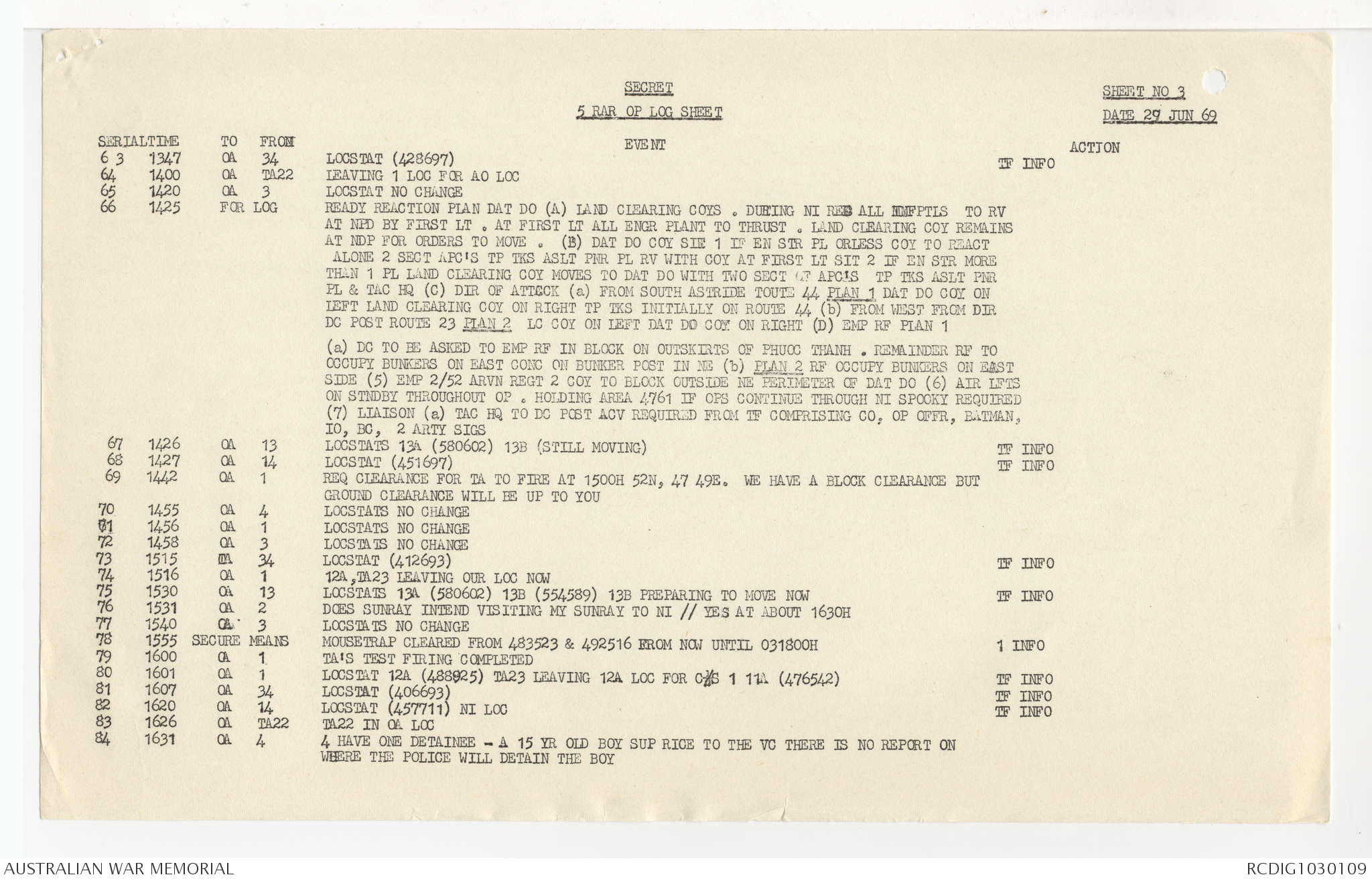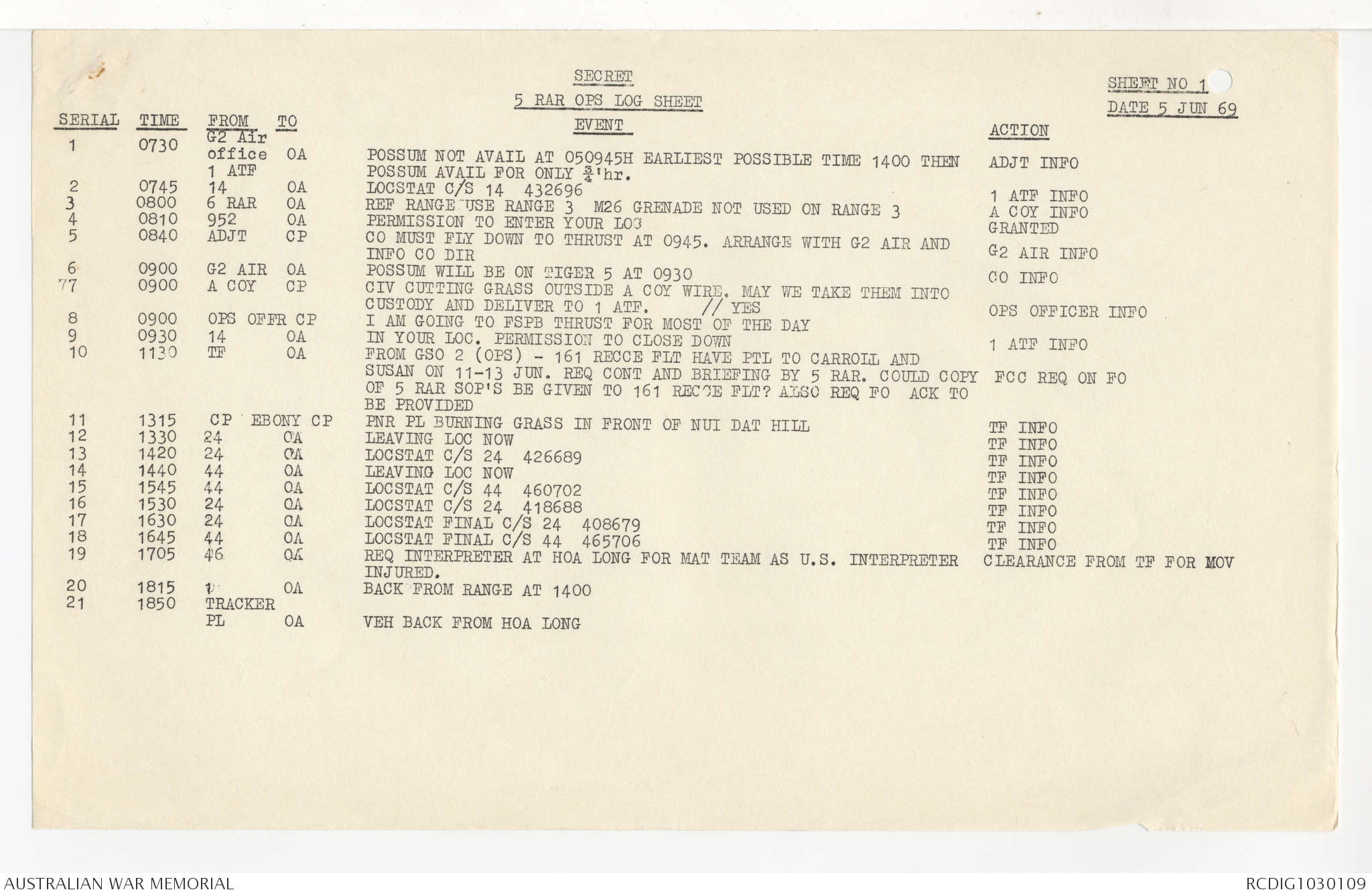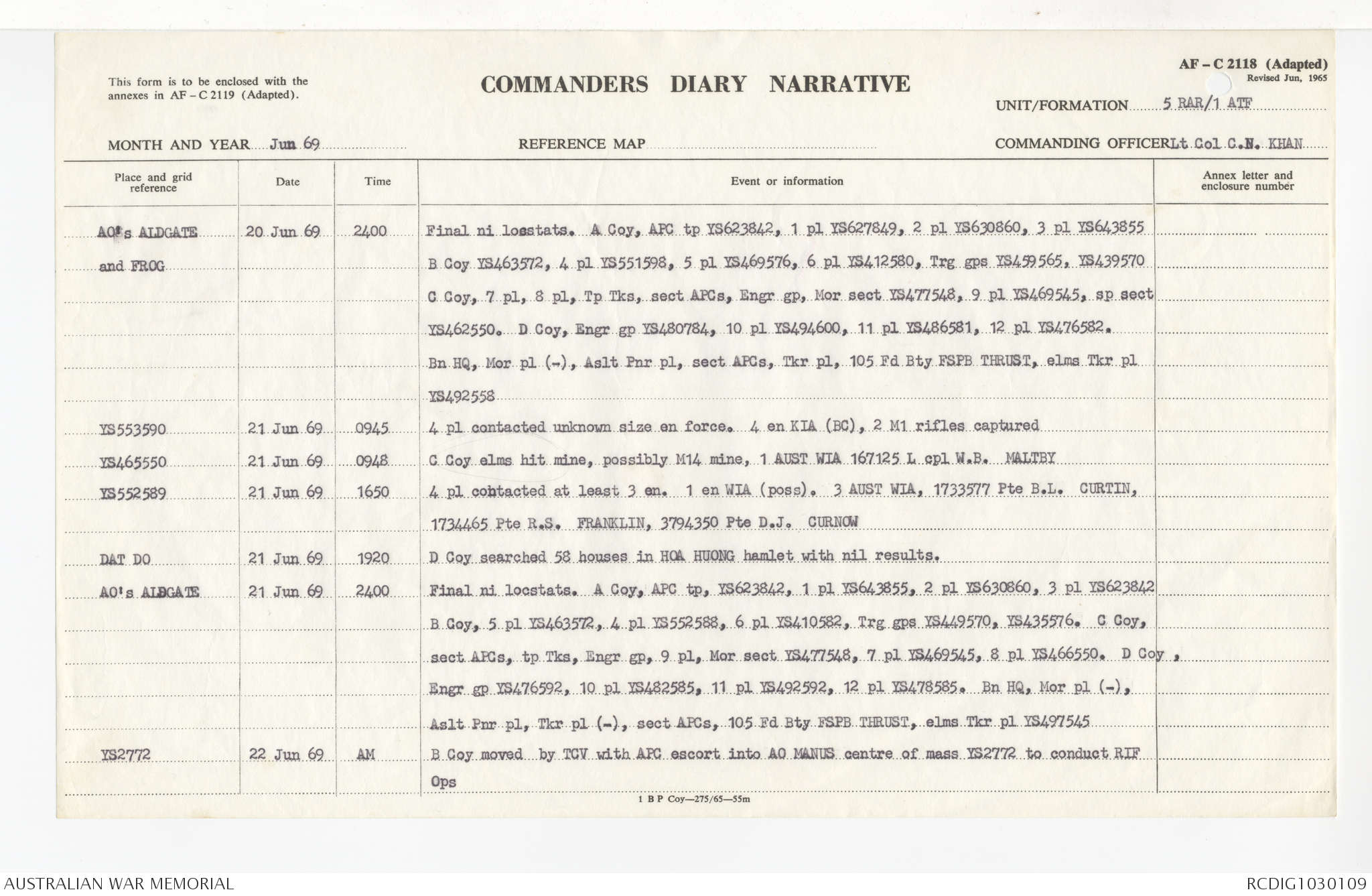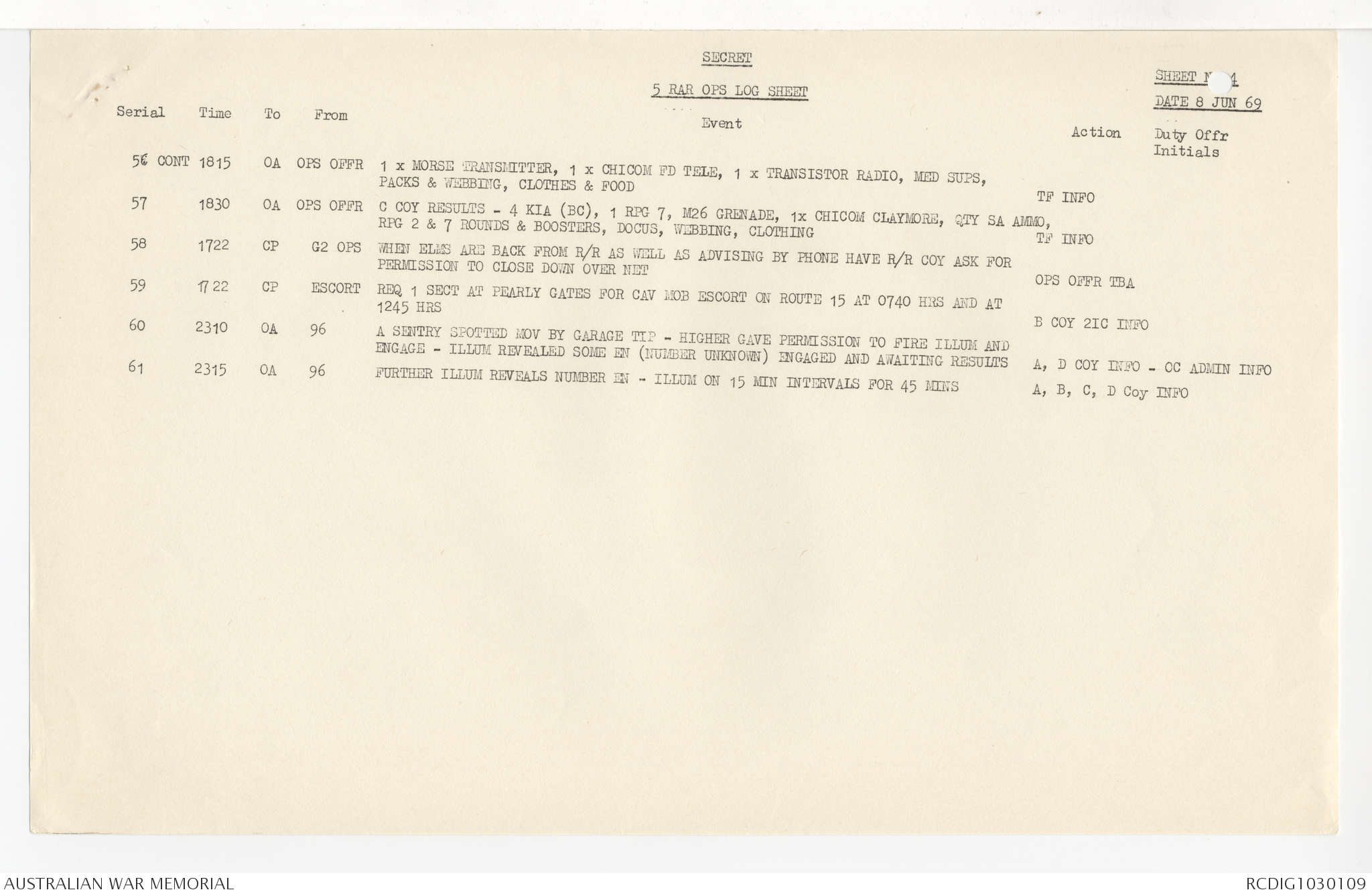AWM95 7/5/25 - 1-30 June 1969, Narrative, Operations log, Annexes
