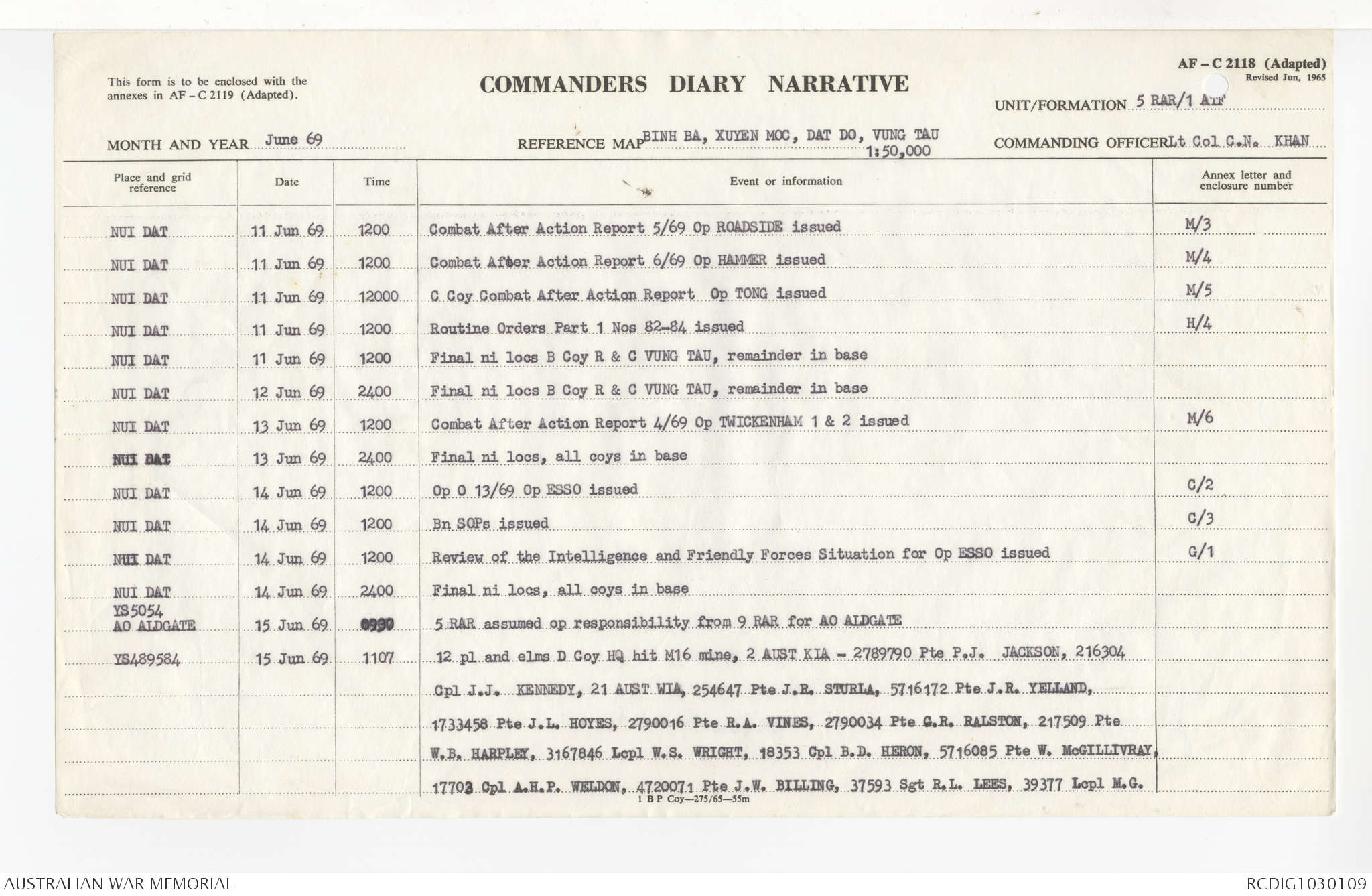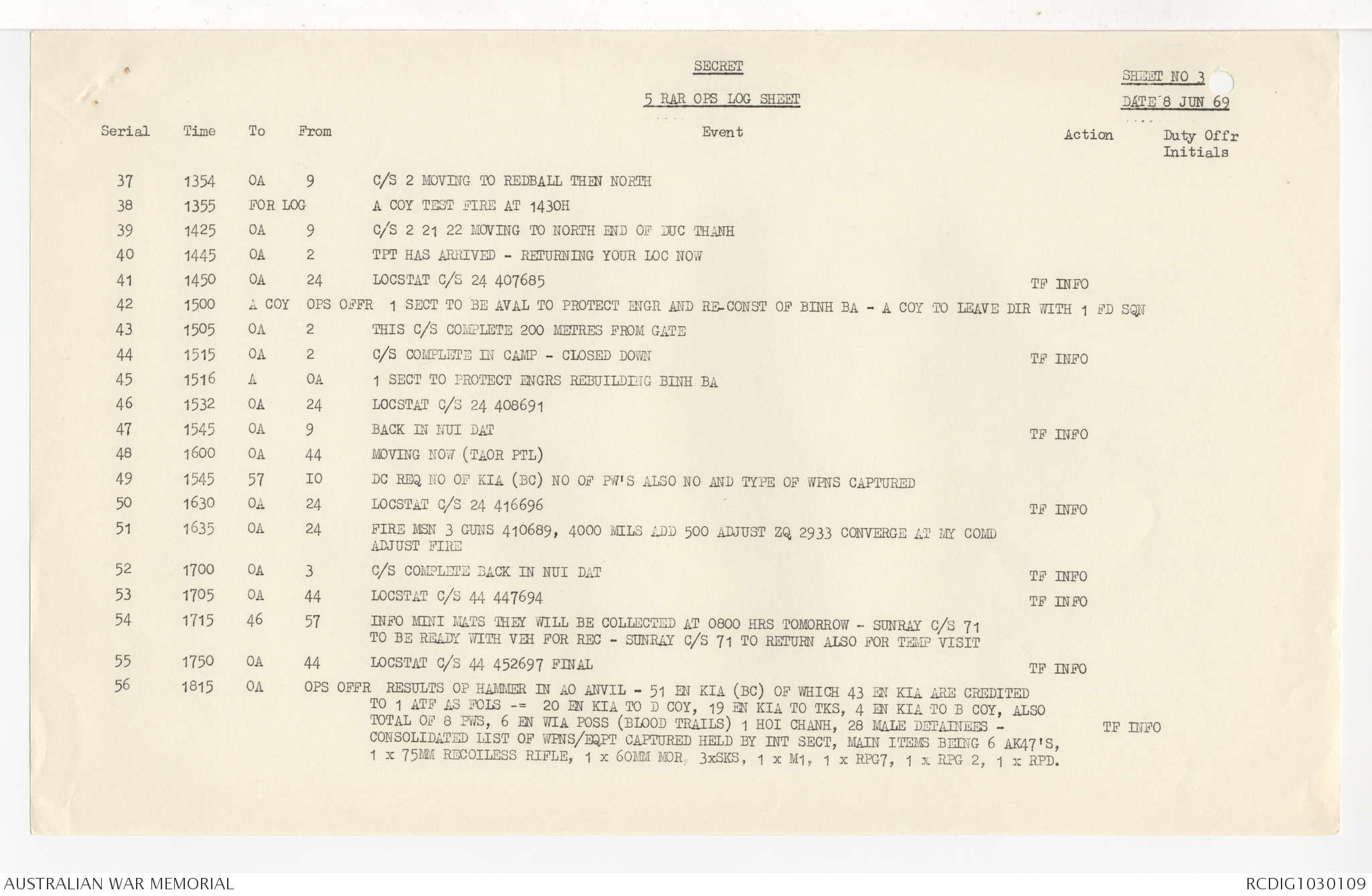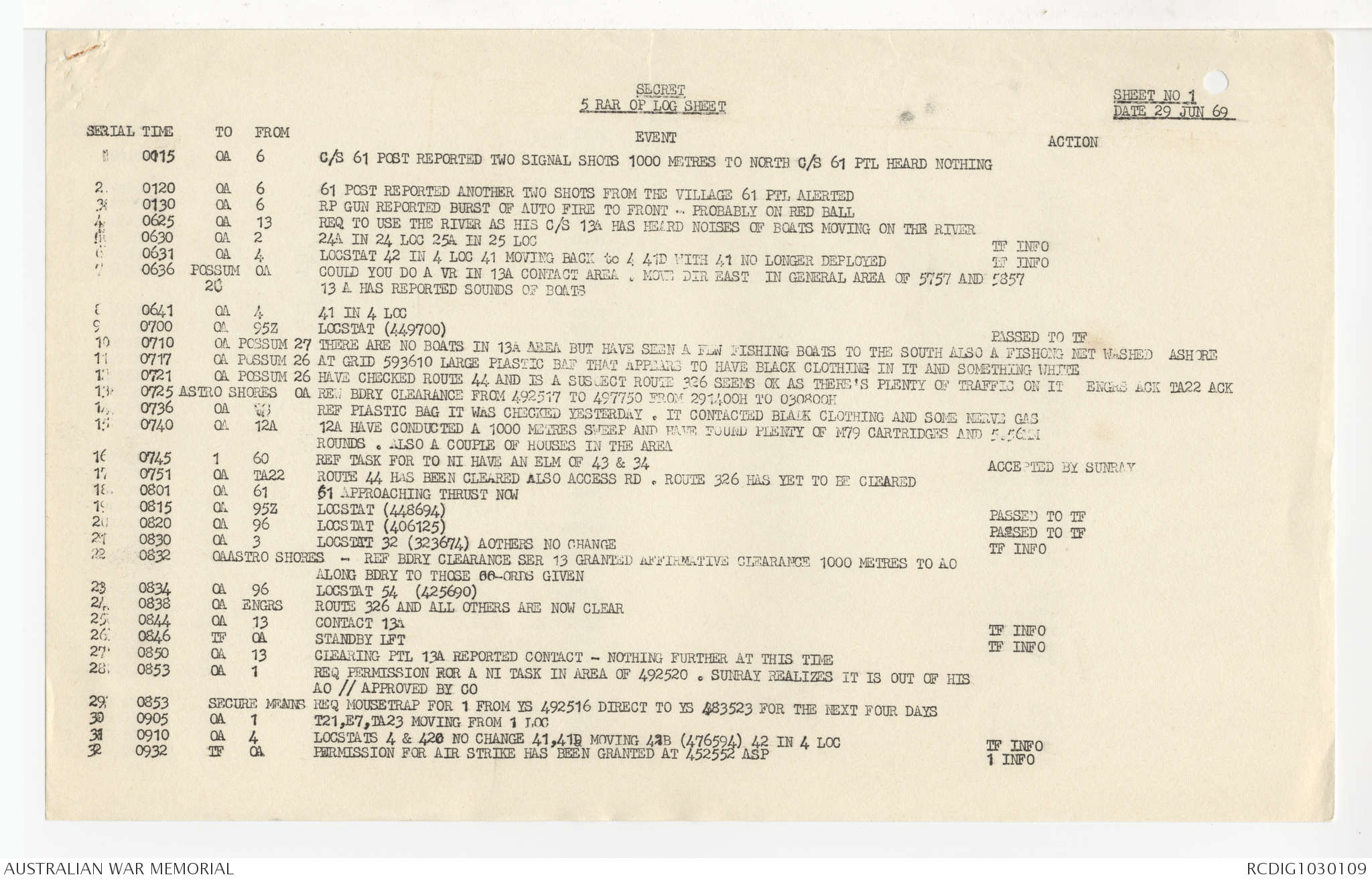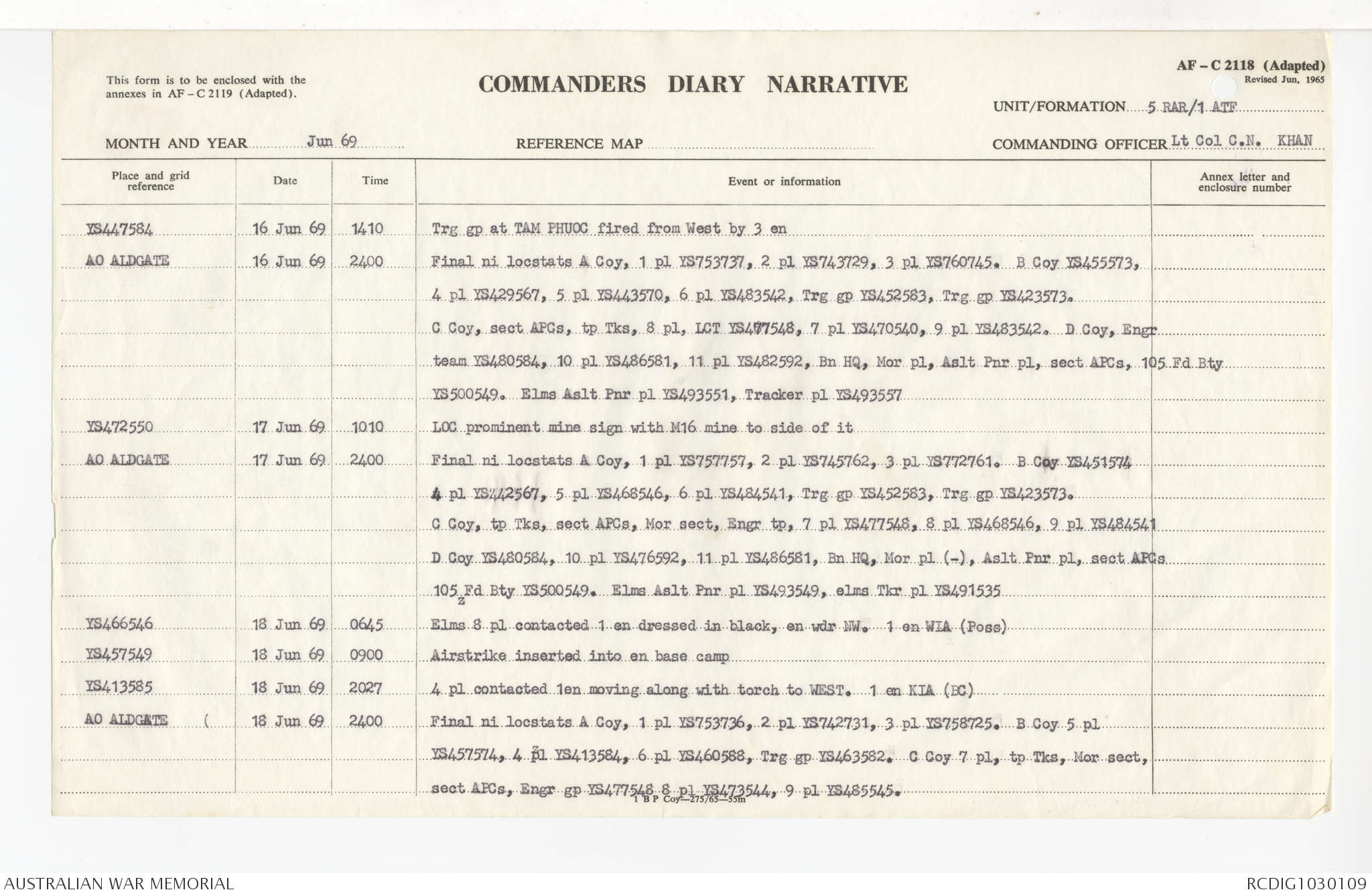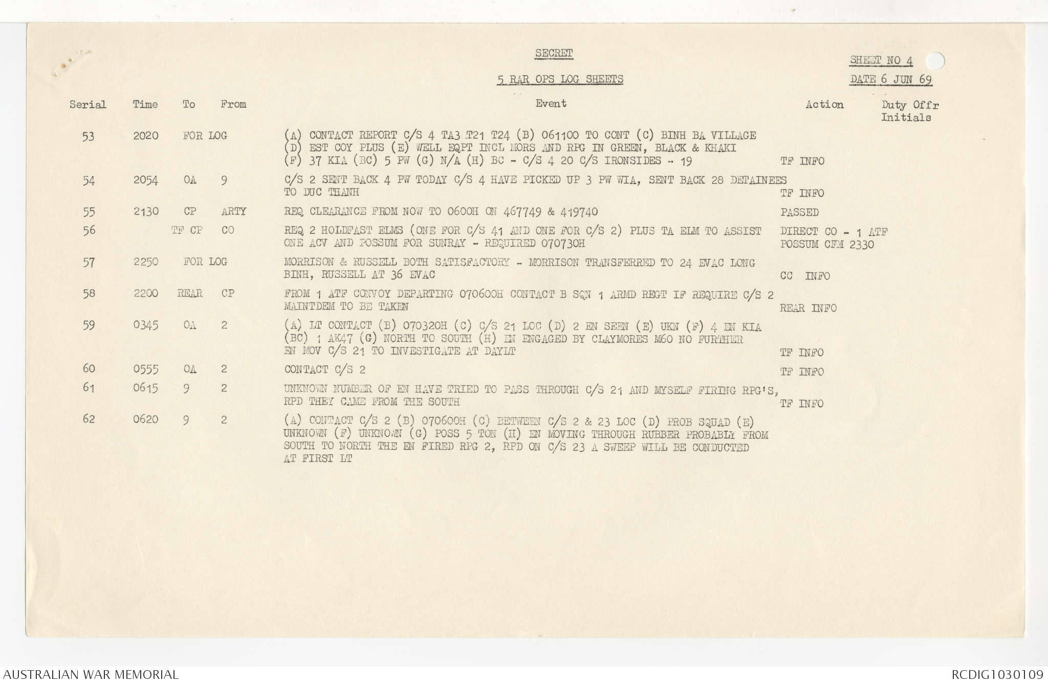 AWM95 7/5/25 - 1-30 June 1969, Narrative, Operations log, Annexes